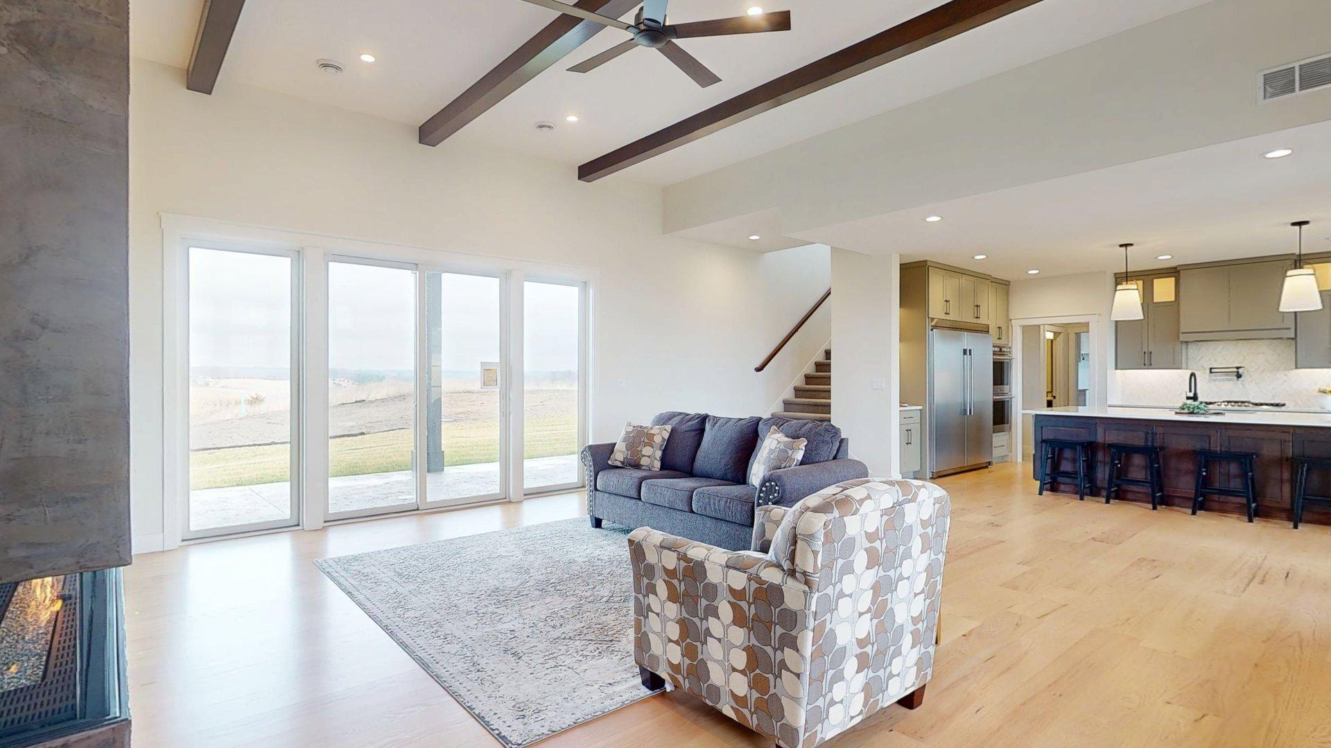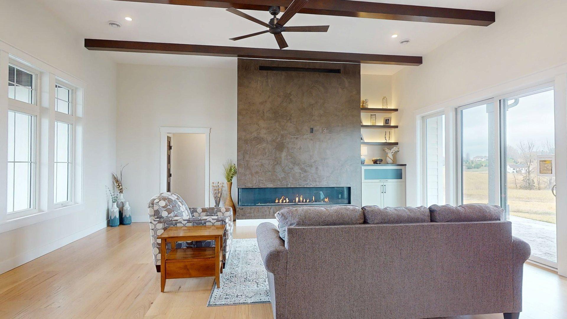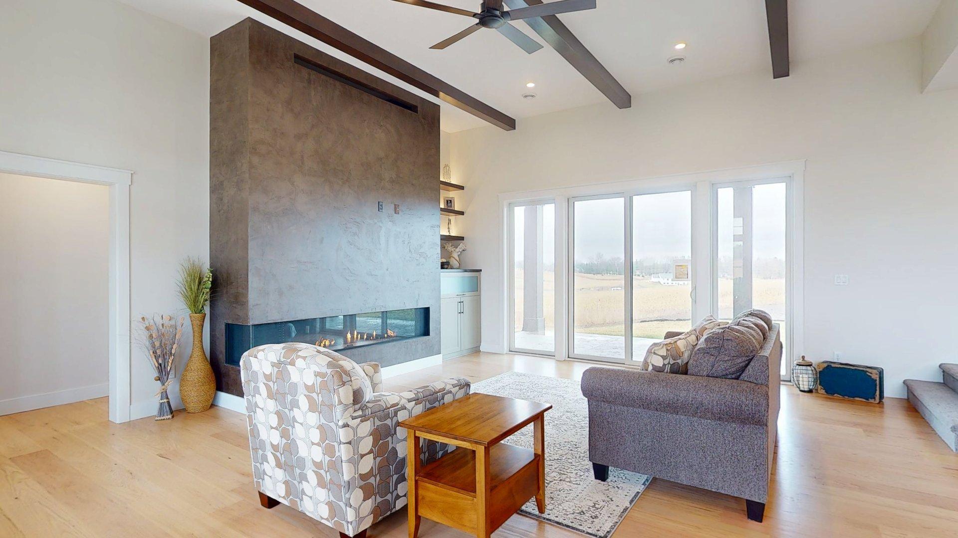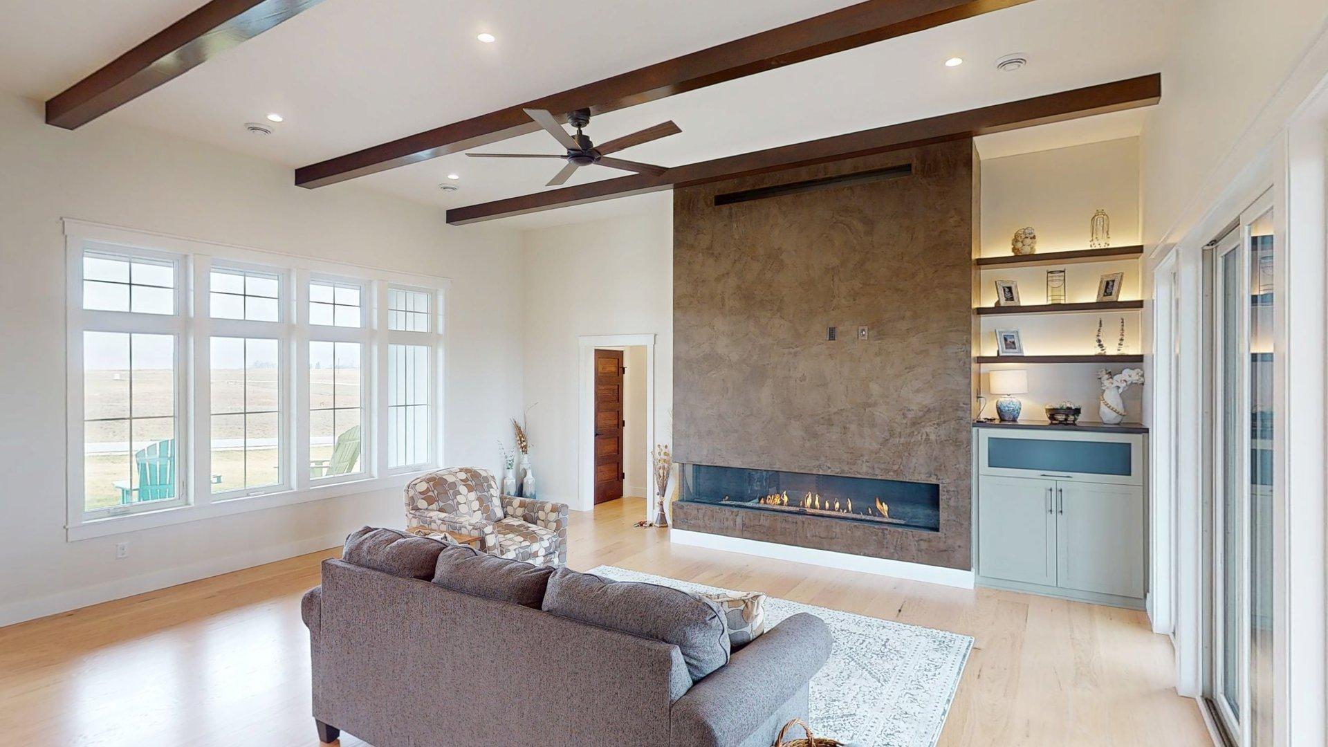 Completed NEW CONSTRUCTION. Welcome to this majestic 2-story home, a true masterpiece nestled on a sprawling 2.44-acre lot. As you enter, be greeted by the elegance of hardwood floors that extend throughout the main floor, perfectly complemented by the luxury of in-floor hydronic heating. The centerpiece of the living room is a stunning 9-foot gas fireplace, with exquisite European plaster & custom mantle, all beneath soaring 12-foot ceilings that enhance the grandeur of the space. The main floor boasts a spacious primary suite, offering ultimate convenience and privacy. Ascend to the upper level to discover four large bedrooms and a charming sitting area, ideal for relaxation. This home seamlessly blends sophistication with comfort, providing ample space for both entertaining and everyday living. With its impeccable design and premium features, this residence promises an unparalleled lifestyle in a serene, expansive setting. Experience the perfect balance of luxury and tranquility in this remarkable home.