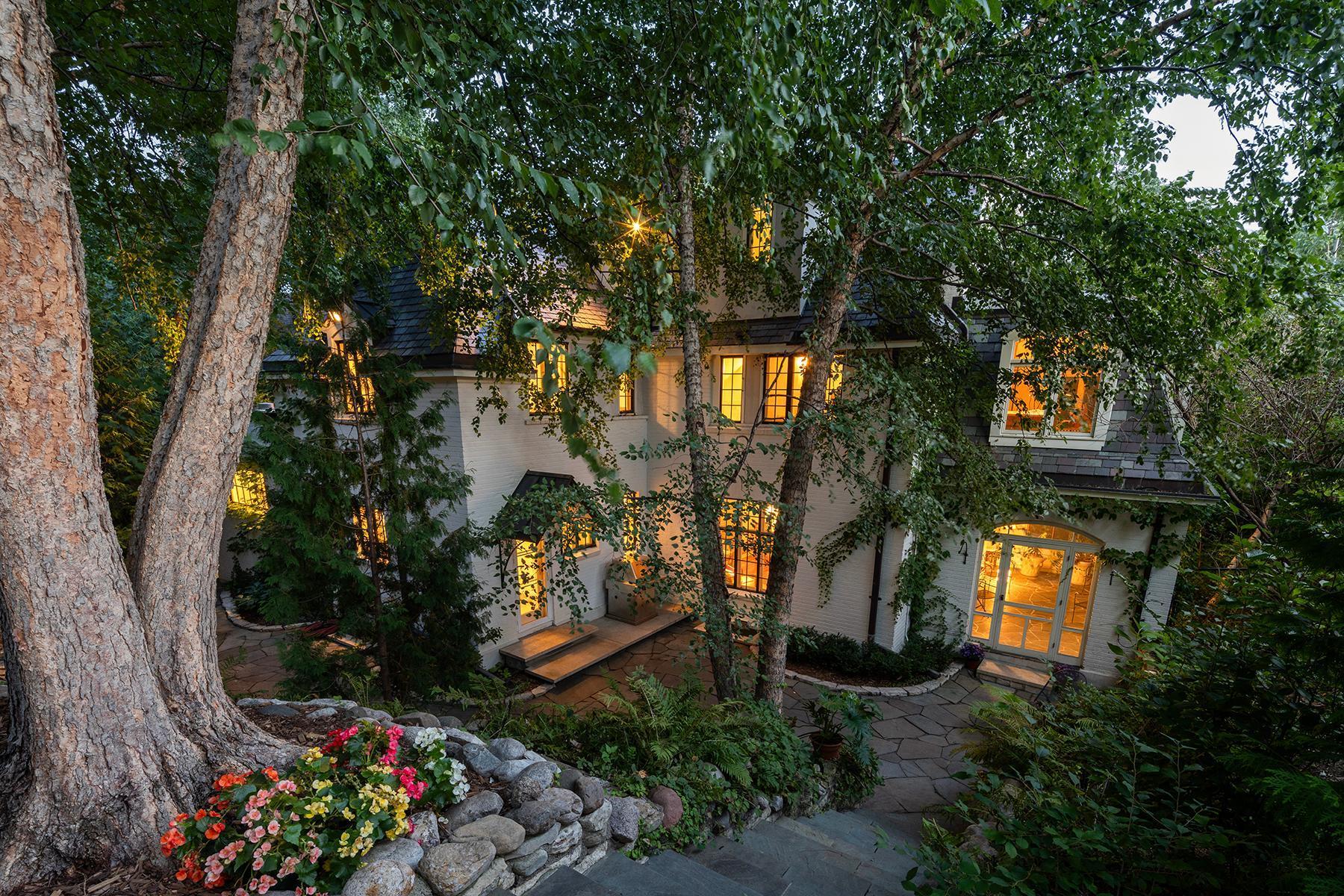 Uniquely special French Chateau style residence that perfectly balances memorable architecture, light-infused artful interiors, gracious proportions, picturesque park-like grounds with majestic cascading garden wall, exceptional privacy and hiddenly prized location - surrounded by tranquil Woodlands, steps to Bde Maka Ska and the beautiful Minikahda Club as the backdrop. Defined by natural light, historic charm, warm and inviting spaces, sumptuous wood tones and textures, high-level stylish updates and a wonderful embracement of Mother Nature. A singular home with matching attributes - magnificent living space with built-in library wall, one-of-a-kind screened porch tucked into nature, custom kitchen that unfolds into an inspiring outdoor living terrace through a feature wall of sliding glass, spectacularly curved wood-wrapped family room, serene primary suite with ethereal spa-bath and amazing tree-top atelier/office, unique secondary bedroom with versatile studio/sitting room and lower-level flex space featuring unrivaled steam shower. A tribute to old and new, utilizing expert craft and a harmonizing palette of enduringly refined materials - brick exterior, slate roof, copper accents, bespoke kitchen and spa-inspired baths, hand-crafted details, marble, stone, glass, Venetian plaster, Poliform, Vola, Dornbracht, Duravit, Alape, Wetstyle, Robern, Viking, Liebherr and Artemide. A home embraced by nature like no other - multiple European-inspired outdoor living areas, captivating water feature, meditation path, distinct boulder walls, beautiful stone steps/paths, fire-pit area, architectural shed and remarkable tiered garden wall that creates unexpected intimacy. An extraordinary home, an unforgettable setting and a sensational location - creating a truly exceptional experience that elevates daily living. All things Minneapolis lakes at your fingertips - the beautiful chain of lakes, scenic walking/biking trails, verdant parks, restaurants, boutiques, grocery, galleries, Walker Art Center, Minneapolis Sculpture Garden and much more. FSF and dimensions provided by third party. Fireplace flames in property photos have been digitally added.