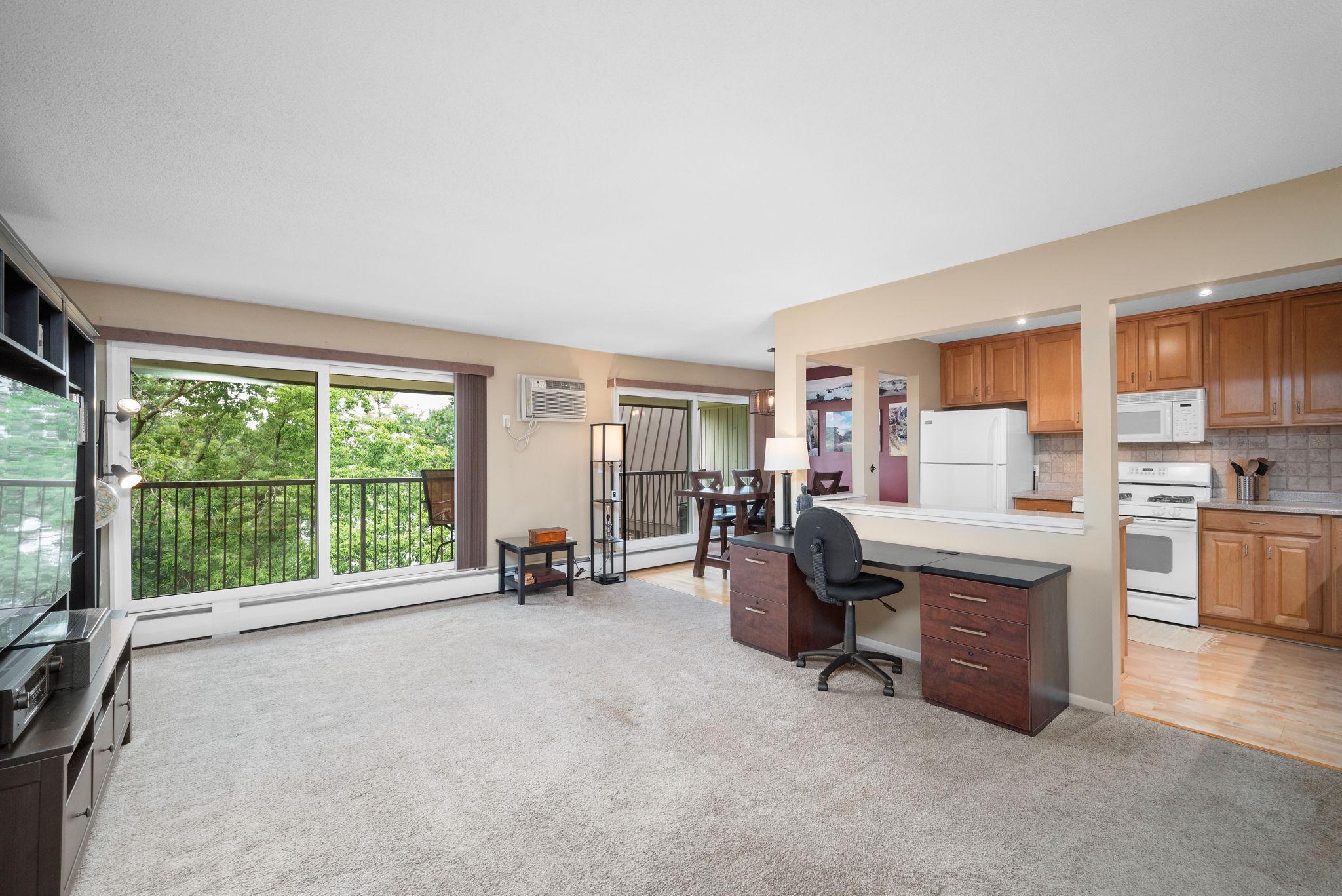 3 bedroom, 2 full bathroom condo located in the beautiful Wolfe Lake neighborhood of St. Louis Park! This quiet, top-floor unit offers an open floor plan, large kitchen with great prep space and storage, a spacious master bedroom. The full length deck overlooks Wolfe Lake. One space in the heated, underground parking included. The condo building features great amenities including a recently updated community room, outdoor pool, nicely outfitted fitness center, sauna, and a shared patio with multiple grills. Walk to shops, restaurants, and grocery stores. Easy access to walking and biking trails, and public transportation. Owner-paid HOA dues pay for heating, cable TV, internet, wi-fi, water/sewer, sanitation. Tenant pays electric. Renters insurance required.