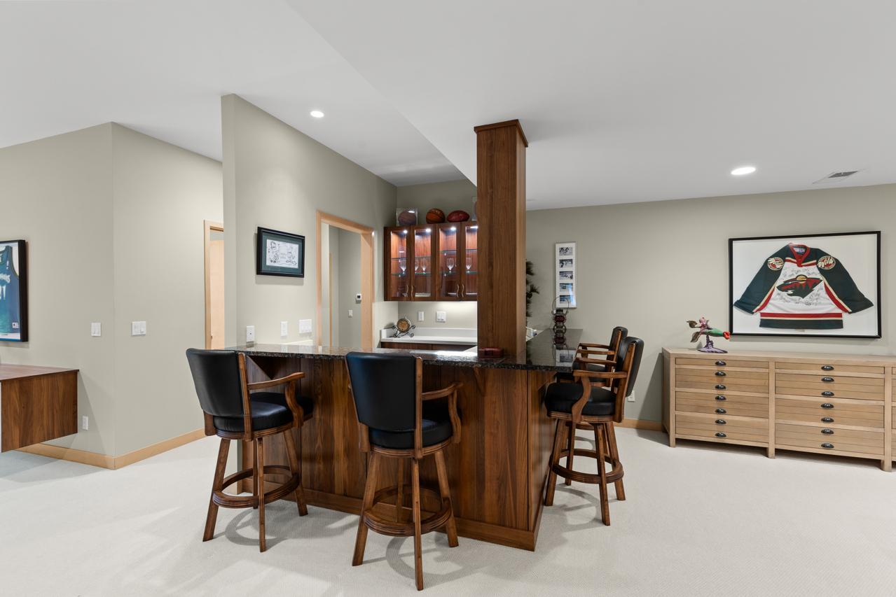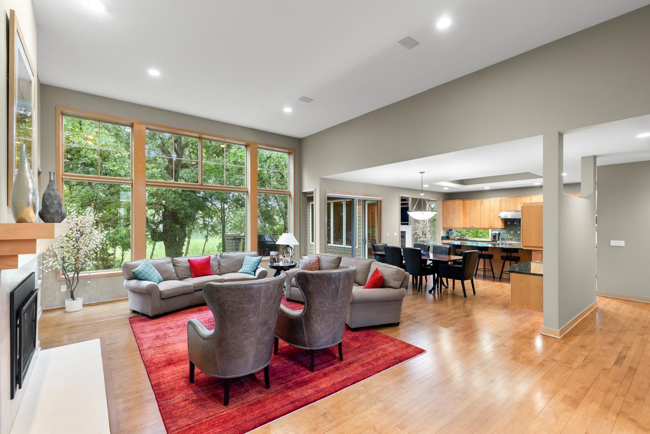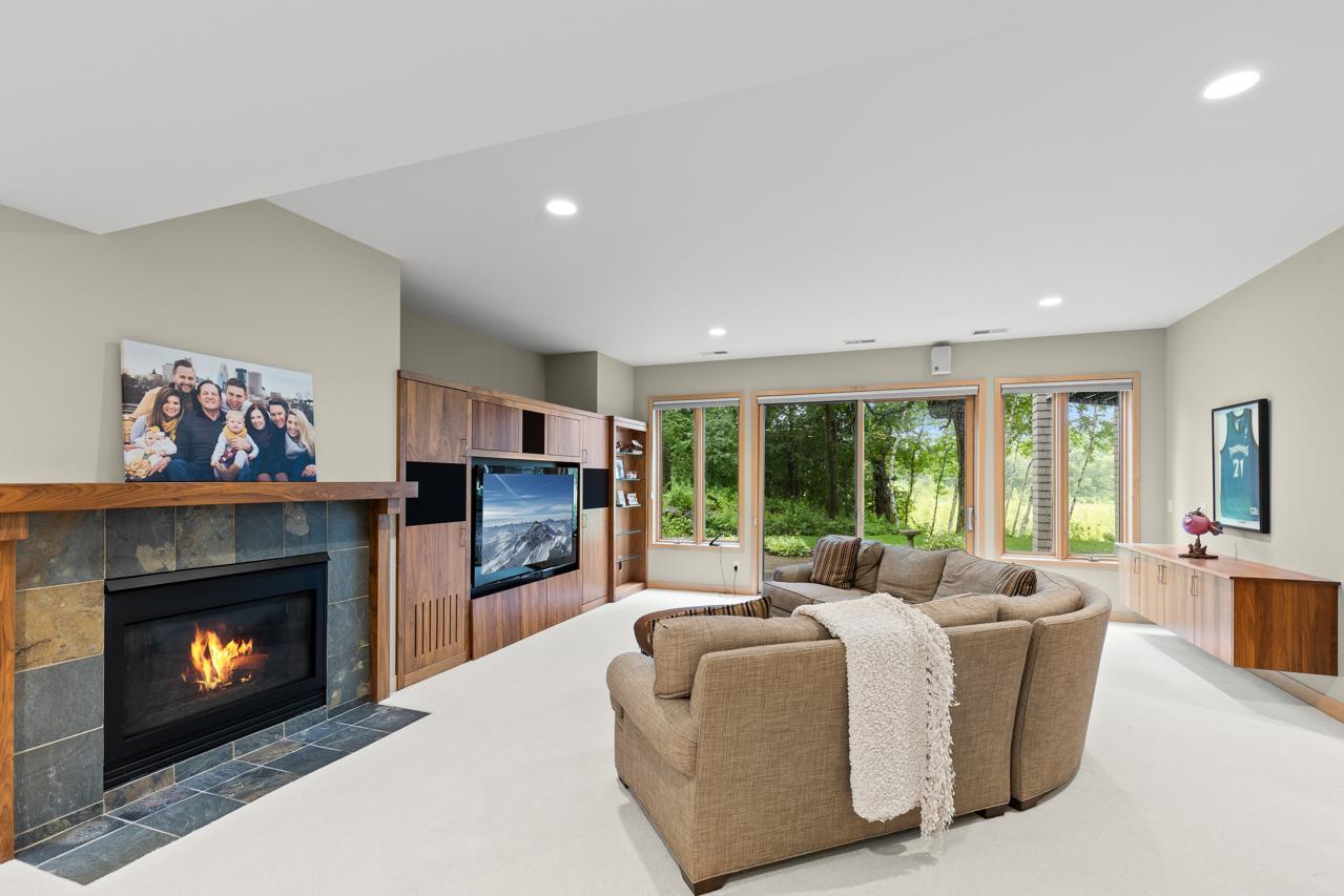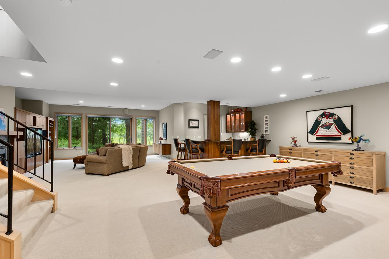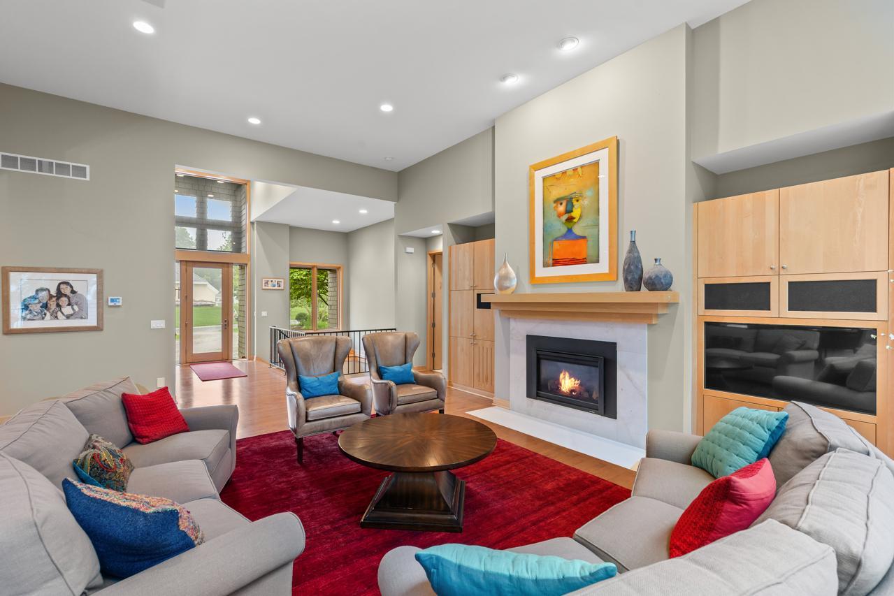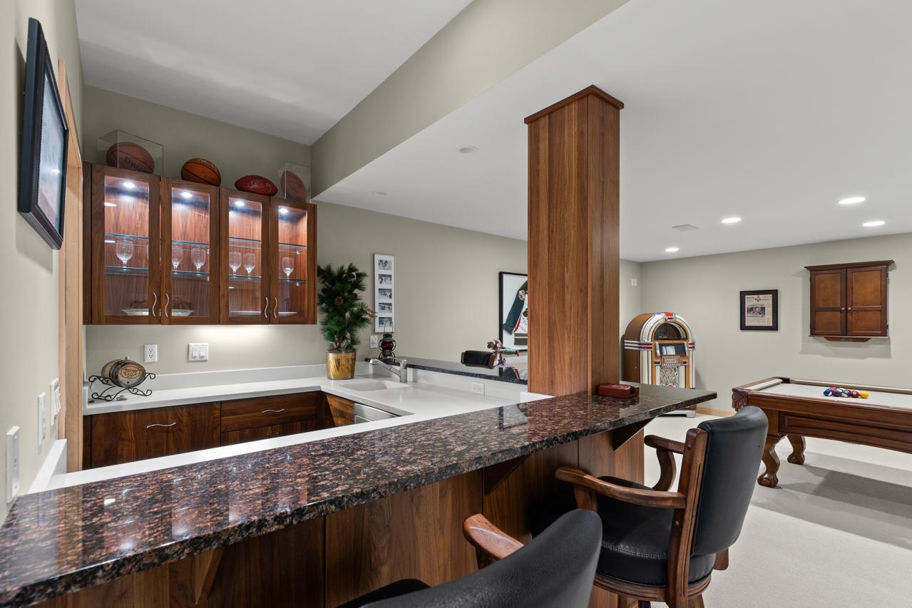 Stunning One-Story Walkout in Bearpath’s Gated Community. Nestled on a wooded lot overlooking a rare cranberry bog, this soft contemporary home offers the perfect blend of privacy, natural beauty, and modern living. With 4 bedrooms and 4 bathrooms, this thoughtfully designed and meticulously maintained one-story walkout features an open, light-filled layout ideal for both everyday living and entertaining. The open-concept main level is filled with natural light and showcases expansive windows framing panoramic views. The inviting great room features a gas fireplace, custom built-ins, and flows effortlessly into the kitchen and informal dining area—creating an ideal space for both everyday living and entertaining. The kitchen is centered around a generous island and opens directly to a sunroom with a second fireplace, offering year-round comfort. A dedicated main-level office with built-in cabinetry provides a functional and private workspace, while the spacious primary suite includes dual vanities, a soaking tub, and a separate walk-in shower. Convenient main-floor laundry adds to the home’s thoughtful design. The walkout lower level includes three additional bedrooms, a generous family room with fireplace and built-ins, a full bar, wine cellar, and a versatile recreation area—ideal for a billiards table, games, or additional lounging. A rare 4-car garage adds exceptional value, while recent updates—including fresh interior paint and a new roof in summer 2024—ensure move-in readiness. Take in serene views and frequent visits from deer and wild turkeys, surrounded by the natural beauty and privacy of this exceptional setting. Truly one of a kind!