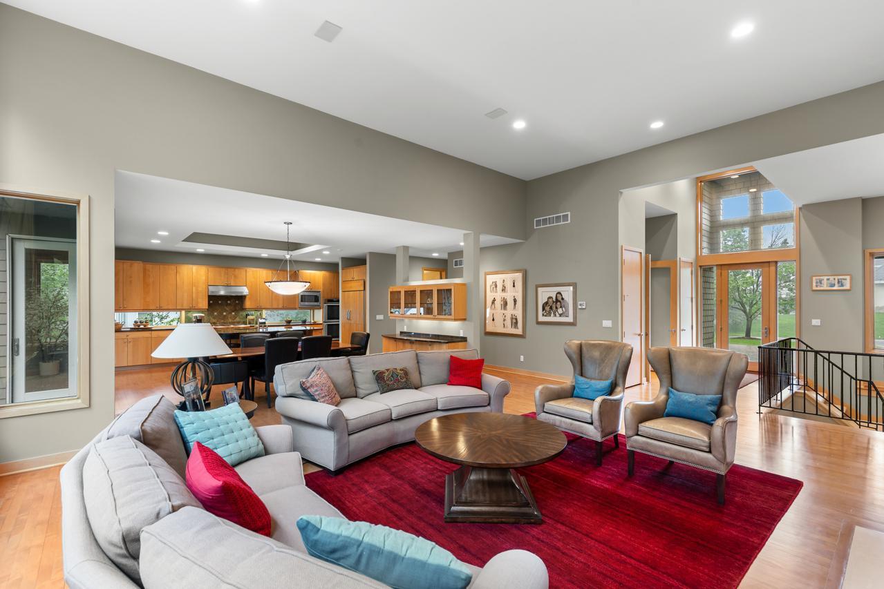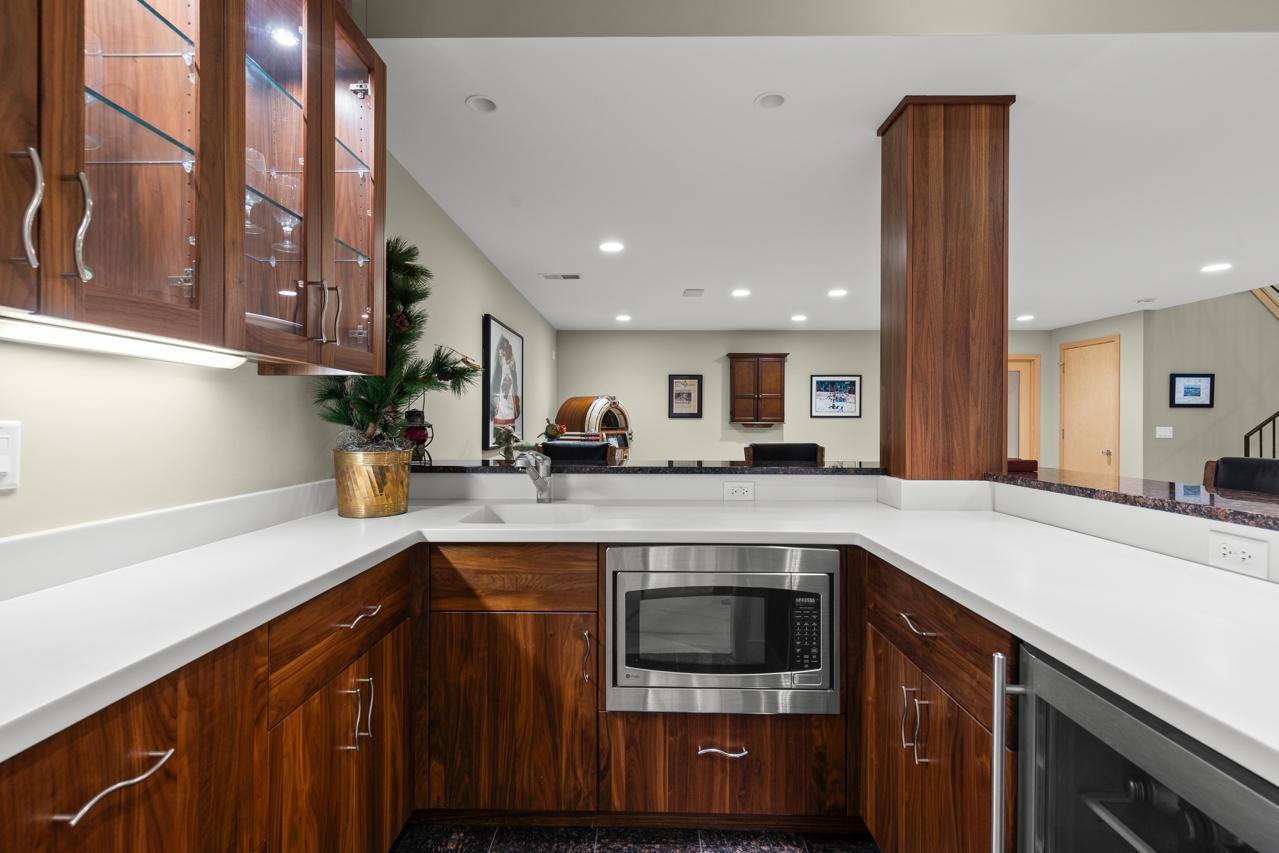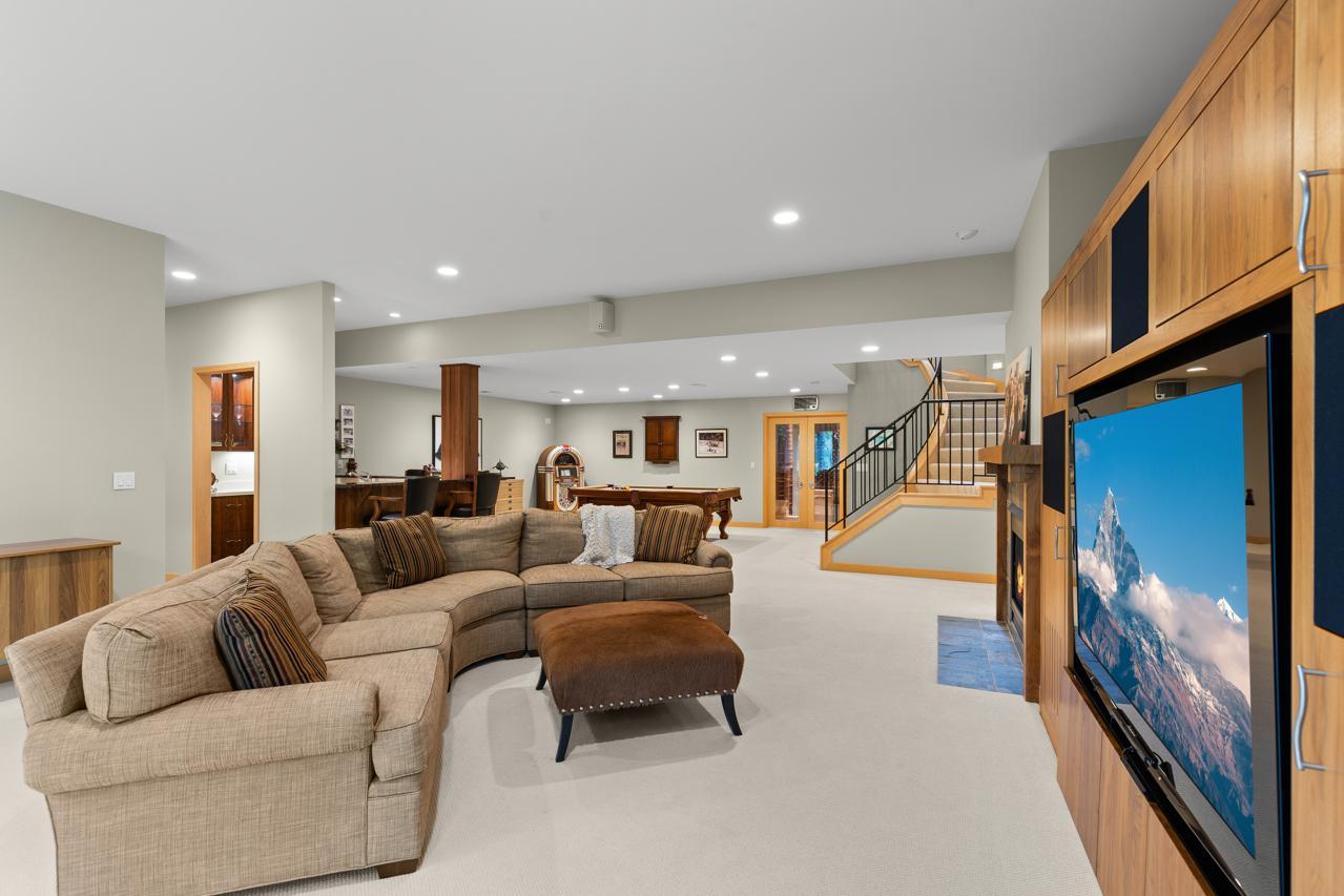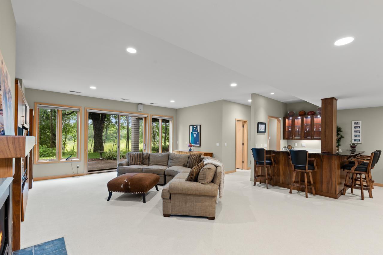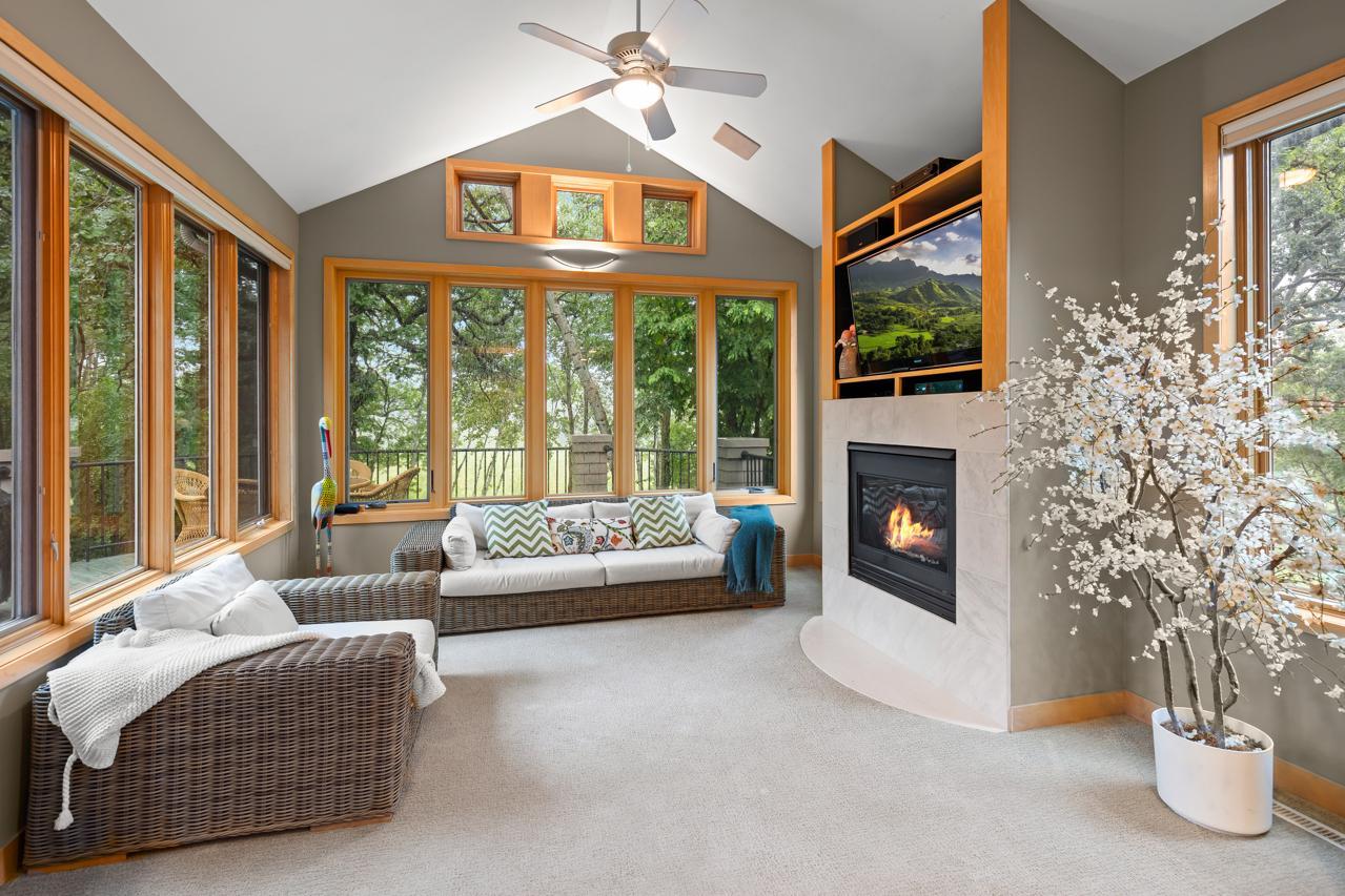 Stunning One-Story Walkout in Bearpath’s Gated Community. Nestled on a wooded lot overlooking a rare cranberry bog, this soft contemporary home offers the perfect blend of privacy, natural beauty, and modern living. With 4 bedrooms and 4 bathrooms, this thoughtfully designed and meticulously maintained one-story walkout features an open, light-filled layout ideal for both everyday living and entertaining. The open-concept main level is filled with natural light and showcases expansive windows framing panoramic views. The inviting great room features a gas fireplace, custom built-ins, and flows effortlessly into the kitchen and informal dining area—creating an ideal space for both everyday living and entertaining. The kitchen is centered around a generous island and opens directly to a sunroom with a second fireplace, offering year-round comfort. A dedicated main-level office with built-in cabinetry provides a functional and private workspace, while the spacious primary suite includes dual vanities, a soaking tub, and a separate walk-in shower. Convenient main-floor laundry adds to the home’s thoughtful design. The walkout lower level includes three additional bedrooms, a generous family room with fireplace and built-ins, a full bar, wine cellar, and a versatile recreation area—ideal for a billiards table, games, or additional lounging. A rare 4-car garage adds exceptional value, while recent updates—including fresh interior paint and a new roof in summer 2024—ensure move-in readiness. Take in serene views and frequent visits from deer and wild turkeys, surrounded by the natural beauty and privacy of this exceptional setting. Truly one of a kind!