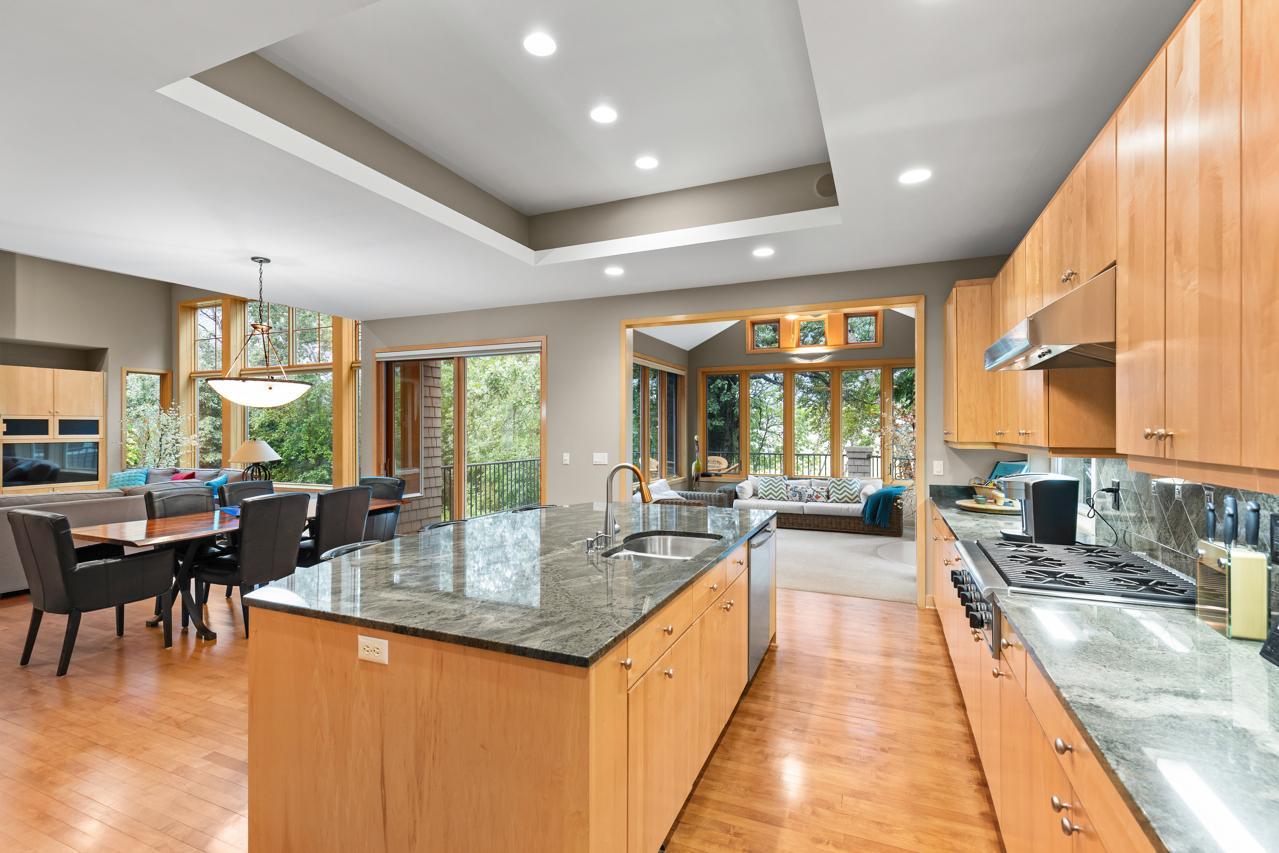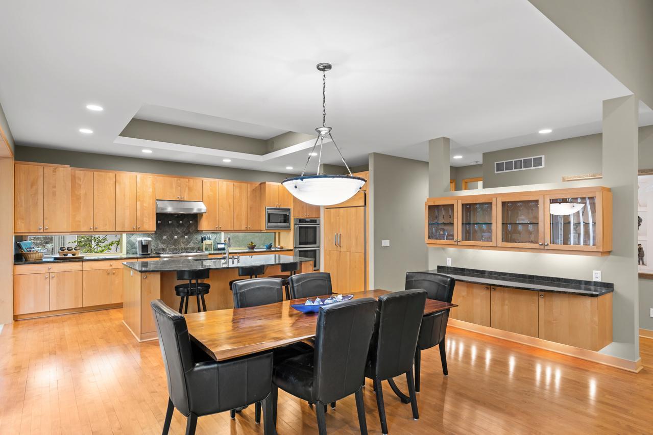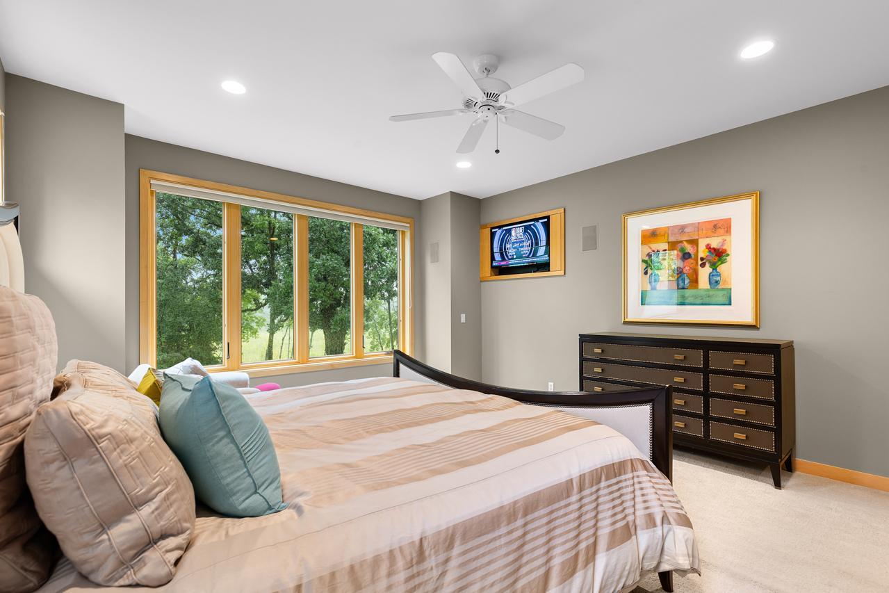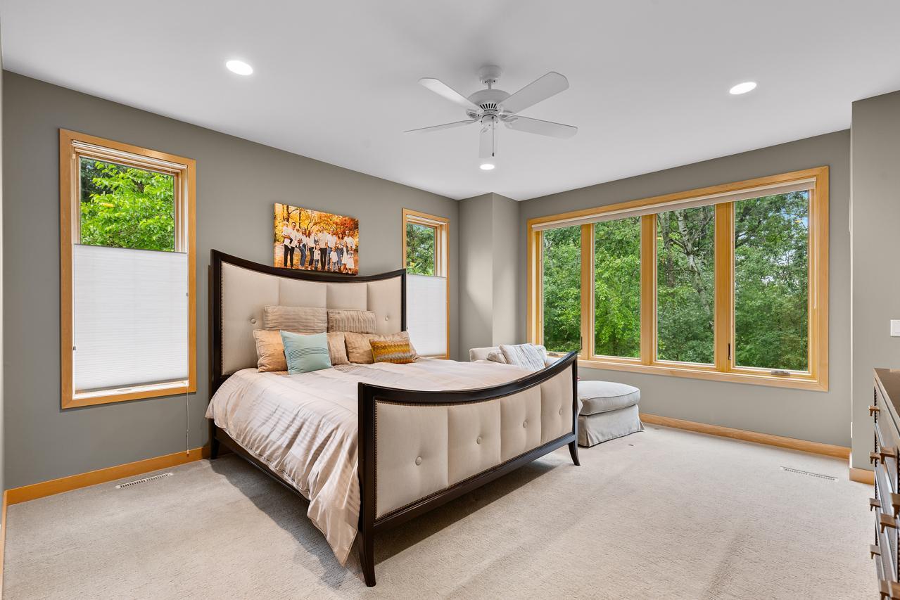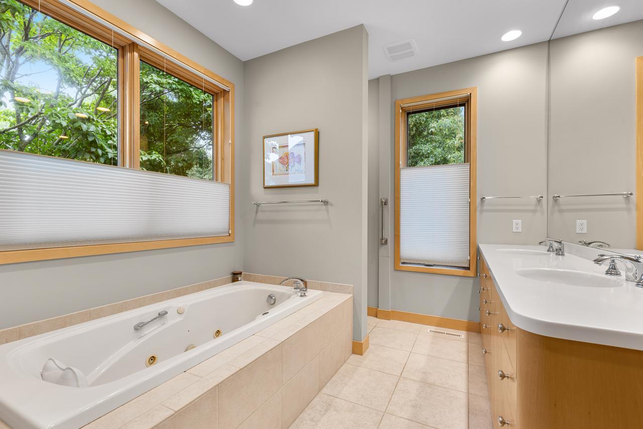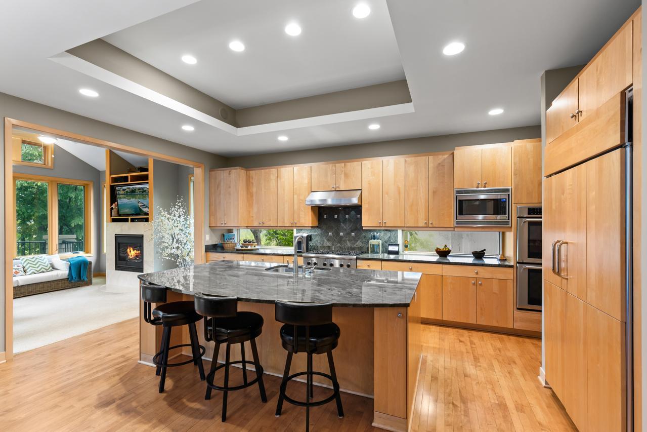 Stunning One-Story Walkout in Bearpath’s Gated Community. Nestled on a wooded lot overlooking a rare cranberry bog, this soft contemporary home offers the perfect blend of privacy, natural beauty, and modern living. With 4 bedrooms and 4 bathrooms, this thoughtfully designed and meticulously maintained one-story walkout features an open, light-filled layout ideal for both everyday living and entertaining. The open-concept main level is filled with natural light and showcases expansive windows framing panoramic views. The inviting great room features a gas fireplace, custom built-ins, and flows effortlessly into the kitchen and informal dining area—creating an ideal space for both everyday living and entertaining. The kitchen is centered around a generous island and opens directly to a sunroom with a second fireplace, offering year-round comfort. A dedicated main-level office with built-in cabinetry provides a functional and private workspace, while the spacious primary suite includes dual vanities, a soaking tub, and a separate walk-in shower. Convenient main-floor laundry adds to the home’s thoughtful design. The walkout lower level includes three additional bedrooms, a generous family room with fireplace and built-ins, a full bar, wine cellar, and a versatile recreation area—ideal for a billiards table, games, or additional lounging. A rare 4-car garage adds exceptional value, while recent updates—including fresh interior paint and a new roof in summer 2024—ensure move-in readiness. Take in serene views and frequent visits from deer and wild turkeys, surrounded by the natural beauty and privacy of this exceptional setting. Truly one of a kind!