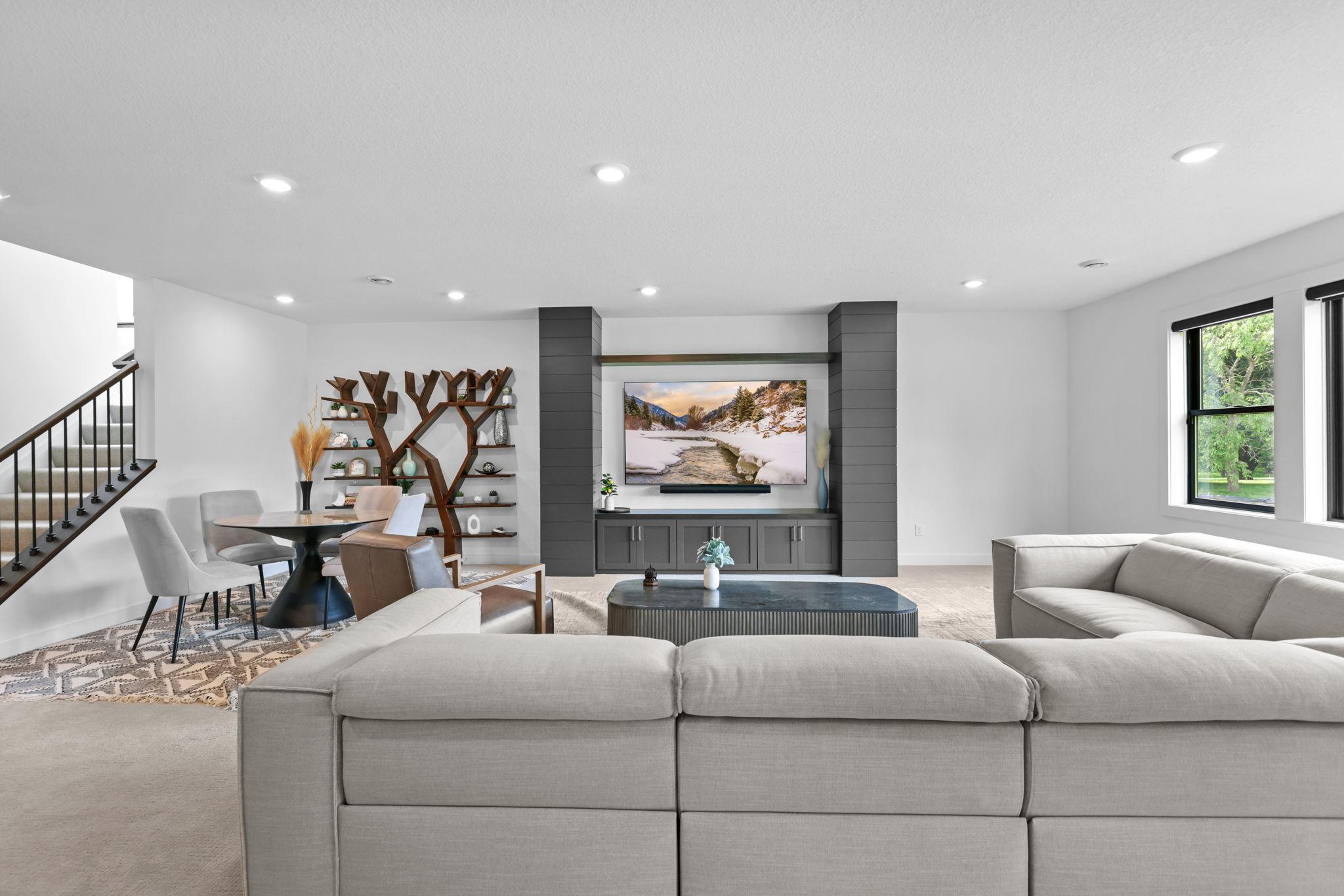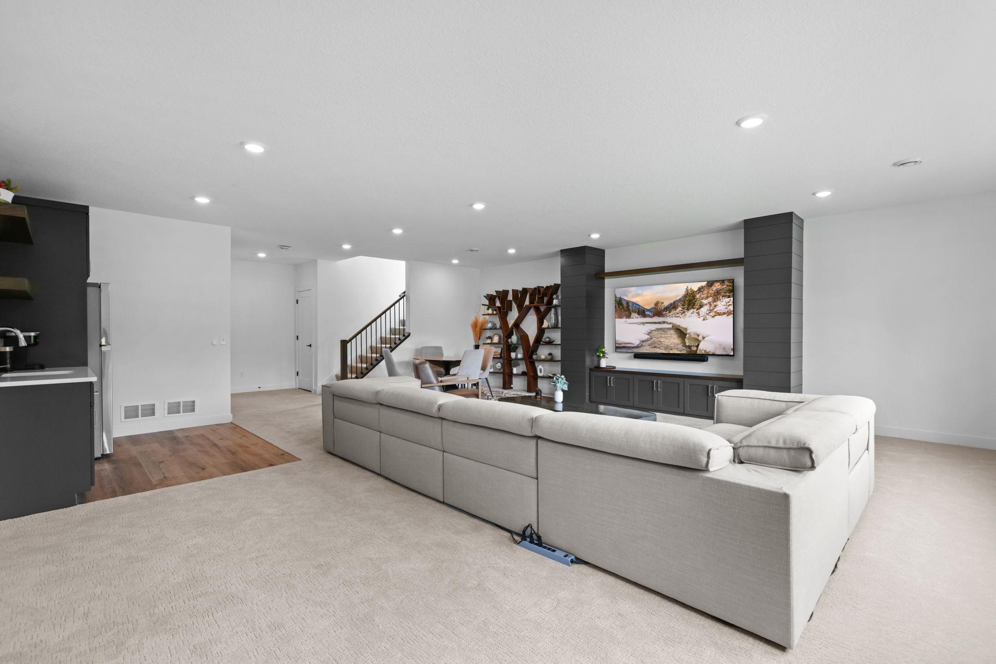 This beautifully finished three-level home offers 5 bedrooms, 5 bathrooms, a main-floor office, and a bright sunroom—perfect for work and relaxation. The expansive lower level features a spacious recreation room, dedicated exercise space, a stylish bar area, and an impressive indoor sport court ideal for year-round fun. Built along the desirable west side of Iron Horse, enjoy peaceful views of the treeline and sunsets from your backyard. Constructed with quality in mind, including James Hardie siding and Andersen windows—both signature Kootenia standards. A true blend of luxury, function, and comfort