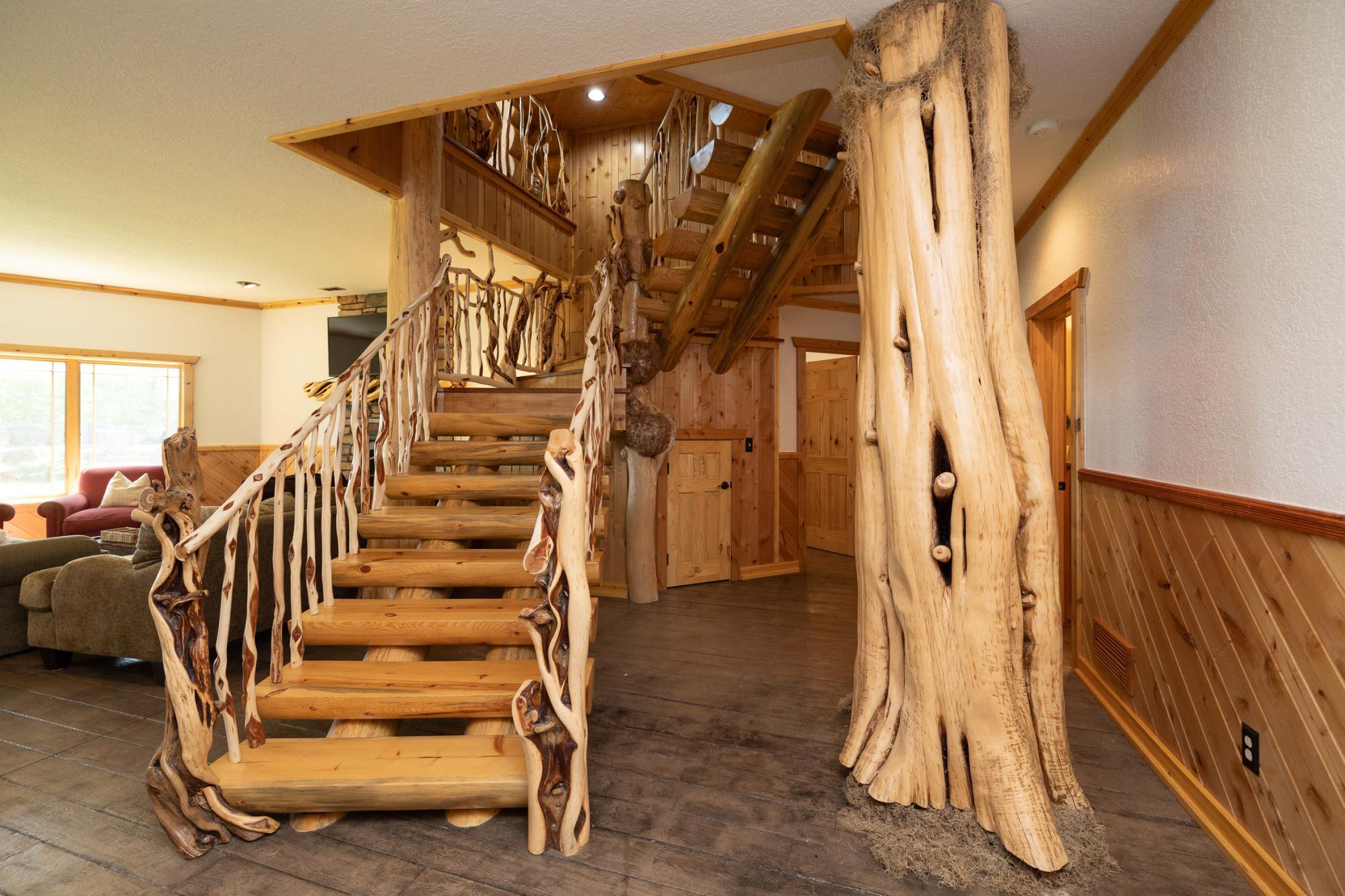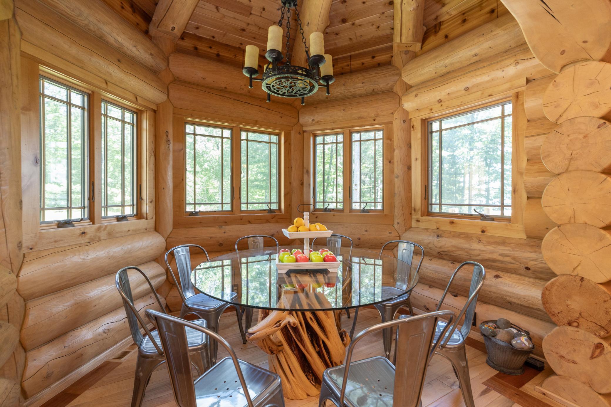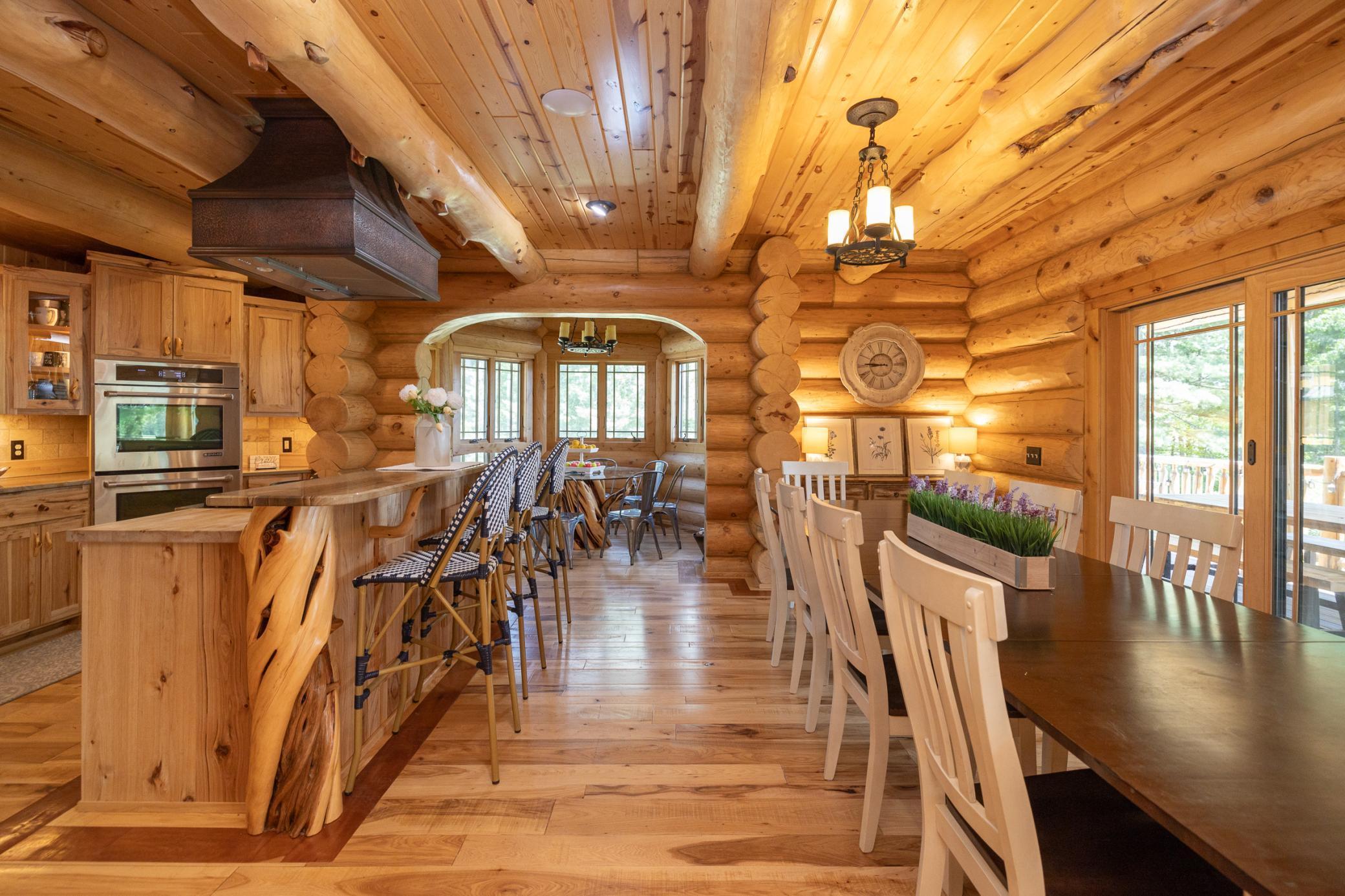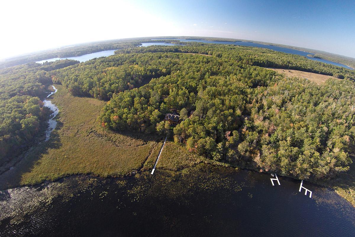 Enjoy the peace and solitude of your very own private oasis while you create generations of memories at this log home estate situated on approximately 40 acres with approximately 1100 feet of lakeshore. Just a short drive from downtown Hayward this custom built log home exemplifies world class craftsmanship, attention to detail, and innovation taken to new heights. The log home boasts over 4000 finished sq. feet, 4 bedrooms, 4 baths, a state of the art kitchen, stunning living room with floor to ceiling windows overlooking the lake, multiple decks, finished walkout lower level with in-floor heat, family room with fireplace, separate bar room with game area, and so much more. In addition to this, the oversized two car detached garage features a separate living quarter complete with living room ,kitchen, bedroom and bath. See supplements for a complete list of features and highlights.