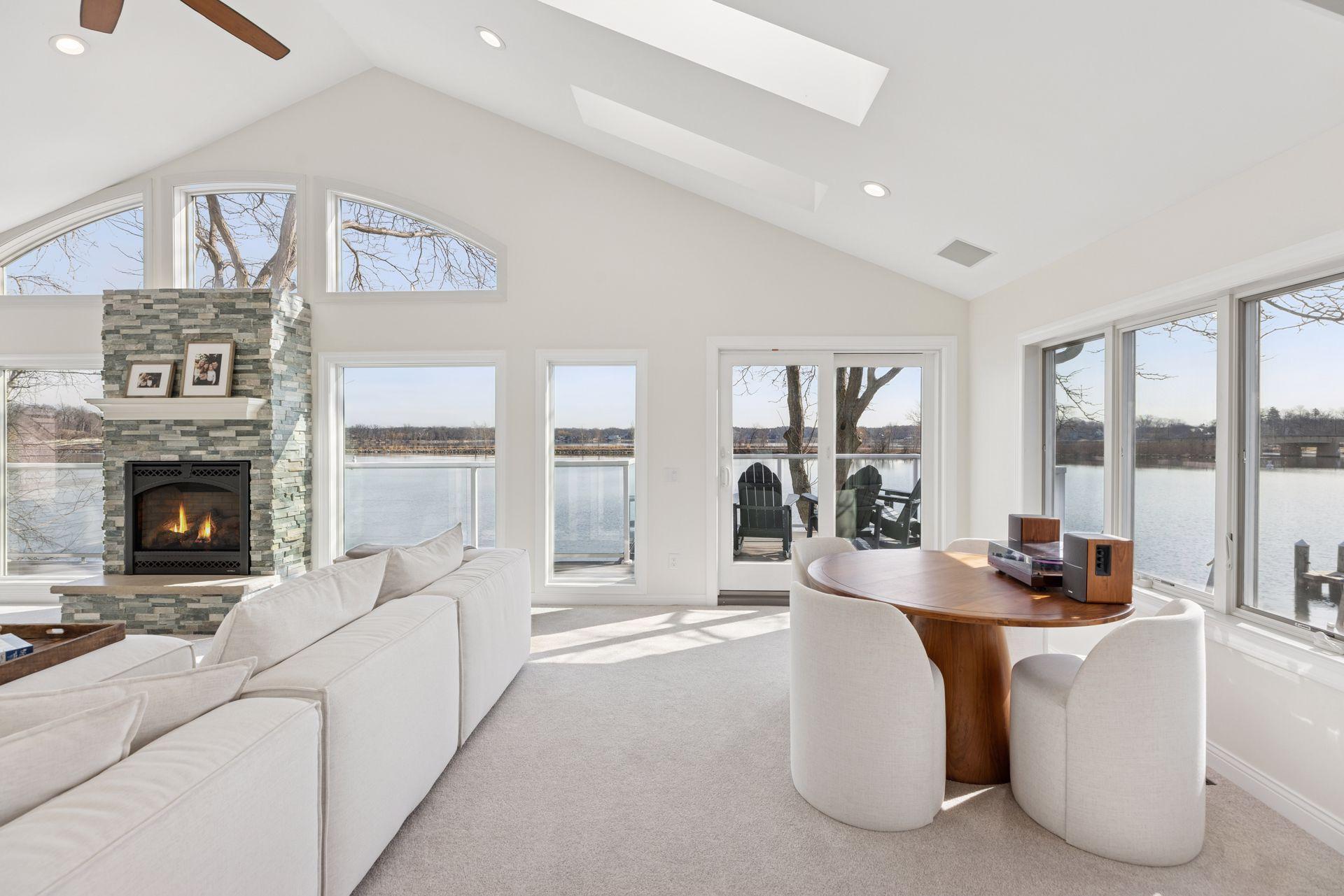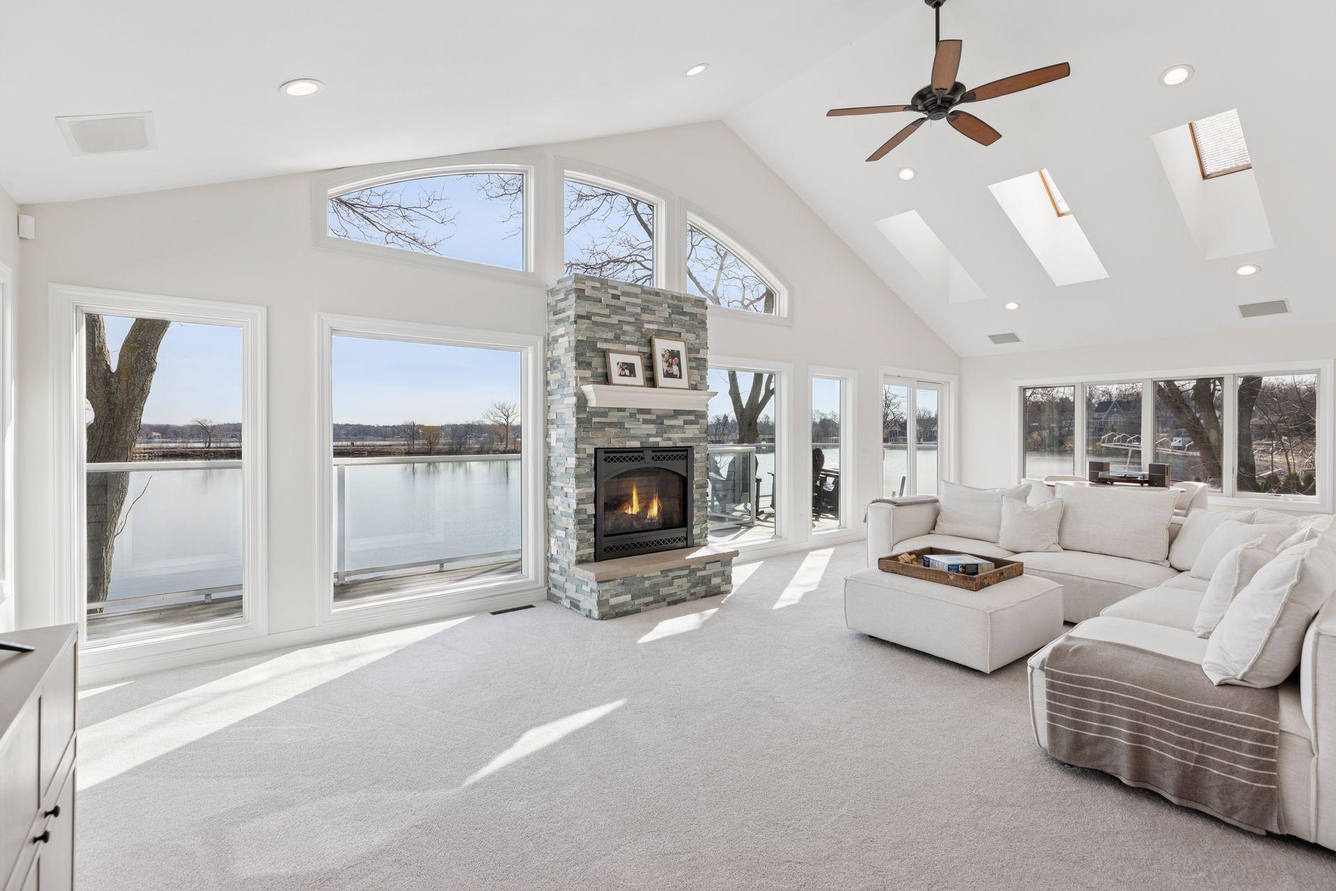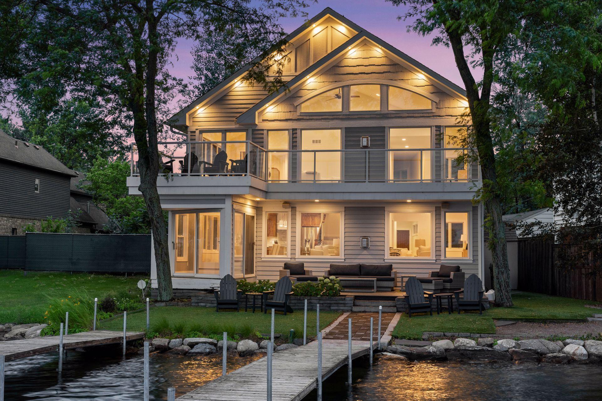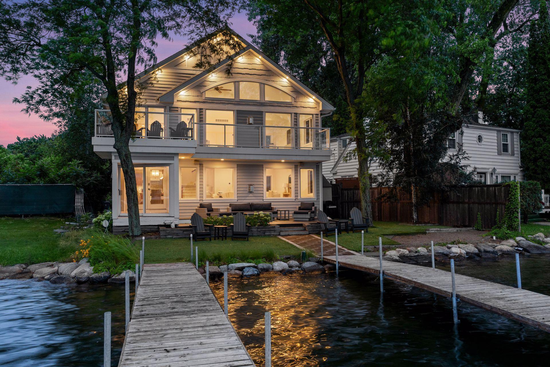 Incredible East-facing setting with private views across minimum wake section of Wayzata Bay. Enjoy a beautifully remodeled two story home with walls of windows framing lake views throughout. The main level great room provides ideal indoor-outdoor flow with walkout access to the deck which is just steps from the rip rap shore. The upper level hosts a spacious and vaulted family room with access to another lakeside deck. A primary suite sits just beyond the family room and offers a walk-in closet and spa-like bathroom with double vanity. Two junior bedroom, a full bath and laundry round out the upper level.