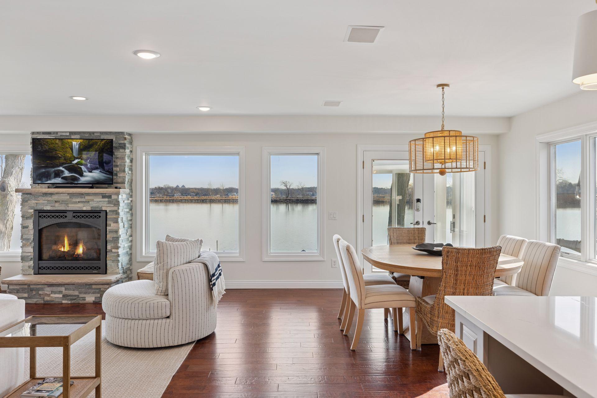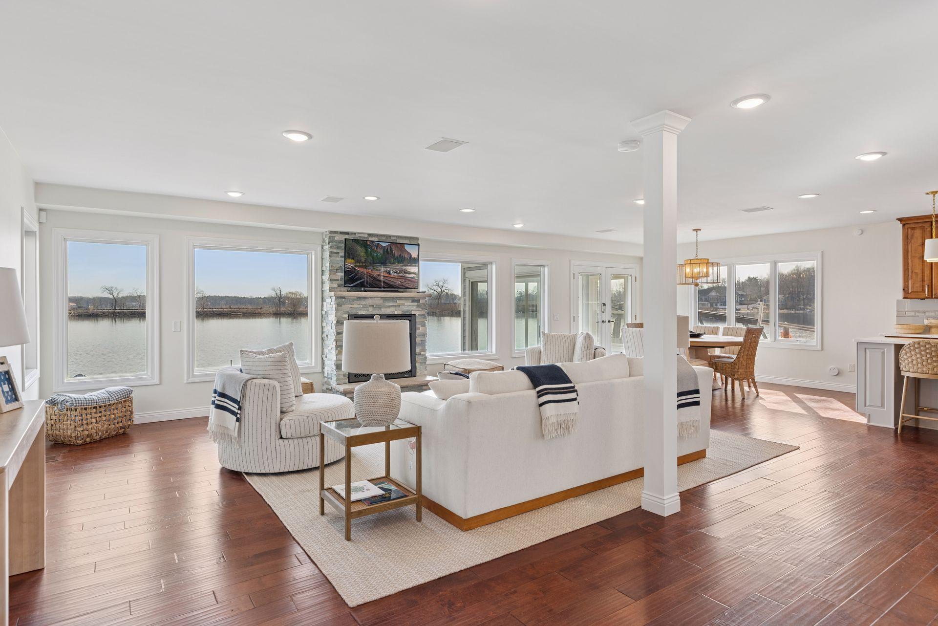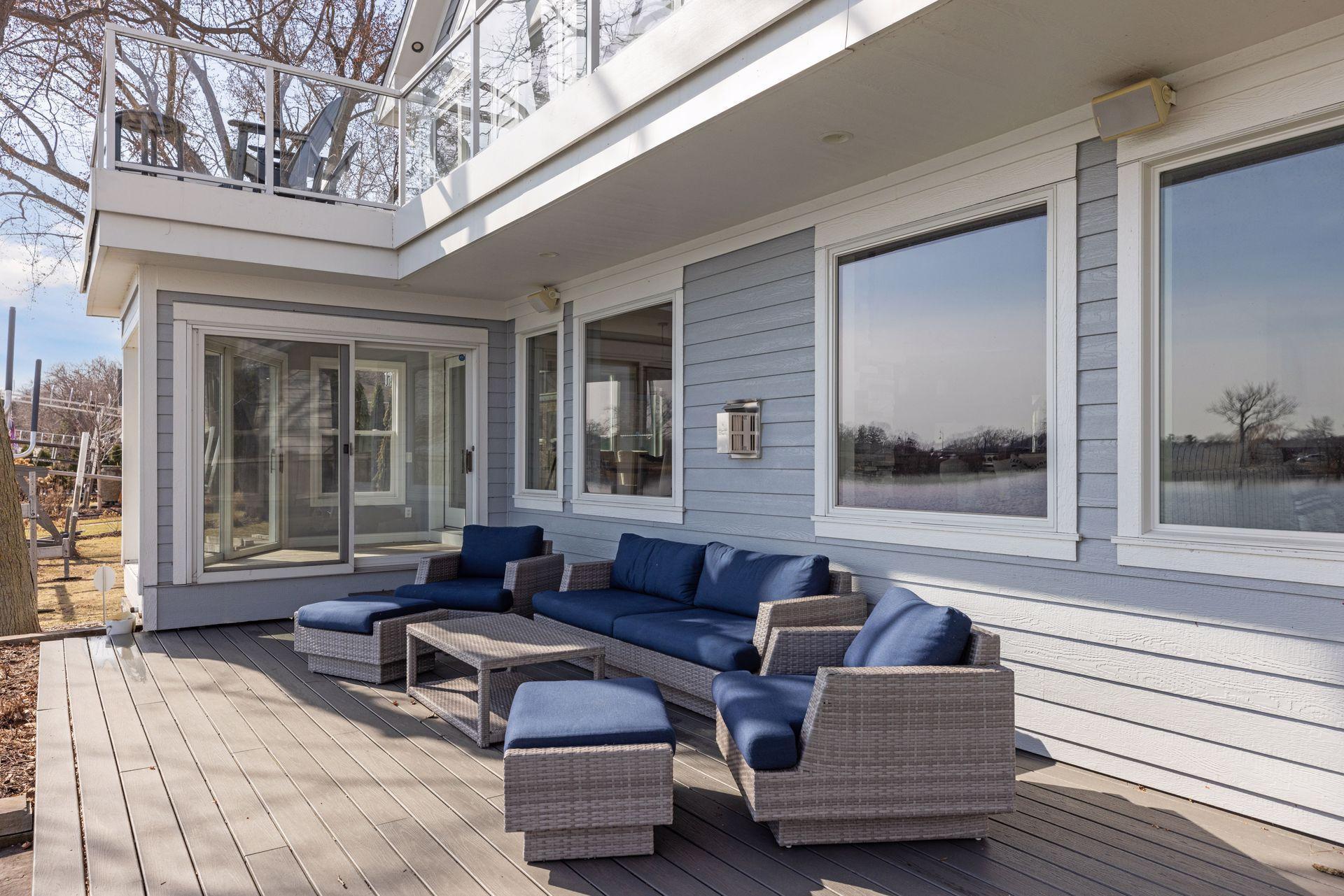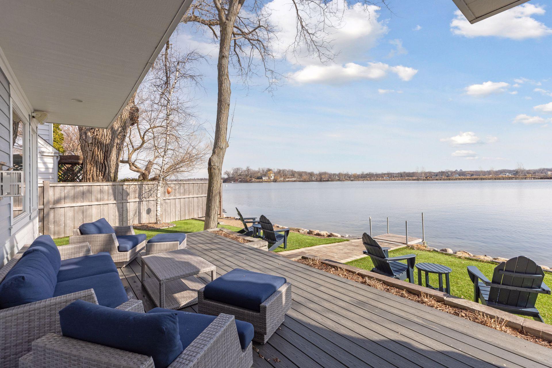 Incredible East-facing setting with private views across minimum wake section of Wayzata Bay. Enjoy a beautifully remodeled two story home with walls of windows framing lake views throughout. The main level great room provides ideal indoor-outdoor flow with walkout access to the deck which is just steps from the rip rap shore. The upper level hosts a spacious and vaulted family room with access to another lakeside deck. A primary suite sits just beyond the family room and offers a walk-in closet and spa-like bathroom with double vanity. Two junior bedroom, a full bath and laundry round out the upper level.