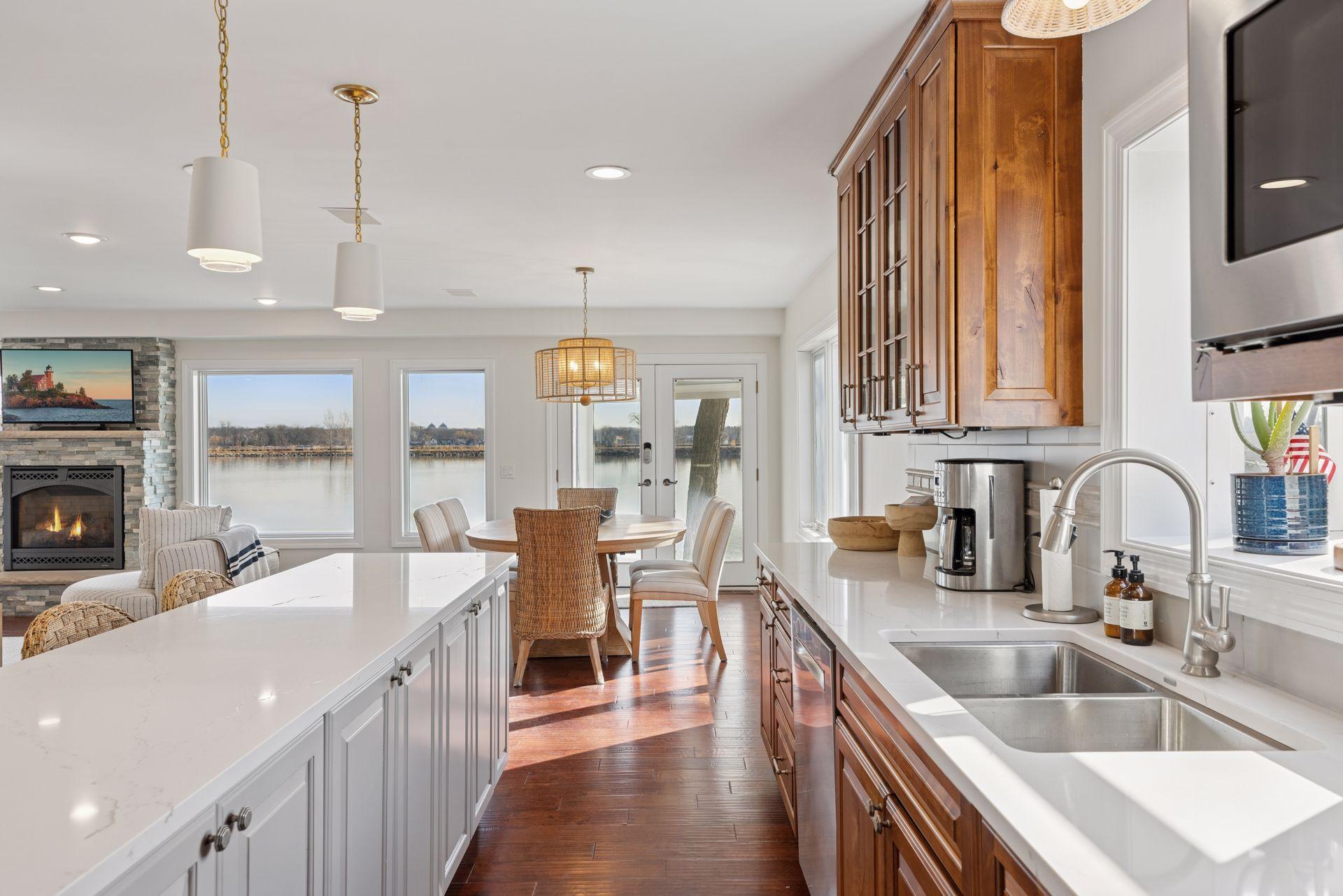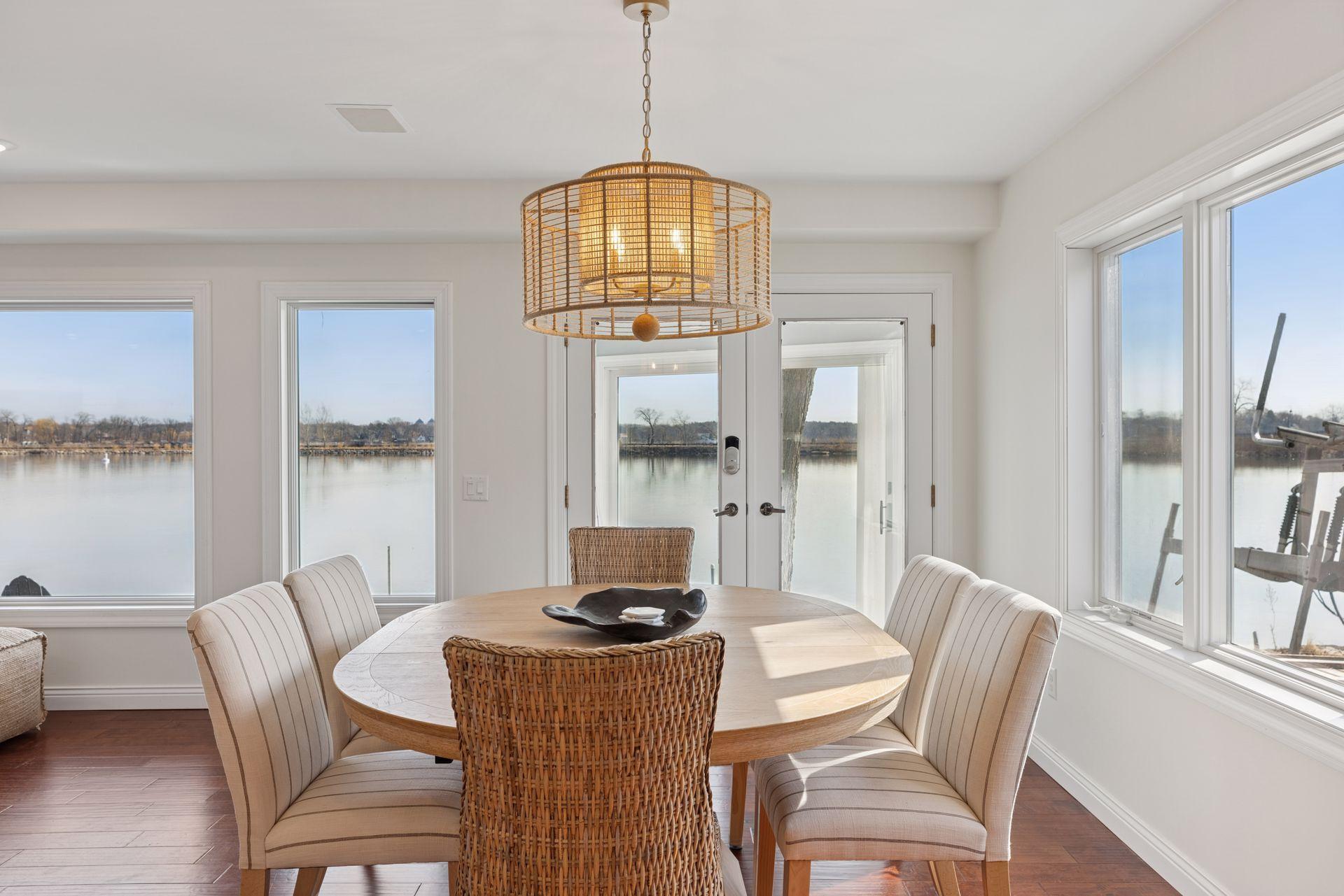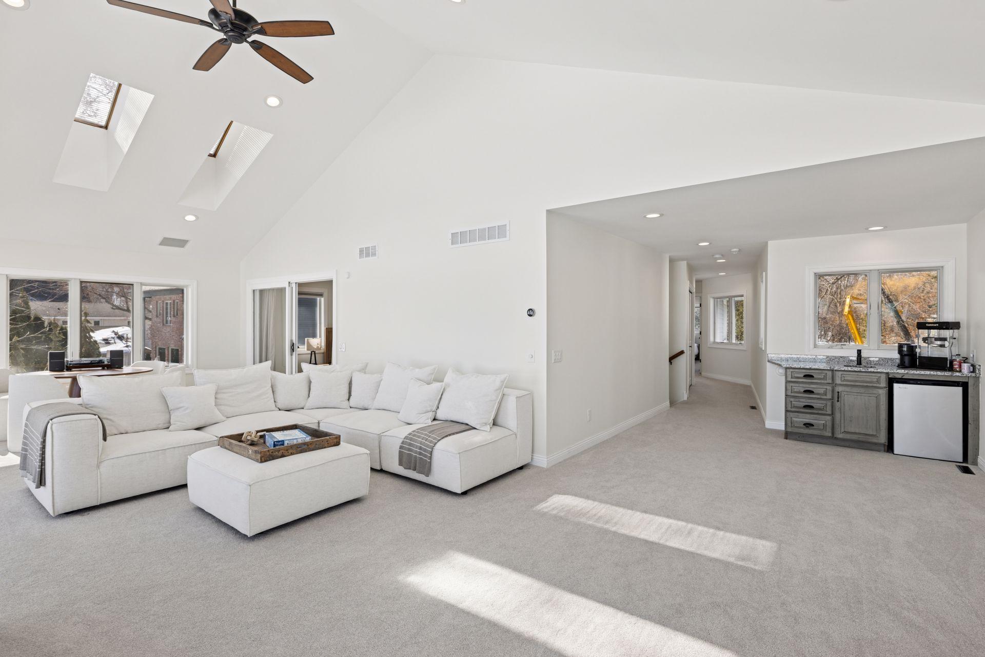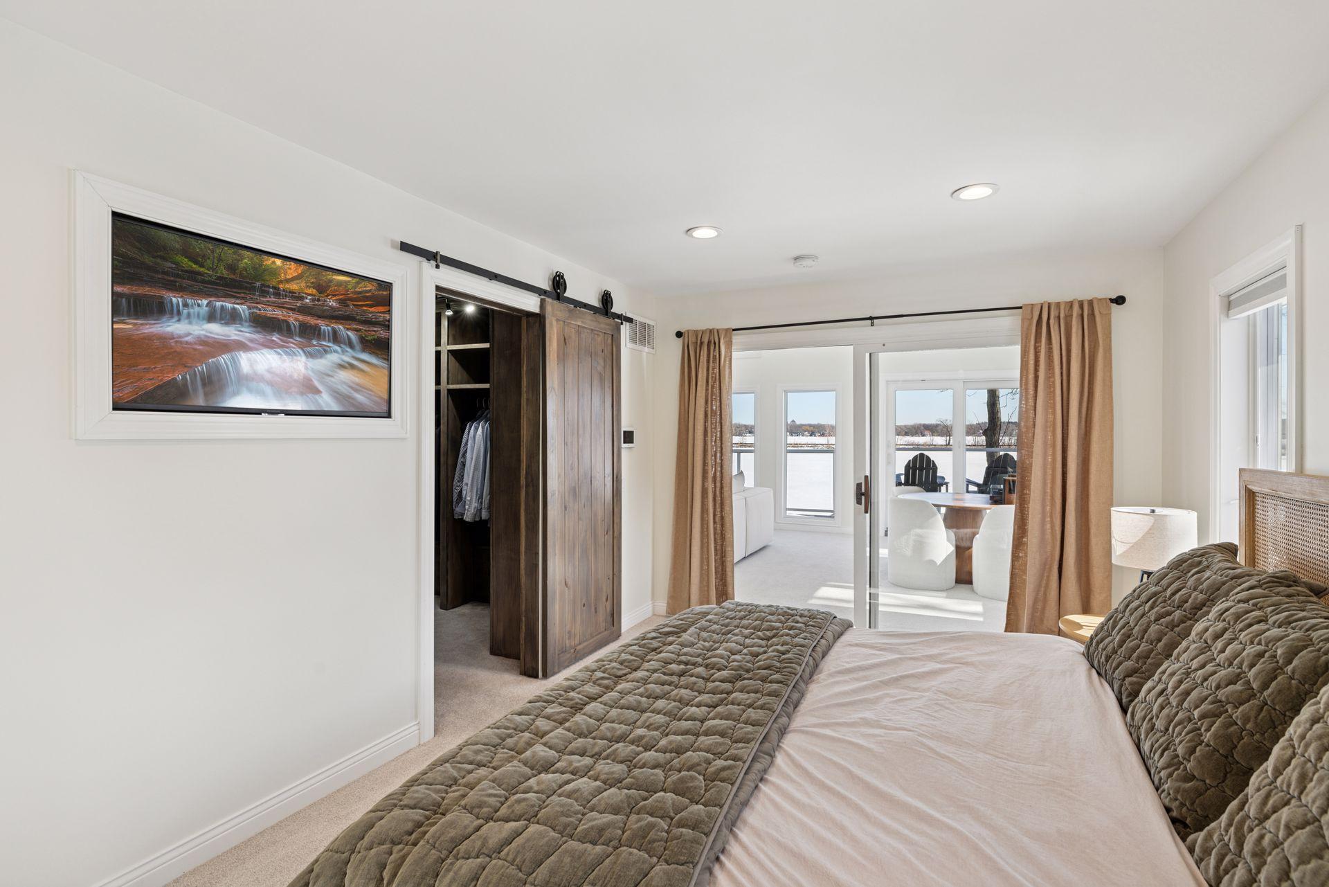 Incredible East-facing setting with private views across minimum wake section of Wayzata Bay. Enjoy a beautifully remodeled two story home with walls of windows framing lake views throughout. The main level great room provides ideal indoor-outdoor flow with walkout access to the deck which is just steps from the rip rap shore. The upper level hosts a spacious and vaulted family room with access to another lakeside deck. A primary suite sits just beyond the family room and offers a walk-in closet and spa-like bathroom with double vanity. Two junior bedroom, a full bath and laundry round out the upper level.