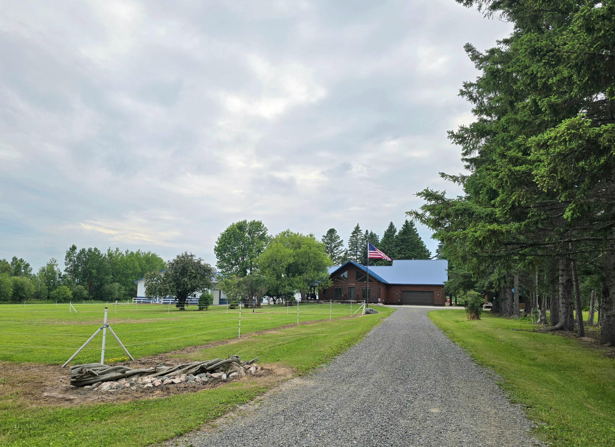 Situated in beautiful northern MN is 102-acre equestrian lover’s dream! This incredible property features pastures, automatic waterers, a heated 4-stall barn, heated garage/shop, cold storage with an RV or equipment bay, and a fully equipped & self-sustaining guest house, with a covered patio and a fenced area for dogs. Attached to the guest house is your own private fish and game processing room. The 2500+ sq ft home includes in-floor heat throughout, with a full basement, attached, heated garage and an additional guest apartment with ¾ bath above the garage. All buildings have their own secure access, surveillance and internet, making this a potential turnkey VRBO investment property. The main home has an executive yet warm feel, with a large primary en-suite, formal dining, top of the line cabinets, appliances, windows, flooring and fixtures. No expense spared! The house has newly installed items that include a new front door, composite decking, LED lighting, and a new HVAC system. Rebuild cost is over $3 million. What an incredible value here! Located in Koochiching county near Voyageurs National Park, Lake Kabetogama and Rainy Lake. See list of updates and features included with the disclosures.