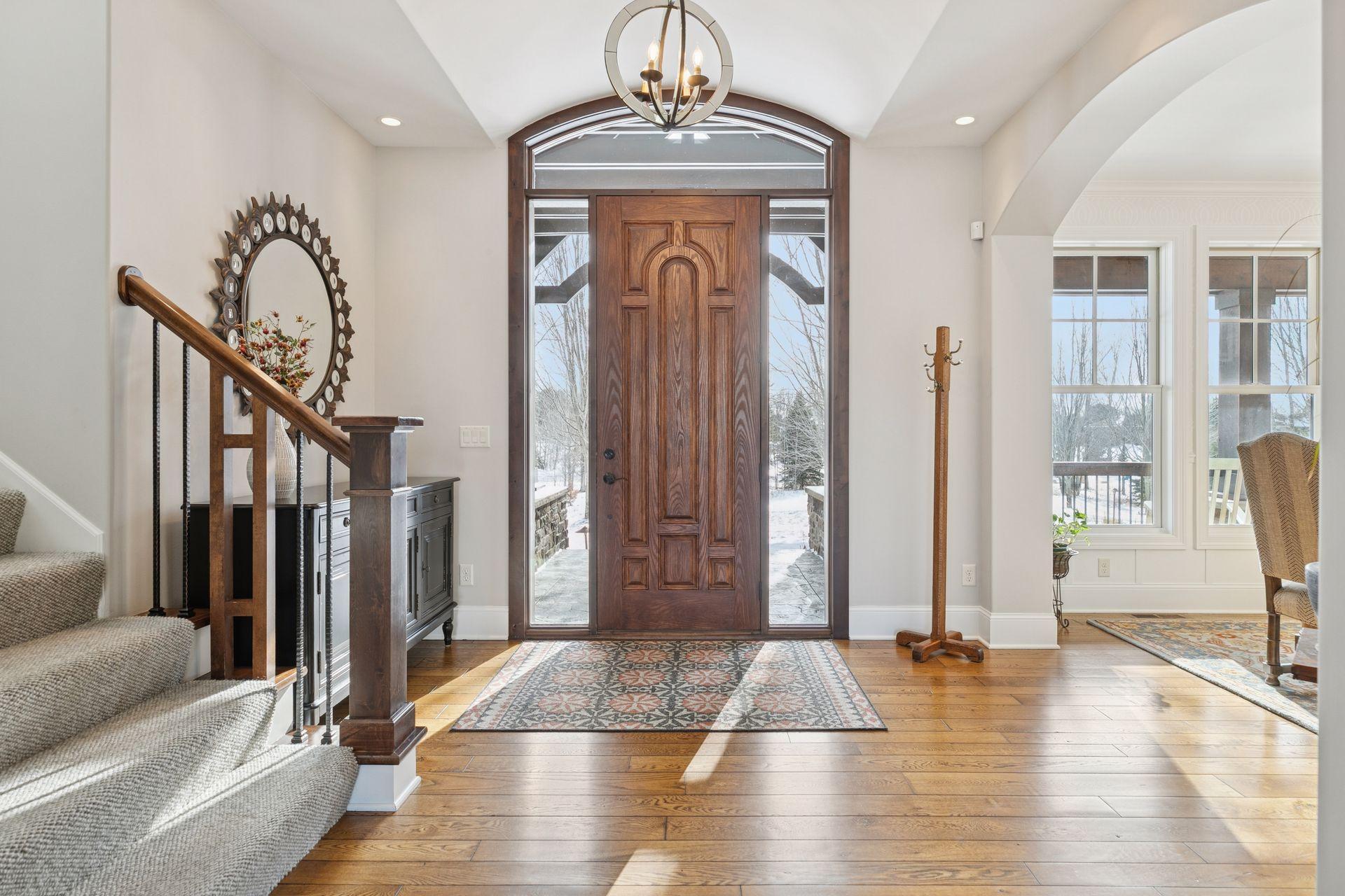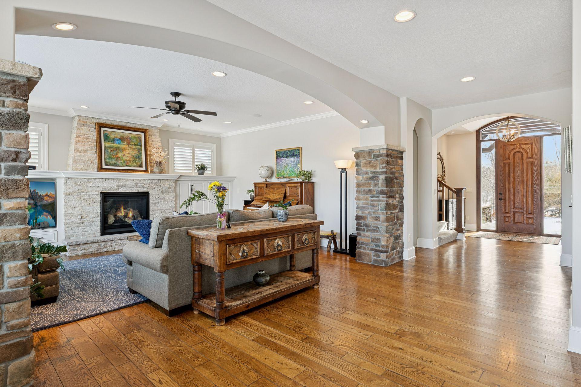 Custom-built by Landucci Homes, this extraordinary estate is nestled on 2.5 private acres in the highly sought-after Galway community, offering a rare blend of luxury, craftsmanship, and resort-style living. Designed with exceptional attention to detail, this superior home showcases high-end finishes throughout and a spectacular backyard pool oasis complete with a large paver patio and a stunning pool house featuring a bathroom, storage a vaulted ceiling and gorgeous wood detailing. A striking front elevation welcomes you with a beautiful porch and stamped concrete walkway, setting the tone as you enter the home. Rich wood floors span the main level, complemented by newly painted enamel trim and an open, flowing floor plan ideal for both everyday living and entertaining. The gourmet kitchen is a showstopper, featuring Wolf and Sub-Zero appliances (2024), a walk-in pantry, and new quartz countertops (2025). Three fireplaces throughout the home add warmth and ambiance, while the vaulted screen porch off the kitchen is perfect for enjoying warm summer evenings. The upper level offers four bedrooms, including a luxurious primary suite designed as a true retreat, featuring a spa-like bathroom with fireplace, in-floor heat, and dual walk-in closets. Additional highlights include an upper-level laundry room, a private guest suite with its own bathroom, and a Jack-and-Jill bathroom. A unique and highly desirable feature is the separate upper-level private office and great room, accessible by its own entrance—ideal for a home business, nanny quarters, or private guest accommodations. The walkout lower level is an entertainer’s dream, boasting a full bar with beautiful stonework and granite countertops, a home theater with raised seating, wine cellar, game area, fifth bedroom, and additional bathroom. Additional features include multi-zone heating, a heated garage with epoxy flooring, central vacuum system, wool carpet added in 2021, pool cover (2023), furnace (2024), and fenced garden beds for farm-to-table living. This home reflects an exceptional level of quality, thoughtful design, and pride of ownership throughout. A rare opportunity to own a truly remarkable property in one of the area’s most desirable communities.