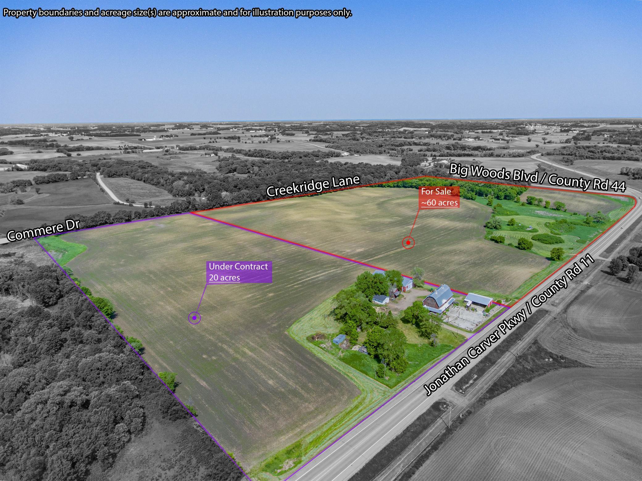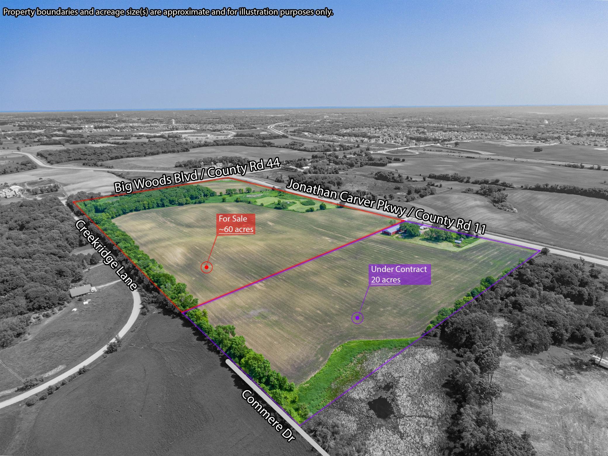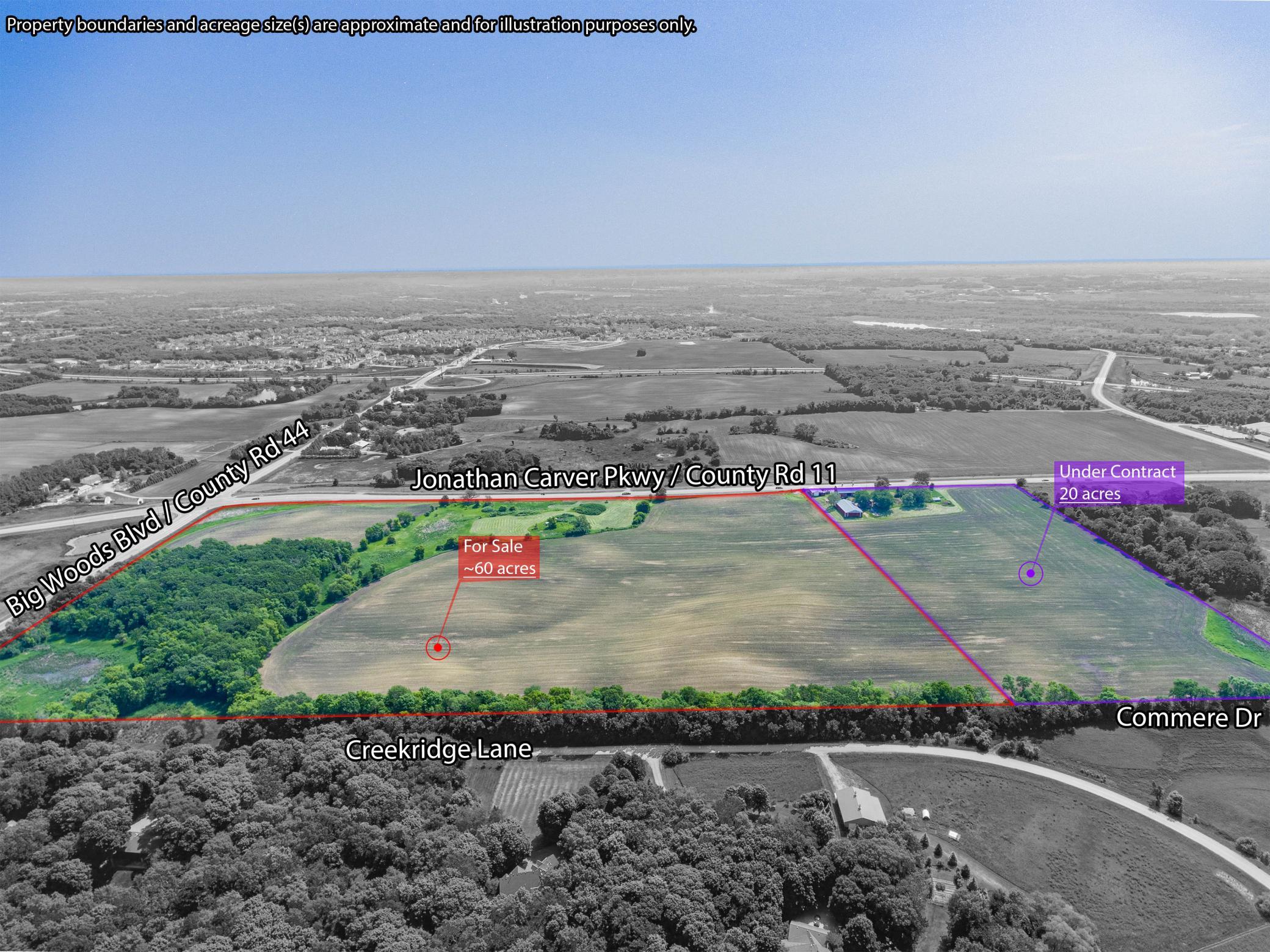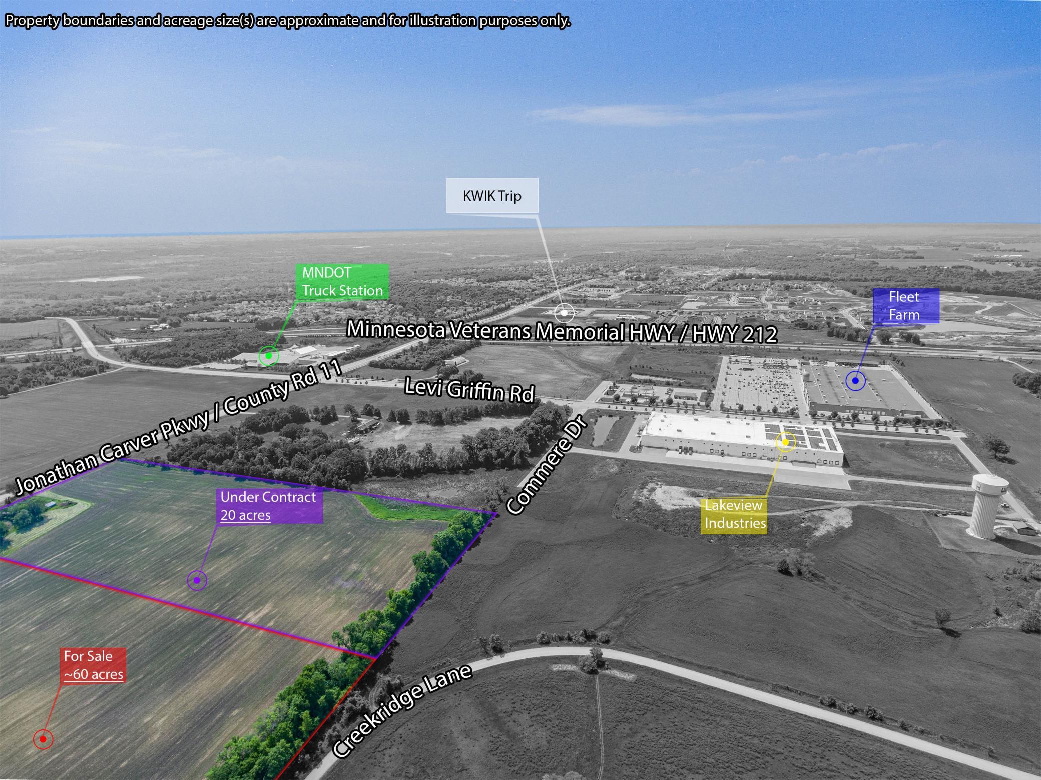 60 Acres - Further Subdivisions are Possible, Call for Details! Excellent Commercial Location! Development Opportunity with Easy Access to Highway 212 and Visibility Along Jonathan Carver Parkway/CR-11. Property is Part of City of Carver's Comprehensive Plans and is Zoned Commercial. Additional Road Access to the North Along CR-44 and Southwest with Future Expansion of Commerce Rd. Established Commercial Neighbors Include Fleet Farm and Lakeview Industries