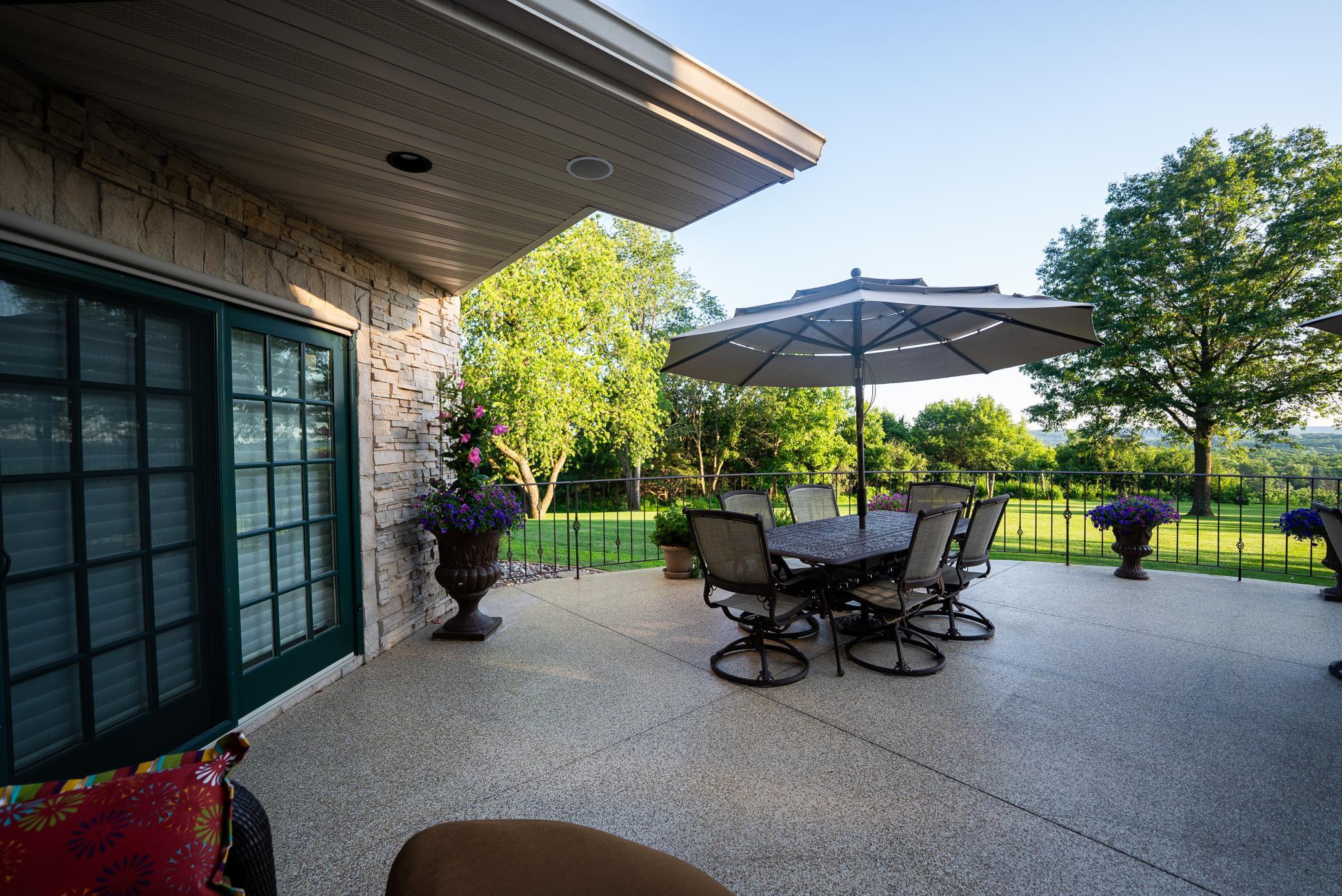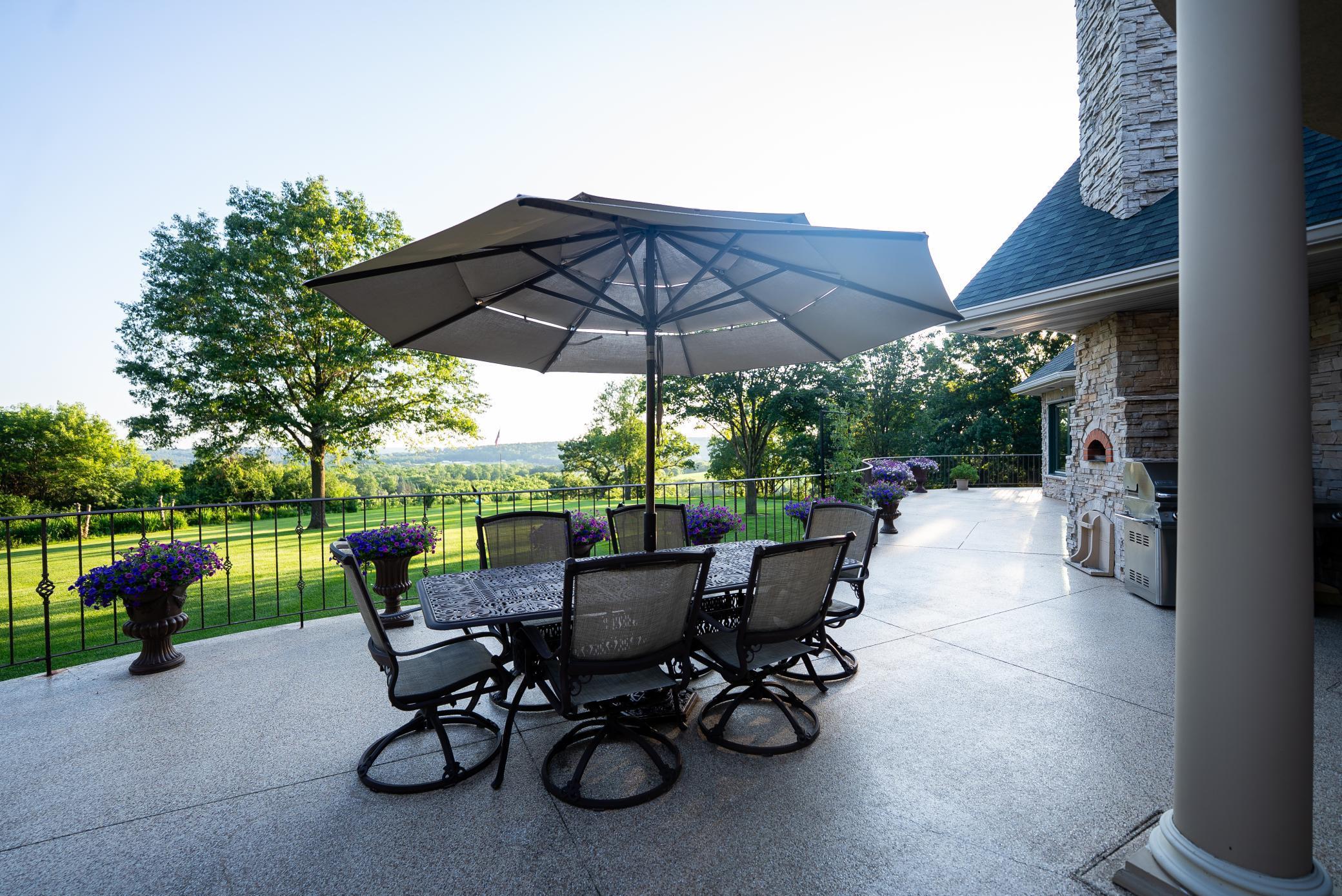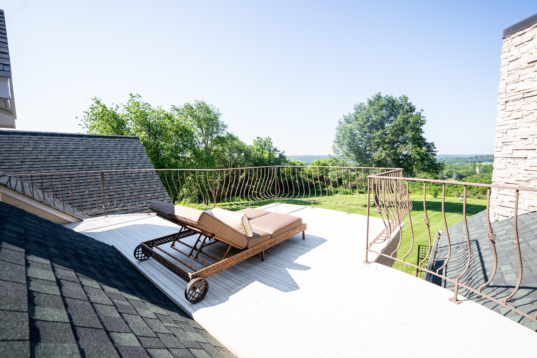 Redtail Ridge Executive Estate on 48+ Private Acres | Unmatched Luxury, Privacy & Scenic Beauty Perched atop a secluded ridge and accessed by a gated, lighted, asphalt driveway, Redtail Ridge is an extraordinary executive retreat nestled on over 48 acres of rolling terrain. With panoramic views, exceptional sunsets, and an unmatched sense of privacy, this one-of-a-kind property offers luxury living surrounded by nature and abundant wildlife—including trophy deer and turkey hunting. This custom-designed residence is an architectural masterpiece that blends elegance, comfort, and functionality. The home features in-floor heating with electric backup, dual-control recirculating hot water, Marvin Integrity windows and sliding doors, and whole-house sound throughout. Exterior amenities include a heated patio and front entry ice melt system, wood-fired Italian pizza oven, multi-tiered fountain, pond with goldfish, a firepit area, and walking trails that wind through native flora, a harvestable walnut grove, and scenic land. Inside, the craftsmanship is evident at every turn—soaring ceilings, rich custom cabinetry, designer finishes, and purposeful layout define the home’s character. The main level features an expansive chef’s kitchen with Sub-Zero and Thermador appliances, double ovens, a 10’ walnut breakfast bar, and seating for eight. Adjacent to the kitchen is a well-appointed bar with granite countertops, beverage fridge, and Scotsman ice maker. A walk-in pantry provides custom storage and appliance-ready space. The dining room accommodates 18 under alabaster chandeliers, while the living room, study, and multiple sun-drenched sitting areas offer both comfort and sophistication. The luxurious owner suite is a true retreat, with private patio access, two large walk-in closets, spa bath featuring Kohler River Bath whirlpool, double vanities, and a two-person shower. Entertainment and functionality continue with a wine cellar (900-bottle capacity), large family room with American cherry ceiling and enclosed entertainment system, and a "Jumby" room with 20’ ceilings, octagonal design, and tiered cove lighting. The home also features a 3-car heated garage with three drains, hot water, and ample workspace and storage. Upstairs, guests and family will enjoy multiple bedrooms with private balconies, a Jack-and-Jill bath, playroom/fitness area with secret nooks, and even a kitchenette-equipped lounge. Whether you're relaxing by the fire, exploring the land, hosting a gathering, or simply enjoying the view from one of three private balconies, Redtail Ridge offers the pinnacle of tranquil, luxury living—just minutes from Chatfield and within reach of Rochester