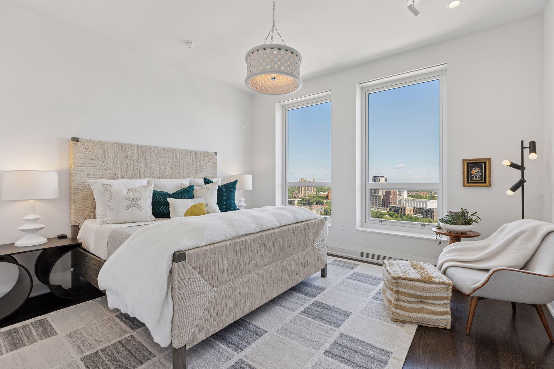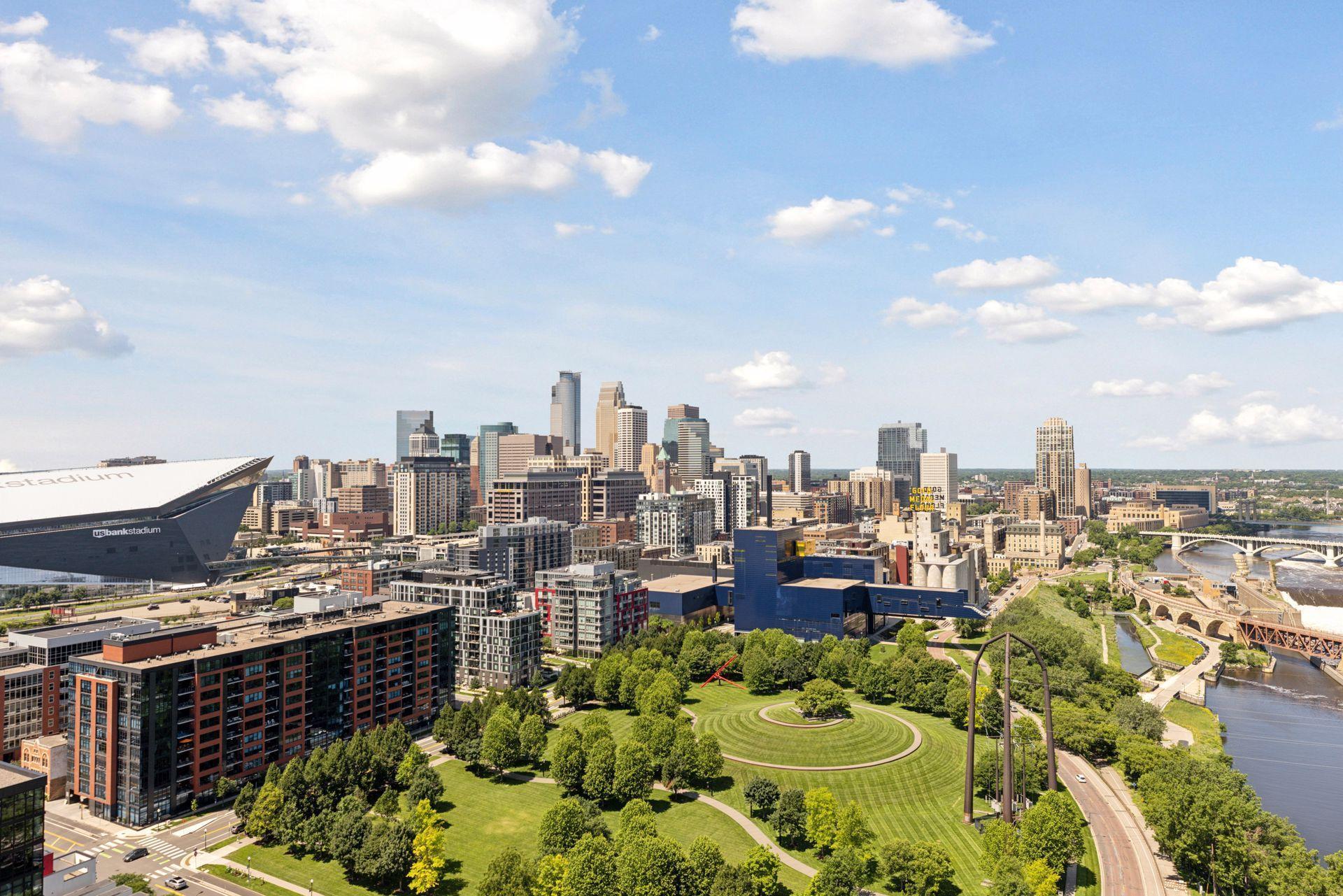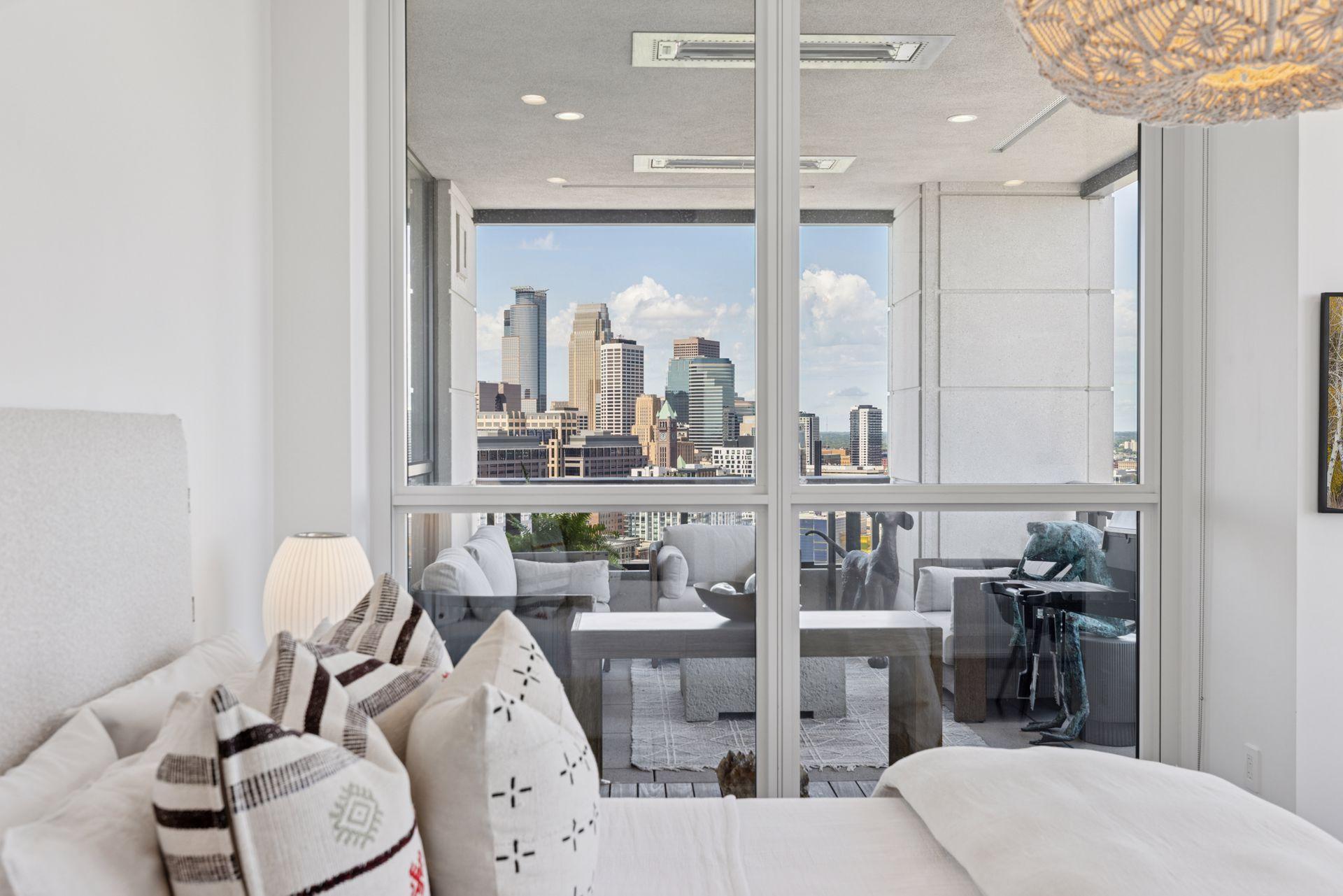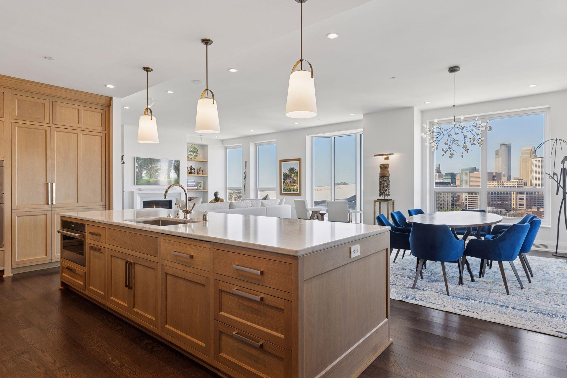 This stunning 2 BR + Den/Media room condo is located on the coveted NW corner of Eleven on the River condominium designed by the renowned Robert A.M. Sterns Architects, with spectacular views of the Mississippi River, Stone Arch Bridge, Gold Medal Park and the Minneapolis skyline. Features include a chef's kitchen complete with large center island, Wolf wall oven, steam oven, microwave, and 2nd large Wolf oven under the cooktop. The Sub-Zero Refrigerator matches the rift oak custom cabinetry throughout the home. Enjoy the breathtaking panoramic views from the expansive 195 sq. ft. heated and covered loggia. Some more added features to this unique home are: 2 garage spaces that EACH have EV charging stations, electric hidden shades in the great room dining area and the primary bedroom, high end gas fireplace, Sonos built-in music system with speakers throughout the entire unit, custom lighting and spotlights to highlight artwork throughout the unit, custom built white rift oak cabinetry in kitchen, bar room and throughout the home. Do not miss the Seura hidden TV in the mirror of the primary bathroom. The countertops in the kitchen and bathrooms are Carrara marble and the floors are hardwood. Every feature in this home is exquisitely and thoughtfully designed. The ELEVEN has all the amenities of a 5-star hotel including private motor court paved in granite with 24/7 doorman service, on demand smart elevators operating at 1,000 ft. per minute, guest suites available for rent, fitness center overlooking the river and city skylines, yoga studio, weight room and sauna, 75 ft. lap pool, spa hot tub, children's splash pad, private cabanas and outdoor fireplaces, indoor multi-sport court, golf simulator and private dog park and dog grooming room and so much more!