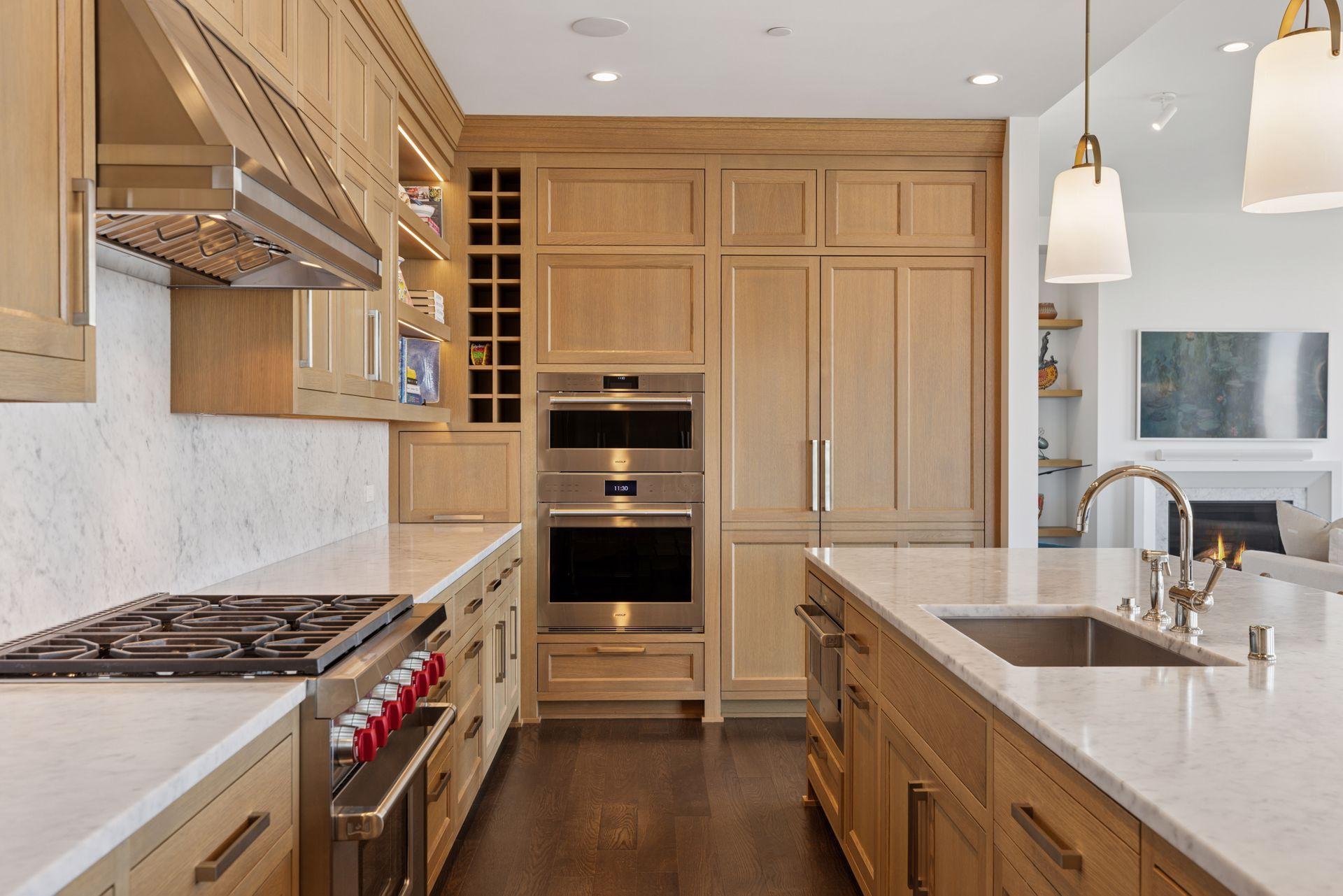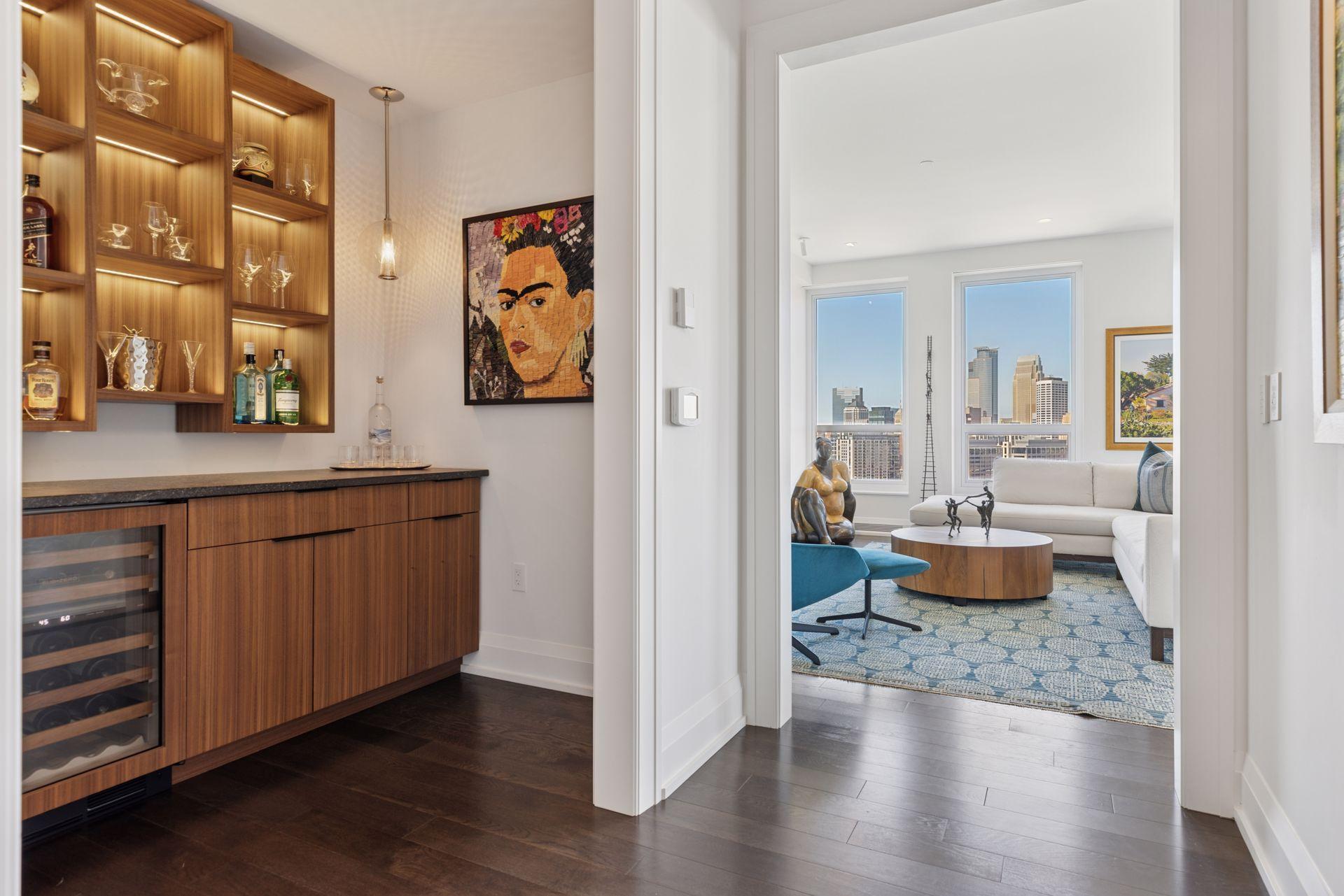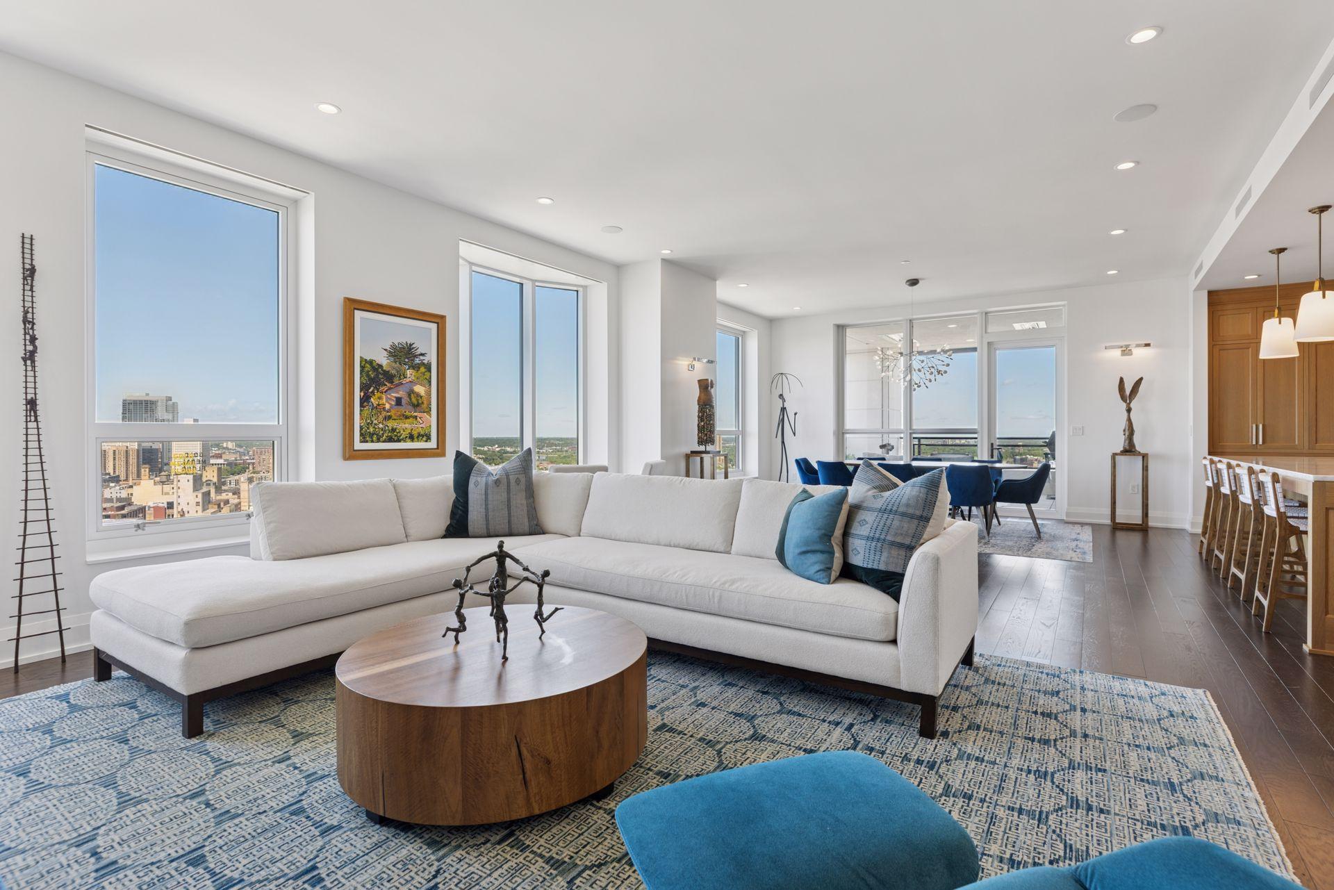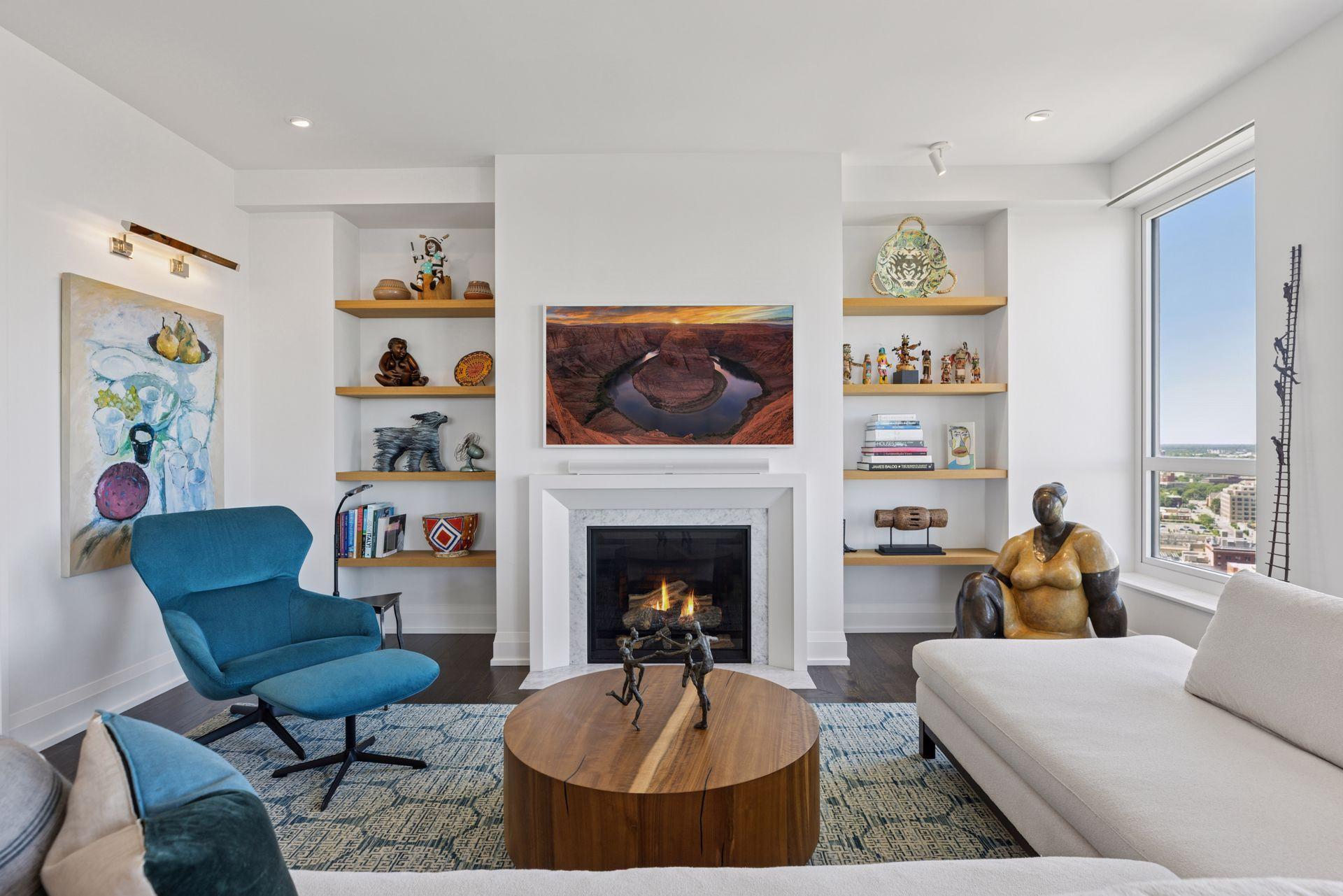 This stunning 2 BR + Den/Media room condo is located on the coveted NW corner of Eleven on the River condominium designed by the renowned Robert A.M. Sterns Architects, with spectacular views of the Mississippi River, Stone Arch Bridge, Gold Medal Park and the Minneapolis skyline. Features include a chef's kitchen complete with large center island, Wolf wall oven, steam oven, microwave, and 2nd large Wolf oven under the cooktop. The Sub-Zero Refrigerator matches the rift oak custom cabinetry throughout the home. Enjoy the breathtaking panoramic views from the expansive 195 sq. ft. heated and covered loggia. Some more added features to this unique home are: 2 garage spaces that EACH have EV charging stations, electric hidden shades in the great room dining area and the primary bedroom, high end gas fireplace, Sonos built-in music system with speakers throughout the entire unit, custom lighting and spotlights to highlight artwork throughout the unit, custom built white rift oak cabinetry in kitchen, bar room and throughout the home. Do not miss the Seura hidden TV in the mirror of the primary bathroom. The countertops in the kitchen and bathrooms are Carrara marble and the floors are hardwood. Every feature in this home is exquisitely and thoughtfully designed. The ELEVEN has all the amenities of a 5-star hotel including private motor court paved in granite with 24/7 doorman service, on demand smart elevators operating at 1,000 ft. per minute, guest suites available for rent, fitness center overlooking the river and city skylines, yoga studio, weight room and sauna, 75 ft. lap pool, spa hot tub, children's splash pad, private cabanas and outdoor fireplaces, indoor multi-sport court, golf simulator and private dog park and dog grooming room and so much more!