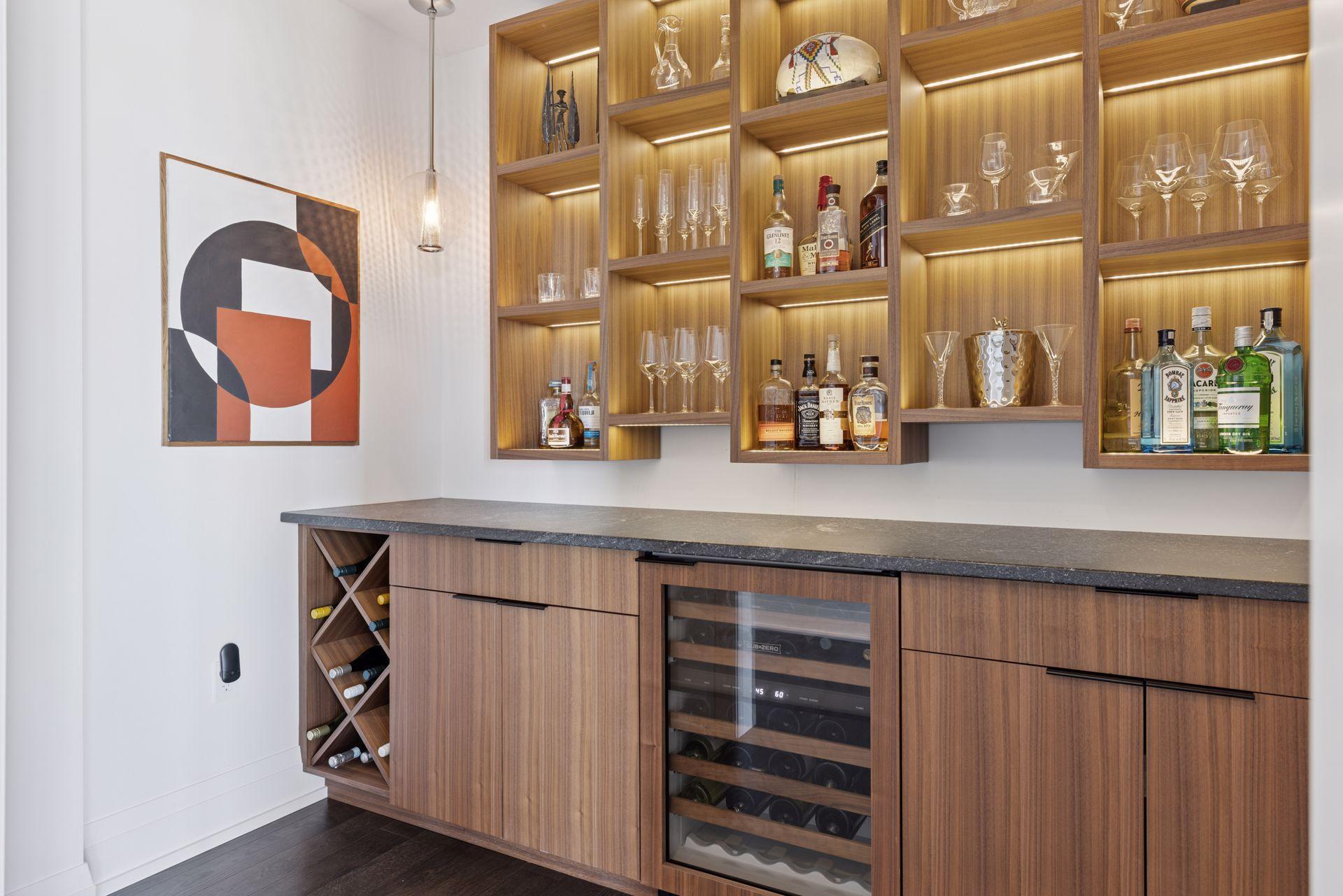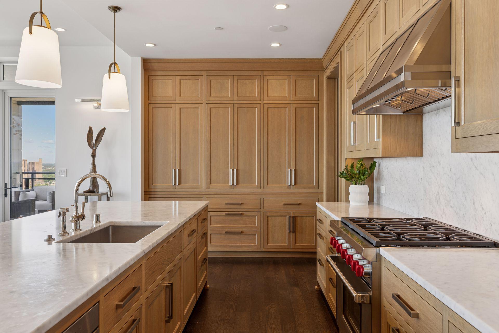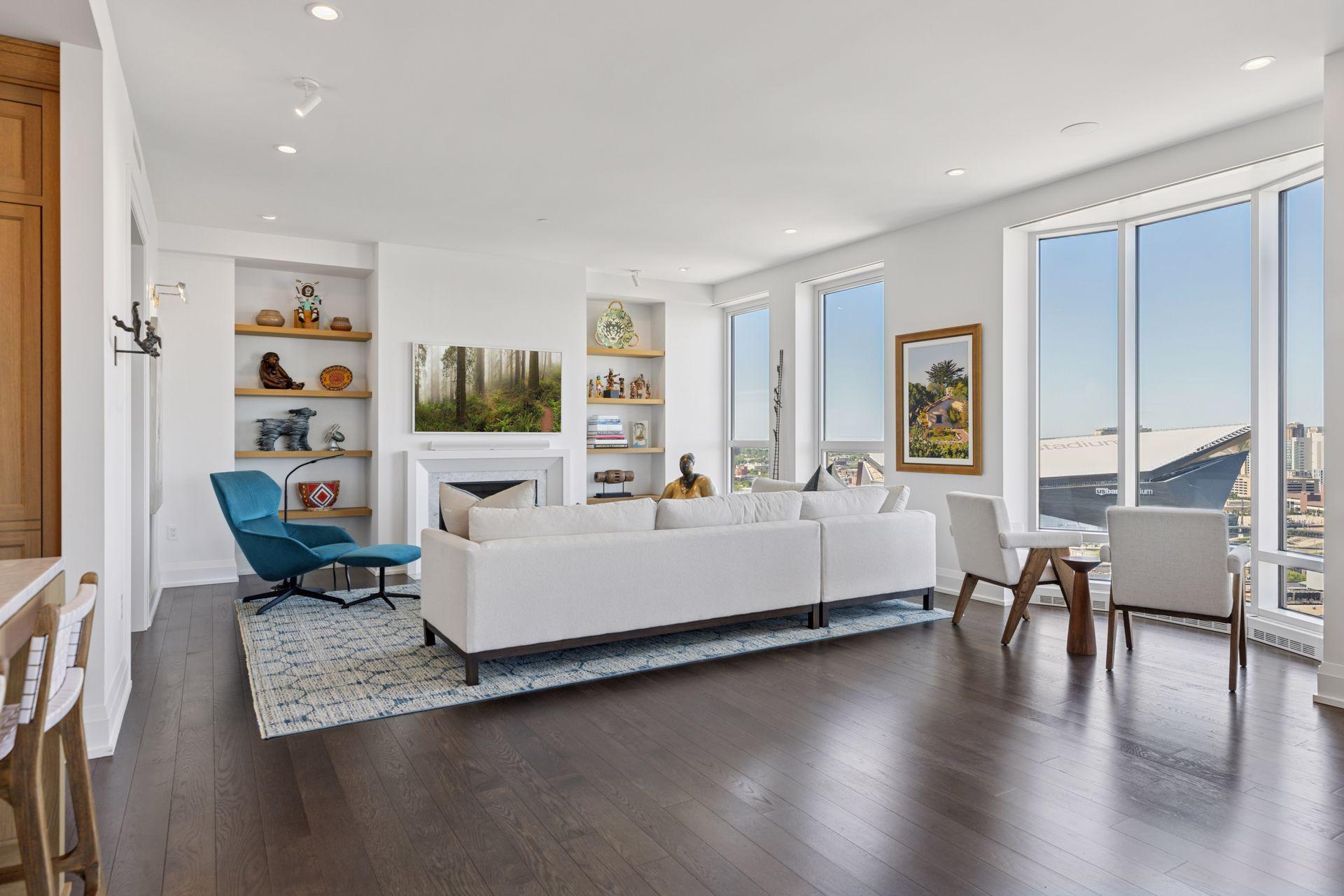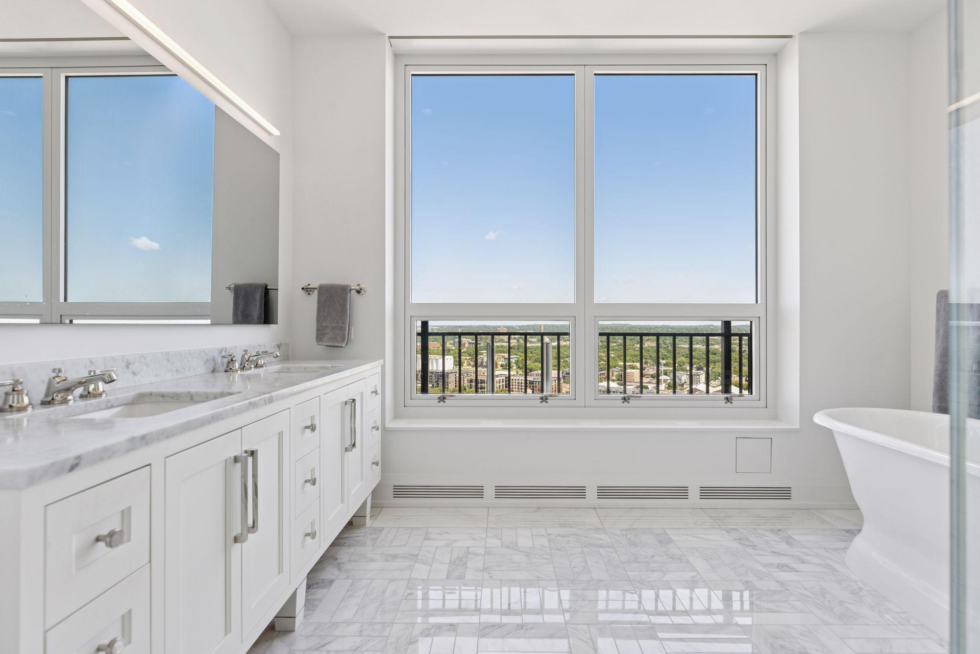 This stunning 2 BR + Den/Media room condo is located on the coveted NW corner of Eleven on the River condominium designed by the renowned Robert A.M. Sterns Architects, with spectacular views of the Mississippi River, Stone Arch Bridge, Gold Medal Park and the Minneapolis skyline. Features include a chef's kitchen complete with large center island, Wolf wall oven, steam oven, microwave, and 2nd large Wolf oven under the cooktop. The Sub-Zero Refrigerator matches the rift oak custom cabinetry throughout the home. Enjoy the breathtaking panoramic views from the expansive 195 sq. ft. heated and covered loggia. Some more added features to this unique home are: 2 garage spaces that EACH have EV charging stations, electric hidden shades in the great room dining area and the primary bedroom, high end gas fireplace, Sonos built-in music system with speakers throughout the entire unit, custom lighting and spotlights to highlight artwork throughout the unit, custom built white rift oak cabinetry in kitchen, bar room and throughout the home. Do not miss the Seura hidden TV in the mirror of the primary bathroom. The countertops in the kitchen and bathrooms are Carrara marble and the floors are hardwood. Every feature in this home is exquisitely and thoughtfully designed. The ELEVEN has all the amenities of a 5-star hotel including private motor court paved in granite with 24/7 doorman service, on demand smart elevators operating at 1,000 ft. per minute, guest suites available for rent, fitness center overlooking the river and city skylines, yoga studio, weight room and sauna, 75 ft. lap pool, spa hot tub, children's splash pad, private cabanas and outdoor fireplaces, indoor multi-sport court, golf simulator and private dog park and dog grooming room and so much more!