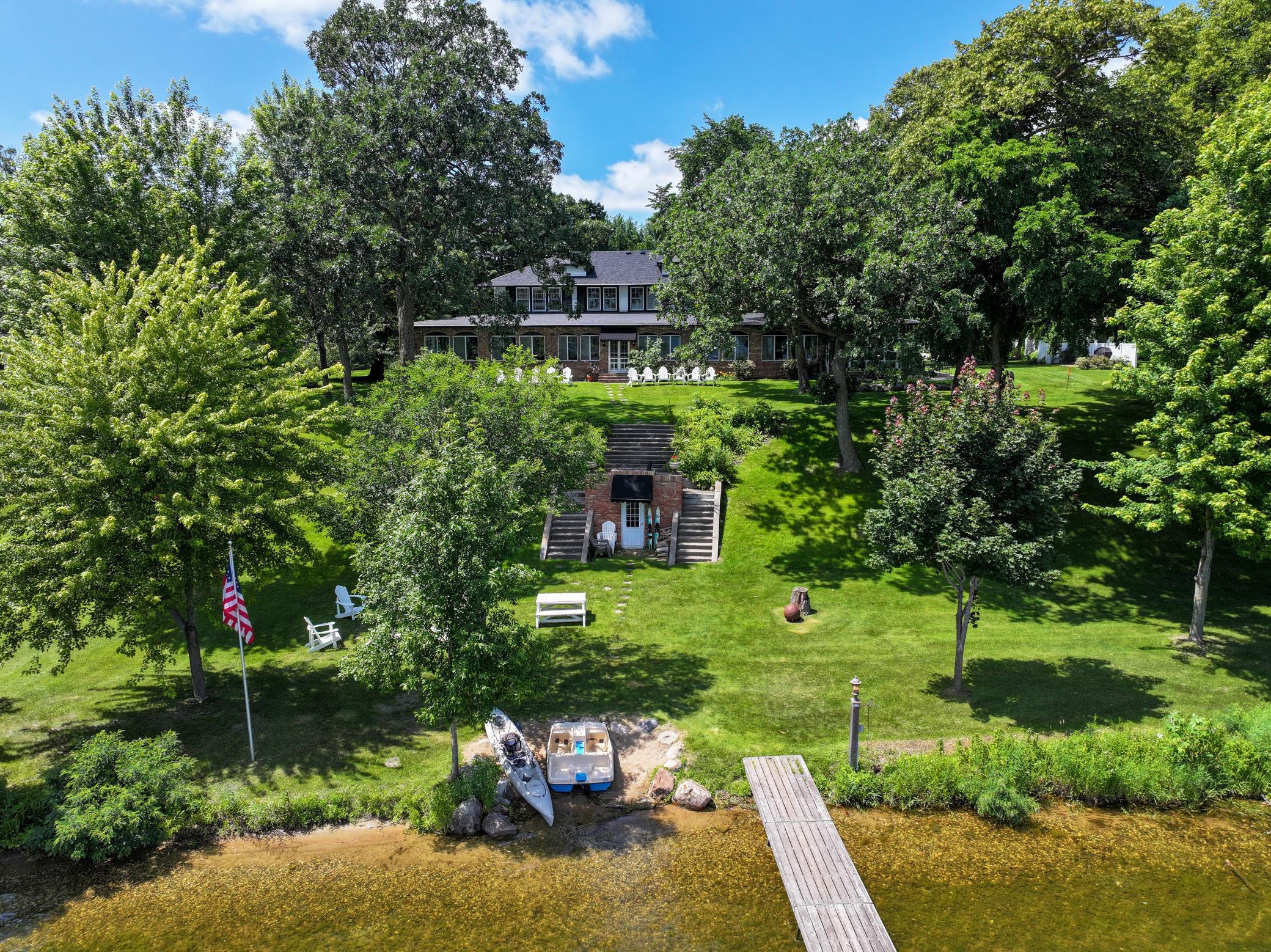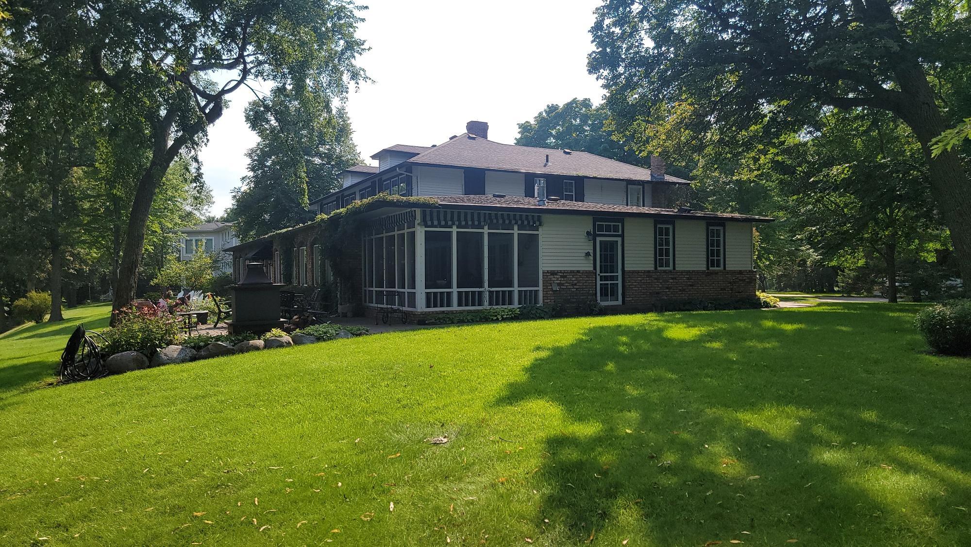 Welcome to a truly one-of-a-kind vintage property situated on the pristine shores of Lake Le Homme Dieu, just 2 miles from downtown Alexandria. This 1917 estate offers a rare blend of timeless character, modern comfort, and unmatched lakeshore living. Set on 1.7 acres with over 125 ft of level lakefront, this iconic home spans +8000 sq ft & features 7 bedrooms, 6 bathrooms, and a stunning 136 ft wraparound enclosed porch with panoramic views of the water. The grand circular driveway invites you to explore this landmark property, known as one of the few remaining "Jewels on the Lake." Inside, you'll find a gourmet kitchen designed for entertaining, complete with high-end appliances and generous counter space. Original craftsmanship and character are preserved throughout - high ceilings, rich millwork, and historic details evoke a sense of enduring quality rarely found today. Upstairs, private suites - each with ensuite baths provide serene views and generous space, while the lower level offers flexible living areas for relaxation, recreation, or hosting guests. Surrounded by mature trees and manicured lawns, this estate is an ideal retreat for those seeking peace, legacy, and connection to Minnesota's most treasured chain of lakes - all just two miles from the city of Alexandria. This property is a perfect family legacy estate, vacation home, or potential investment opportunity on one of Minnesota's most desirable lake chains.