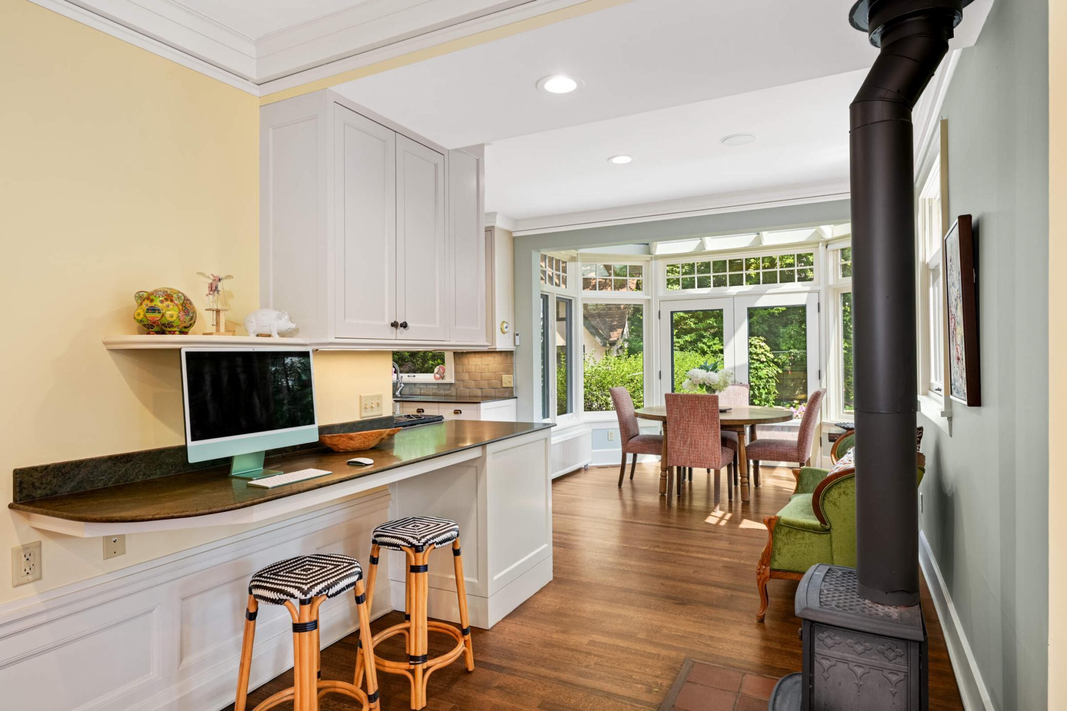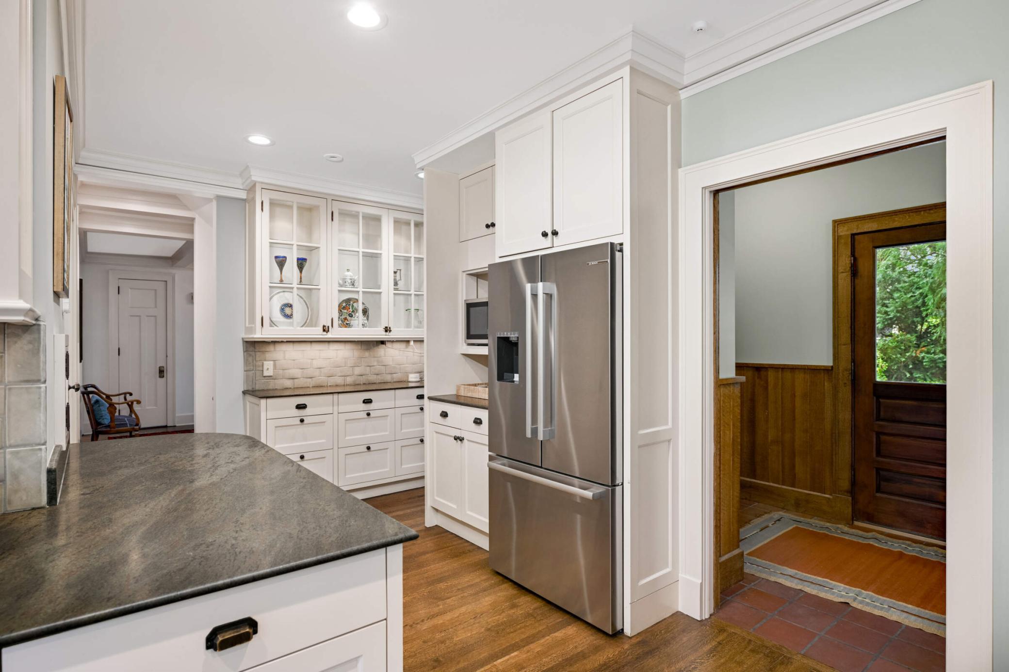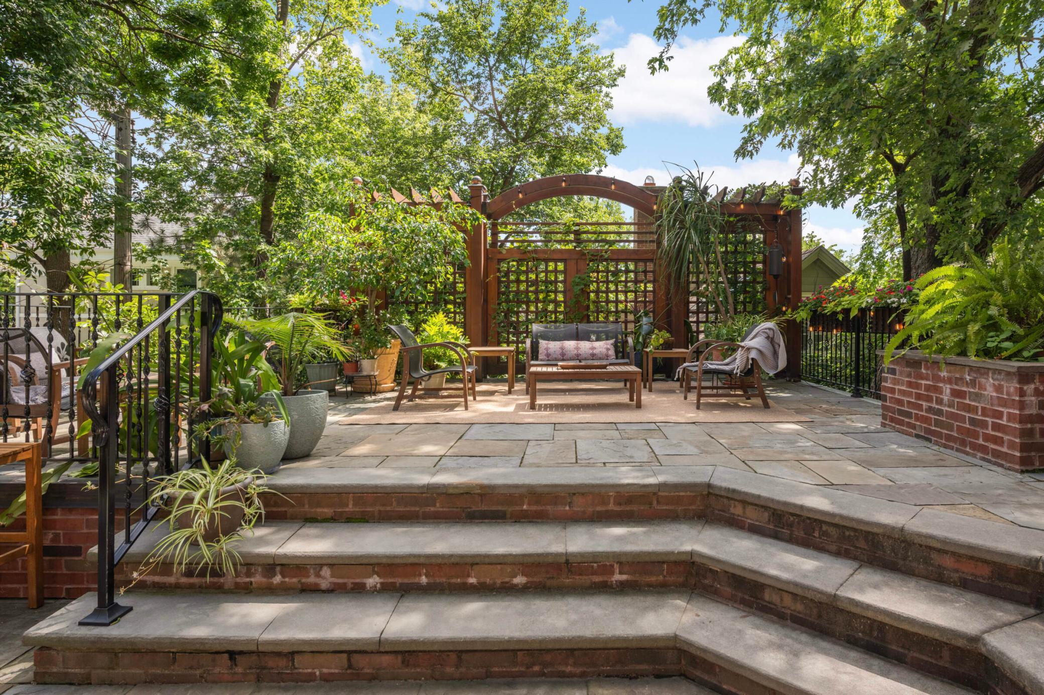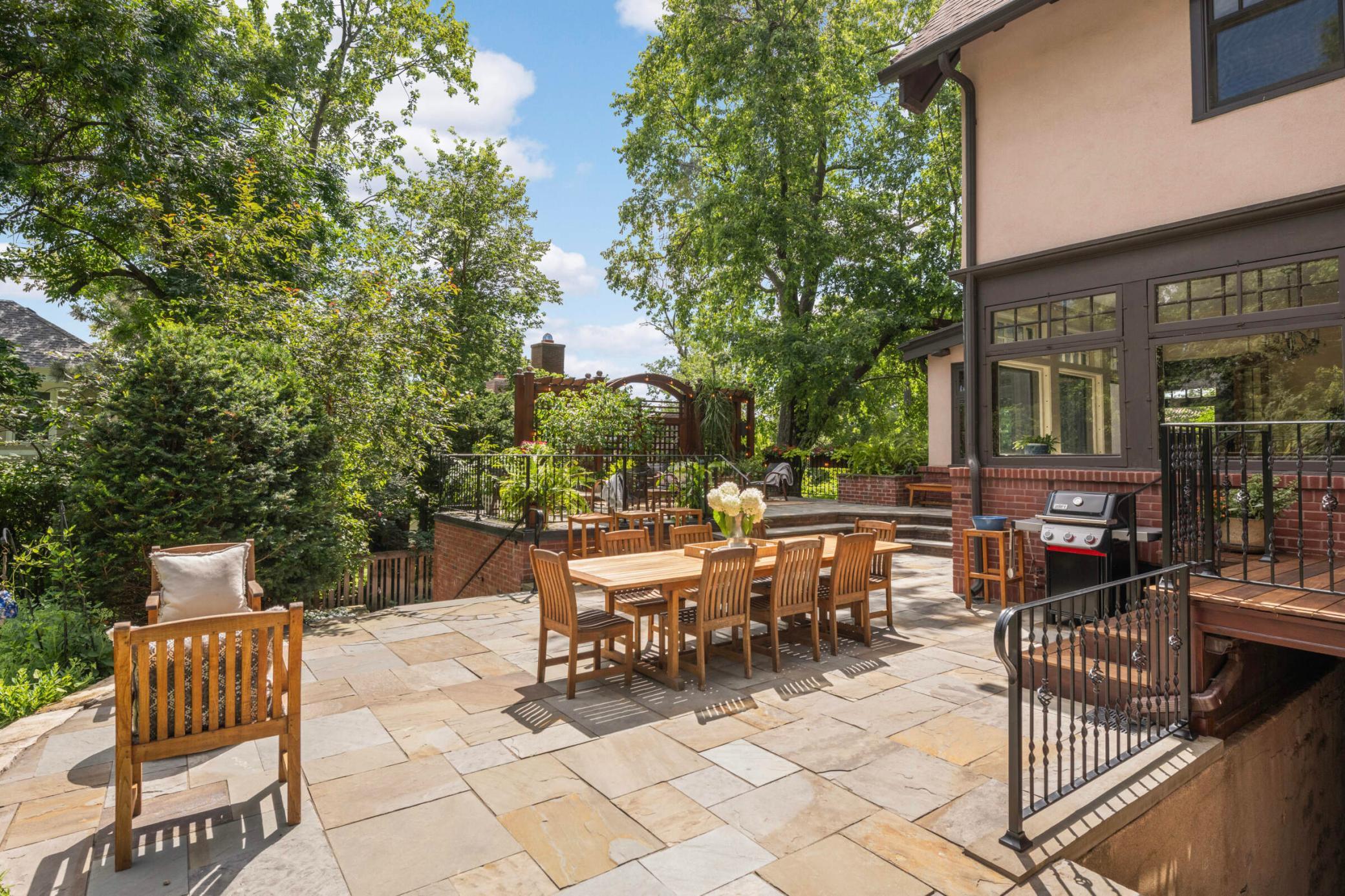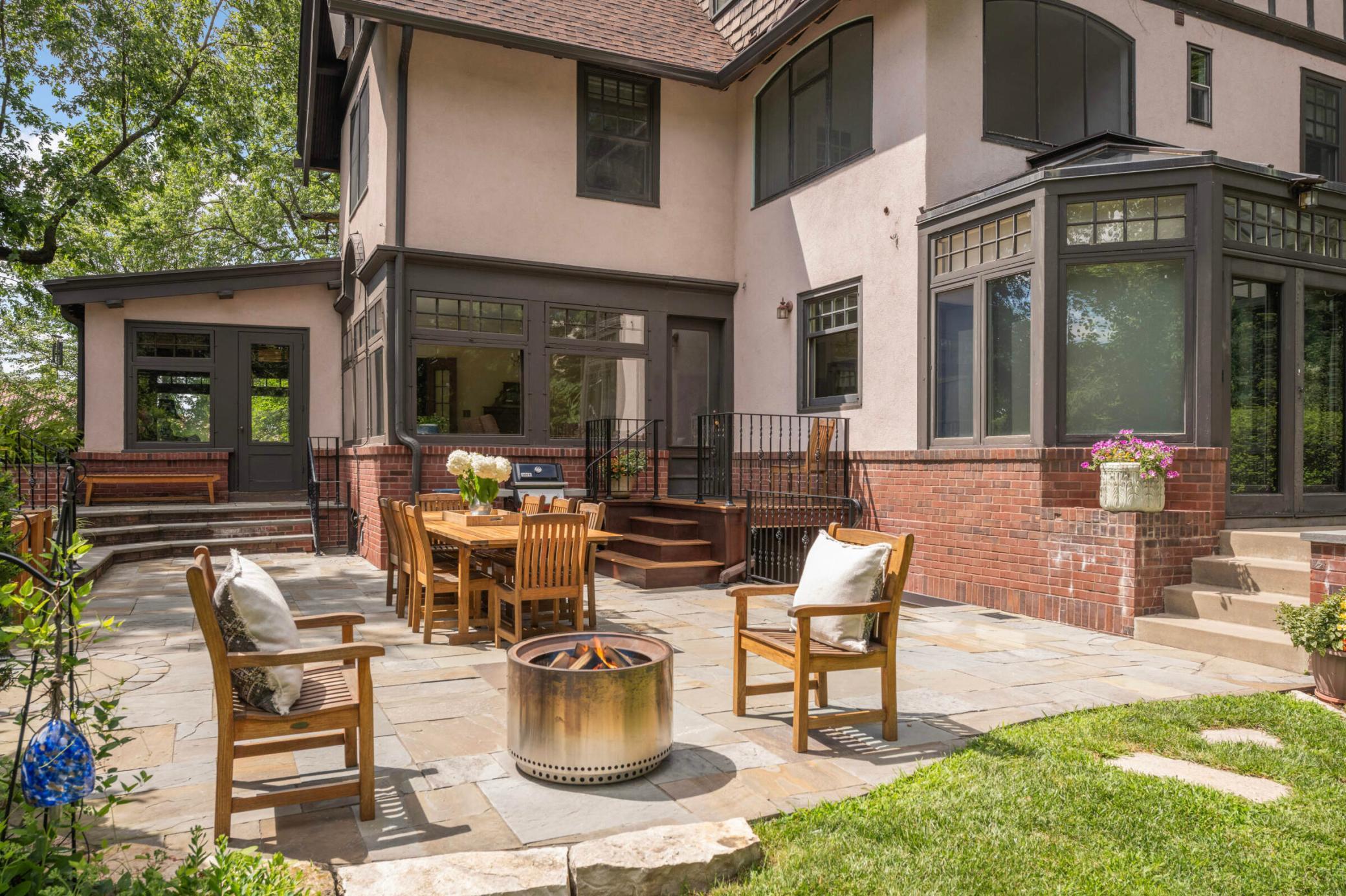 LOCATION, location... Nestled between Lake of the Isles & DT Mpls, renowned architect, Harry Wild Jones, designed this stately 1909 American Tudor Revival. Situated on an oversized lot, the house exudes a magical, casual elegance. Effortlessly melding historic beauty with thoughtful renovations. Main floor highlights include a beautifully crafted open staircase; a chef's kitchen with an atrium-style dining nook, inset cabinetry, walk-in pantry, & prof appliances; custom oak mudroom; a sun-filled formal dining rm w/ orig clay floor tiles; Leaded French doors; a cozy den w/ rich oak wookwork & built-in bookshelves; and, a spacious formal living room with the orig woodburning fireplace. The backyard is STUNNING w/ multiple access points for seamless indoor/outdoor living. A true oasis with an expansive tiered bluestone patio & terrace, mature gardens, and a peaceful babbling brook. Plus, the perfect sodded flat area for kids & adults alike. Note the clever (large) bike + canoe + paddleboard storage under the terrace for EZ access to LOTI & trails. The 2nd & 3rd floor offers tree-top lake views and hosts 5 bedrooms (including the luxe primary suite), an office, 4 thoughtfully appointed bathrooms, 2 charming porches, & ample attic storage. Completing this fine home is the lower-level hang-out space (w/gorgeous limestone walls), a renovated 3/4 tiled bath, laundry, and additional storage. MOVE IN and ENJOY the Minneapolis Lakes Area to the fullest.