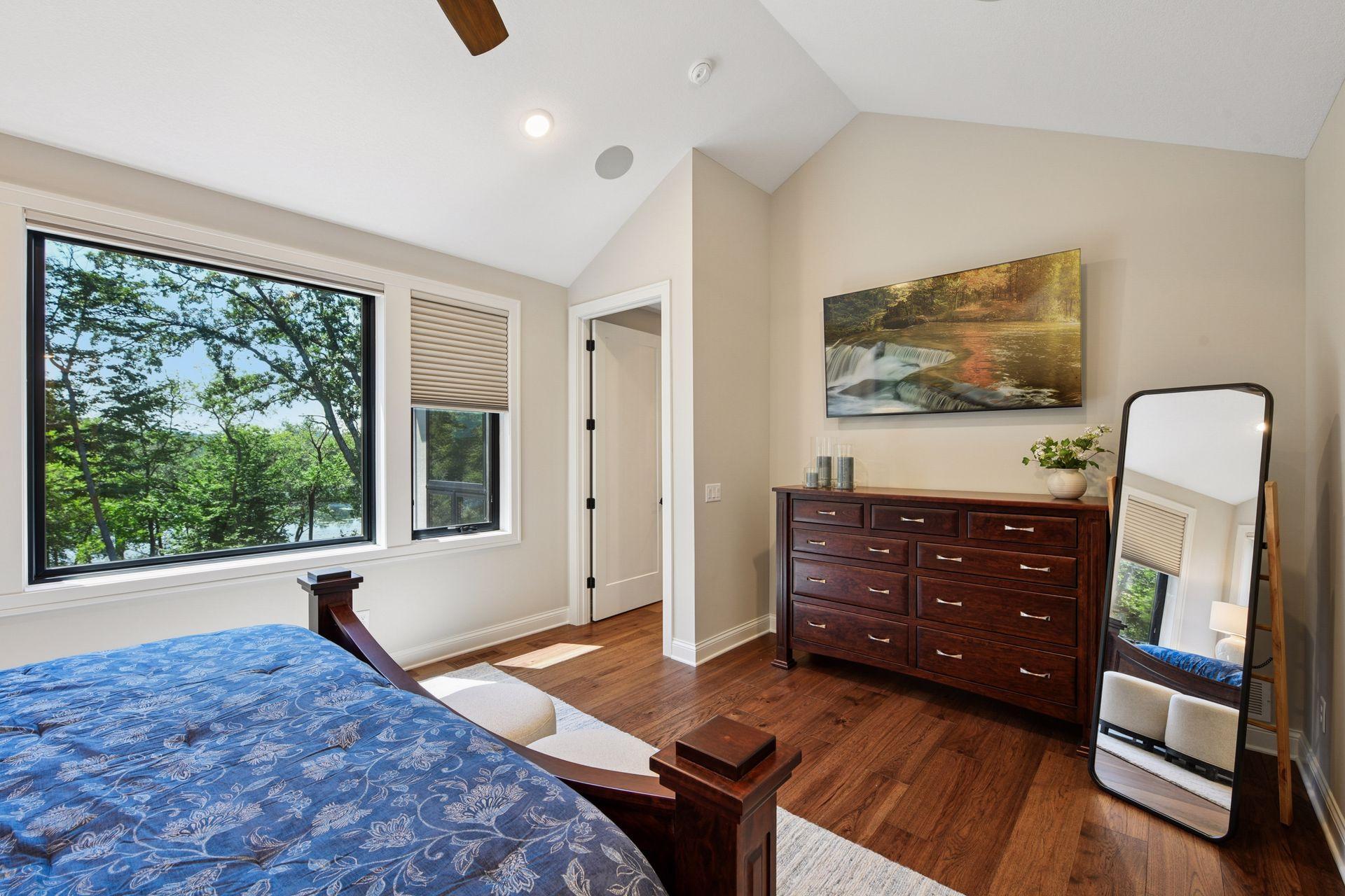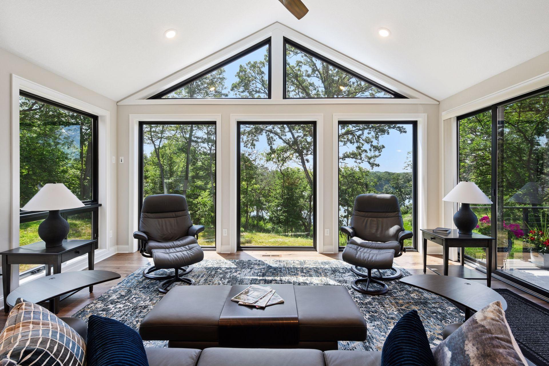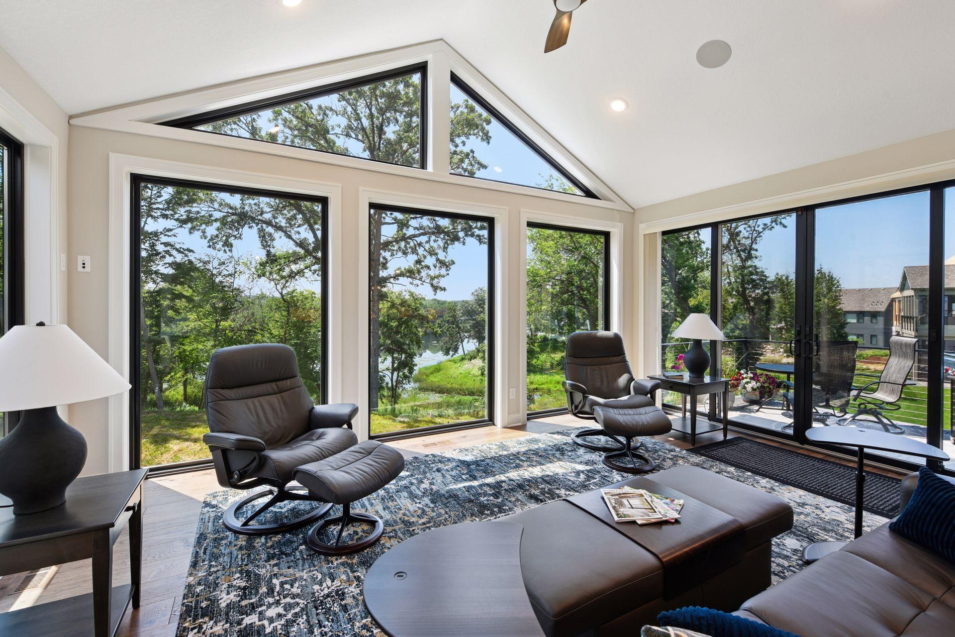 Welcome to Lakeside Living at Linden Cove! Experience effortless luxury in this stunning lakeside home, designed to impress from the moment you arrive. Step inside via a private elevator and be greeted by an abundance of natural light flowing through the open-concept main living area—perfect for entertaining or everyday relaxation. The gourmet kitchen is a chef’s dream, featuring top-tier appliances such as the Sub-Zero refrigerator and Wolf range, a generous walk-in pantry, and an expansive center island with ample storage and bar seating. Just beyond, the sunroom boasts floor-to-ceiling windows that frame breathtaking views of the lake, while the inviting living room, complete with a cozy fireplace, is ideal for unwinding year-round. Retreat to the elegant primary suite, highlighted by vaulted ceilings, a spacious walk-in closet with custom built-ins, and a spa-inspired en-suite bath. Need a quiet workspace or extra guest room? The home office offers built-in storage and flexible functionality. The lower level is designed for fun, featuring a large rec/game room perfect for gatherings. Step outside to enjoy serene lake views from your private patio or deck. Explore nature along the scenic trails of Murphy-Hanrehan Park Reserve, or take advantage of community amenities including a clubhouse and dock—perfect for your lakeside lifestyle.