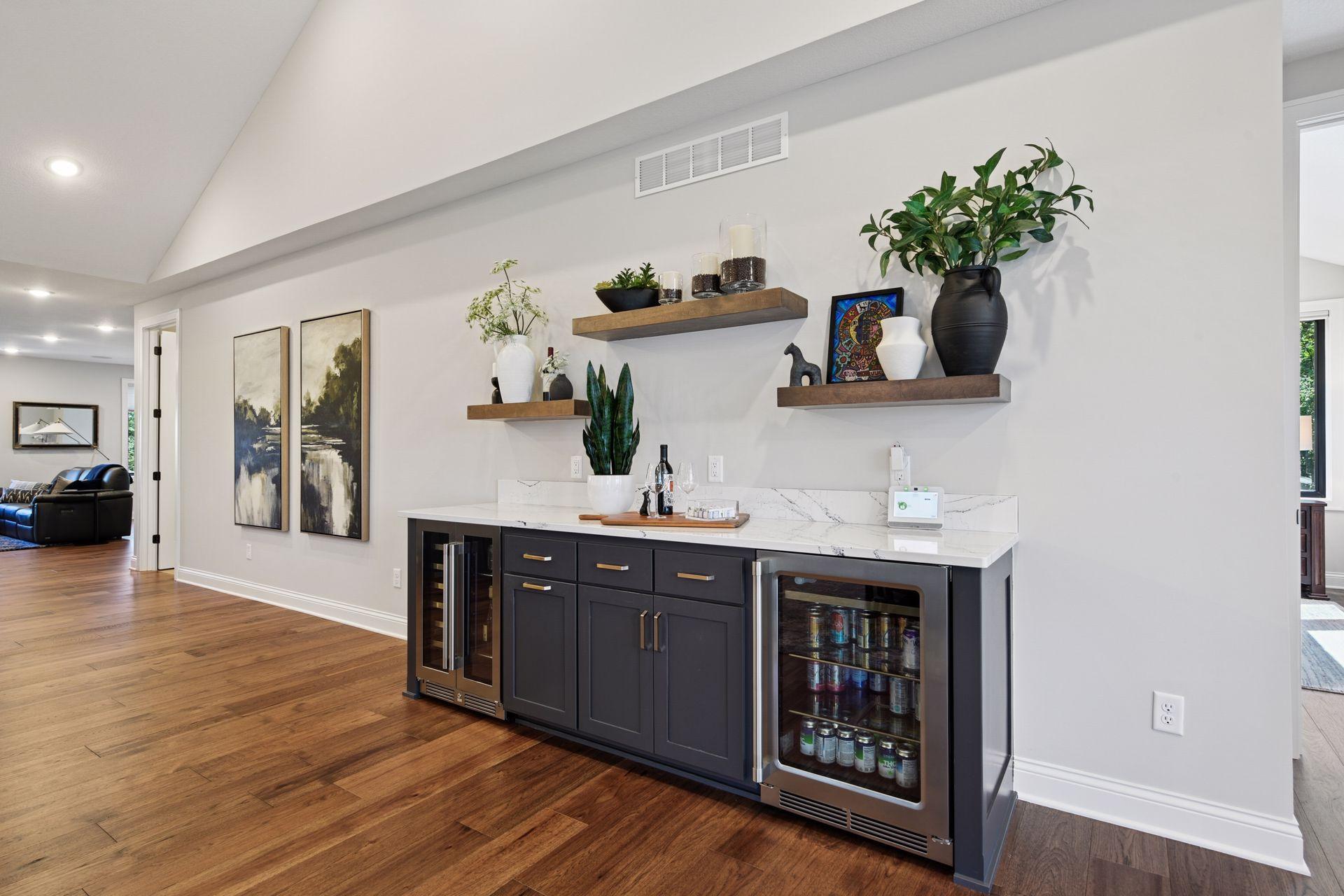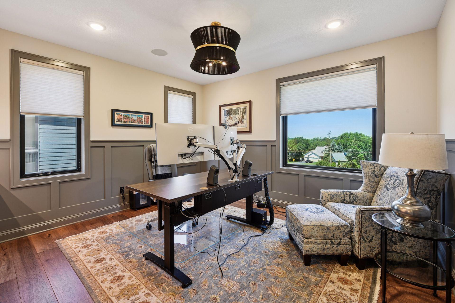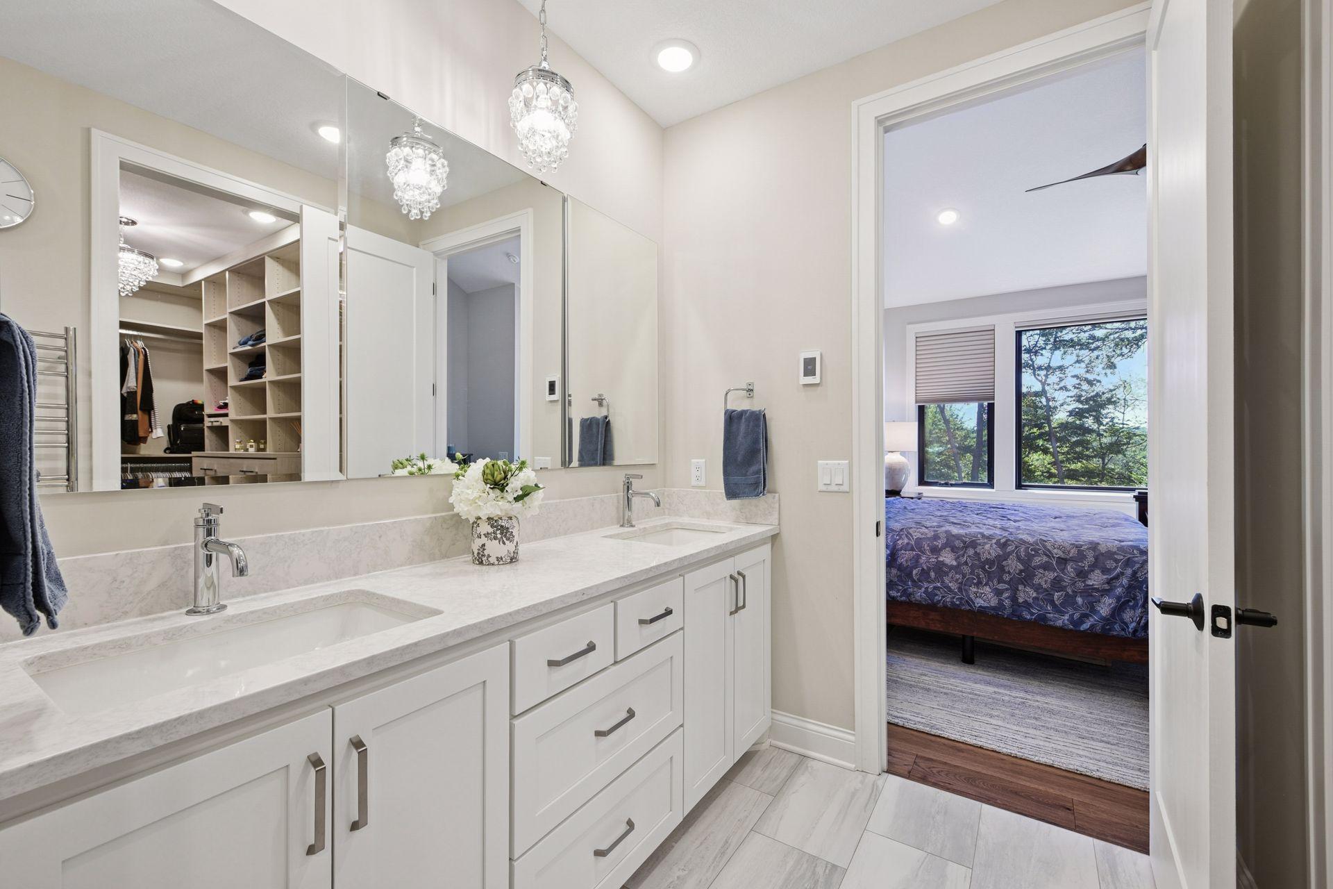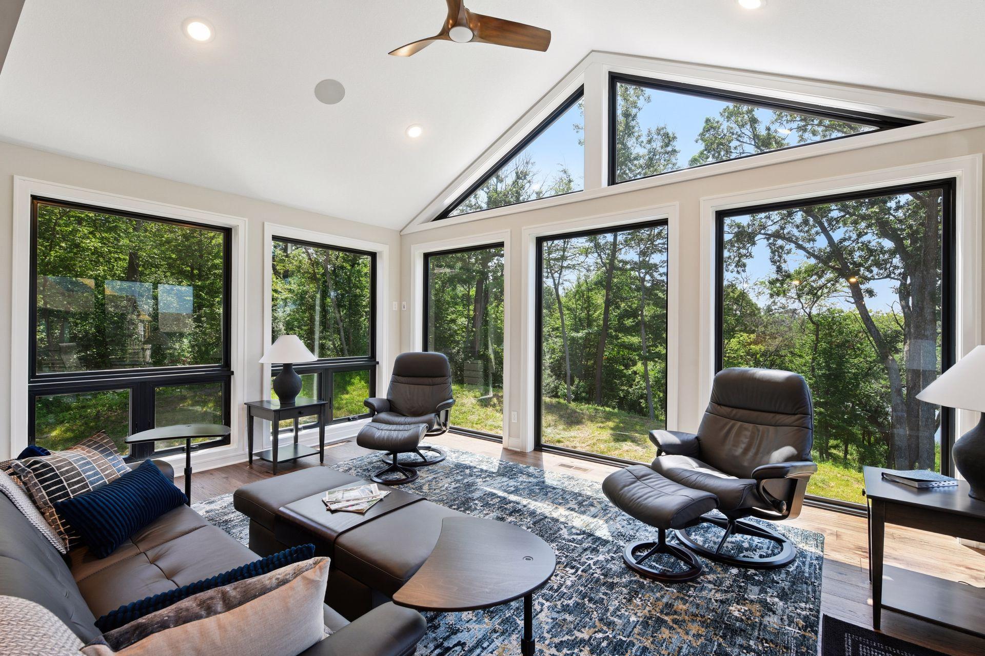 Welcome to Lakeside Living at Linden Cove! Experience effortless luxury in this stunning lakeside home, designed to impress from the moment you arrive. Step inside via a private elevator and be greeted by an abundance of natural light flowing through the open-concept main living area—perfect for entertaining or everyday relaxation. The gourmet kitchen is a chef’s dream, featuring top-tier appliances such as the Sub-Zero refrigerator and Wolf range, a generous walk-in pantry, and an expansive center island with ample storage and bar seating. Just beyond, the sunroom boasts floor-to-ceiling windows that frame breathtaking views of the lake, while the inviting living room, complete with a cozy fireplace, is ideal for unwinding year-round. Retreat to the elegant primary suite, highlighted by vaulted ceilings, a spacious walk-in closet with custom built-ins, and a spa-inspired en-suite bath. Need a quiet workspace or extra guest room? The home office offers built-in storage and flexible functionality. The lower level is designed for fun, featuring a large rec/game room perfect for gatherings. Step outside to enjoy serene lake views from your private patio or deck. Explore nature along the scenic trails of Murphy-Hanrehan Park Reserve, or take advantage of community amenities including a clubhouse and dock—perfect for your lakeside lifestyle.