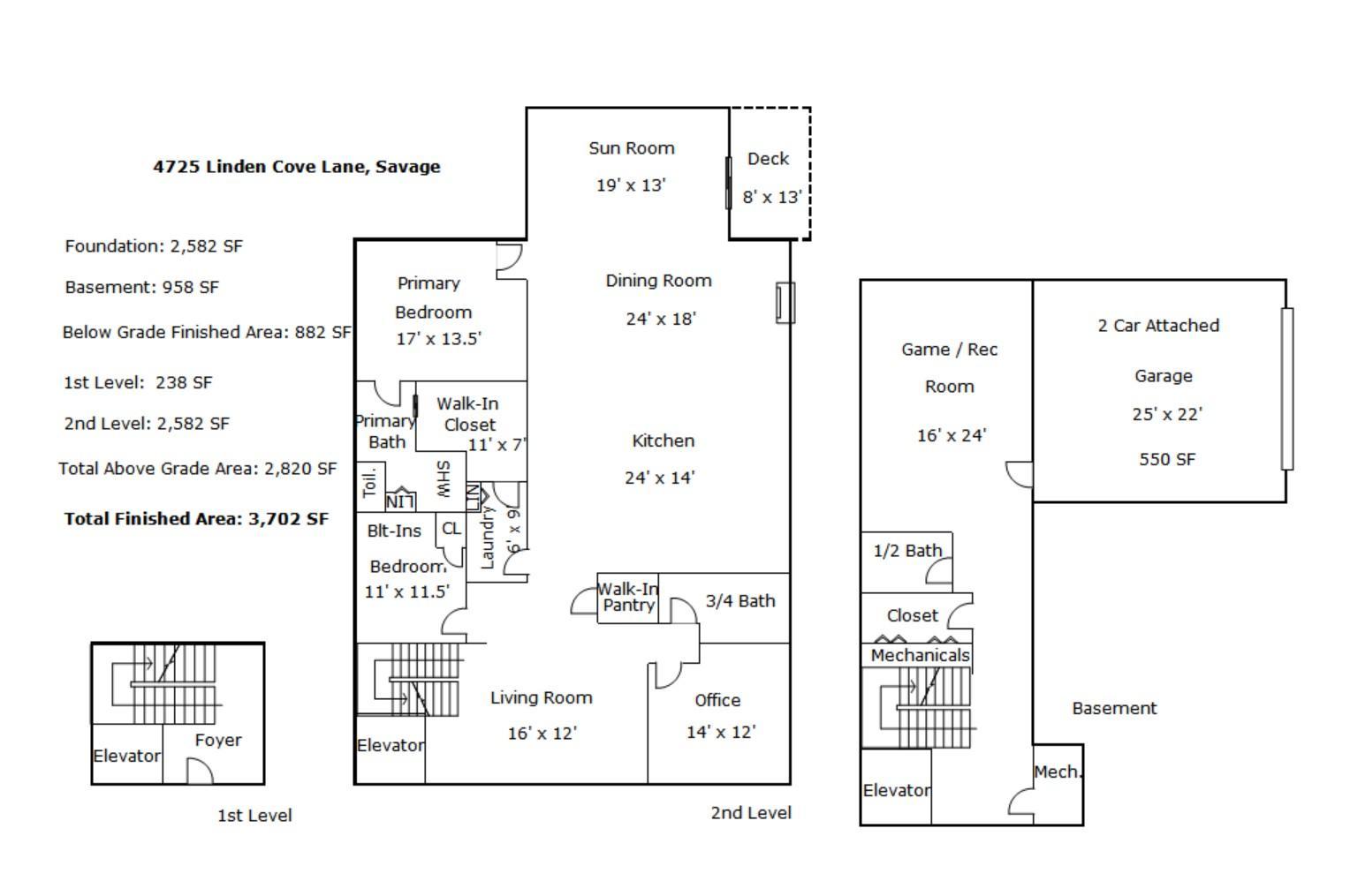1/2 Basement,Full Primary,Upper Level 3/4 Bath |