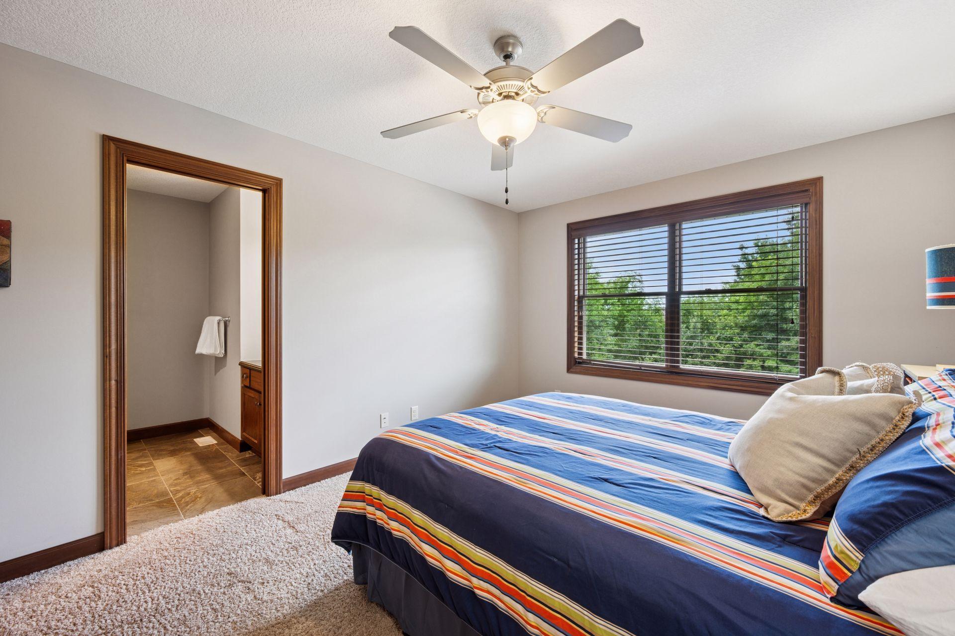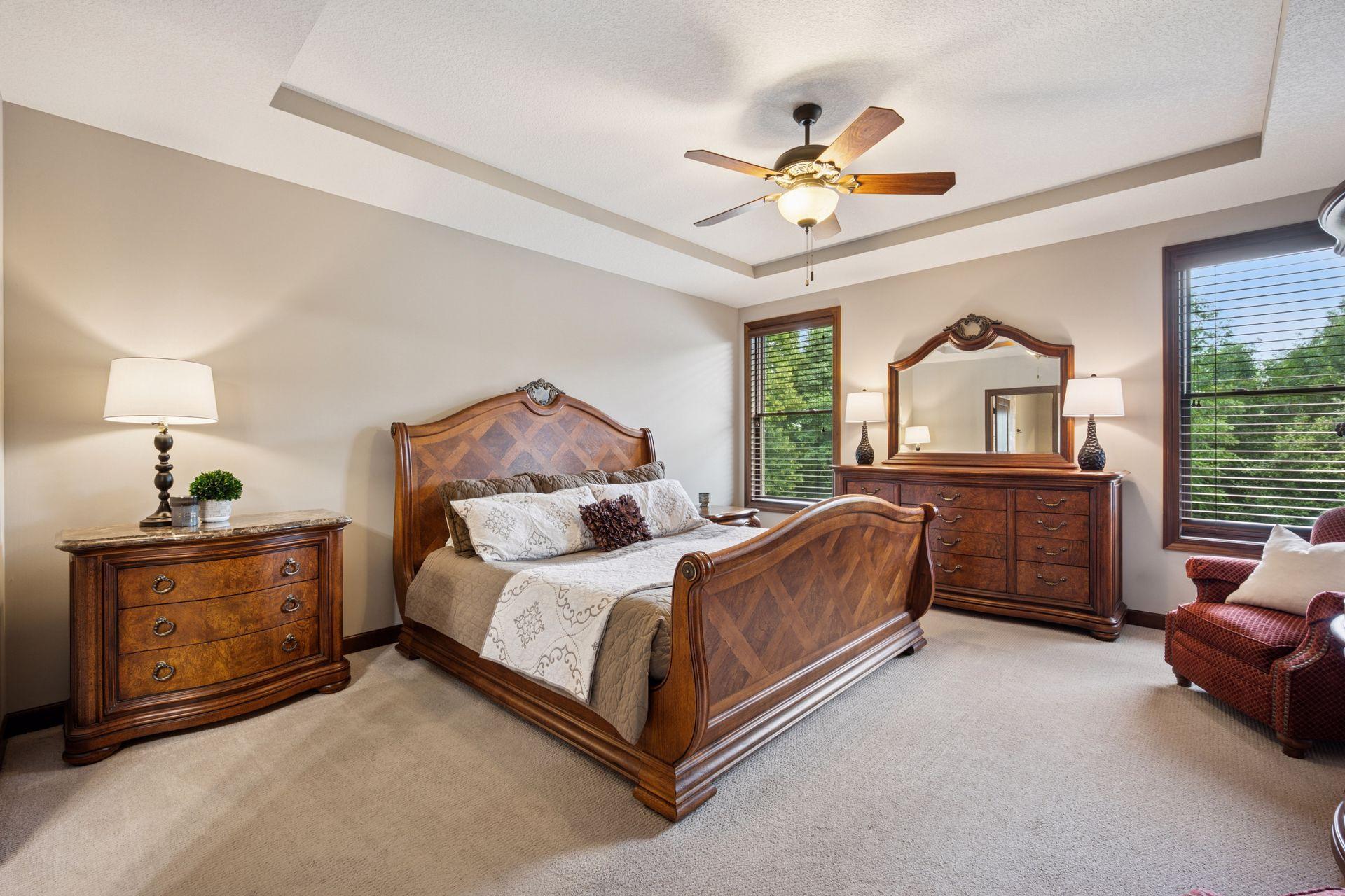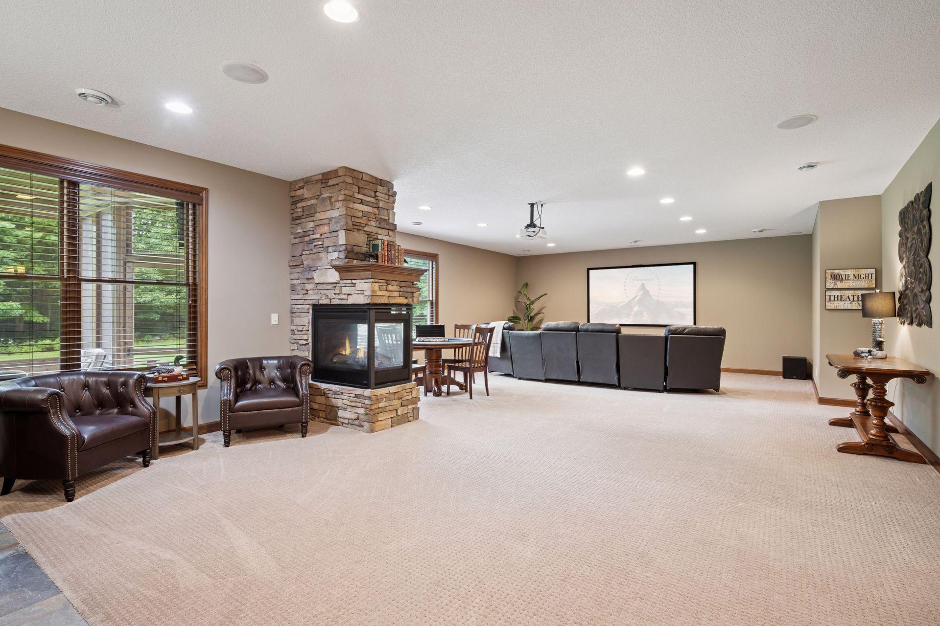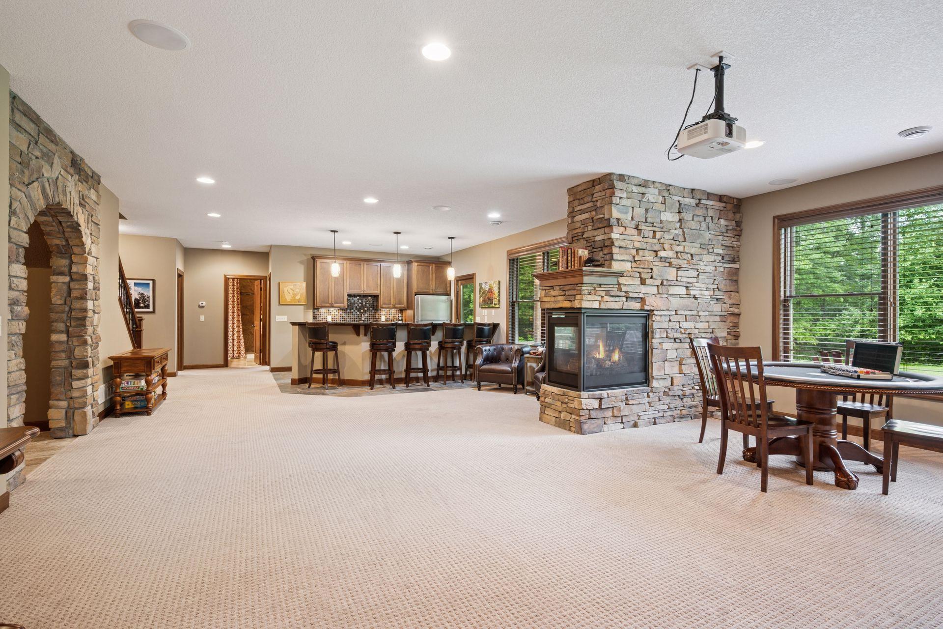 Welcome to this luxurious custom-built home on a nearly one-acre lot located in the Whispering Creek neighborhood, a quaint community of 36 homes featuring a private pool, clubhouse, park, and an outdoor sport court. Tucked away on a tranquil cul-de-sac with mature trees including apple trees! This residence showcases meticulous craftsmanship and thoughtful design suited for every phase of life. Grand main level living with a primary suite that features a spa-like bathroom offering heated floors, a double vanity, a spacious step-in shower, and an oversized walk-in closet with private laundry facilities. The kitchen is a chef's haven, featuring a pantry, a sizable center island with seating, high-end appliances including a 36" 6-burner dual fuel free standing range, convection wall ovens and an adjoining dinette that opens onto the main level maintenance free deck - ideal for seamless indoor-outdoor entertaining. A convenient office niche serves as a perfect workspace or homework area plus a spacious garage foyer with ample cubbies for storage. Upstairs, a versatile bonus entertainment room and three bedrooms, each with its own en-suite bathroom and walk-in closet, and a second huge laundry room offers convenience. The finished lower-level walk-out is designed for entertainment, featuring a sprawling wet bar, a cozy multi-sided fireplace, projector and screen, a wine tasting room, an exercise room or additional bedroom and another large guest suite. Step out to the oversized three-season screened porch for ultimate relaxation, creating a vacation atmosphere at home. The property includes a 4-car garage with heated floors, floor drains, sink with hot and cold water, wall organization units, and a convenient side service door. New roof. 3-zone HVAC! Discover unparalleled comfort and luxury in this exceptional property, thoughtfully crafted for discerning buyers seeking the ultimate in quality living.