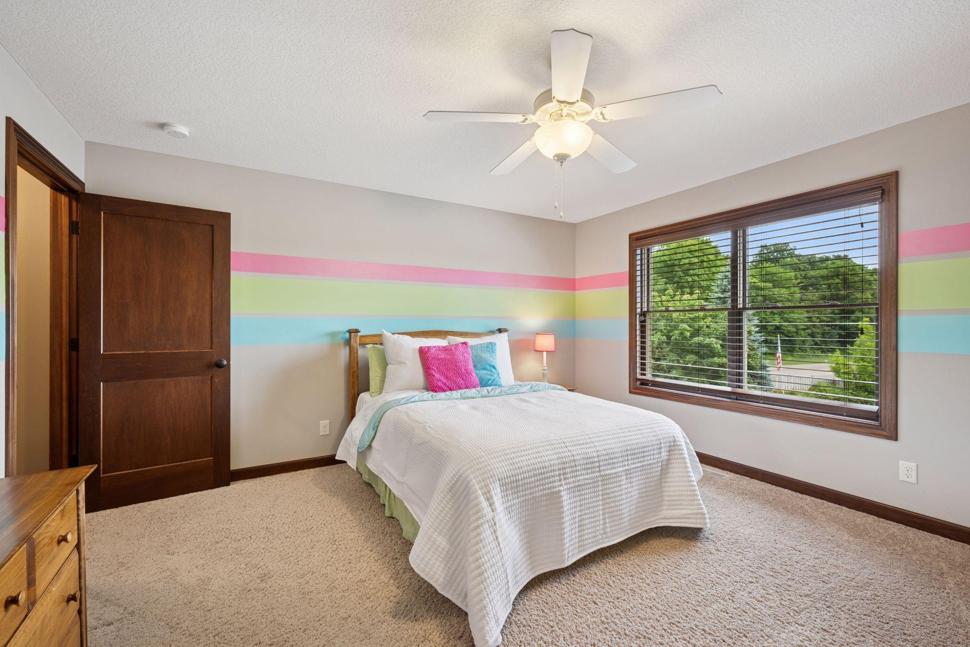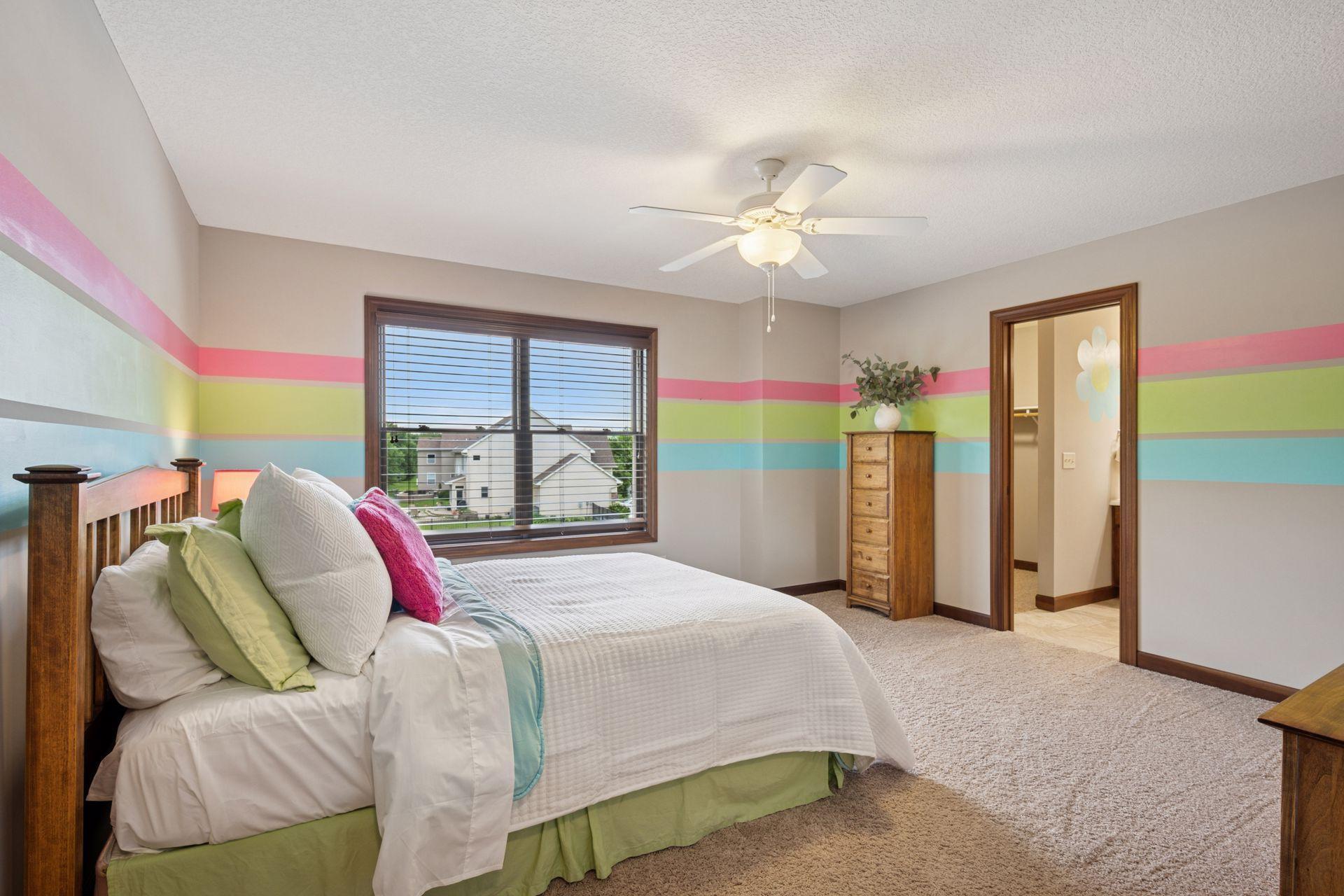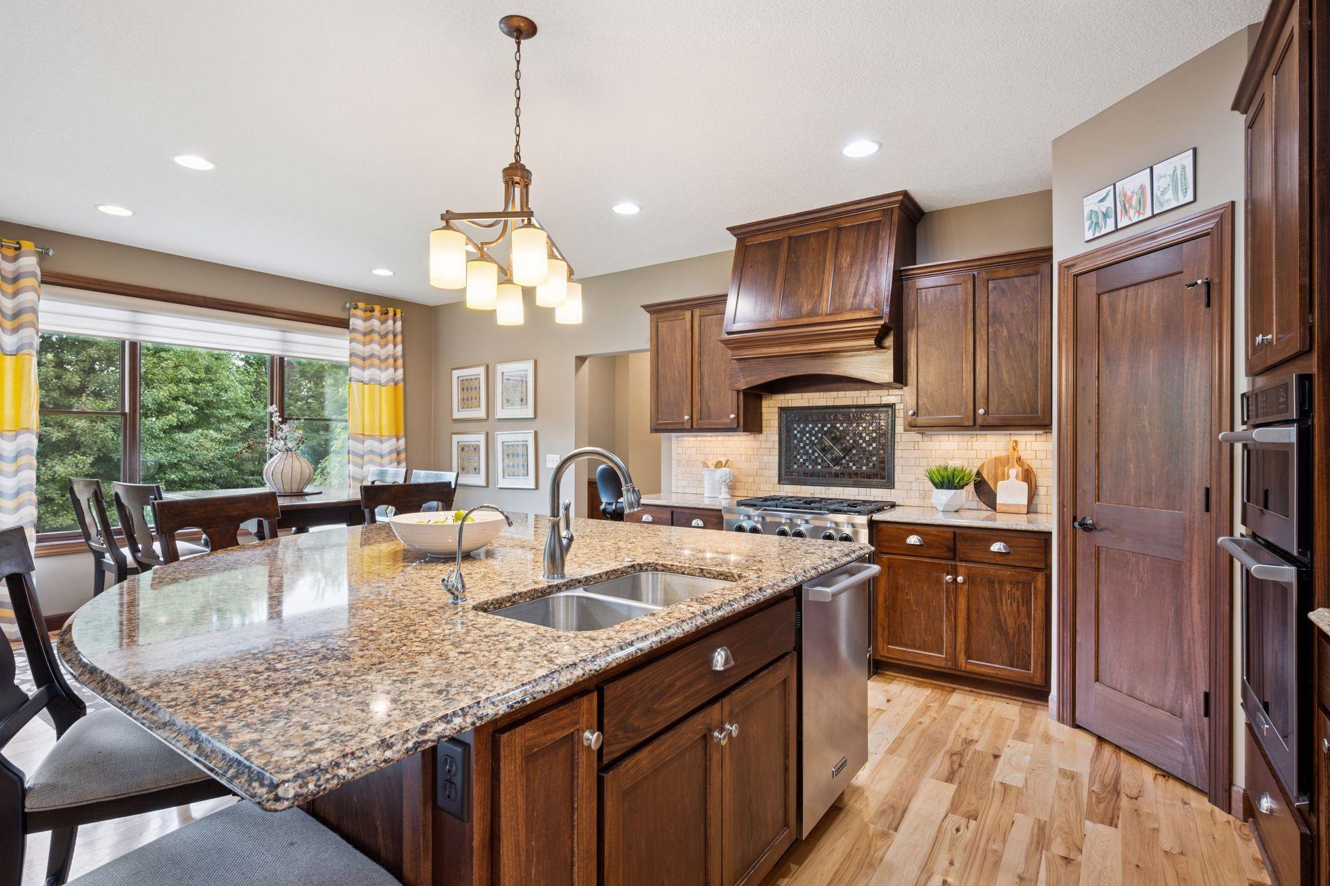 Welcome to this luxurious custom-built home on a nearly one-acre lot located in the Whispering Creek neighborhood, a quaint community of 36 homes featuring a private pool, clubhouse, park, and an outdoor sport court. Tucked away on a tranquil cul-de-sac with mature trees including apple trees! This residence showcases meticulous craftsmanship and thoughtful design suited for every phase of life. Grand main level living with a primary suite that features a spa-like bathroom offering heated floors, a double vanity, a spacious step-in shower, and an oversized walk-in closet with private laundry facilities. The kitchen is a chef's haven, featuring a pantry, a sizable center island with seating, high-end appliances including a 36" 6-burner dual fuel free standing range, convection wall ovens and an adjoining dinette that opens onto the main level maintenance free deck - ideal for seamless indoor-outdoor entertaining. A convenient office niche serves as a perfect workspace or homework area plus a spacious garage foyer with ample cubbies for storage. Upstairs, a versatile bonus entertainment room and three bedrooms, each with its own en-suite bathroom and walk-in closet, and a second huge laundry room offers convenience. The finished lower-level walk-out is designed for entertainment, featuring a sprawling wet bar, a cozy multi-sided fireplace, projector and screen, a wine tasting room, an exercise room or additional bedroom and another large guest suite. Step out to the oversized three-season screened porch for ultimate relaxation, creating a vacation atmosphere at home. The property includes a 4-car garage with heated floors, floor drains, sink with hot and cold water, wall organization units, and a convenient side service door. New roof. 3-zone HVAC! Discover unparalleled comfort and luxury in this exceptional property, thoughtfully crafted for discerning buyers seeking the ultimate in quality living.