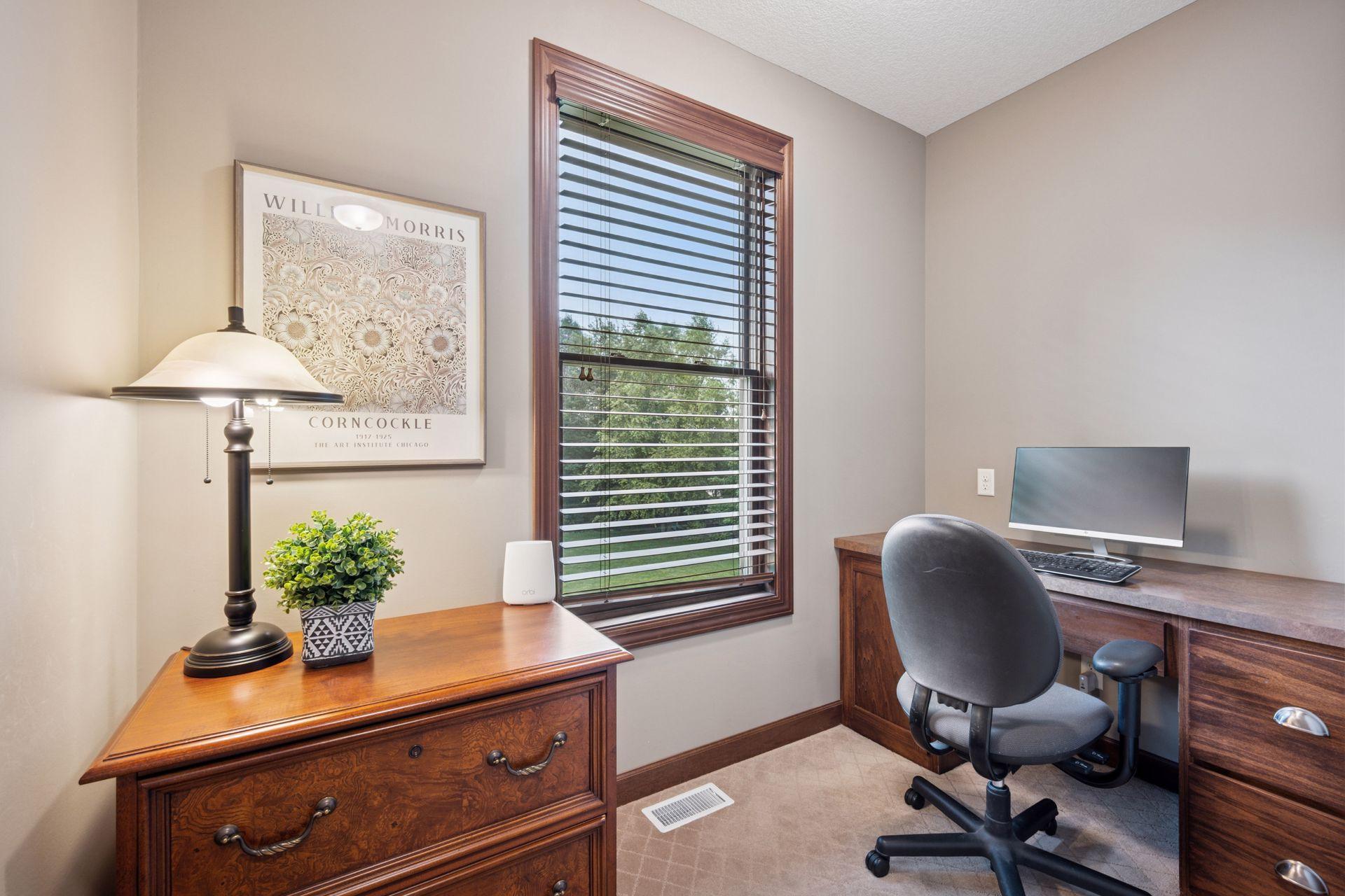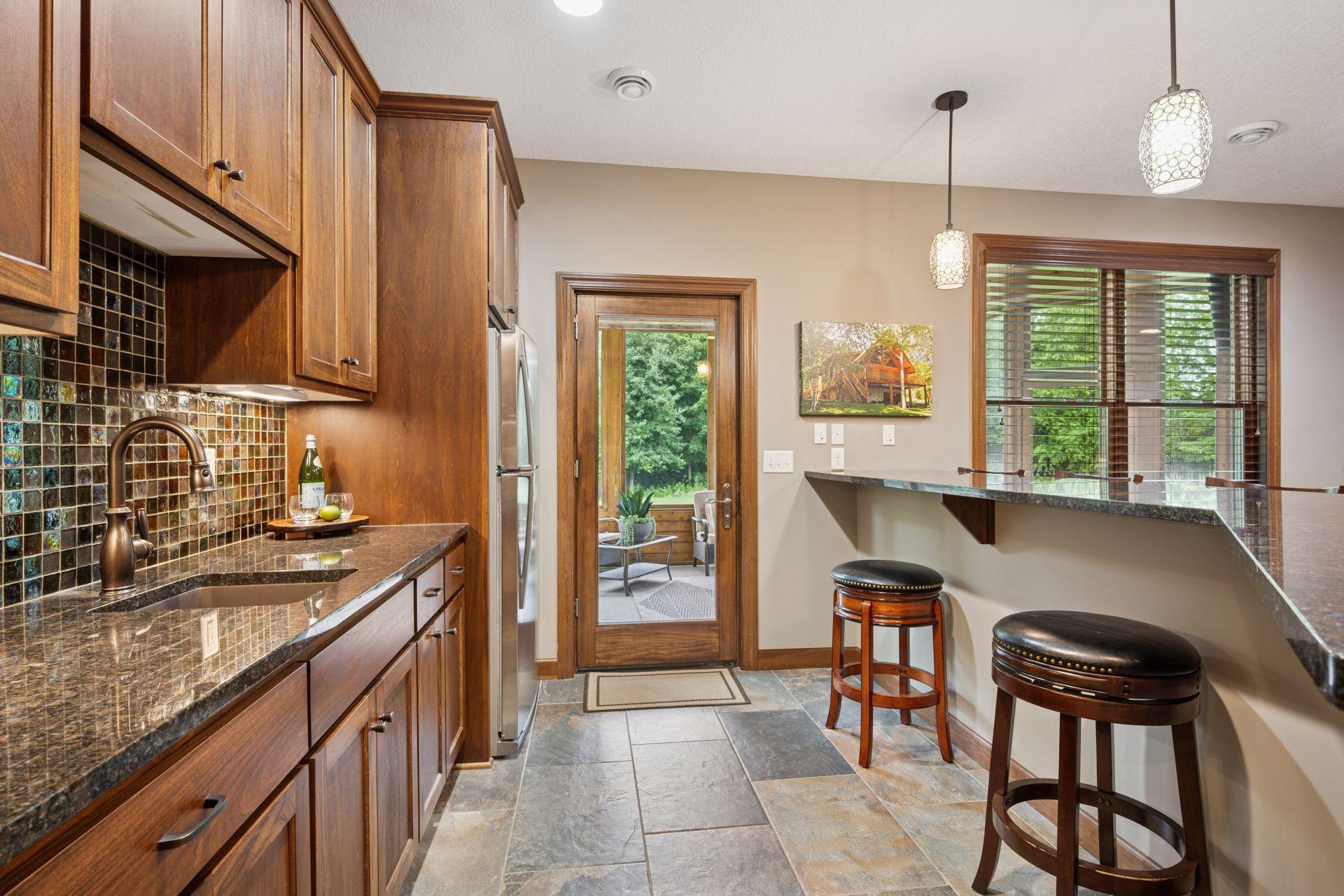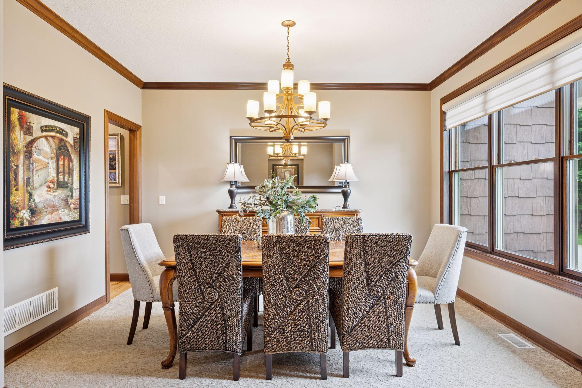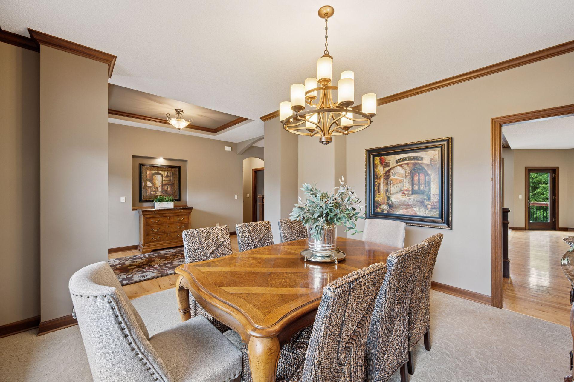 Welcome to this luxurious custom-built home on a nearly one-acre lot located in the Whispering Creek neighborhood, a quaint community of 36 homes featuring a private pool, clubhouse, park, and an outdoor sport court. Tucked away on a tranquil cul-de-sac with mature trees including apple trees! This residence showcases meticulous craftsmanship and thoughtful design suited for every phase of life. Grand main level living with a primary suite that features a spa-like bathroom offering heated floors, a double vanity, a spacious step-in shower, and an oversized walk-in closet with private laundry facilities. The kitchen is a chef's haven, featuring a pantry, a sizable center island with seating, high-end appliances including a 36" 6-burner dual fuel free standing range, convection wall ovens and an adjoining dinette that opens onto the main level maintenance free deck - ideal for seamless indoor-outdoor entertaining. A convenient office niche serves as a perfect workspace or homework area plus a spacious garage foyer with ample cubbies for storage. Upstairs, a versatile bonus entertainment room and three bedrooms, each with its own en-suite bathroom and walk-in closet, and a second huge laundry room offers convenience. The finished lower-level walk-out is designed for entertainment, featuring a sprawling wet bar, a cozy multi-sided fireplace, projector and screen, a wine tasting room, an exercise room or additional bedroom and another large guest suite. Step out to the oversized three-season screened porch for ultimate relaxation, creating a vacation atmosphere at home. The property includes a 4-car garage with heated floors, floor drains, sink with hot and cold water, wall organization units, and a convenient side service door. New roof. 3-zone HVAC! Discover unparalleled comfort and luxury in this exceptional property, thoughtfully crafted for discerning buyers seeking the ultimate in quality living.