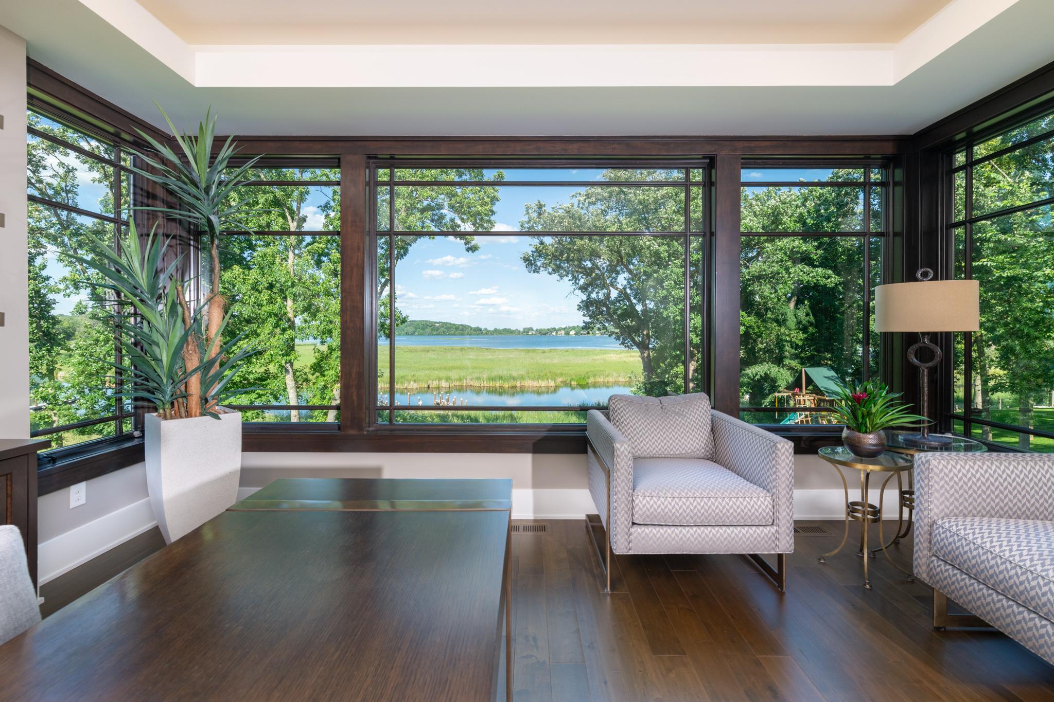 Welcome to your lakeside sanctuary-an executive Charles Cudd model home located on exclusive Halstead Bay of Lake Minnetonka. This impeccable home unfolds across 6,885 sq ft of architectural excellence, tailored for the luxury lifestyle. Sunlit living spaces open directly to Lake Minnetonka views, anchored by custom finishes cherry hardwoods, tile, natural stone, and metal. Enjoy your own two permanent docks with custom lighting for late summer nights. The home's lower level redefines entertaining with a designer wet bar (complete with beverage coolers!), wine wall, sauna, game lounge, workout studio, and full indoor sport court. Outside, expansive terraces host endless summer gatherings in your outdoor kitchen, complete with grill and keg cooler, and heated outdoor theater. There is also room to build in equity with plumbing set to add an additional bathroom for easy access from the dock. Situated within a private amenity-rich neighborhood-clubhouse, pool, playground, trails, pickleball courts-yet just 25 minutes from Minneapolis, this property blends retreat-style privacy with city convenience. Whether drawing a quiet morning cup of coffee by the lake or hosting grand gatherings. This home sets a new standard in lakeside luxury.