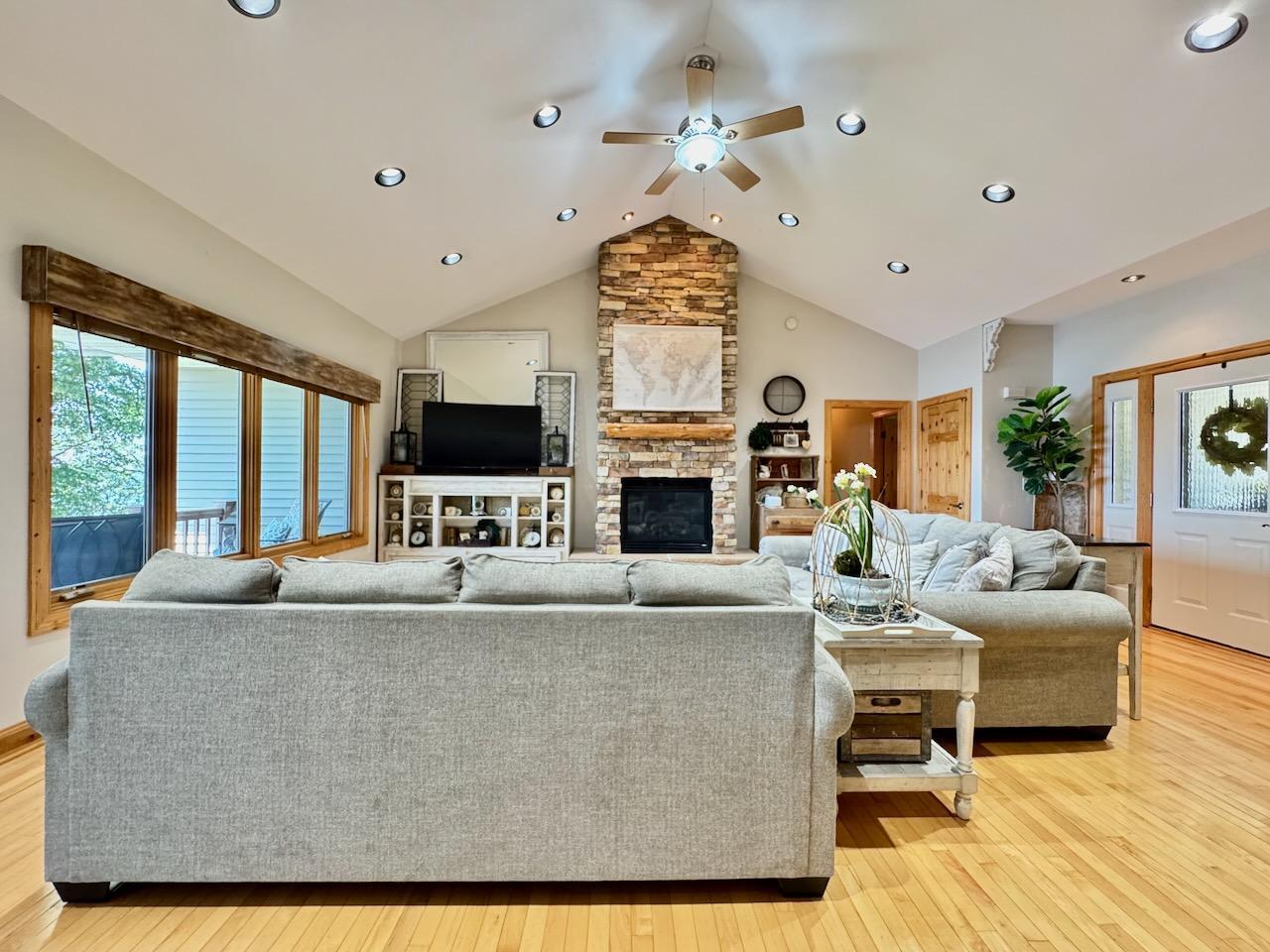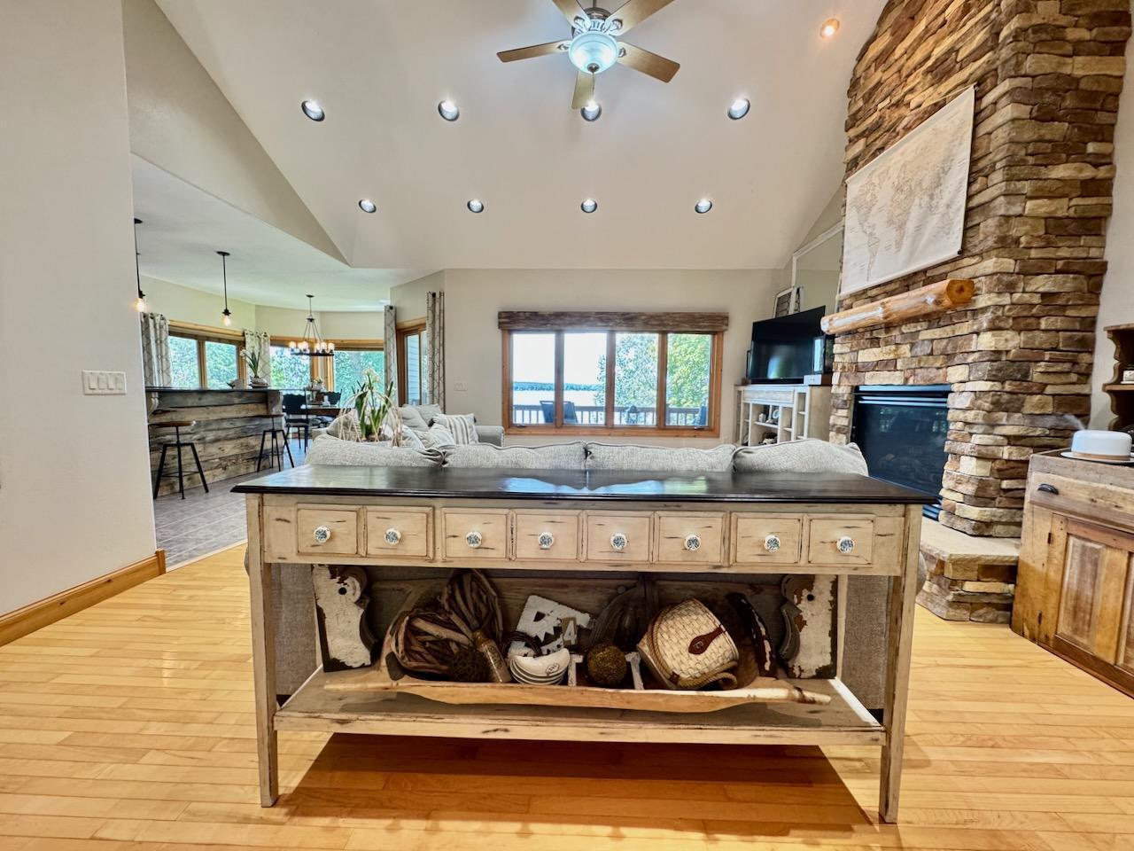 Welcome to your dream home on the coveted shores of West Battle Lake—where luxury, comfort, and the beauty of nature come together in perfect harmony. This immaculate 5-bedroom, 3-bathroom lakefront retreat was custom-built in 2006 with timeless design and high-quality craftsmanship throughout. Nestled on a beautifully landscaped lot with sweeping lake views and 136 feet of lake frontage, this property offers the ideal blend of upscale living and relaxed lakeside charm. Step inside to an inviting open-concept main floor featuring vaulted ceilings, rich hardwood floors, and a striking floor-to-ceiling stone fireplace that serves as the centerpiece of the living space. The wall of lakeside windows fills the home with natural light and offers stunning views from nearly every room. The spacious kitchen is perfect for gathering, with custom cabinetry, granite countertops, and a large center island that seamlessly connects to the dining and living areas. The main level also includes large bedrooms, including a luxurious primary suite with lake views, a walk-in closet, and a private bath. All three bathrooms are elegantly finished, featuring tile flooring and quality fixtures that reflect the home’s thoughtful design. Downstairs, the fully finished walkout basement offers even more room to spread out and enjoy, featuring a large family room perfect for movie nights, or game days. Two additional generously sized bedrooms, a large bonus room, and a full bath make this lower level ideal for guests or extended family. Outside, entertain on the spacious lakeside deck or unwind by the fire pit just steps from the shoreline. With an attached 2-stall garage featuring in-floor heat, plus a detached oversized 2-stall garage, there’s ample space for vehicles, lake toys, or a workshop. Whether you're looking for a year-round residence or a luxury lake getaway, this remarkable West Battle Lake home delivers privacy, space, and style—all on one of Minnesota’s most sought-after lakes.
