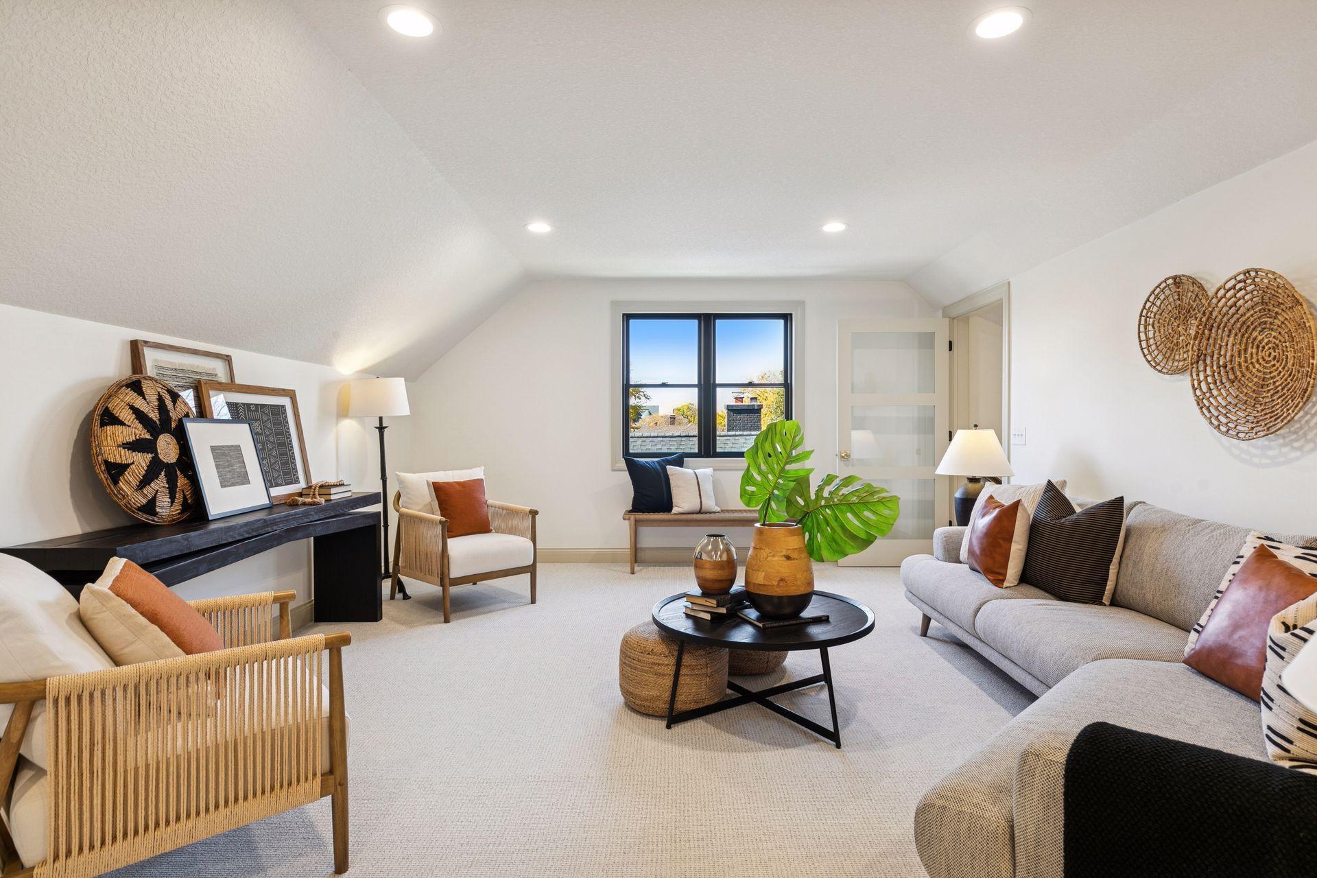 Exquisite new construction on an oversized 60'x150' lot in the heart of Macalester-Groveland. Perfectly positioned on a serene one-way block, this exceptional home combines timeless architectural elegance with the finest modern comforts. The main level showcases an open and inviting floor plan, featuring a chef's kitchen with a large center island, walk-through pantry, and a private office ideal for remote work. A charming front porch extends the living space and enhances the home's classic curb appeal. Upstairs, the impressive primary suite offers a luxurious retreat, accompanied by three bedrooms, two additional baths, and a spacious laundry room. The third level provides an expansive family room complete with wet bar and guest suite - perfect for entertaining or hosting overnight visitors. Set in one of St. Paul's most desirable neighborhoods, this home offers unbeatable access to both downtowns, the entire metro area, and the best of local living - just blocks from Summit Avenue, Macalester College, and the shops and restaurants of Grand Avenue.