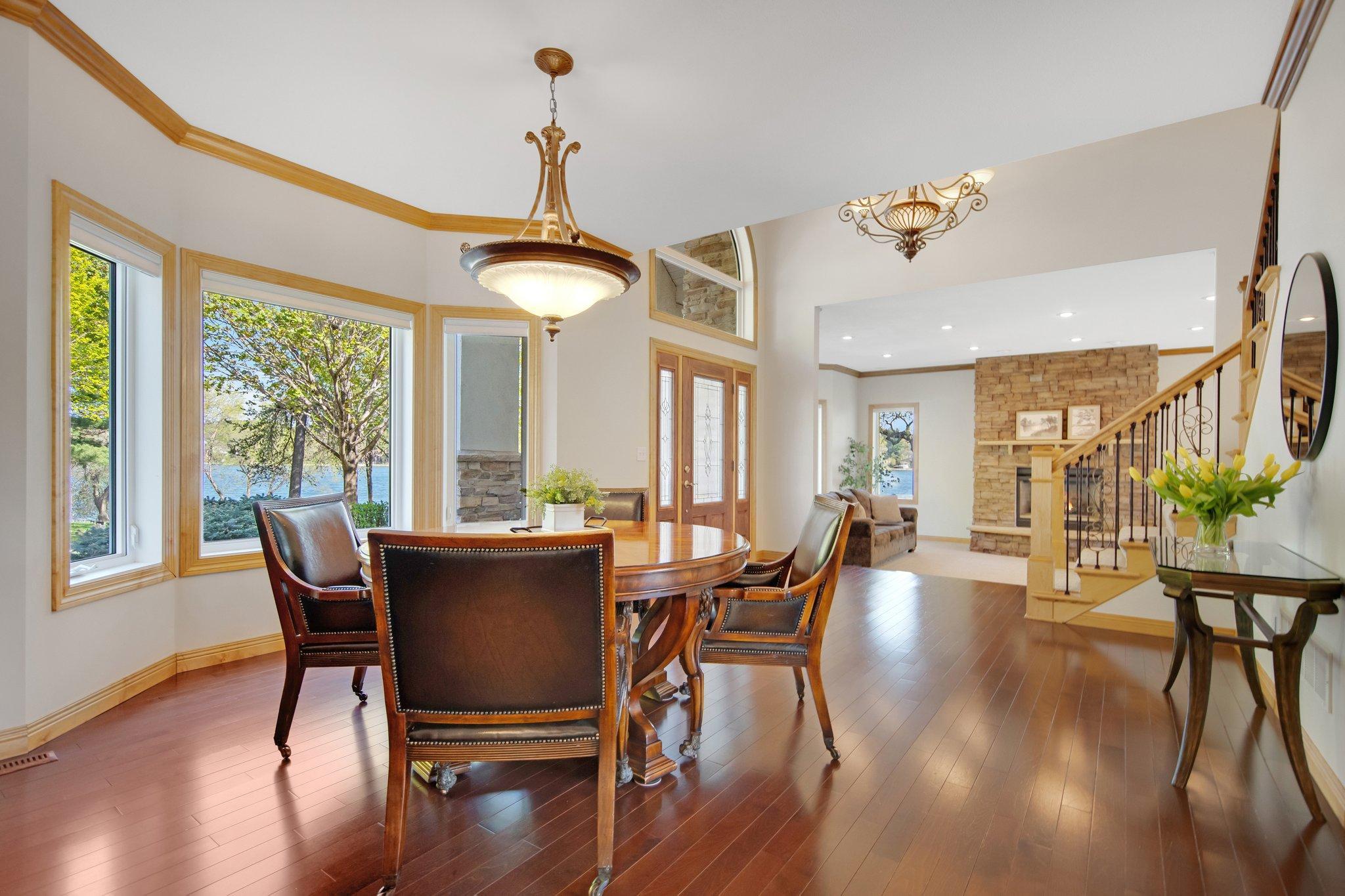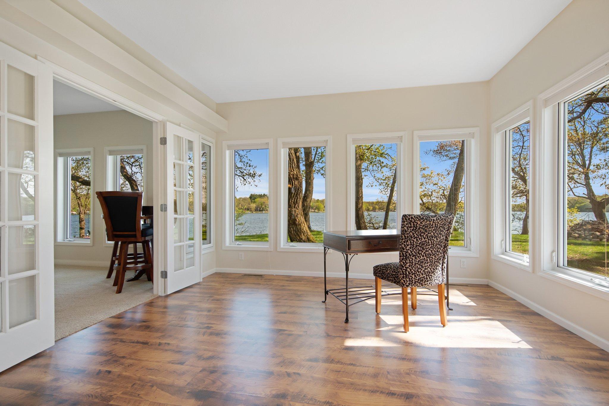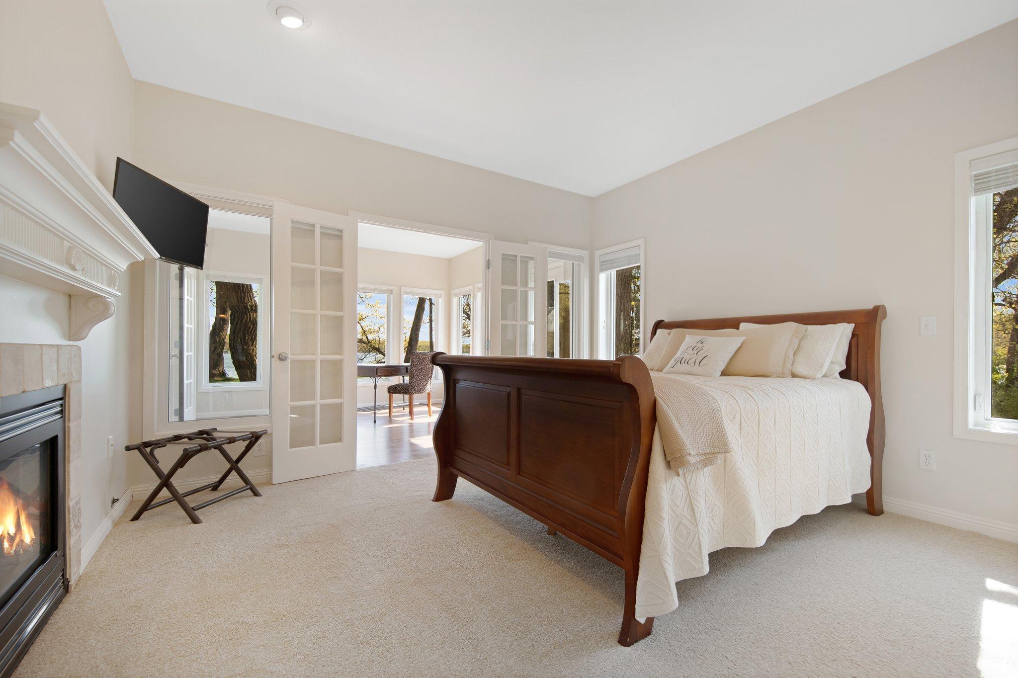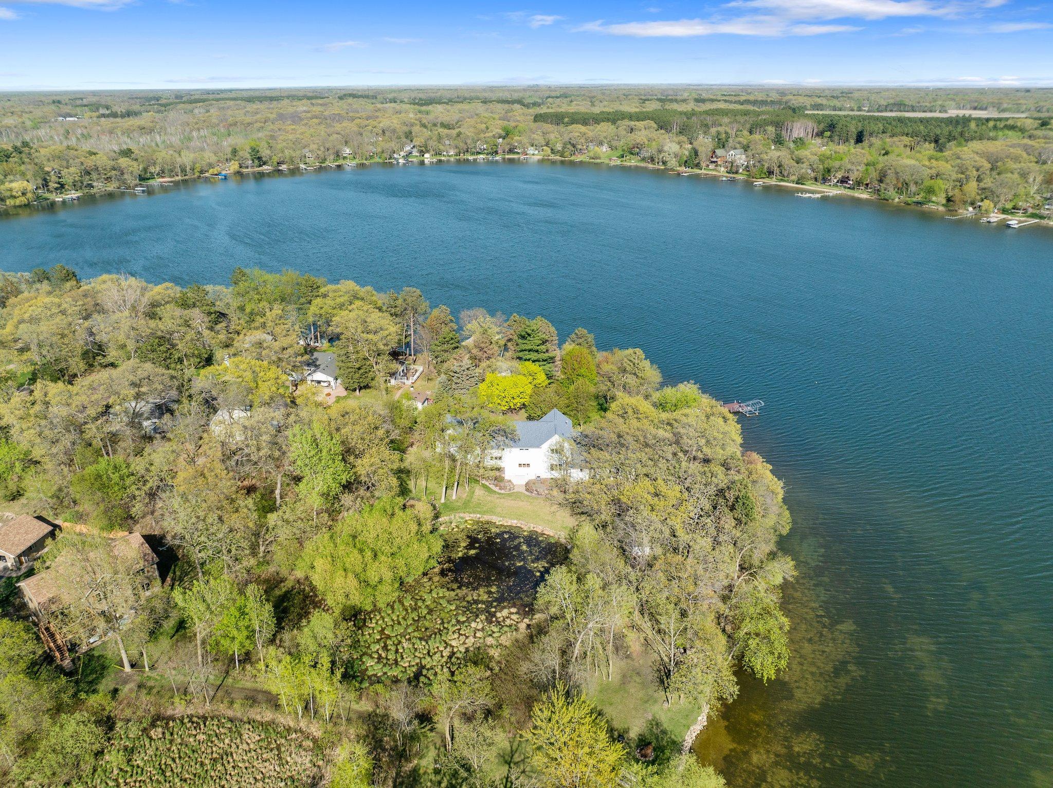 Bring the boat and start making memories on your very own private peninsula on Lake Julia, part of the highly sought-after Briggs Chain of Lakes. This home is one of a kind featuring 450+ feet of private lakeshore, and truly panoramic views from EVERY window. The pinnacle of lakeside luxury. From entertaining spaces, to storage, to privacy- this home has been thoughtfully laid out with nothing left behind. Inside, you’ll find two exquisite primary suites: one on the main floor with a private bath and a sitting room that could easily be converted into another bedroom, and another on the upper level featuring a statement floor-to-ceiling gas fireplace, en-suite bathroom, and space to add a laundry room for added convenience. The upper level also includes an additional bedroom and bathroom, plus a bonus room above the garage (with optional separate entrance), perfect for a home office, gym, guest suite or generation living. The main level is an entertainer’s dream, featuring views of the water from every window, an oversized bonus room flooded with natural light and complete with custom wet bar, multiple fireplaces, and a sun-drenched gourmet kitchen that flows effortlessly into the open living areas. Two bedrooms are located on the main floor, including an additional primary suite. Outside, continue to soak in the lake lifestyle at its finest—complete with a lakeside fire pit, outdoor gathering spaces, and endless shoreline views. Lake life comes with toys, and this lot boasts ample storage from the basement with exterior access to the 2 stall garage boathouse down by the water. This home truly is a rare gem found on Lake Julia offering a one-of-a-kind retreat with unmatched privacy, lakeshore, space, style, and exceptional setting on one of Minnesota’s most beautiful lake chains.