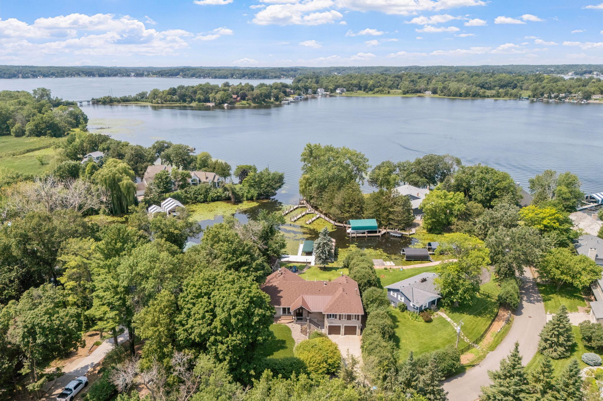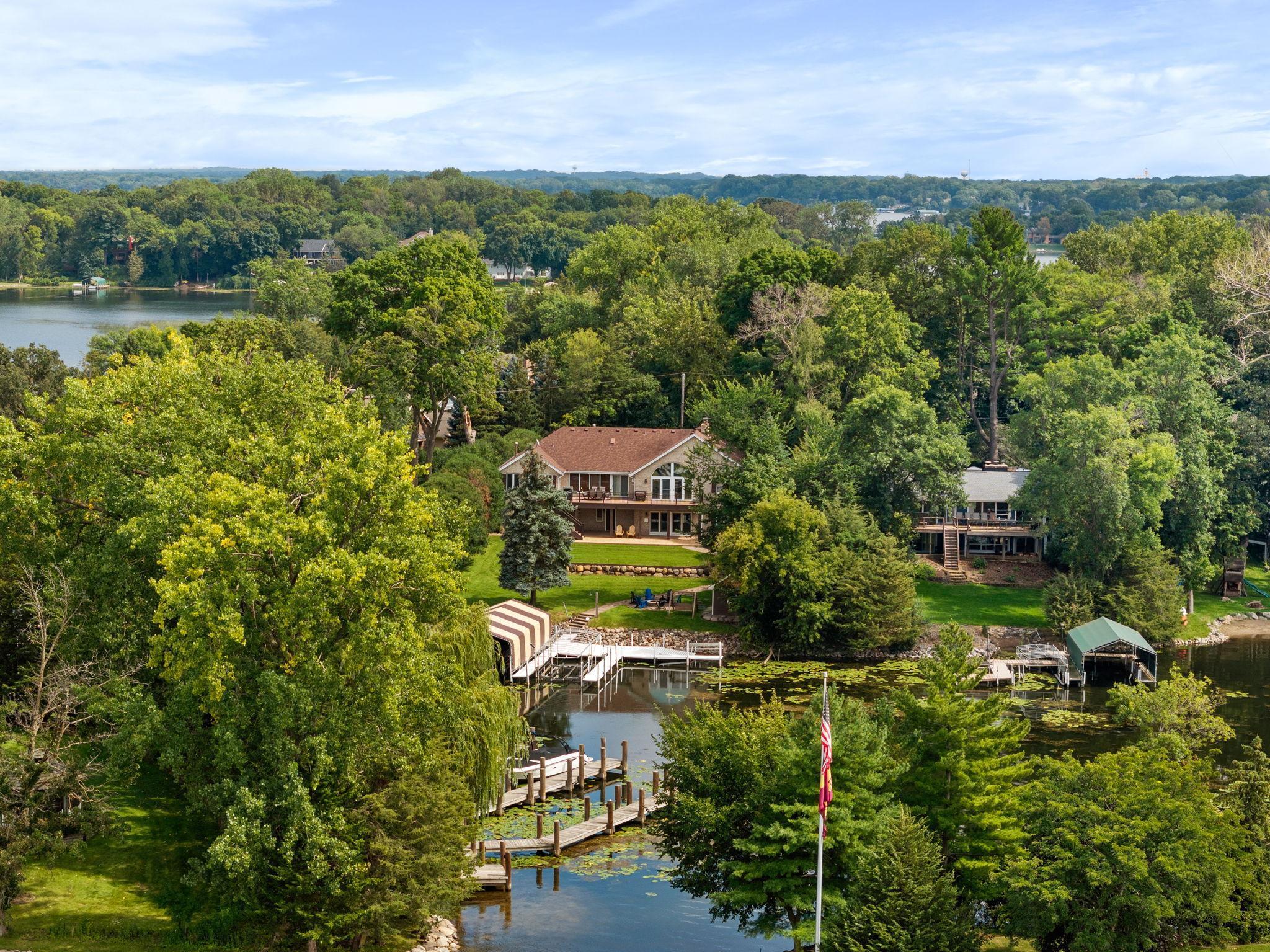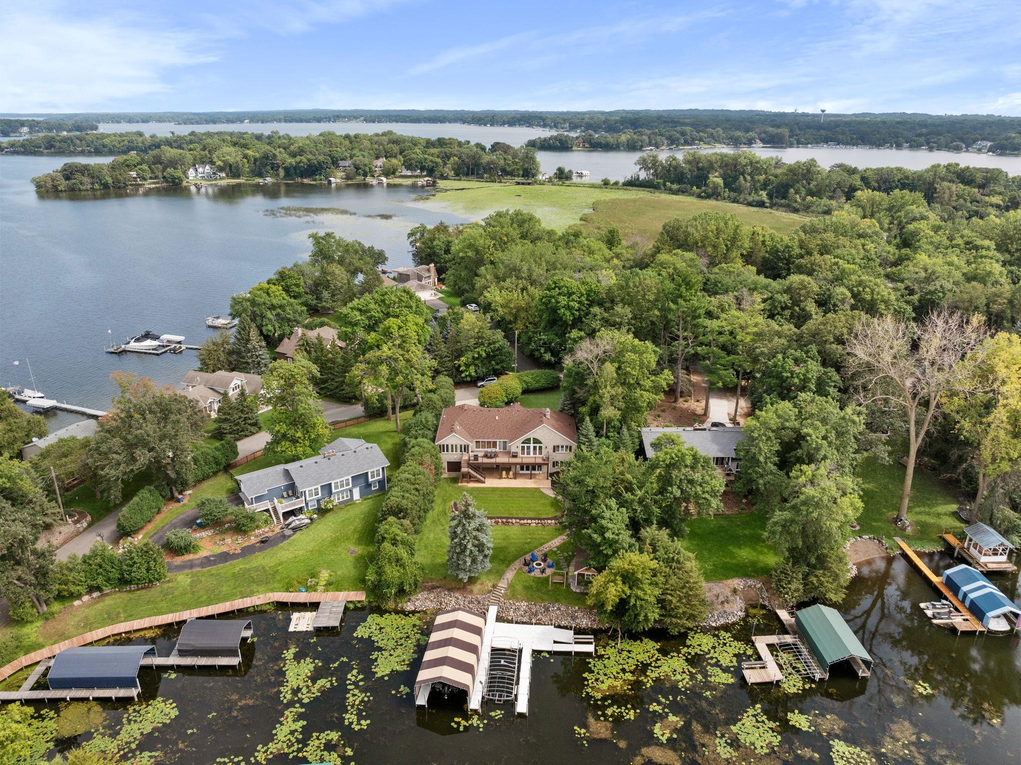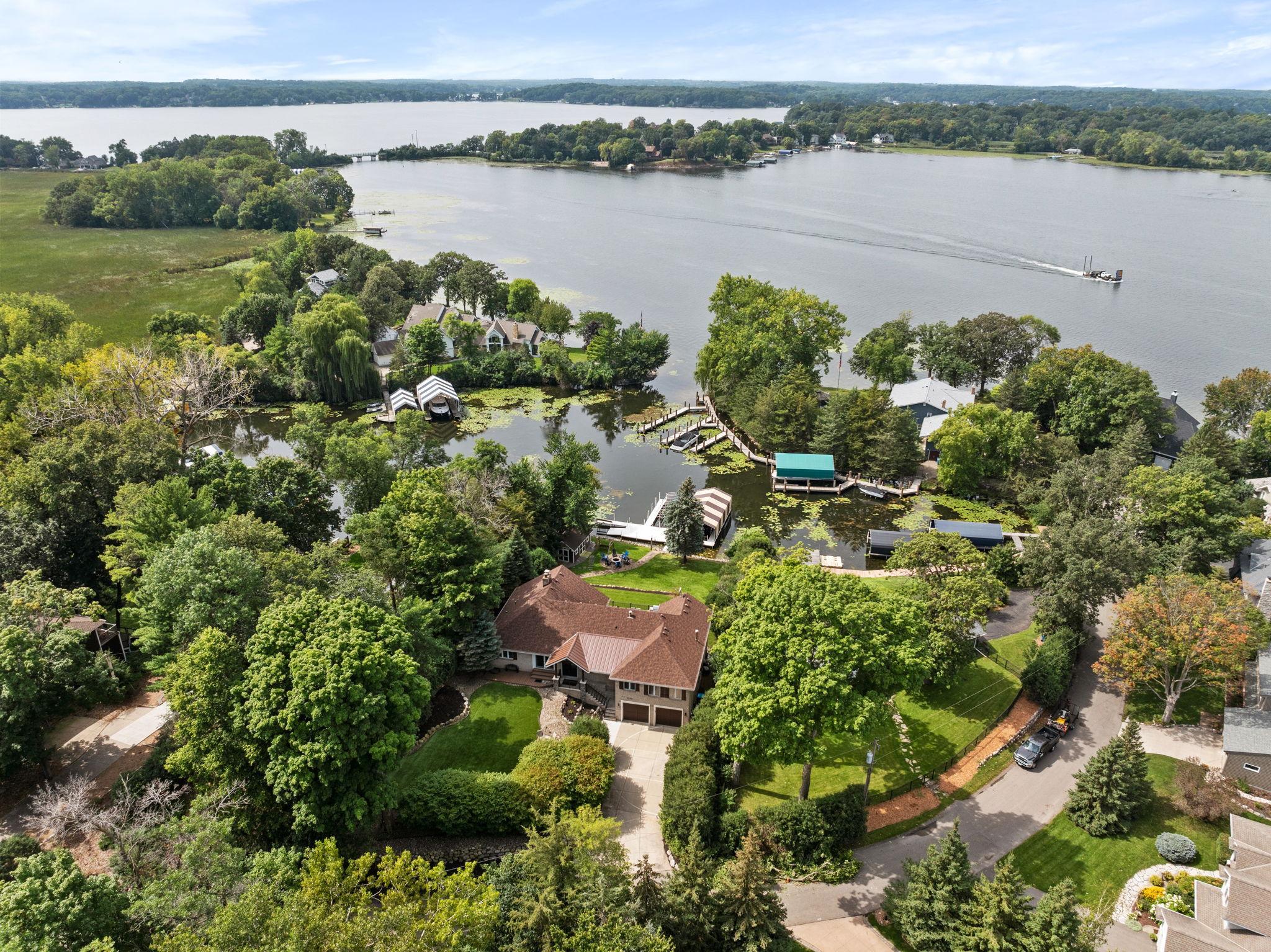 Comfortable, well-appointed Lake Minnetonka home situated on the shores of Phelps Bay. Freshly updated with new Marvin Infinity windows and refinished hardwood floors, this home is designed for everyday living and entertainment. The main level features a functional layout with a kitchen that overlooks the lake, a newly built deck with scenic views, a cozy living room with a stone fireplace, a laundry area, an office, and a spacious primary suite with a spa-like bathroom. The lower level offers extra space for relaxation and entertaining, including ample guest accommodations, a walk-out basement with resort-style features such as an oversized family room, a game area, and a sauna/steam room. Outside, enjoy a private bocce court and 100 feet of Lake Minnetonka waterfront with easily accessible dockage in a protected cove of Phelps Bay. The property also includes a large, four-car heated garage with backyard access, ample parking, and storage space. A turn-key option located on historic Enchanted Island, Lake Minnetonka.