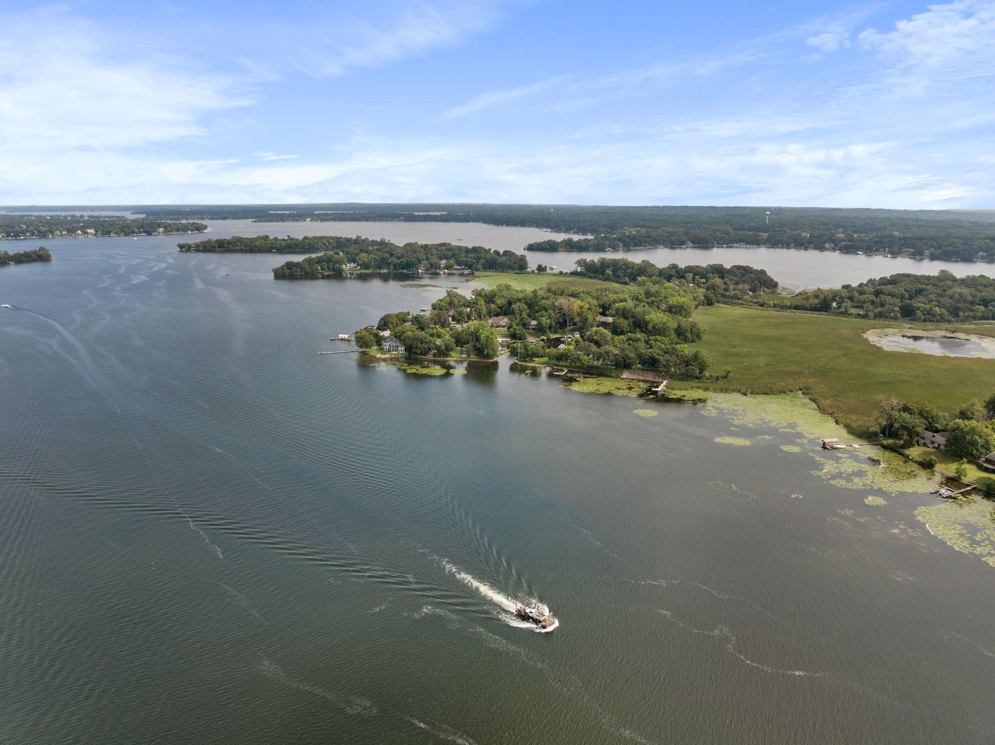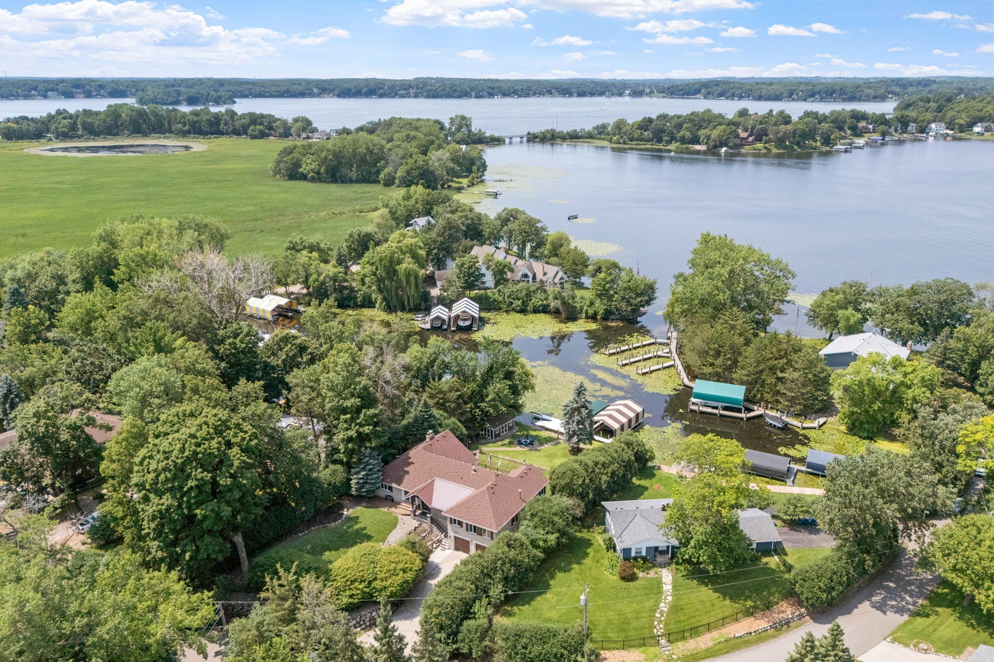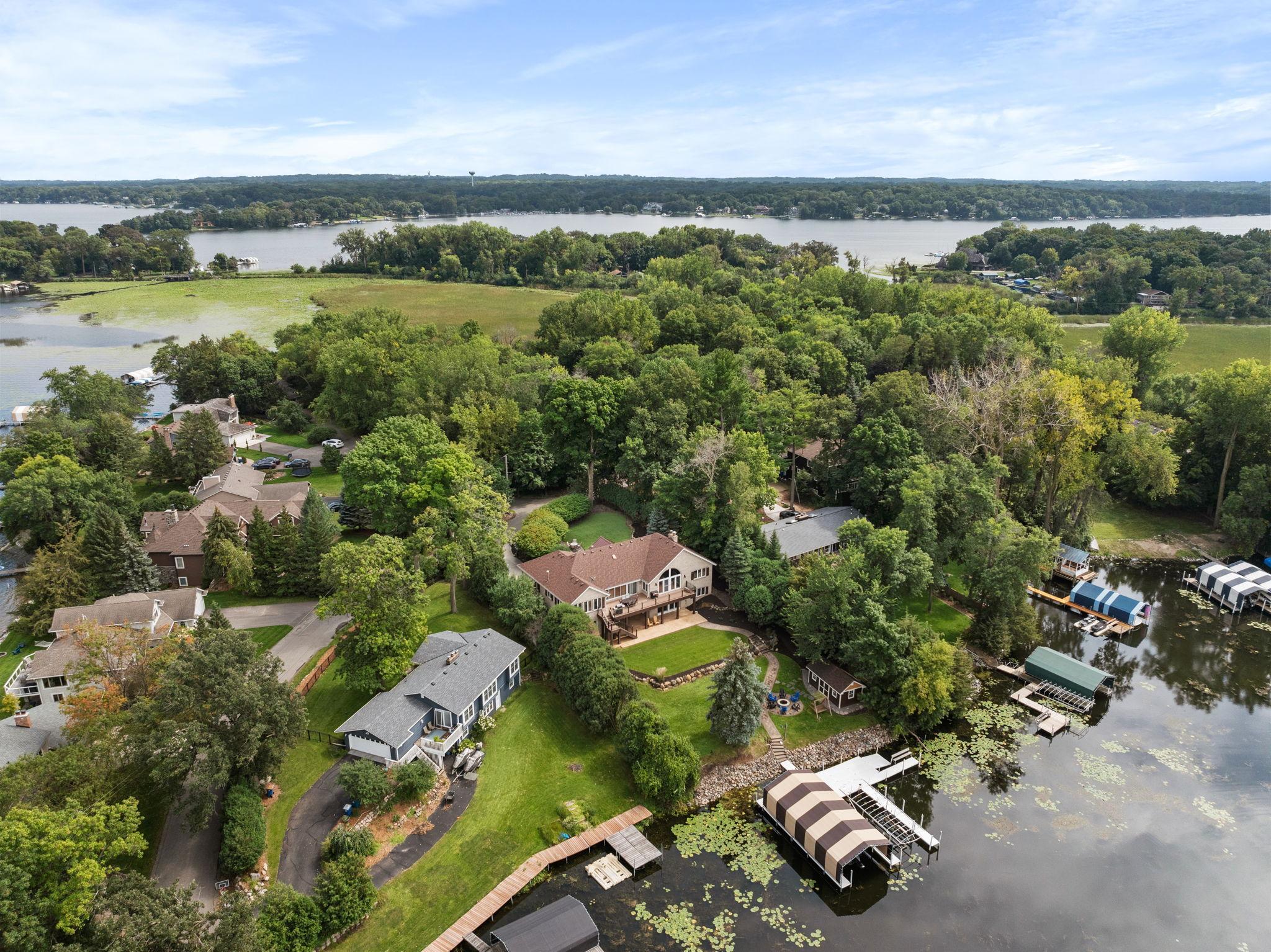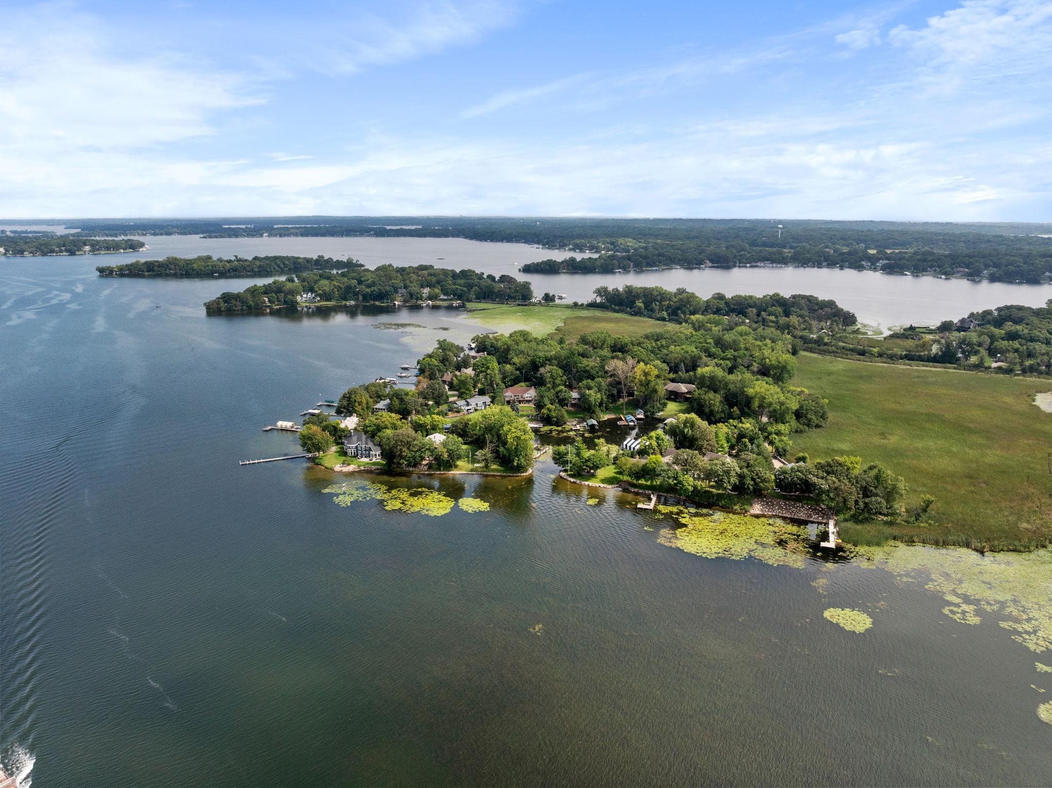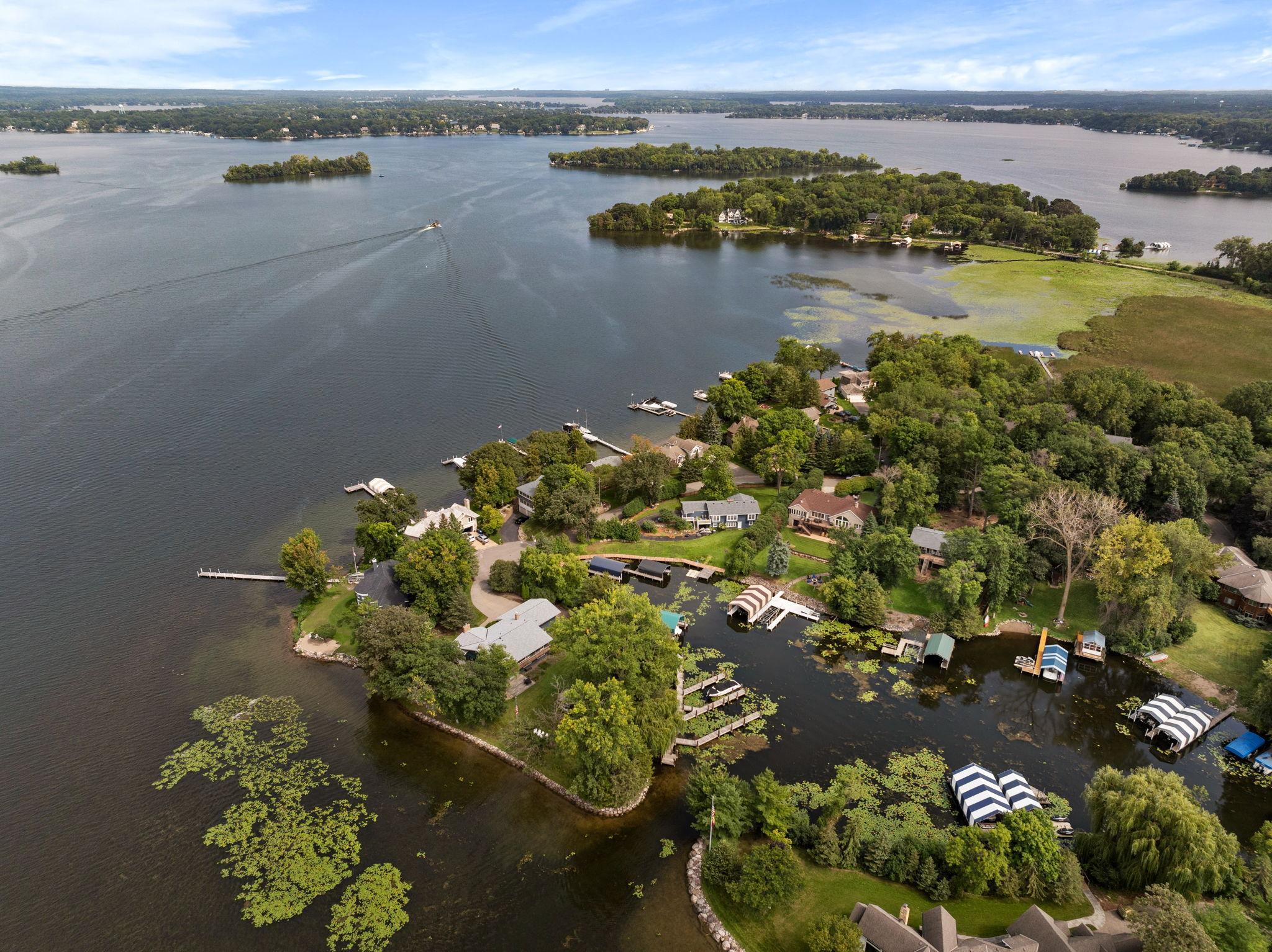 Comfortable, well-appointed Lake Minnetonka home situated on the shores of Phelps Bay. Freshly updated with new Marvin Infinity windows and refinished hardwood floors, this home is designed for everyday living and entertainment. The main level features a functional layout with a kitchen that overlooks the lake, a newly built deck with scenic views, a cozy living room with a stone fireplace, a laundry area, an office, and a spacious primary suite with a spa-like bathroom. The lower level offers extra space for relaxation and entertaining, including ample guest accommodations, a walk-out basement with resort-style features such as an oversized family room, a game area, and a sauna/steam room. Outside, enjoy a private bocce court and 100 feet of Lake Minnetonka waterfront with easily accessible dockage in a protected cove of Phelps Bay. The property also includes a large, four-car heated garage with backyard access, ample parking, and storage space. A turn-key option located on historic Enchanted Island, Lake Minnetonka.