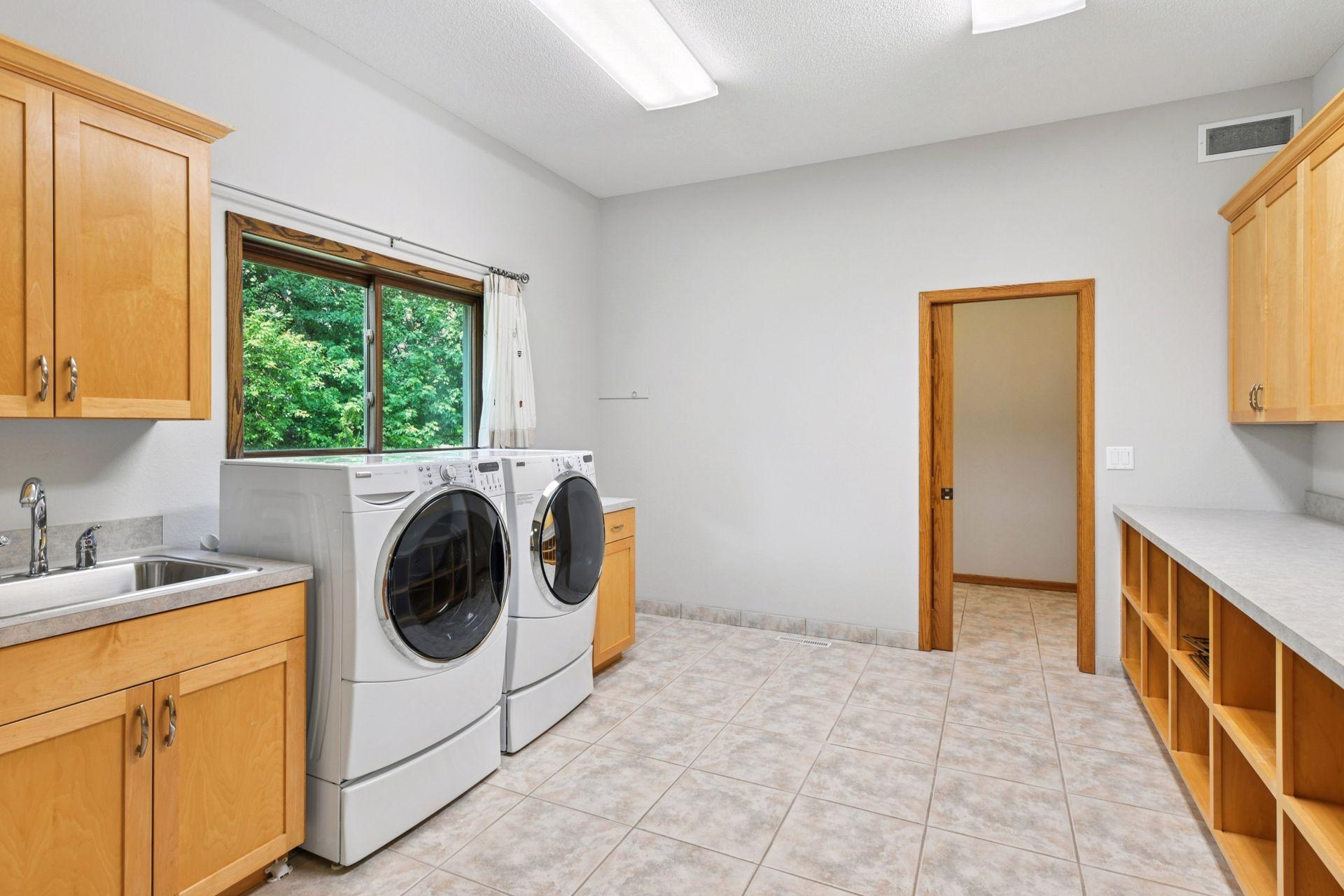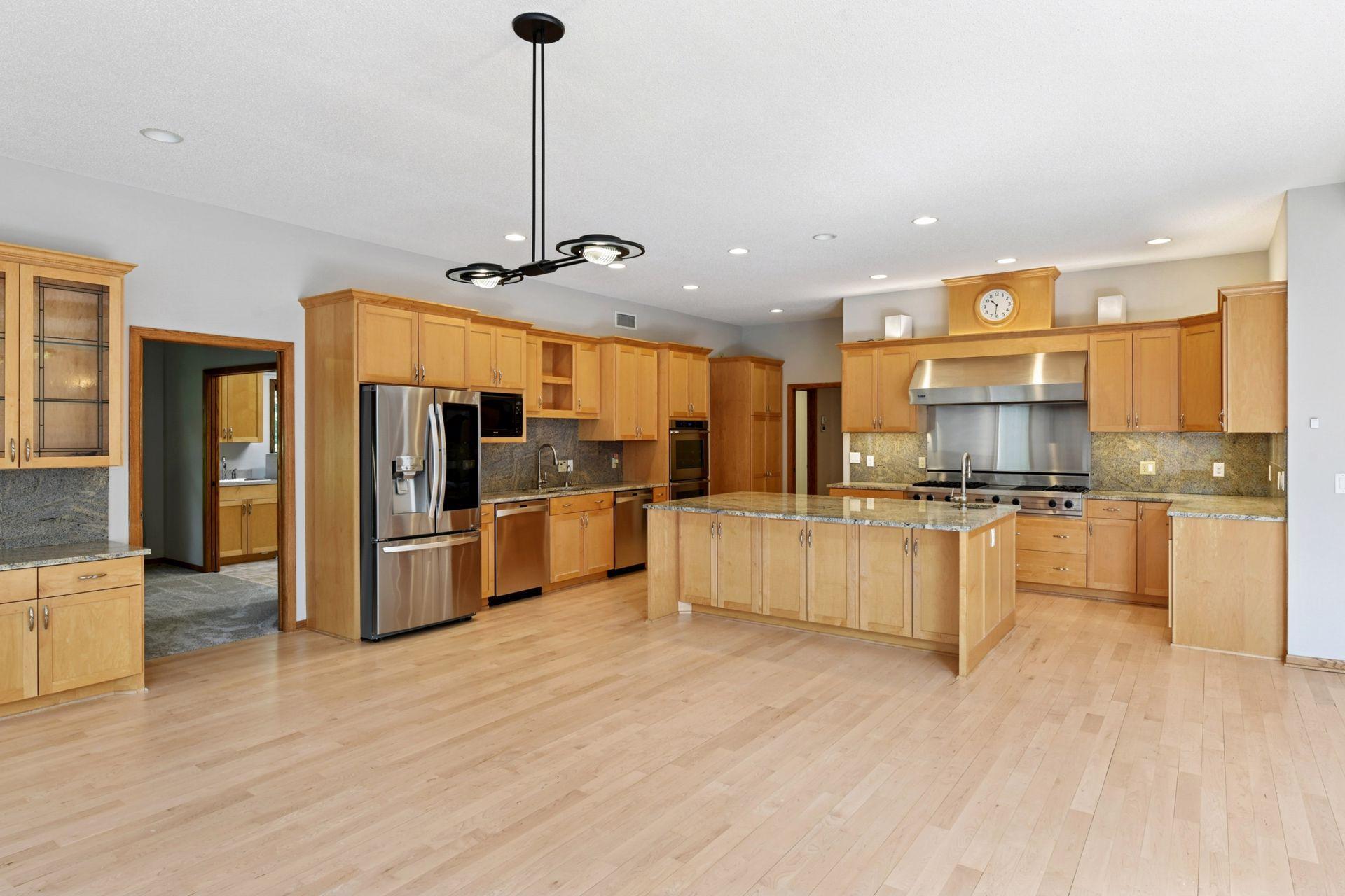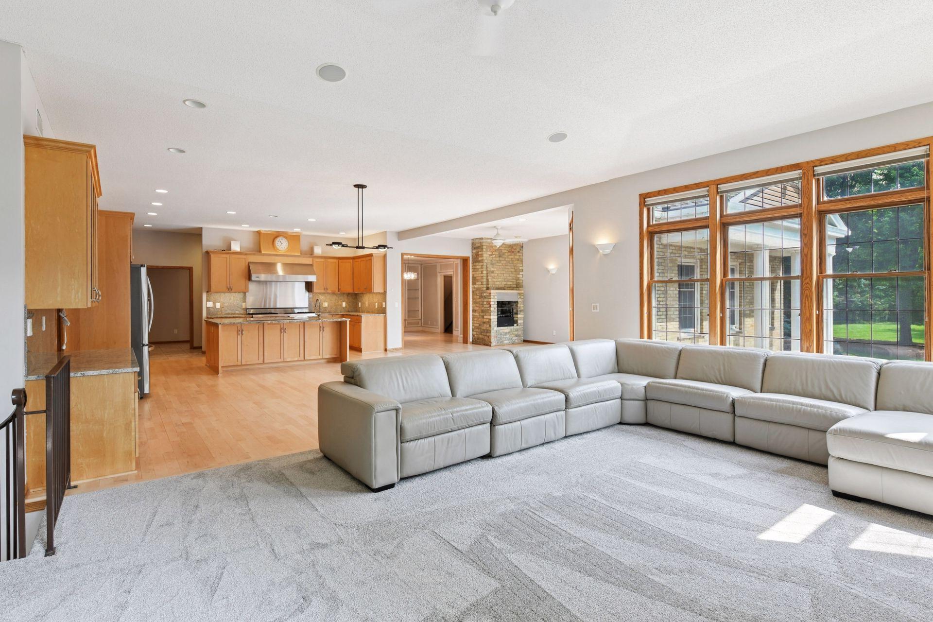 Welcome to this one-of-a-kind estate, nestled on 3 wooded acres in the heart of Gem Lake. Ideally located near major highways, shopping, and dining, this stunning property offers the best of both worlds—ultimate privacy with easy access to city amenities. Step inside to discover a thoughtfully designed home featuring expansive rooms, abundant natural light, and elegant details throughout. Craftsmanship shines in the intricate woodworking, rich paneling, and custom wainscoting. An entertainer’s delight, the home boasts a formal dining room with built-in shelving and a gourmet kitchen designed for both style and function. The kitchen features an oversized center island with counter-height seating, multiple sinks, an indoor grill, and a cozy hearth room. A spacious mudroom entry off the garage includes space for a substantial walk-in closet, and two main-level offices offer versatility—easily converted into additional bedrooms if desired. The main level also offers true single-level living, including a welcoming foyer and a luxurious primary suite complete with its own four-season porch, a fireplace, a cedar-lined walk-in closet, a steam shower, and a private deck. A beautifully crafted curved staircase leads to the upper level, which includes three additional bedrooms—one with an en-suite bath and two that share a spacious Jack-and-Jill bathroom. The finished lower level is an entertainer’s dream, featuring a full second kitchen, game room, family room, two additional bedrooms, a spa-like bathroom with space for a massage table, and a dedicated fitness room. Generous storage and workshop areas are also included. Heated flooring throughout the home includes a mix of hardwood, tile, and brand-new carpet, ensuring warmth and comfort in every room. Outside, a large paver patio leads to a screened-in outdoor pool—perfect for critter and bug-free summer gatherings. The pool house offers additional storage and a bright solarium/changing room for guests to relax or refresh. Additional exterior highlights include a large pole shed, a drive-through 4-car garage, and beautifully maintained grounds. Recent mechanical updates include four geothermal units, solar panels, water heaters, an Owens generator capable of powering the entire home, and an electric vehicle charger. This exceptional estate offers a rare blend of luxury, function, and natural serenity—ideal for entertaining, multigenerational living, or simply enjoying the beauty of your own private retreat. A truly extraordinary home that must be seen to be fully appreciated.