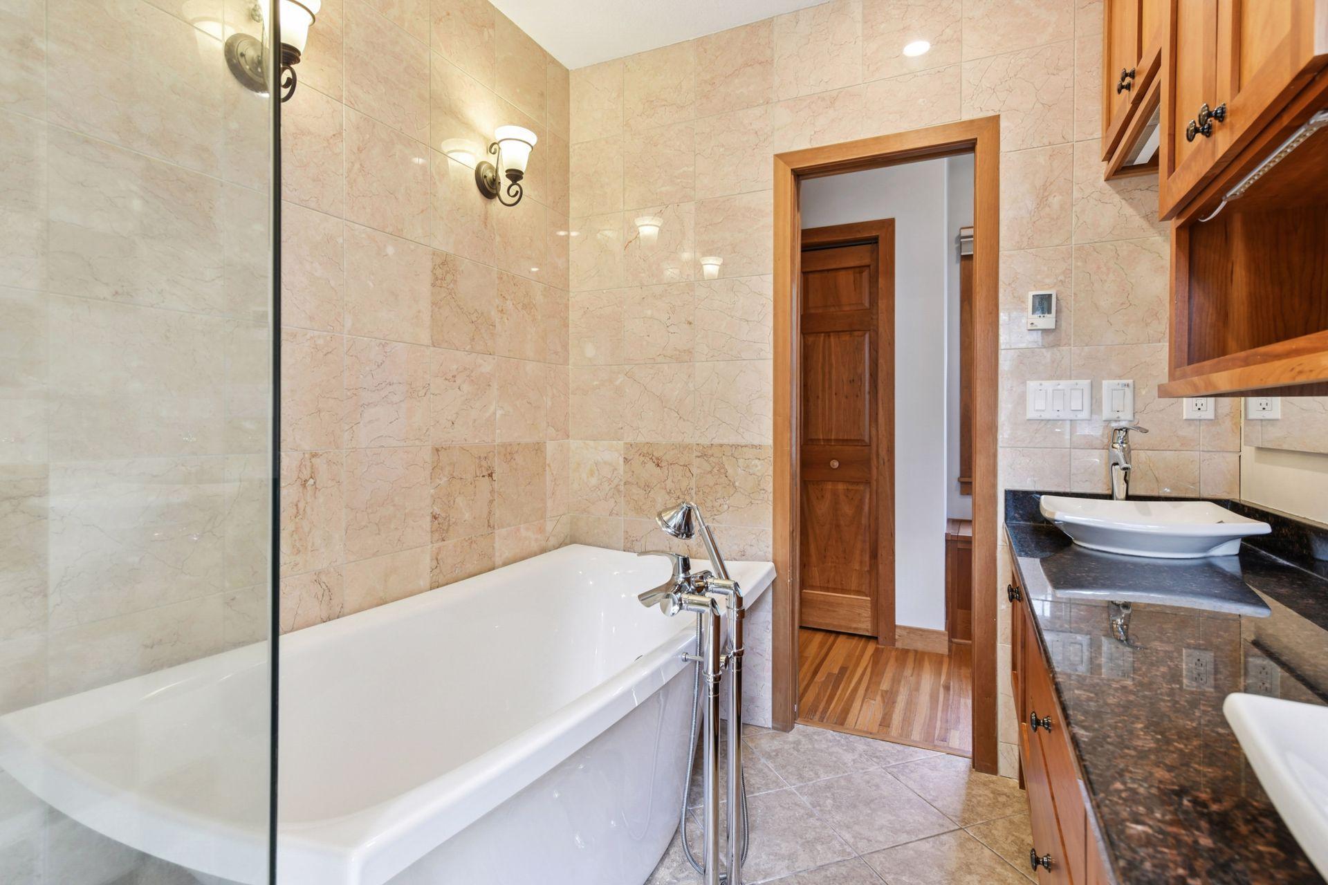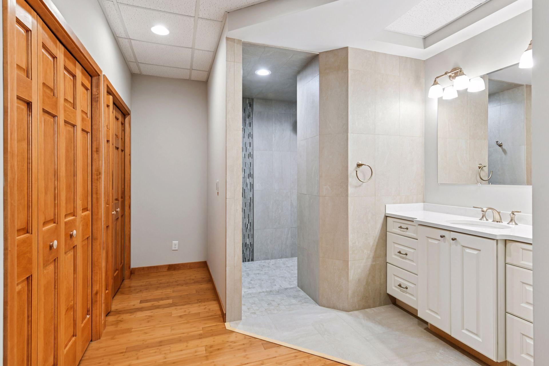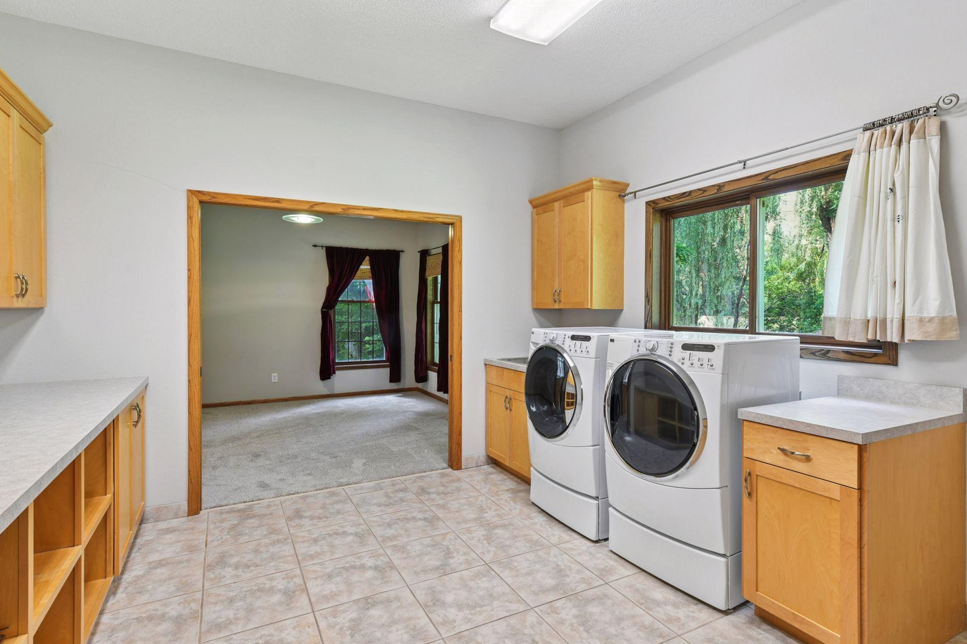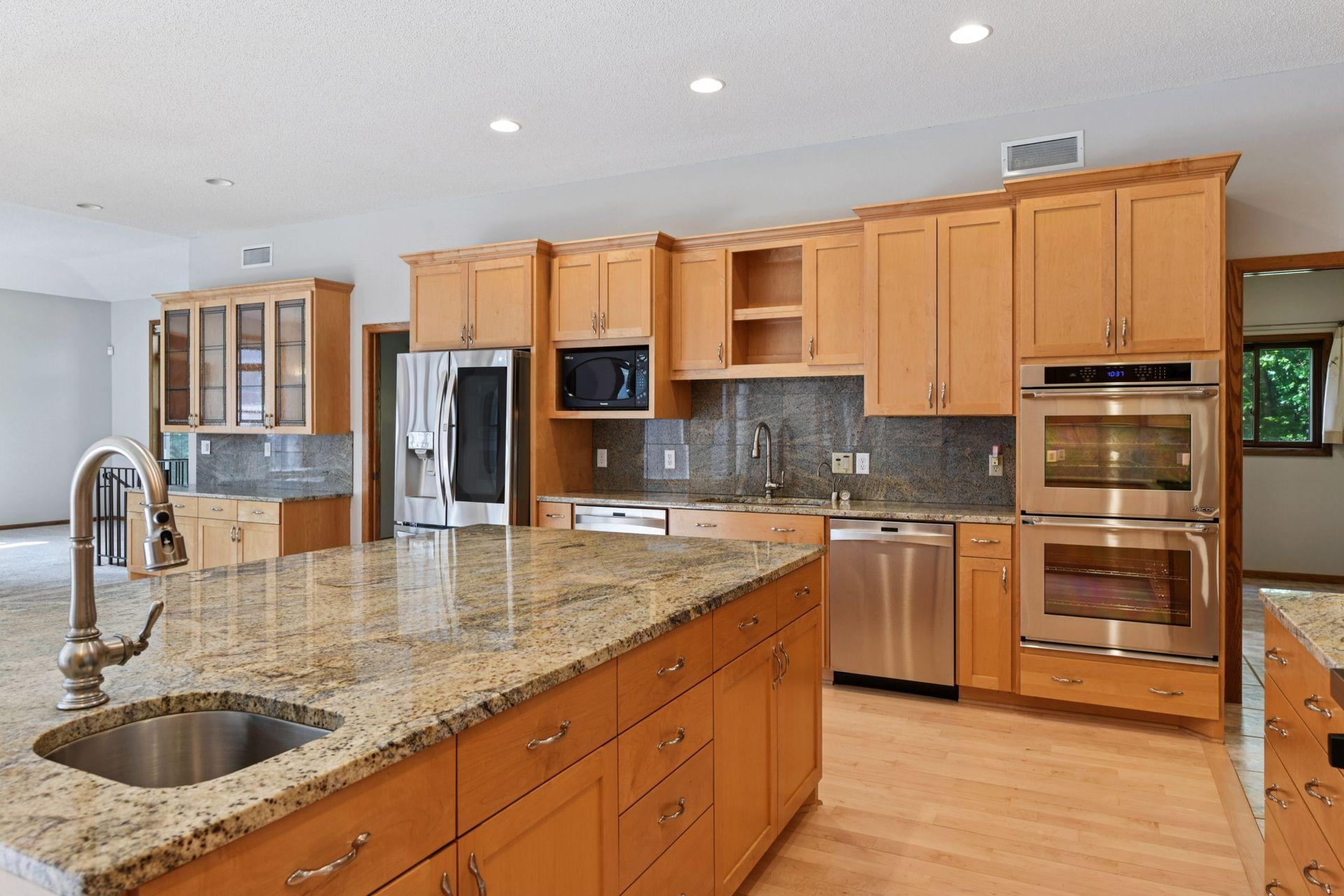 Welcome to this one-of-a-kind estate, nestled on 3 wooded acres in the heart of Gem Lake. Ideally located near major highways, shopping, and dining, this stunning property offers the best of both worlds—ultimate privacy with easy access to city amenities. Step inside to discover a thoughtfully designed home featuring expansive rooms, abundant natural light, and elegant details throughout. Craftsmanship shines in the intricate woodworking, rich paneling, and custom wainscoting. An entertainer’s delight, the home boasts a formal dining room with built-in shelving and a gourmet kitchen designed for both style and function. The kitchen features an oversized center island with counter-height seating, multiple sinks, an indoor grill, and a cozy hearth room. A spacious mudroom entry off the garage includes space for a substantial walk-in closet, and two main-level offices offer versatility—easily converted into additional bedrooms if desired. The main level also offers true single-level living, including a welcoming foyer and a luxurious primary suite complete with its own four-season porch, a fireplace, a cedar-lined walk-in closet, a steam shower, and a private deck. A beautifully crafted curved staircase leads to the upper level, which includes three additional bedrooms—one with an en-suite bath and two that share a spacious Jack-and-Jill bathroom. The finished lower level is an entertainer’s dream, featuring a full second kitchen, game room, family room, two additional bedrooms, a spa-like bathroom with space for a massage table, and a dedicated fitness room. Generous storage and workshop areas are also included. Heated flooring throughout the home includes a mix of hardwood, tile, and brand-new carpet, ensuring warmth and comfort in every room. Outside, a large paver patio leads to a screened-in outdoor pool—perfect for critter and bug-free summer gatherings. The pool house offers additional storage and a bright solarium/changing room for guests to relax or refresh. Additional exterior highlights include a large pole shed, a drive-through 4-car garage, and beautifully maintained grounds. Recent mechanical updates include four geothermal units, solar panels, water heaters, an Owens generator capable of powering the entire home, and an electric vehicle charger. This exceptional estate offers a rare blend of luxury, function, and natural serenity—ideal for entertaining, multigenerational living, or simply enjoying the beauty of your own private retreat. A truly extraordinary home that must be seen to be fully appreciated.