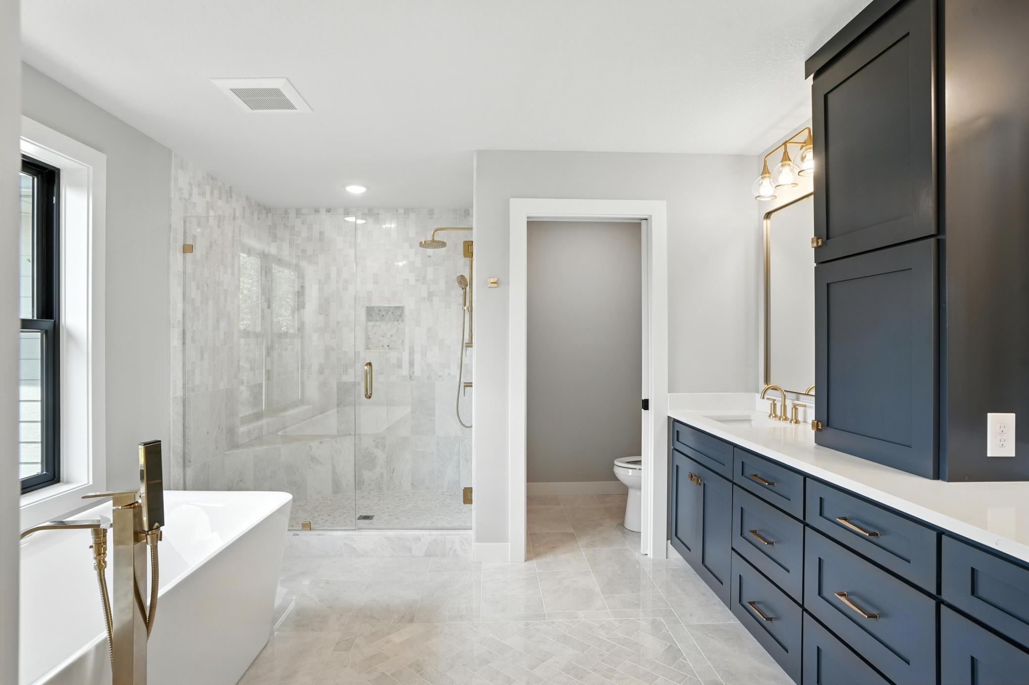 Nestled in an established Minnetonka neighborhood, this gorgeous new build home from award winning Castle Gate Construction is tucked back into your half acre lot among mature trees, offering a mix of privacy, tranquility and convenience. Inside, you’ll find a well-appointed floor plan designed for both everyday living as well as entertaining. Much of the main level has a sprawling open concept layout encompassing the living room, kitchen and informal dining room with access to the screened porch. Recessed crown molding ceilings and paneled walls abound. The Gourmet kitchen has Thermador appliances, custom cabinetry and features a 9 ft island, double wall oven, quartz countertops and walk in pantry. The informal dining room opens up to your screened-in porch. Formal dining and a main level bedroom and bath round out the remaining space, along with a mudroom and closet off the garage. The half bath will be plumbed in for a future shower option. Perfect set-up for a guest suite! Upstairs, the primary suite features a tray ceiling, a substantial walk-in closet and an expansive primary bath including a walk-in shower with a sitting bench as well as a stand-alone soaking tub. A spacious loft offers additional living space, along with bedrooms two and three, which share a bath. The fourth bedroom on the upper level has a full ensuite bath and linen closet. The fully finished, insulated and heated three-stall garage has an expanded 3rd stall that is 31 ft deep! Extensive landscaping includes a boulder privacy wall. Located in the Minnetonka school district just a few minutes’ drive from downtown Excelsior and Lake Minnetonka as well as just minutes from parks, trails. Construction is underway but there is potentially still time to make some of your own selections. Pictures are from a similar home and colors/selections will be different.