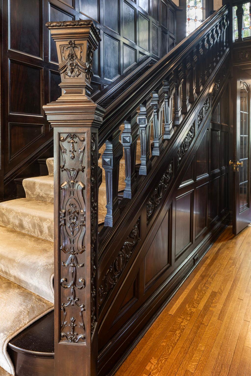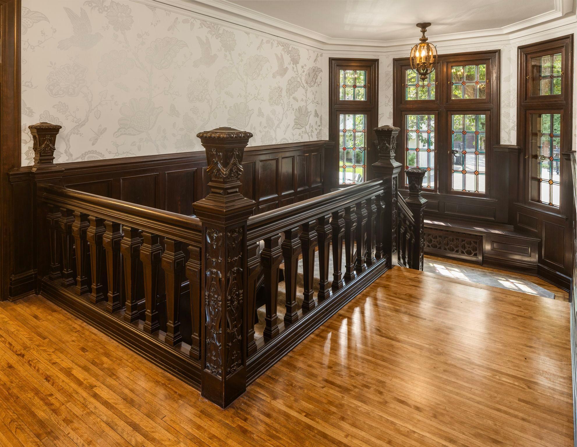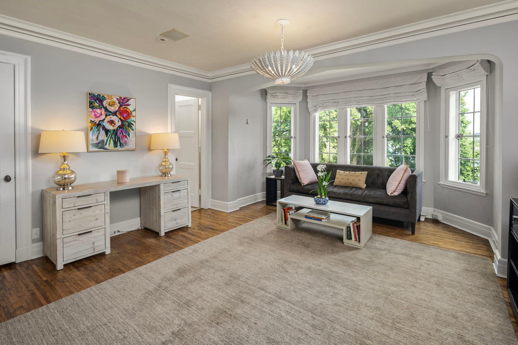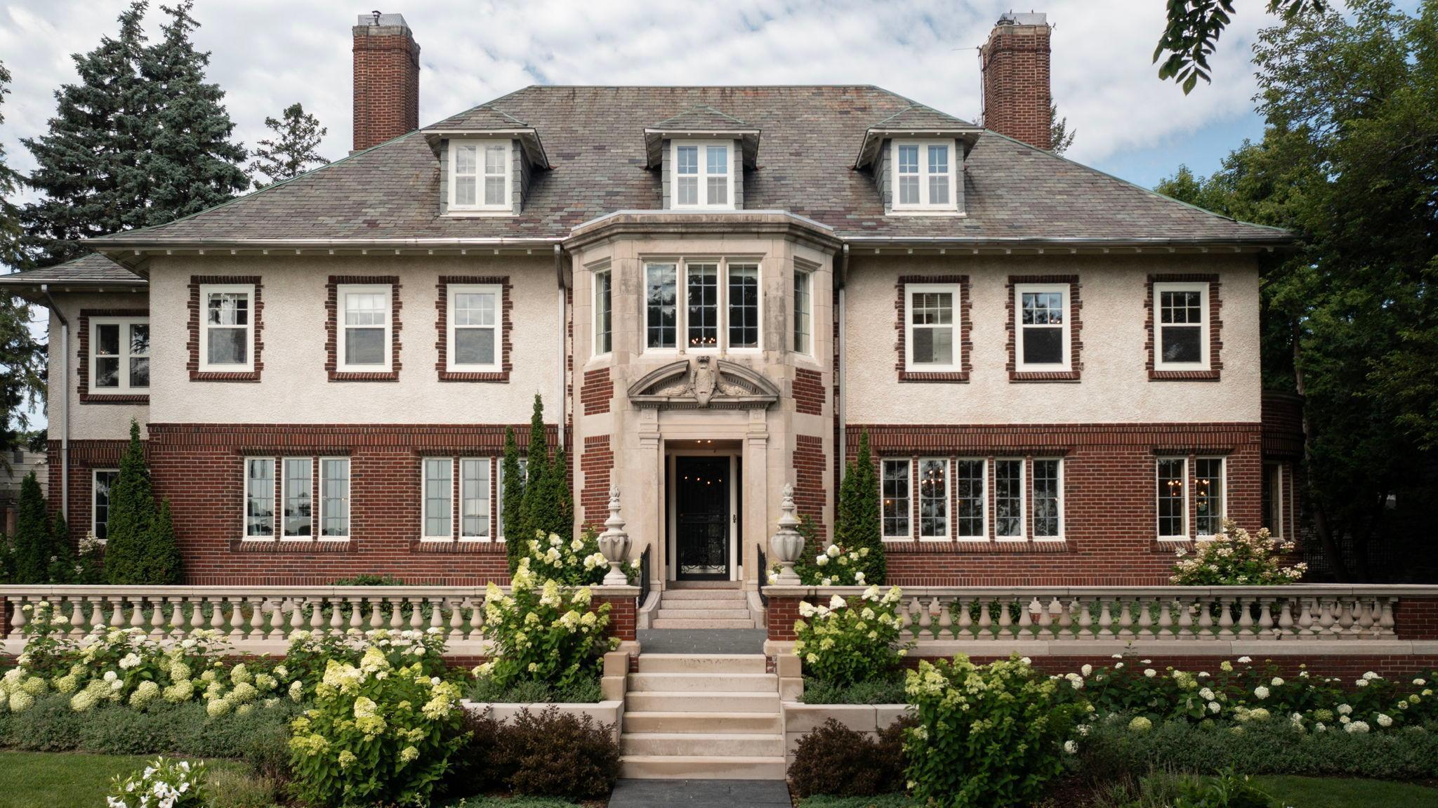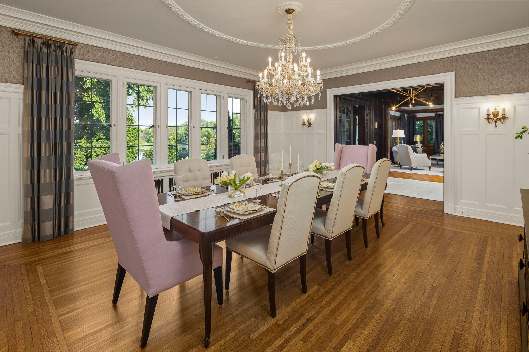 With its commanding hilltop setting, this extraordinary home offers prime skyline and lake views on one of the largest lots (0.7 acre) on the lake, with generous side and rear yards. Entertain in grand public rooms, including the superbly wainscoted foyer with magnificent staircase and access to adjoining formal rooms, including stunning lake facing living room with fireplace and banquet-sized dining room. The terrazzo floored sunroom and ornately tiled breakfast room flank the formal public rooms and share lake views. The main level includes the center island kitchen with heated slate floors and relaxed gathering area, mahogany paneled library/den, ½ bath, and mudroom area. On the 2nd floor, there are 4 en suite bedrooms, including the expansive primary suite with sitting/sun room, updated full bath and generous closet spaces. The lower level features original terrazzo floors in the family room & 5th bedroom, plus bath, flex room & excellent storage. Special features of the property include: carriage house with double garage and open studio space above, 2nd double garage, circular rear drive, and partially finished 3rd floor ready for additional build-out.