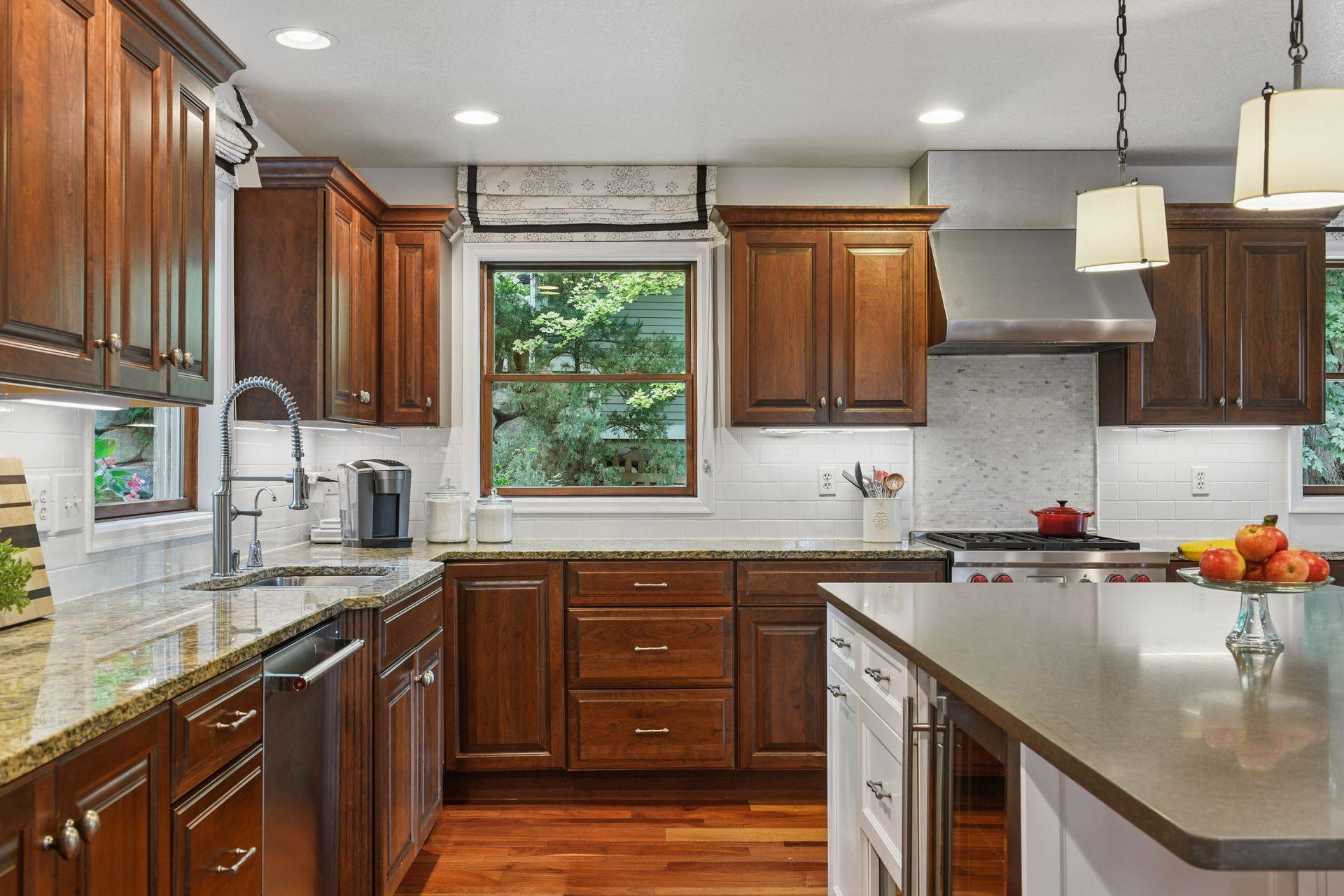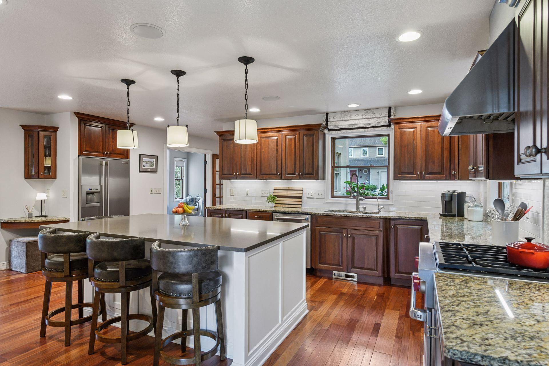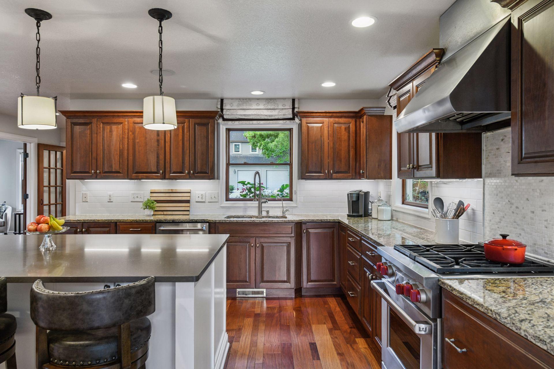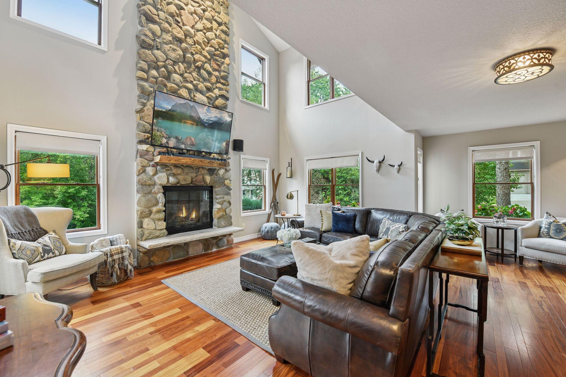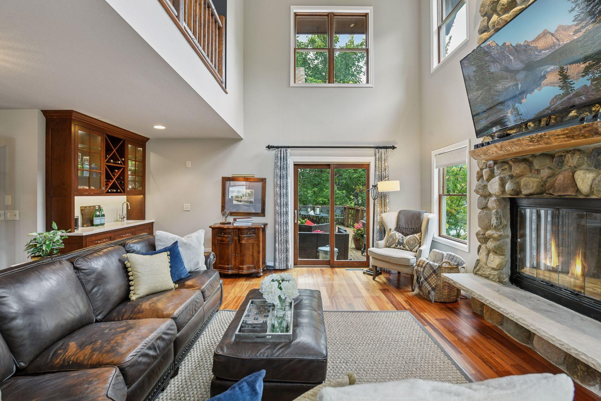 Introducing 126 Courtland Street, located in historic downtown Excelsior, Minnesota. This beautiful 2003-built two-story home boasts four bedrooms and four bathrooms across 3,432 finished square feet. The front door opens to reveal a spacious open floor plan anchored by rich rosewood floors. Architectural details of the great room include a floor-to-ceiling field stone fireplace and wet bar. Just off the great room, the formal dining area flows seamlessly onto a spacious wrap-around deck, ideal for outdoor gatherings. The eat-in kitchen features a large quartz island, warm cherry cabinets, granite perimeter countertops, Wolf range, and large windows casting natural light throughout. The upper level showcases the vaulted primary bedroom suite with three-quarter bathroom, two additional bedrooms, additional full bathroom, and a loft. The walkout lower level offers a welcoming retreat and includes a family room, stone gas fireplace, fourth bedroom, three-quarter bathroom with steam shower, laundry, and mudroom. Completing this home is an attached oversized two-car garage with epoxy flooring, storage shed, stunning landscaping, paver patio firepit, and an expansive deck for relaxing or entertaining. Prime location with a short walk to the shores of Lake Minnetonka and Water Street, where you can explore Excelsior’s charming boutiques, fine restaurants, coffee shops, and grocery. Located in the award-winning Minnetonka School District (Excelsior Elementary).