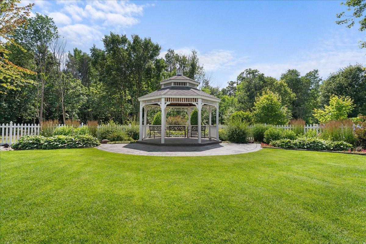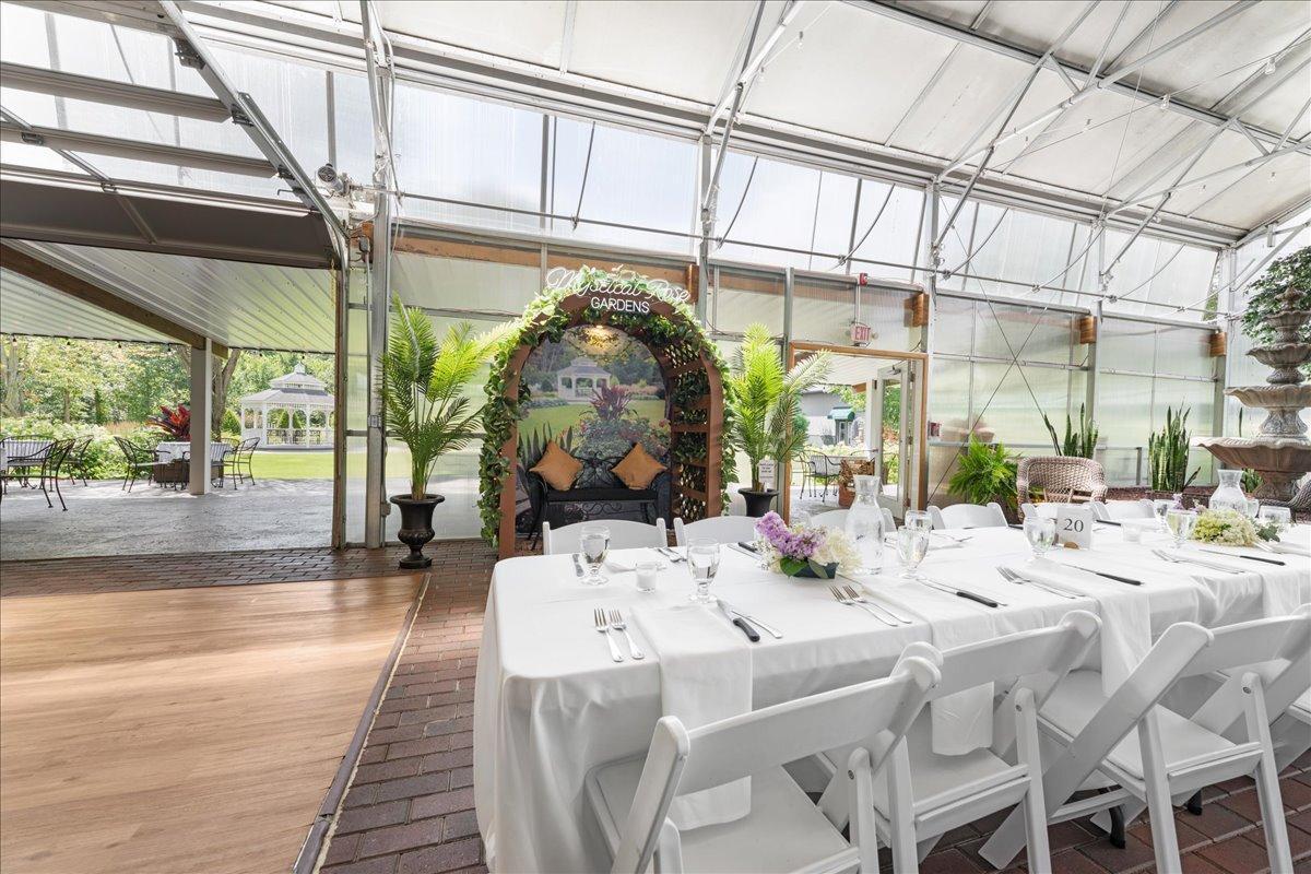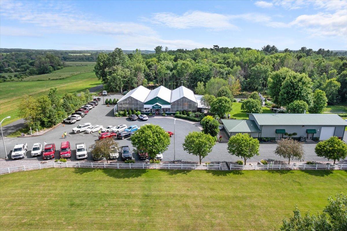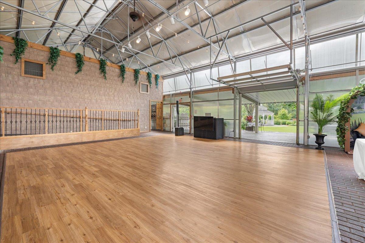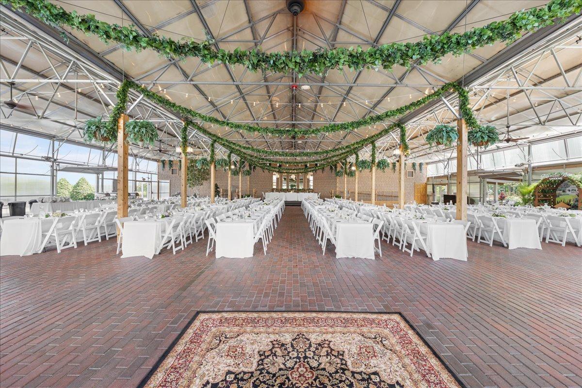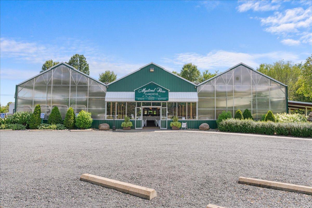 This remarkable estate offers an unparalleled blend of private country living and lucrative business potential! Set on 8 exceptionally landscaped acres, this turn-key estate has operated for 15 years as a successful wedding and event venue—known as Mystical Rose Gardens—and is ready for its next chapter. At the heart of the estate is a sprawling, light-filled event hall with captivating features such as the soaring ceilings, beautiful brick floors, a stunning water feature, seating for up to 275 guests, dedicated space for a head table with ramp access, and a generous dance floor. It also includes a full-service bar with 5 taps, POS system, walk-in cooler, a 10x12 shed for extra storage, and ample parking space. A liquor license is already in place, making it ready to serve guests with ease. Outside, guests are greeted by lush gardens, serene fountains, a covered patio with additional seating, an open-air ceremony space with a gorgeous octagon gazebo, and a large irrigated lawn—perfect for seamless indoor-outdoor events. An expansive retreat building provides added versatility, featuring a full kitchen with new appliances, a spacious living area with a wood-burning stove, four bathrooms with in-floor heat, and plenty of space perfect for getting ready, including a finished upper-level loft. It’s ideal for weddings, parties, retreats, and more. Thoughtful storage solutions provide convenience with a 23x29 storage space attached to this building featuring a 12ft door, plus an additional 26x26 fully insulated and heated outbuilding offering new steel inside and out, and a powerful propane generator capable of running the entire property. The main residence completes the estate with an open, sunlit layout, a beautiful stone fireplace in the living room, and a spacious sunroom with floor-to-ceiling windows framing peaceful views of the surrounding landscape. The kitchen features a center island, ample cabinet and counter space, and a dining area perfect for everyday meals or entertaining. Enjoy comfort for all with four spacious bedrooms, including a private owner’s suite with a walk-in closet and an ensuite bath offering a jetted tub and walk-in shower. Versatile and functional spaces include a dedicated office/library, main level laundry off the generous mudroom, an insulated 2-car garage, and a spacious lower level ready for your custom touch—plus ample storage throughout. Outside, the home is surrounded by beautifully landscaped gardens and multiple spaces to enjoy the outdoors, including an expansive covered front porch, a large deck, a spacious patio, and a charming swing set nestled in the yard—offering the perfect blend of privacy, recreation, and relaxation. With multiple outbuildings, extensive infrastructure including 7 hydrants and 10 water access points, dedicated event parking, and room to expand, this is a one-of-a-kind estate and business opportunity! Whether you continue the venue business or create something entirely new, the possibilities here are endless. Don’t miss the rare opportunity to make it yours!