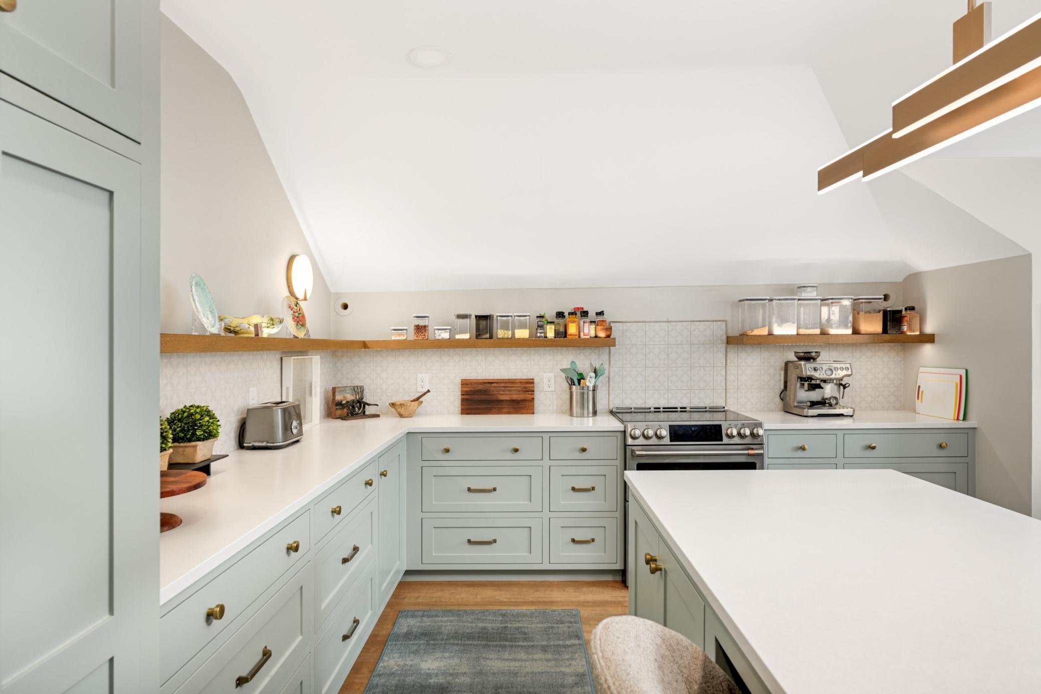The third floor, accessed from the second, offers approximately 1,500 square feet of flexible living space. This level includes an updated kitchen, a spa-like bath with steam shower and soaking tub, living room, bedroom, office space, dressing room, and walk-in closet.
