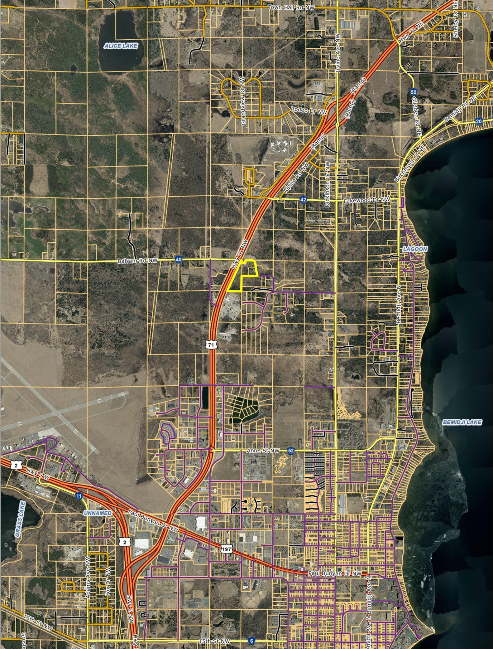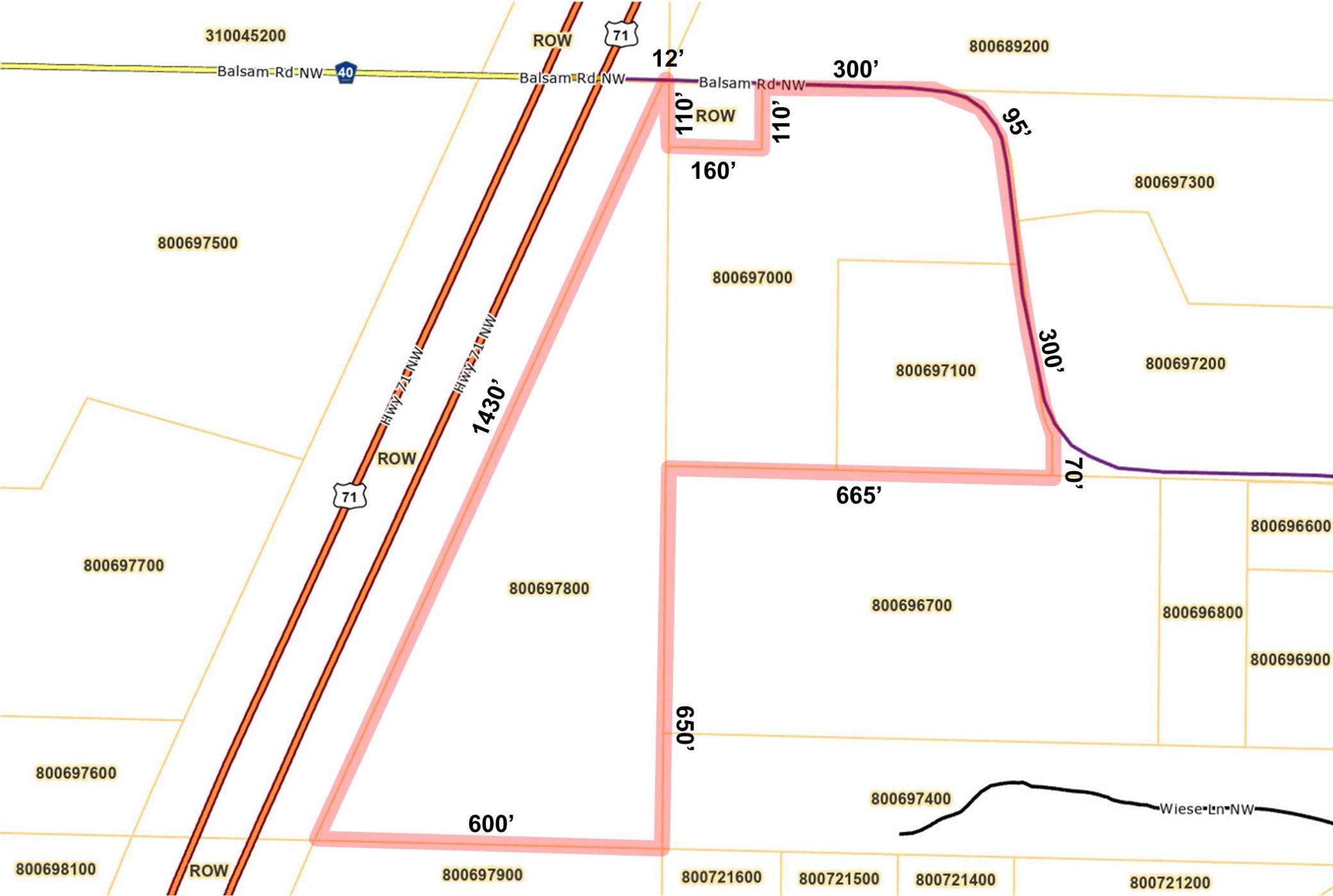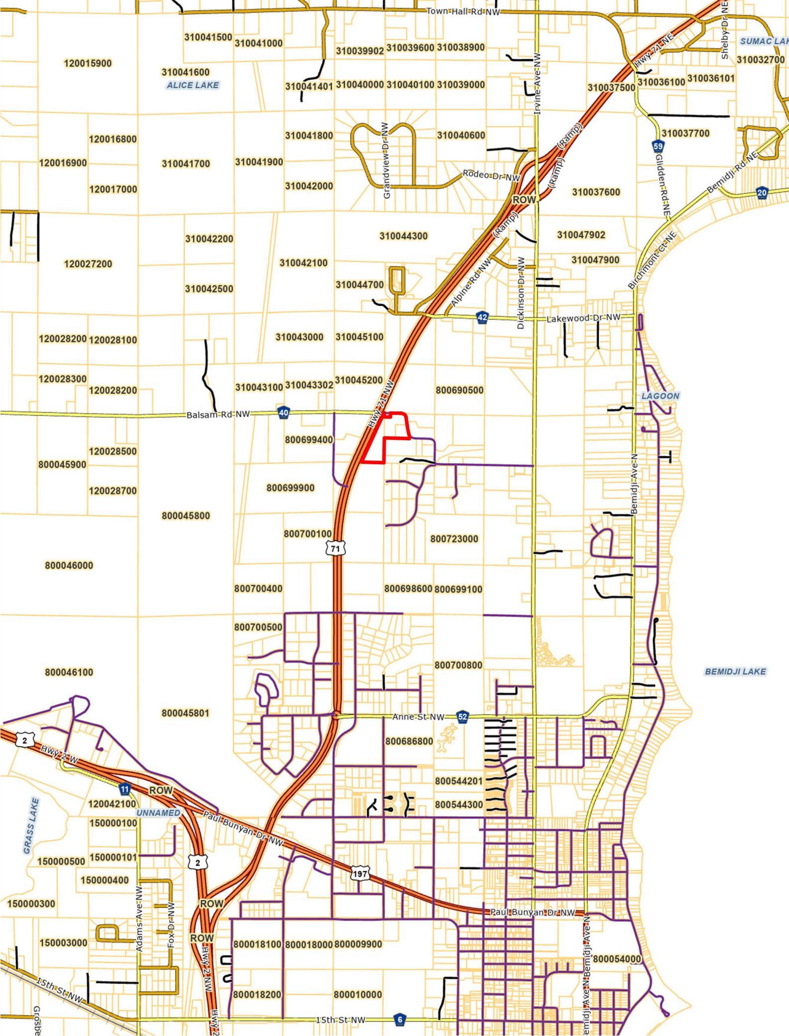 Prime commercial acreage on Hwy 71 in Bemidji, MN. Don’t miss this exceptional opportunity to secure a large tract of low-density commercial acreage along the highly traveled Hwy 71 corridor in Bemidji. This expansive site offers excellent visibility, easy access, and strong traffic counts—making it an ideal location for a wide range of commercial or mixed-use development. Positioned in a growing commercial area just minutes from downtown Bemidji, this property offers flexibility for developers, investors, or business owners looking to establish or expand their presence in Northern Minnesota. Whether you’re envisioning a retail center, office complex, or service-based business, the possibilities here are wide open. Out Buildings: As-Is - No Additional Details;1490: 1,600 SF Garage (40’ x 40’) w/ 2 Overhead Doors; 1326: 1,250 SF Garage (50’ x 25’) w/ 3 Overhead Doors and Approx. 1,950 SF House (Built 1965).