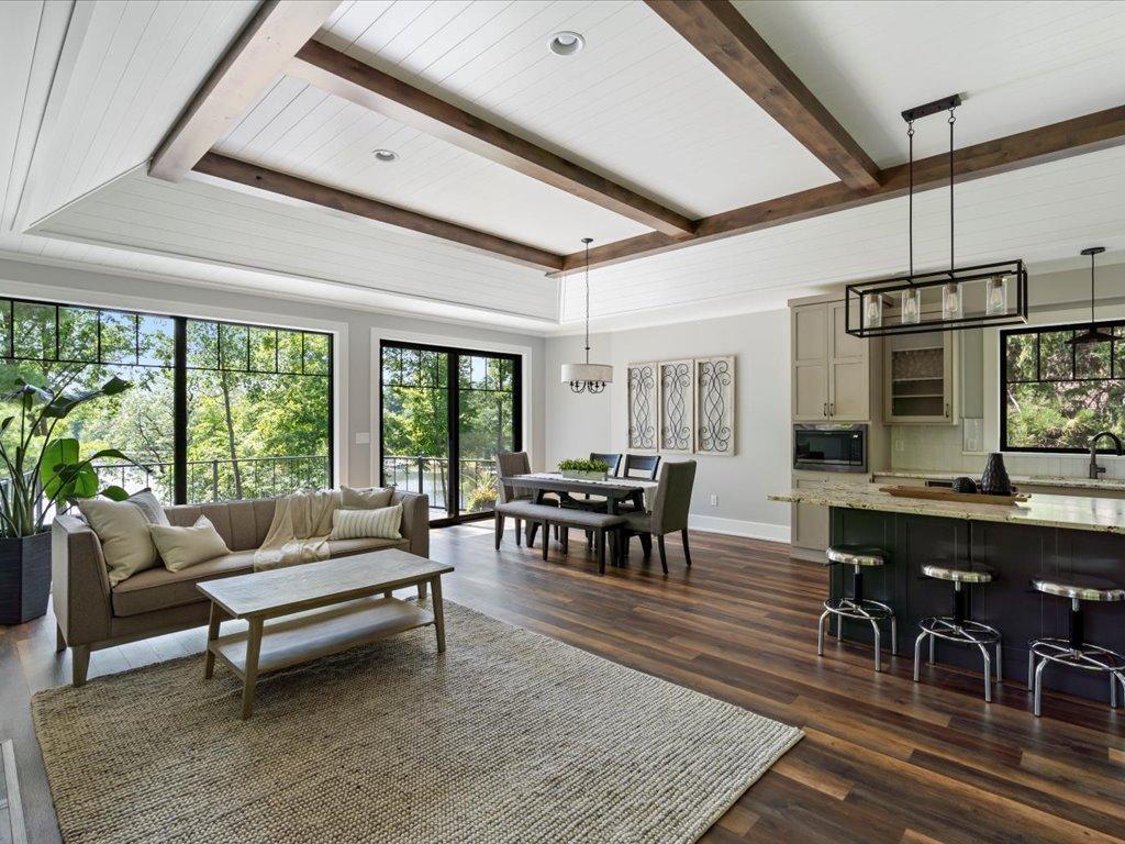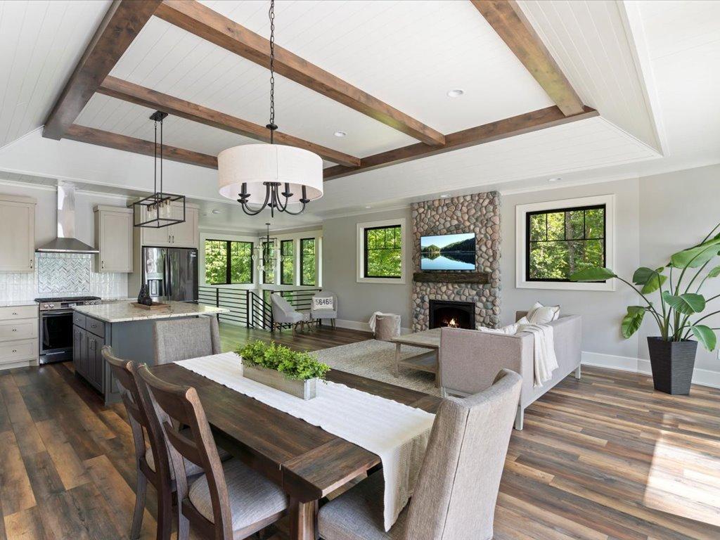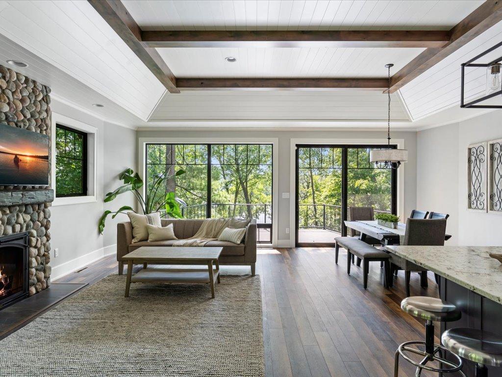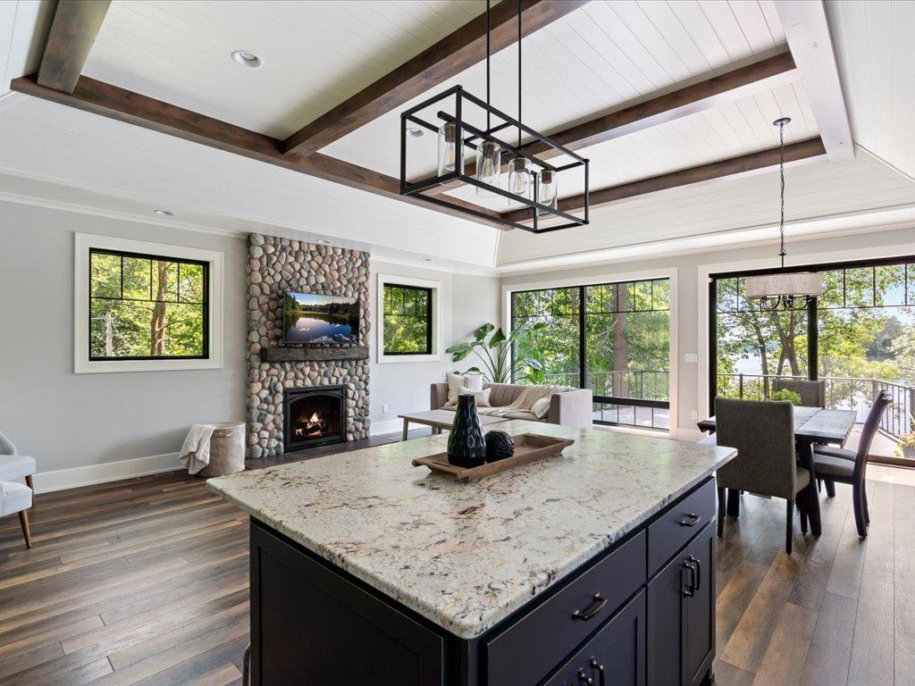 Stunning Custom-Designed Home on Lake Margaret – Gull Lake Chain This gorgeous, architecturally designed 3-bedroom, 3-bathroom lake home is a rare find on the shores of Lake Margaret. Just two years old, this custom-built residence is loaded with high-end finishes and thoughtful design elements throughout. Step inside to find luxury vinyl plank flooring, striking black Pella windows, and soaring 11-foot shiplap ceilings with rich alder wood beams. The spacious living area is anchored by a beautiful stone gas fireplace with a custom concrete mantel, offering warmth and ambiance. The gourmet kitchen is a chef’s dream, featuring custom alder cabinetry, stainless steel appliances, granite countertops, under-cabinet lighting, and a large island perfect for entertaining. A wall of lakeside windows floods the home with natural light and offers breathtaking southwest views of the lake. The primary suite is a peaceful retreat with 9-foot ceilings, an ensuite bath with a ceramic walk-in shower, and a large closet. The main level includes a second lakeside bedroom, a full bathroom, a flex room/third bedroom, and a cozy family room that walks out to a large lakeside patio—ideal for indoor-outdoor living. Enjoy gentle elevation to 50 feet of private shoreline, complete with a firepit area and level seating at the water’s edge. The heated 2-car garage includes additional utility space. Located in a prime location with easy access to town, upscale dining, paved walking/biking trails, and multiple holes of championship golf, this home offers the perfect blend of luxury, comfort, and outdoor recreation.