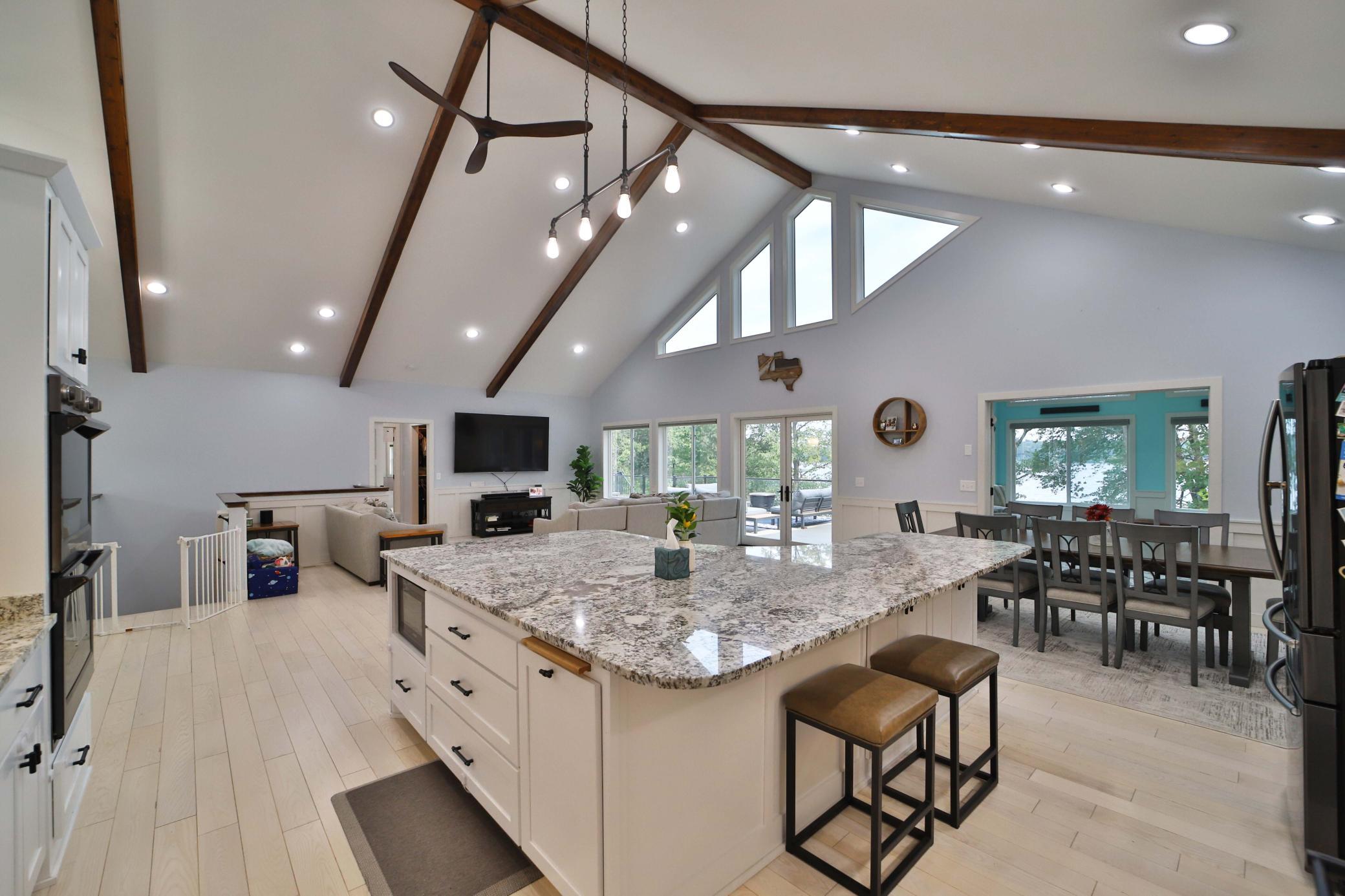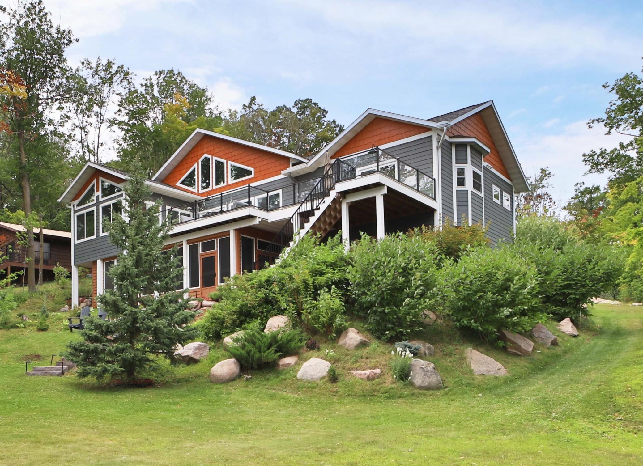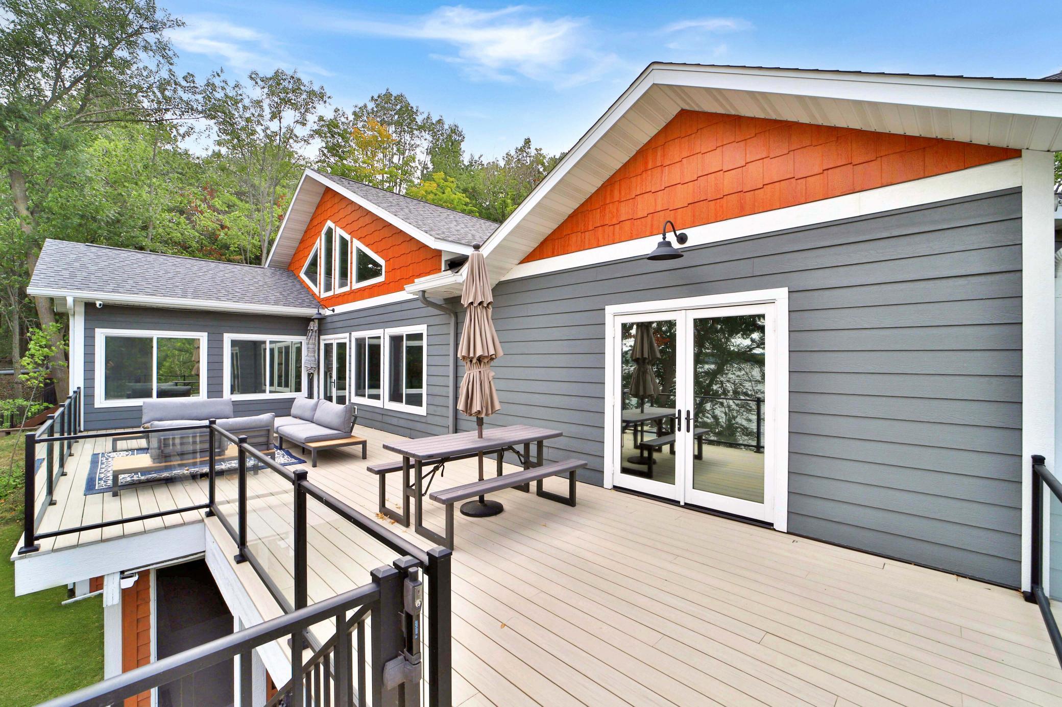 With 5 bedrooms, 4 bathrooms, and a finished and heated 3-stall garage, this home provides ample space for family and friends. The level yard leads to 120 feet of picturesque lake frontage with a gradual slope for easy access.
