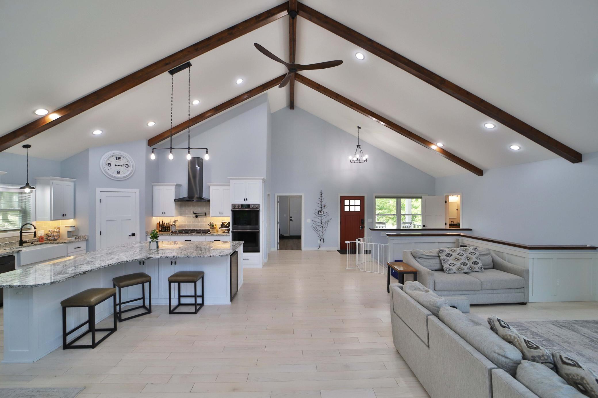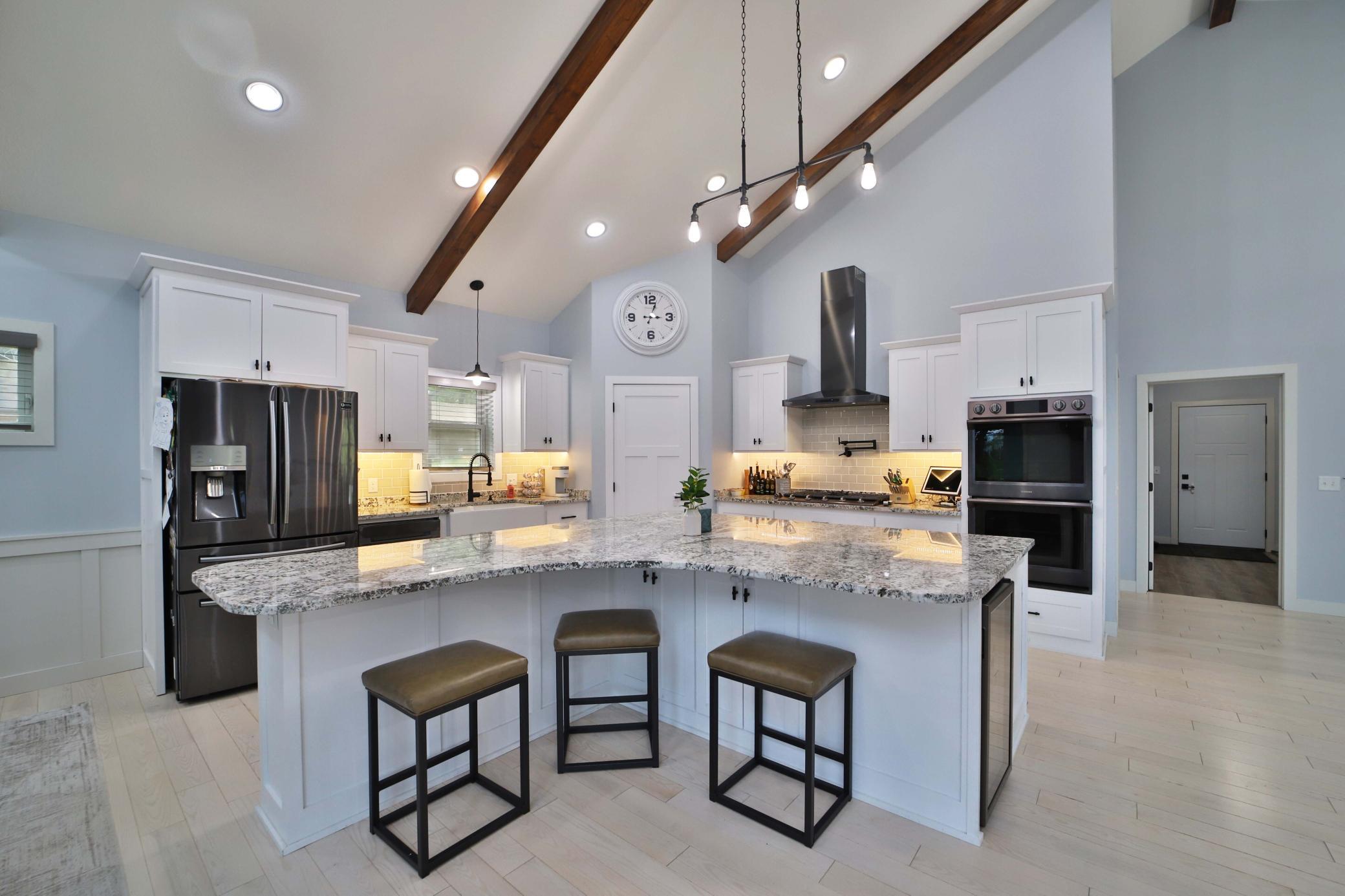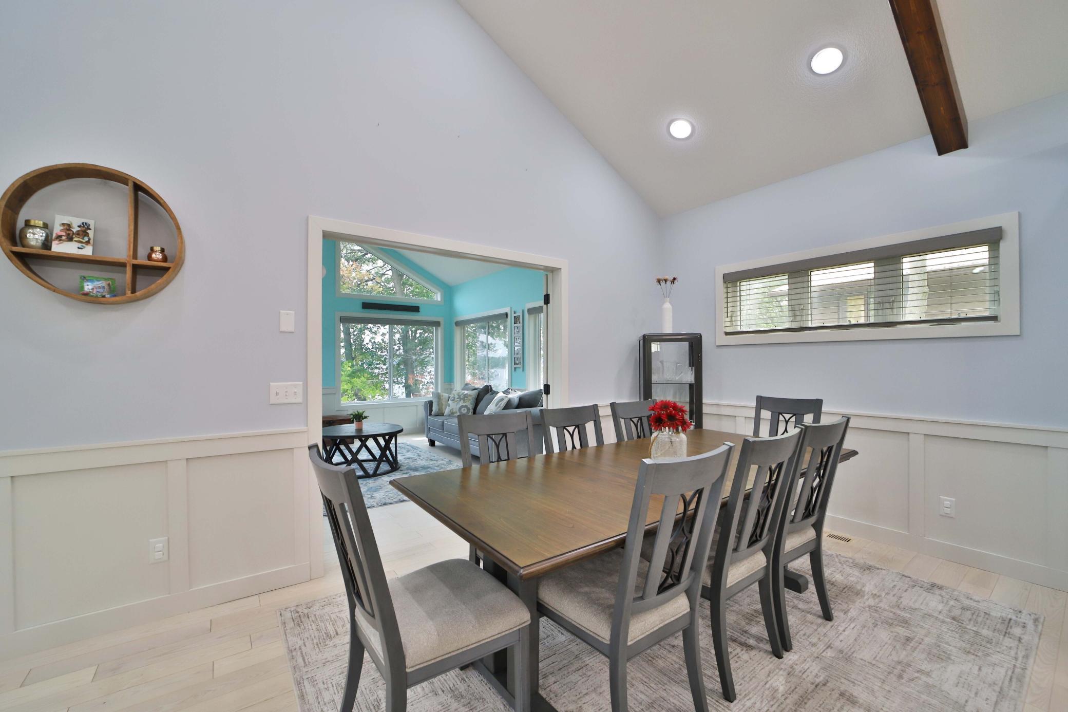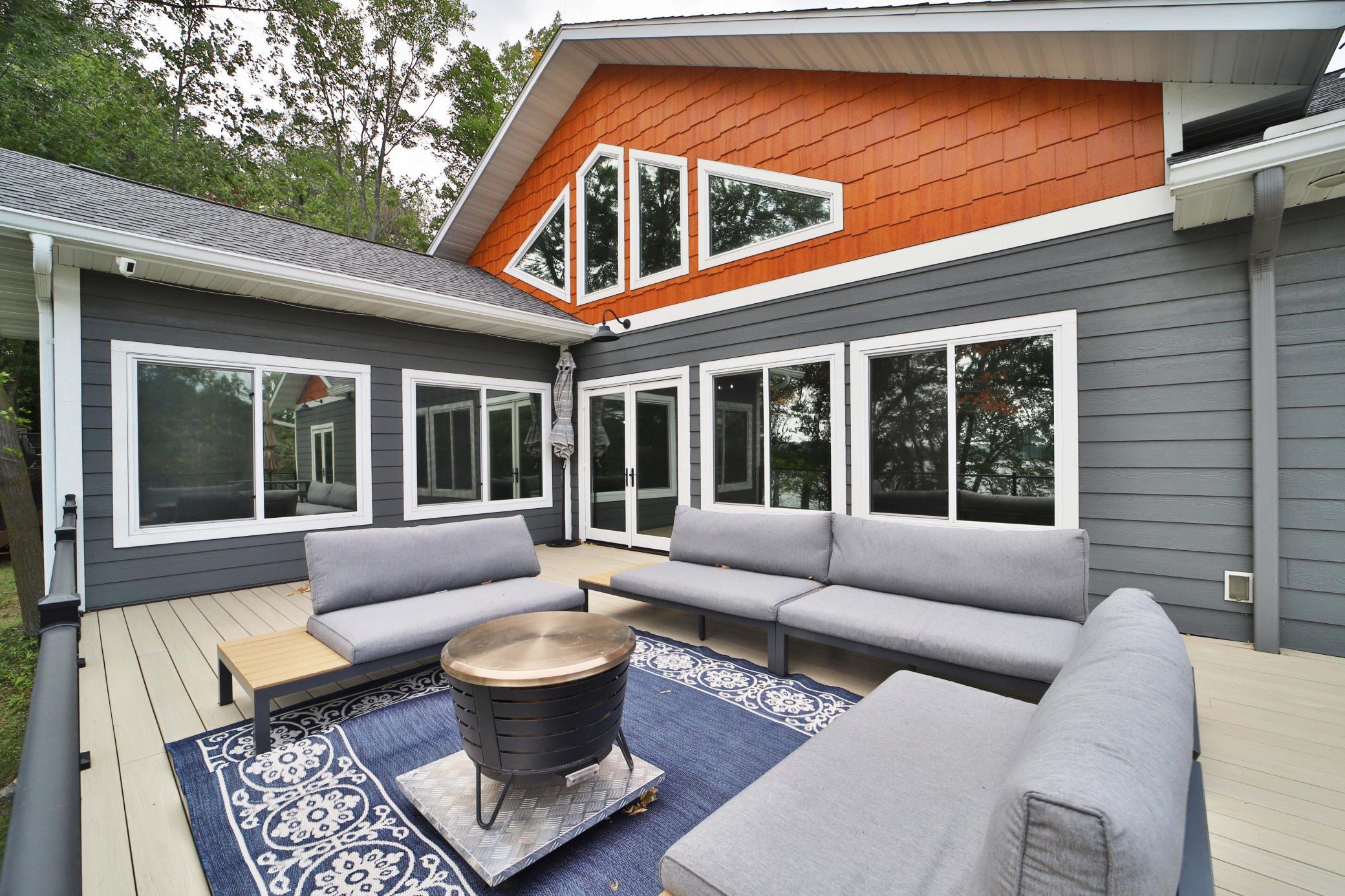 With 5 bedrooms, 4 bathrooms, and a finished and heated 3-stall garage, this home provides ample space for family and friends. The level yard leads to 120 feet of picturesque lake frontage with a gradual slope for easy access.