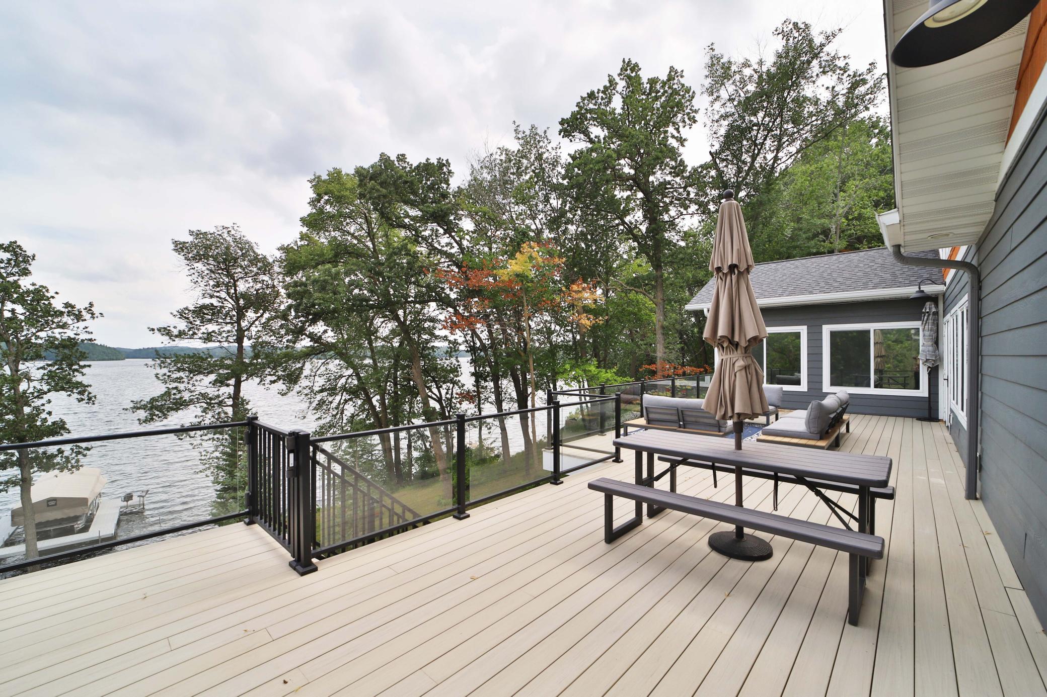 Immerse yourself in lakeside luxury with this 2019 custom-built rambler with walk out on Fish Trap Lake in Cushing, MN. Set on a private 1.38-acre lot at the end of a cul-de-sac, this spectacular home boasts over 4,400 sq ft of open-concept living space, ideal for hosting unforgettable gatherings.