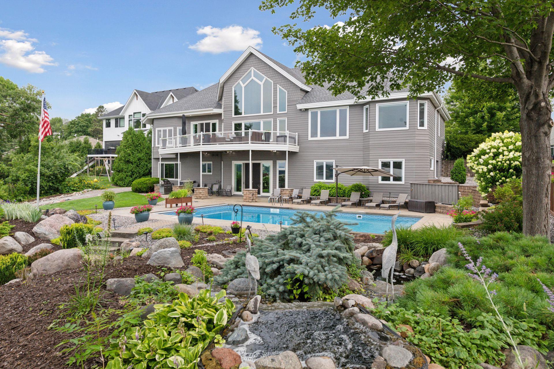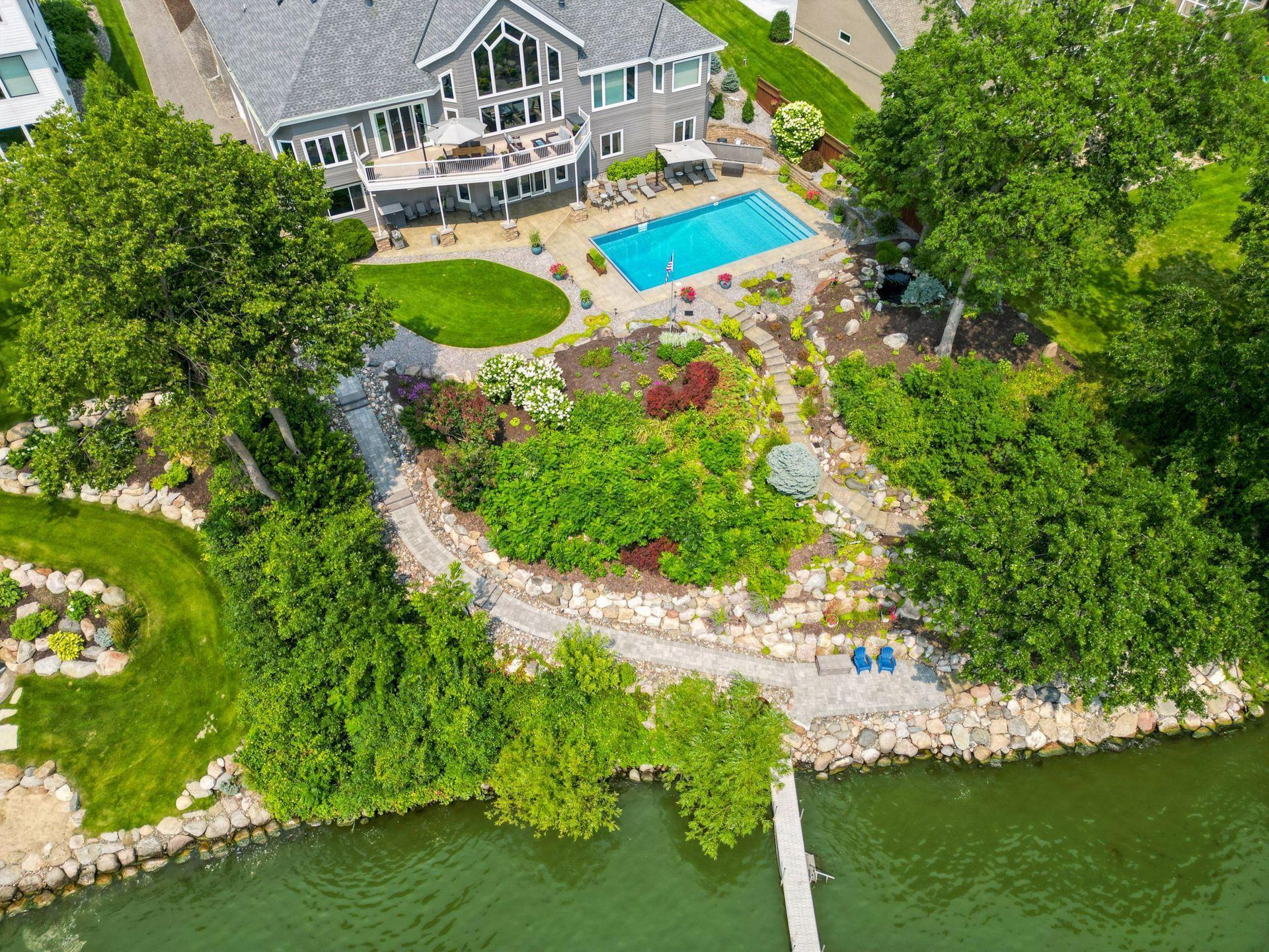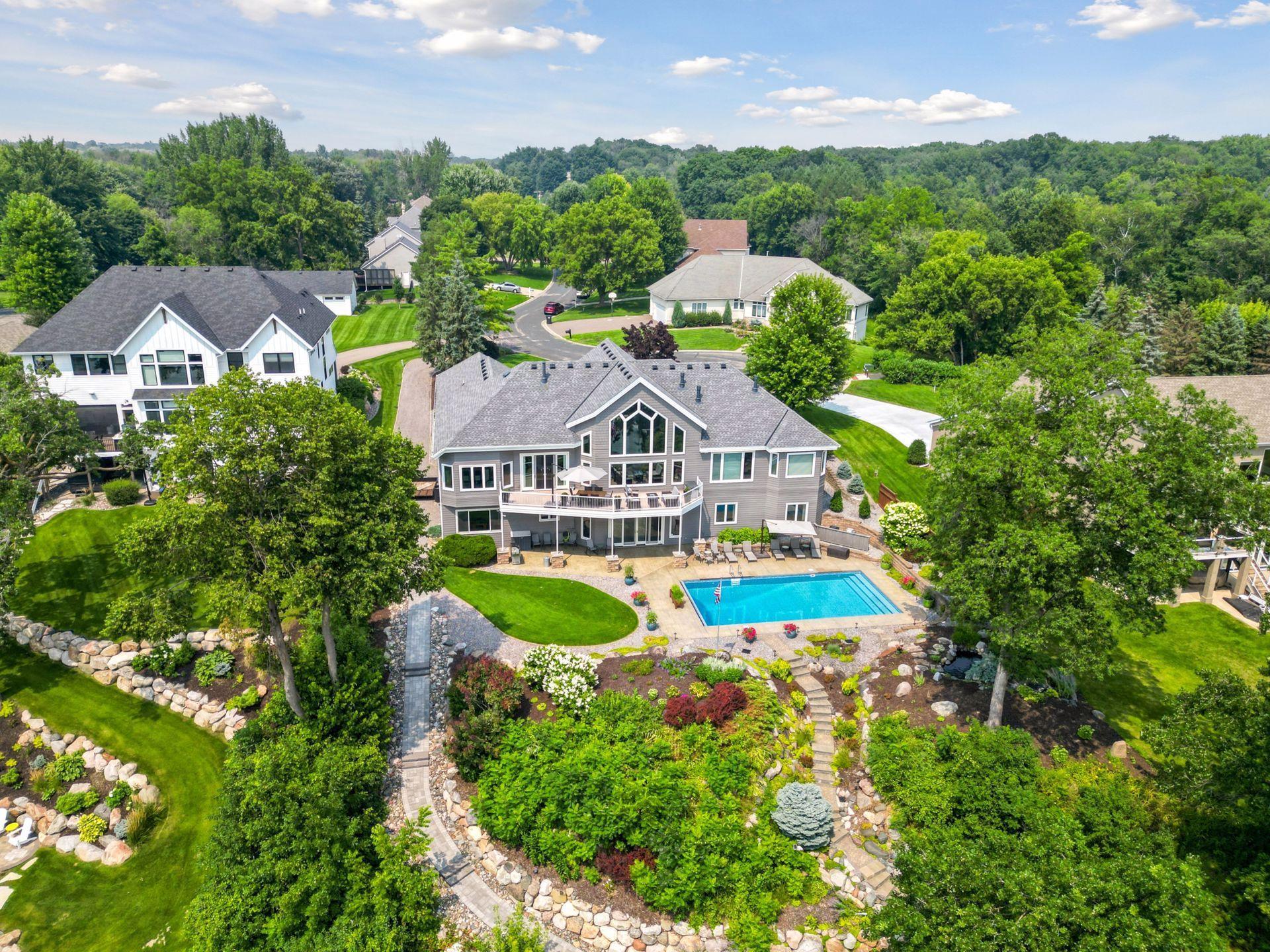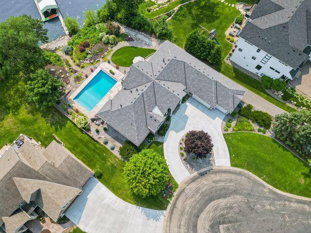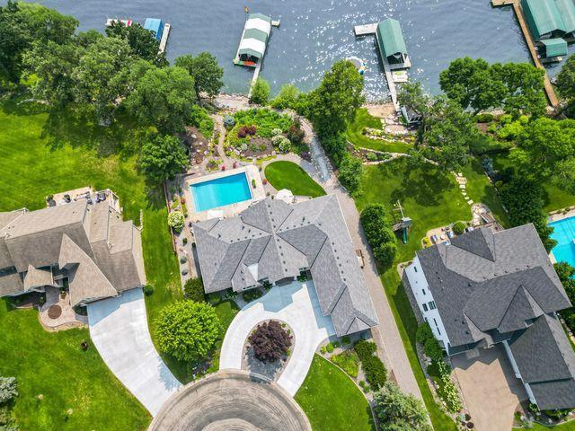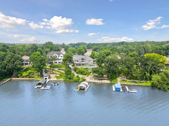 An entertainer’s dream home and family-friendly oasis, this stunning Lake Minnetonka property boasts 128 feet of south-facing shoreline with breathtaking views of Jennings Bay. Situated on a quiet cul-de-sac, this home is part of a welcoming, walkable community where trails connect multiple neighborhoods and parks. You’ll find playgrounds for kids to explore, along with easy access to top-rated schools and convenience to downtown. The homes expansive vaulted living room, featuring a striking stone fireplace, is framed by walls of windows that capture the panoramic lake views. The redesigned chef’s kitchen—complete with premium amenities, informal dining with easy access to the deck, and bayed sitting area—is the heart of the home. The main-level primary suite is a rare gem with large lake views, spa-like steam shower, soaker tub, and an impressive walk-in closet with a center island. A large office, laundry, mudroom, and 2 additional baths complete the main floor. The walk-out lower level is made for entertainment, featuring a spacious family room with stone fireplace and large doors leading to the swimming pool area. A second kitchen and adjoining billiards/game area offer endless fun, while the lower level also includes 3 bedrooms, 3 baths, and a huge workshop - perfect for DIY projects, storage, or hobbies. Outdoors, the 20’ x 40’ saltwater pool (completely updated), waterfall feature, and beautifully landscaped grounds blend seamlessly with the lakefront. Enjoy the geothermal system for efficient heating and cooling, a whole-house sound system, and impressive curb appeal with a circular driveway. The upper and lower garages provide space for six cars, making this home as practical as it is stunning. See supplemental updates & improvements!