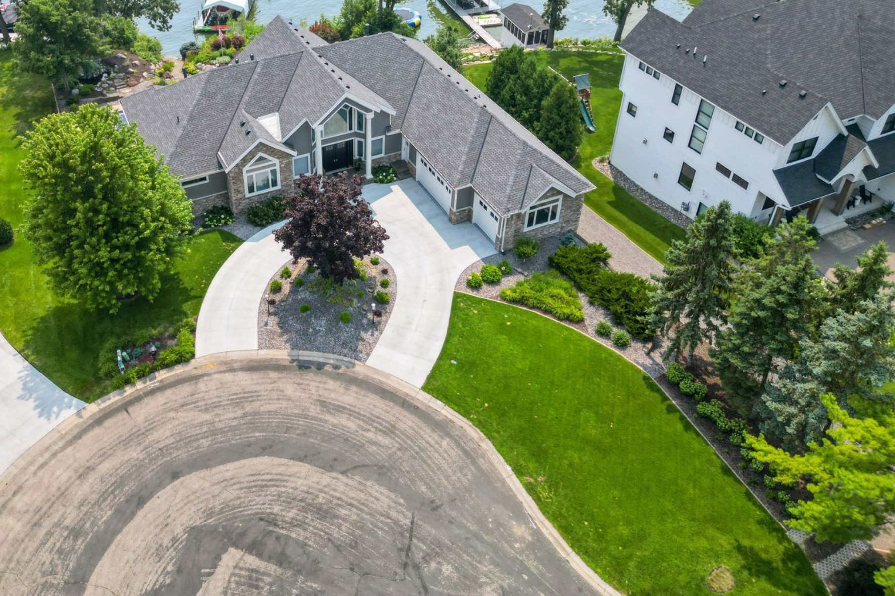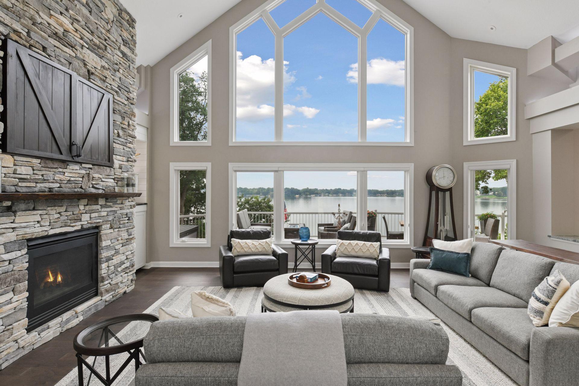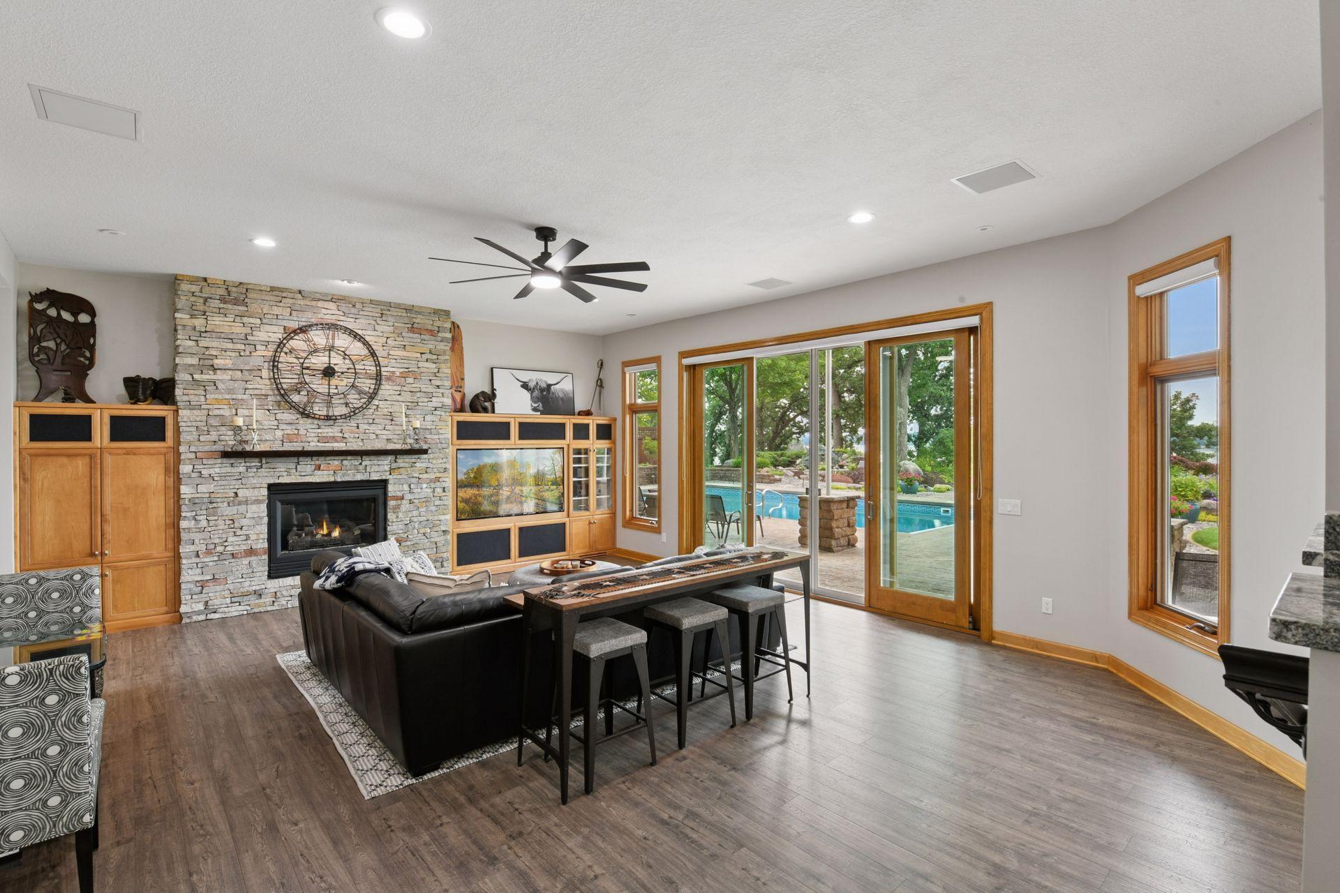 An entertainer’s dream home and family-friendly oasis, this stunning Lake Minnetonka property boasts 128 feet of south-facing shoreline with breathtaking views of Jennings Bay. Situated on a quiet cul-de-sac, this home is part of a welcoming, walkable community where trails connect multiple neighborhoods and parks. You’ll find playgrounds for kids to explore, along with easy access to top-rated schools and convenience to downtown. The homes expansive vaulted living room, featuring a striking stone fireplace, is framed by walls of windows that capture the panoramic lake views. The redesigned chef’s kitchen—complete with premium amenities, informal dining with easy access to the deck, and bayed sitting area—is the heart of the home. The main-level primary suite is a rare gem with large lake views, spa-like steam shower, soaker tub, and an impressive walk-in closet with a center island. A large office, laundry, mudroom, and 2 additional baths complete the main floor. The walk-out lower level is made for entertainment, featuring a spacious family room with stone fireplace and large doors leading to the swimming pool area. A second kitchen and adjoining billiards/game area offer endless fun, while the lower level also includes 3 bedrooms, 3 baths, and a huge workshop - perfect for DIY projects, storage, or hobbies. Outdoors, the 20’ x 40’ saltwater pool (completely updated), waterfall feature, and beautifully landscaped grounds blend seamlessly with the lakefront. Enjoy the geothermal system for efficient heating and cooling, a whole-house sound system, and impressive curb appeal with a circular driveway. The upper and lower garages provide space for six cars, making this home as practical as it is stunning. See supplemental updates & improvements!