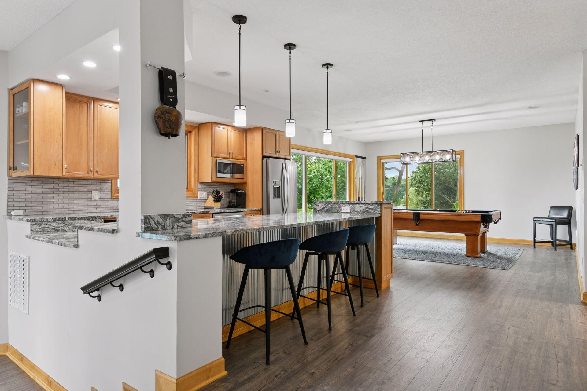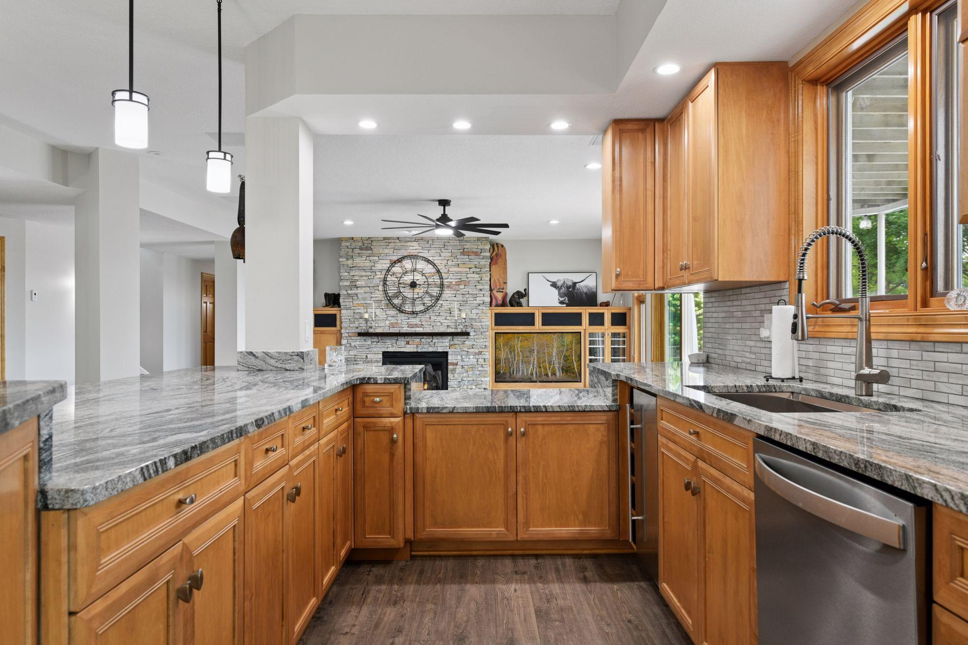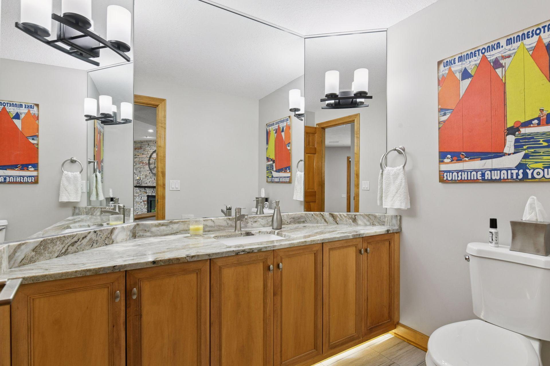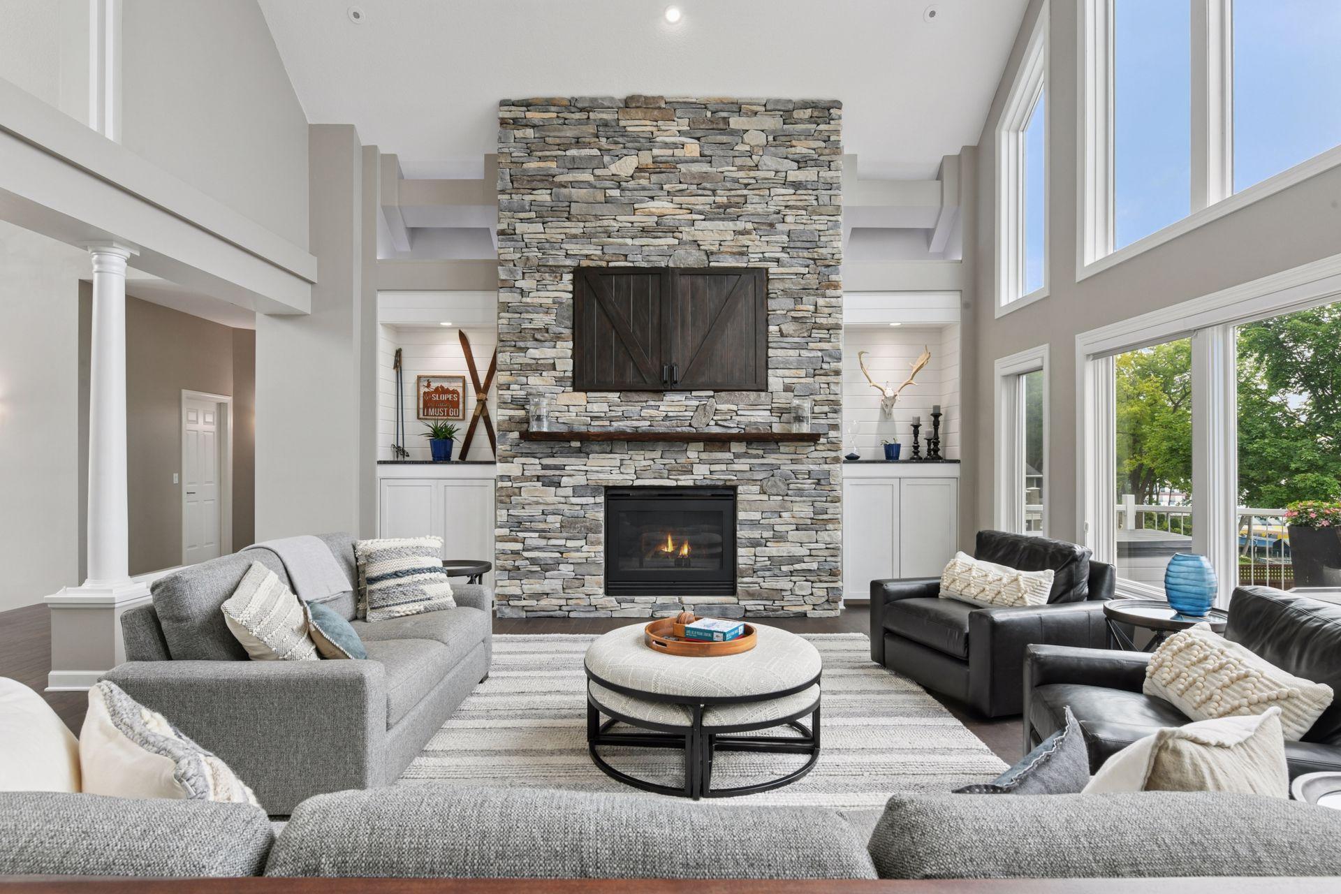 An entertainer’s dream home and family-friendly oasis, this stunning Lake Minnetonka property boasts 128 feet of south-facing shoreline with breathtaking views of Jennings Bay. Situated on a quiet cul-de-sac, this home is part of a welcoming, walkable community where trails connect multiple neighborhoods and parks. You’ll find playgrounds for kids to explore, along with easy access to top-rated schools and convenience to downtown. The homes expansive vaulted living room, featuring a striking stone fireplace, is framed by walls of windows that capture the panoramic lake views. The redesigned chef’s kitchen—complete with premium amenities, informal dining with easy access to the deck, and bayed sitting area—is the heart of the home. The main-level primary suite is a rare gem with large lake views, spa-like steam shower, soaker tub, and an impressive walk-in closet with a center island. A large office, laundry, mudroom, and 2 additional baths complete the main floor. The walk-out lower level is made for entertainment, featuring a spacious family room with stone fireplace and large doors leading to the swimming pool area. A second kitchen and adjoining billiards/game area offer endless fun, while the lower level also includes 3 bedrooms, 3 baths, and a huge workshop - perfect for DIY projects, storage, or hobbies. Outdoors, the 20’ x 40’ saltwater pool (completely updated), waterfall feature, and beautifully landscaped grounds blend seamlessly with the lakefront. Enjoy the geothermal system for efficient heating and cooling, a whole-house sound system, and impressive curb appeal with a circular driveway. The upper and lower garages provide space for six cars, making this home as practical as it is stunning. See supplemental updates & improvements!