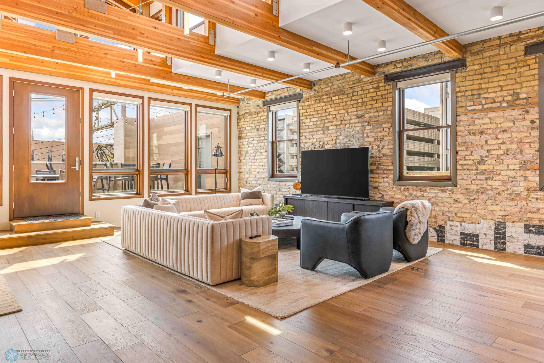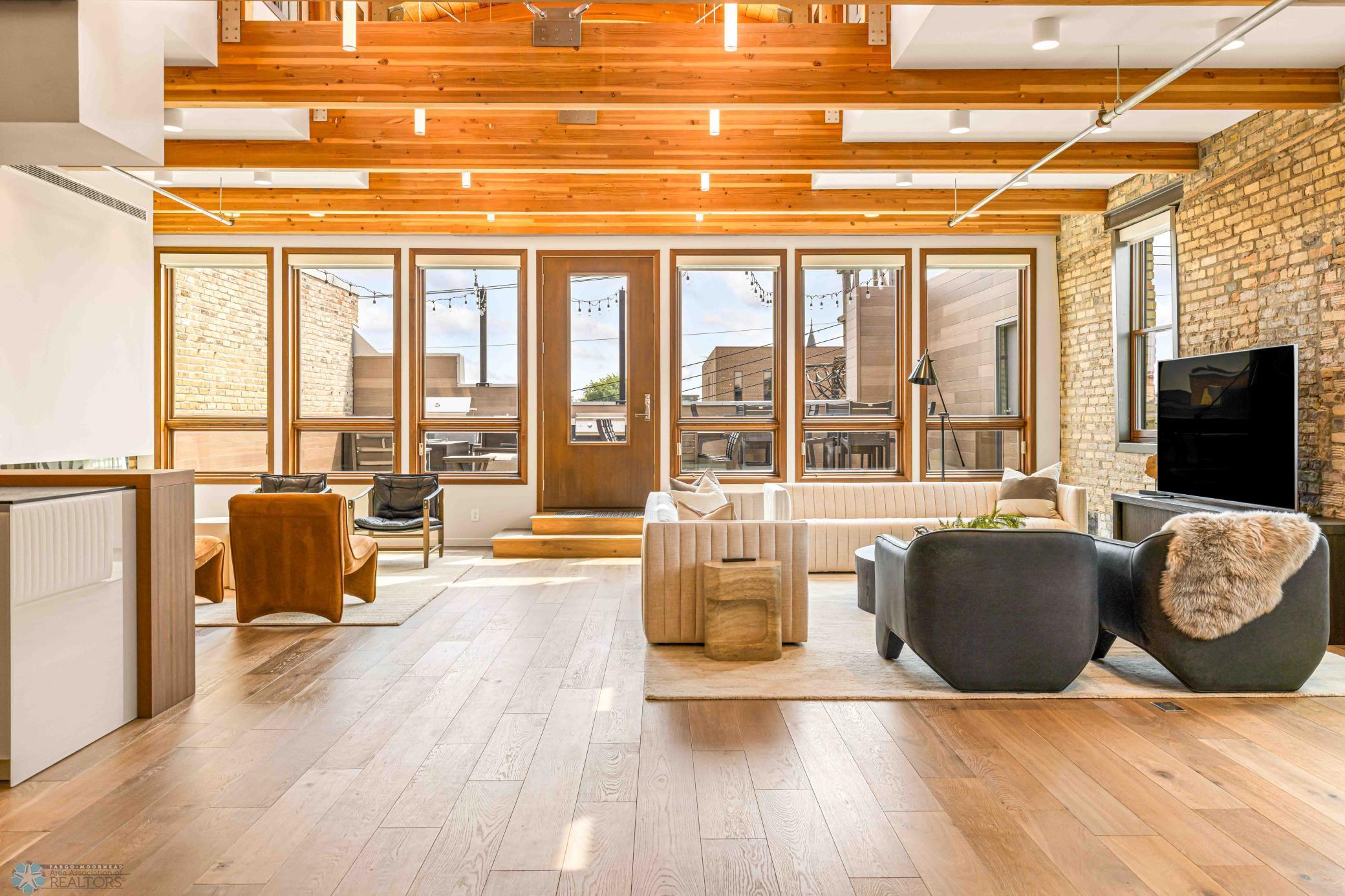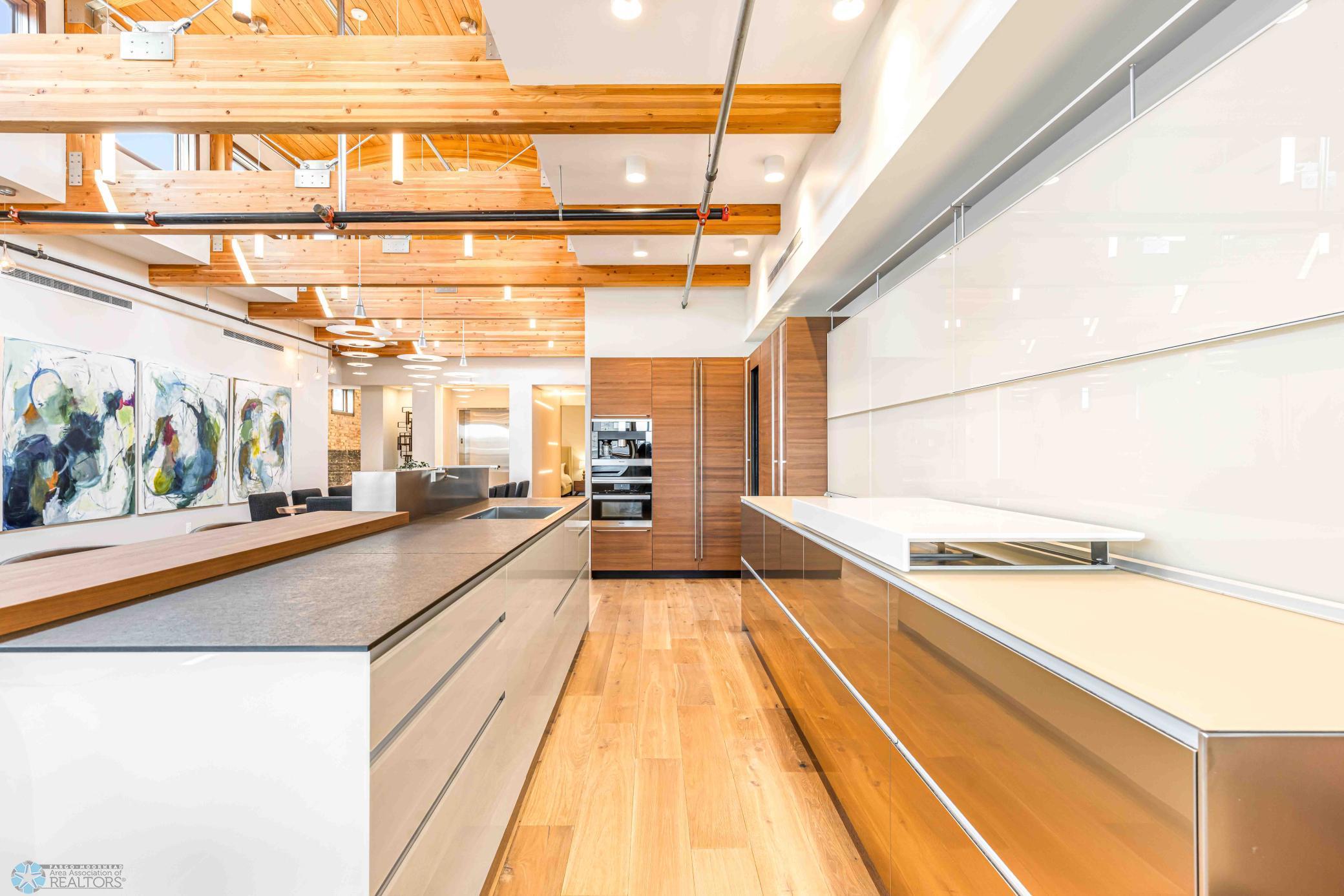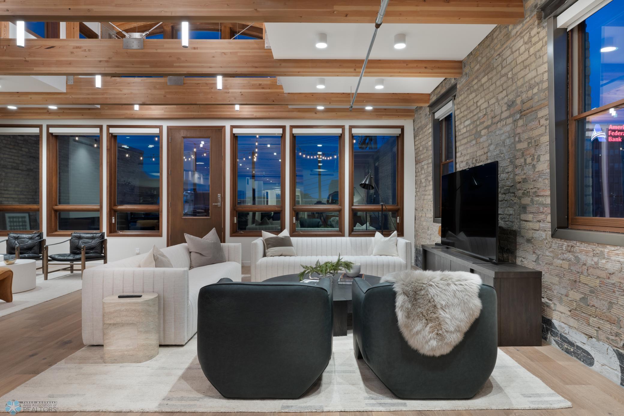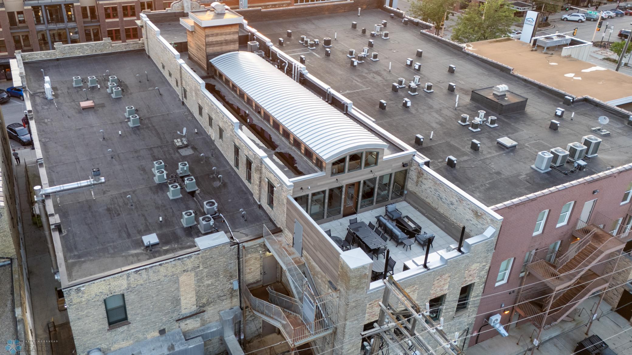 The Moose Dixon Penthouse Perched above Broadway in the heart of downtown Fargo, overlooking the iconic Fargo Theatre, the Moose Dixon Penthouse is a breathtaking blend of historic charm and contemporary sophistication. Encompassing over 3,300 square feet, this one-of-a-kind residence crowns a landmark 1905 building, once home to Dixon Laundry and the Moose Lodge, now transformed into a timeless showcase of elevated urban living. Arrive through heated underground parking and take the elevator up to the penthouse level. Inside, stunning architectural details abound; from the custom barrel ceiling and original exposed brick to the modern suspended fireplace and sleek, in-wall lighting. Every inch is finished with intention, including 8-foot solid wood doors with striking chrome inlays that line the home with understated elegance. At the heart of the residence is a state-of-the-art Italian Valcucine kitchen, fitted with top-of-the-line Miele appliances, a hidden induction cooktop, dual sinks, pot filler, climate-controlled wine fridge, built-in icemaker, espresso machine, and warming drawers. Just beyond, a Butler’s pantry offers extra storage and discreetly houses the hidden in-unit washer and dryer, keeping utility out of sight without sacrificing convenience. The open-concept layout flows effortlessly into the living and dining spaces, featuring automated shades, invisible speakers, and smart lighting all powered by a full smart home system. A dual-zone furnace ensures comfort year-round, and the home is sold fully furnished with luxury designer pieces for a truly turnkey experience. Retreat to the spa-inspired bathrooms, where luxury continues with bidet toilets, heated seats, a deep soaking tub, dual vanities, and a massive steam shower that rivals high-end resorts. Step outside to the first of two private rooftop spaces; a fully finished outdoor oasis with an outdoor kitchen, custom fire feature, and seating for up to 21 guests, creating a true entertainer’s paradise in the heart of downtown. One level above, the second rooftop, on the fifth floor, offers a rare opportunity for future expansion. Already roughed in for a wet bar and hot tub, this unfinished space is ready for your vision to transform it into something extraordinary. Whether you’re searching for an iconic personal residence, a luxury short-term rental, or a one-of-a-kind event venue, the Moose Dixon Penthouse is a rare opportunity to own a piece of Fargo’s past.. refined and redefined for modern living.
