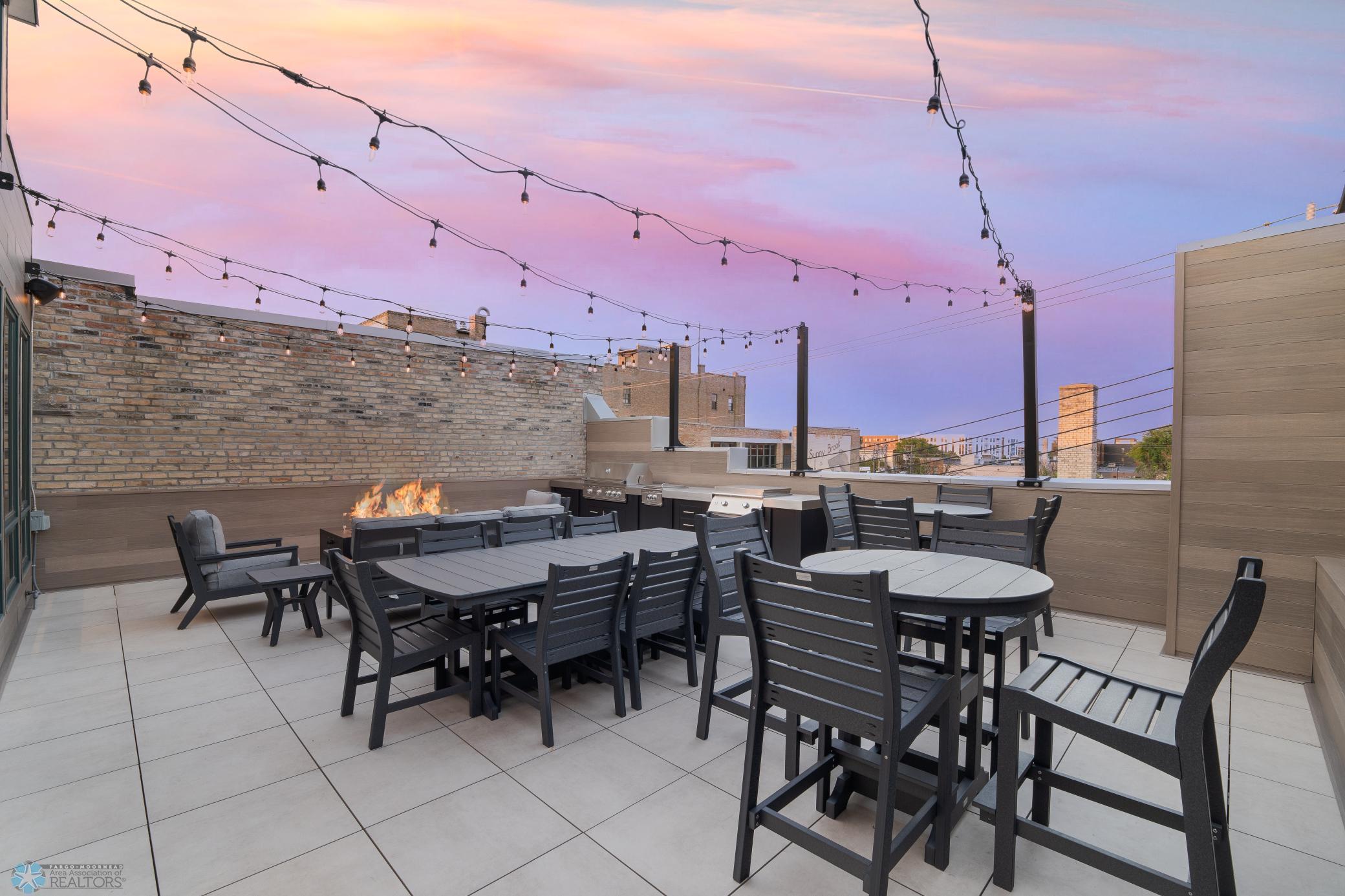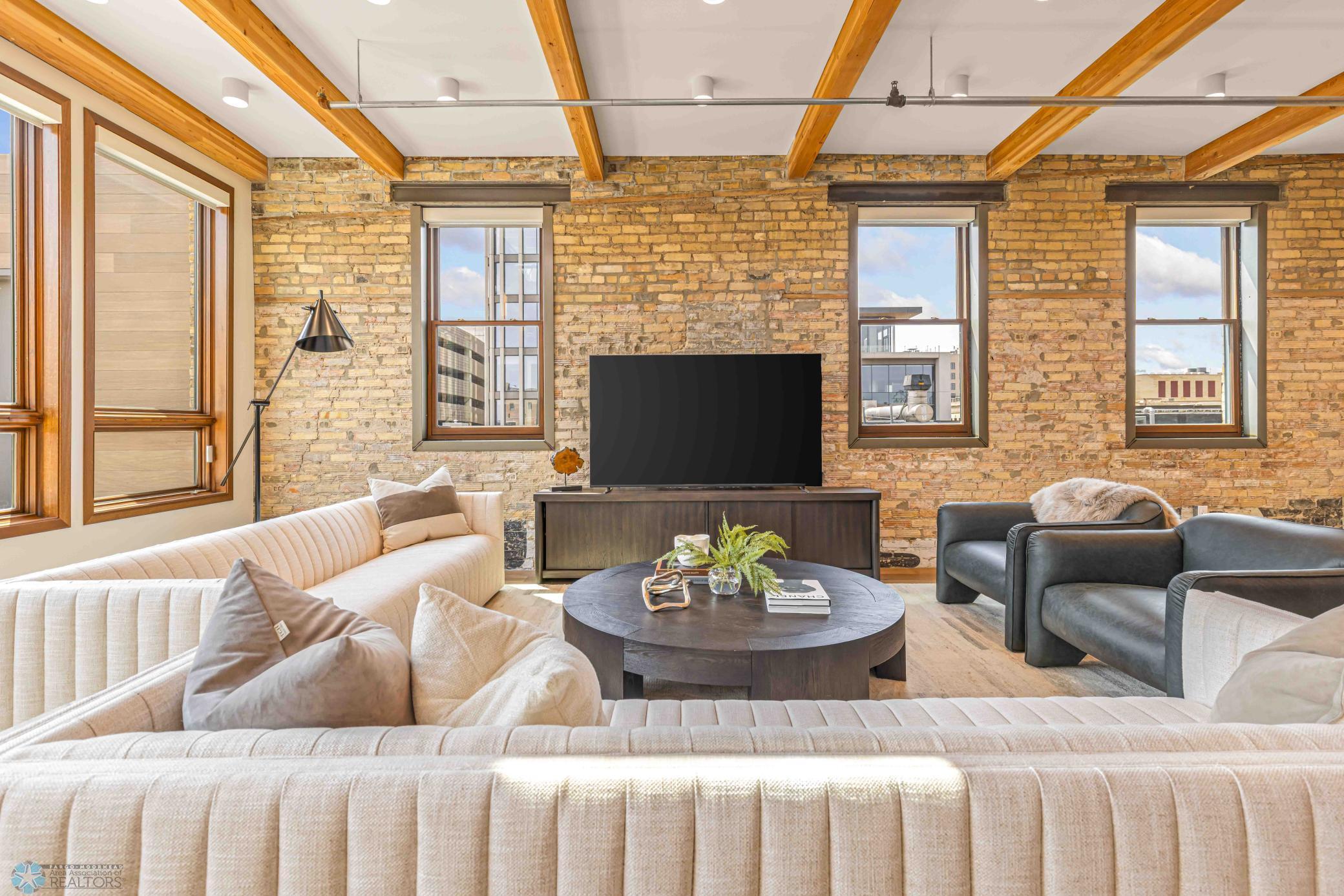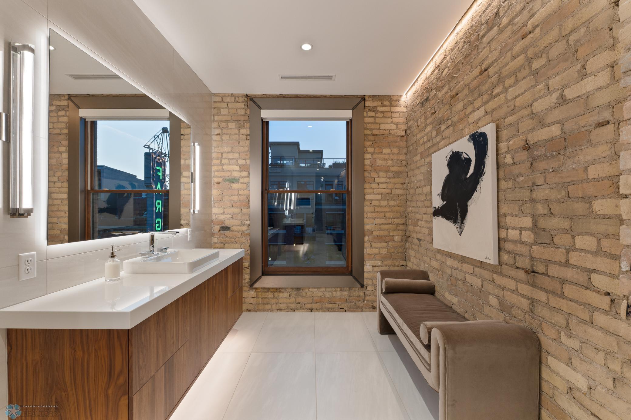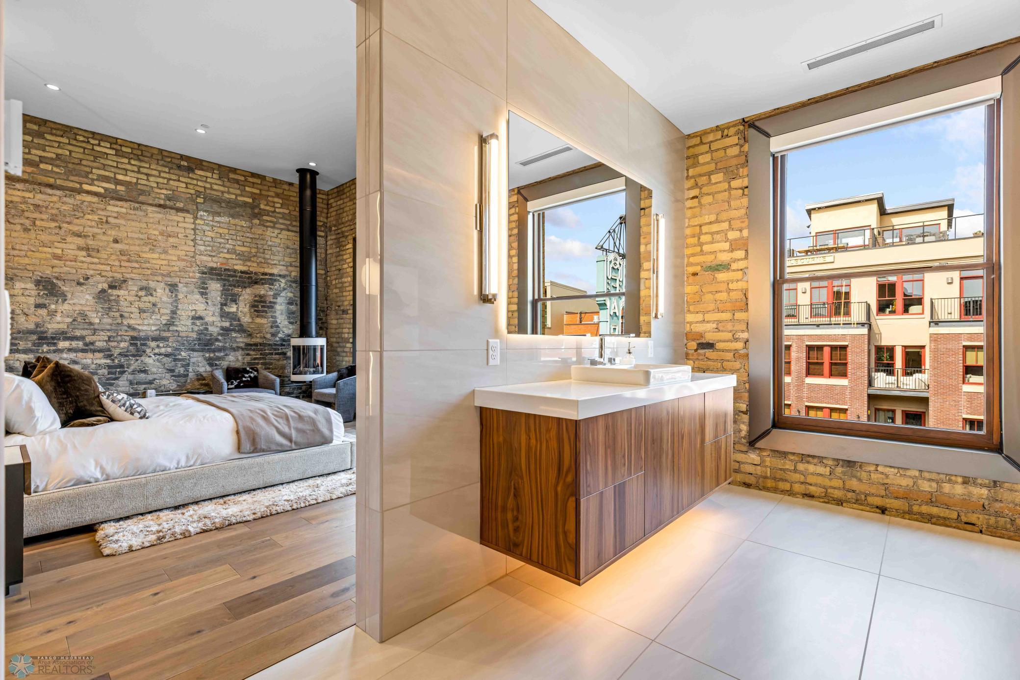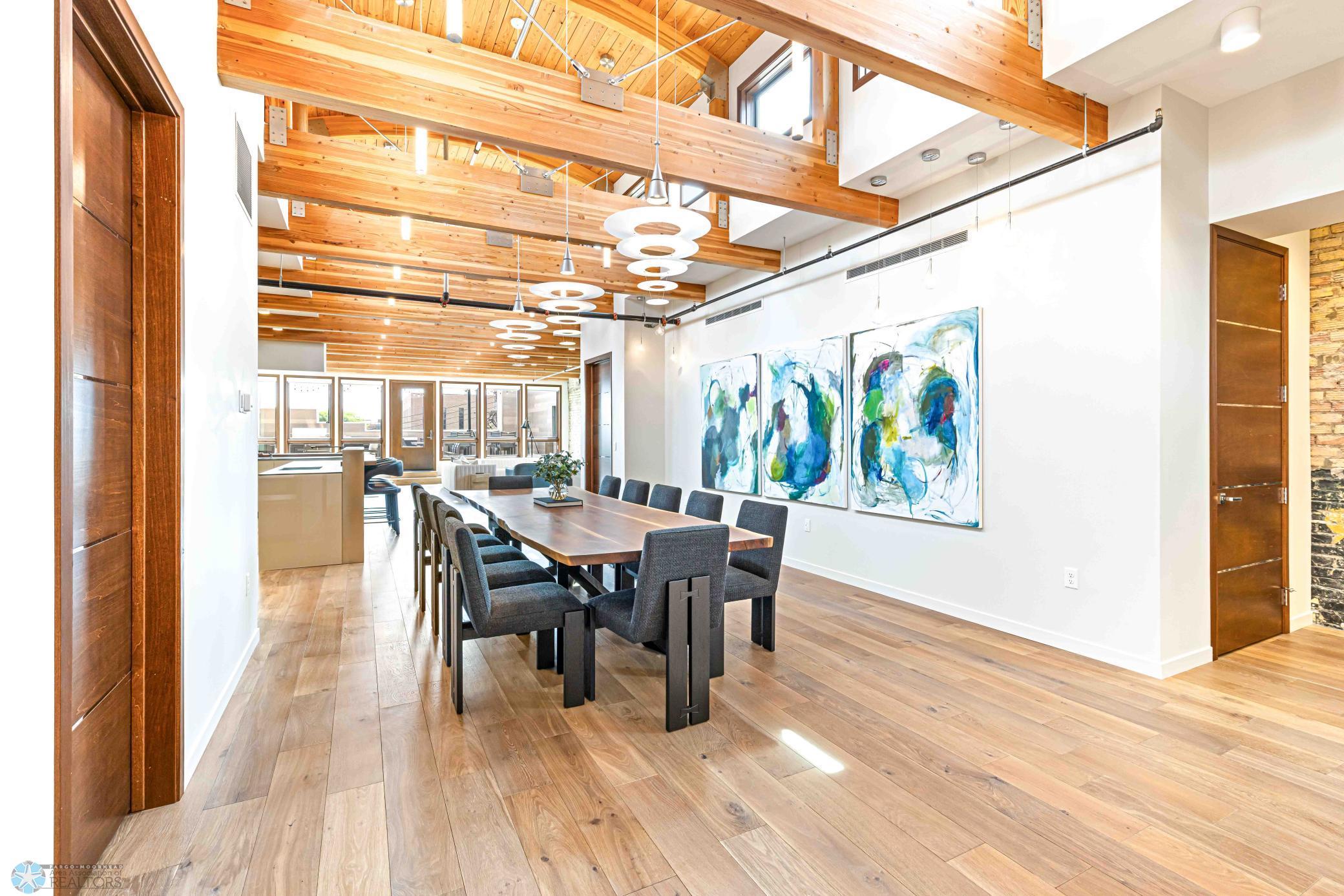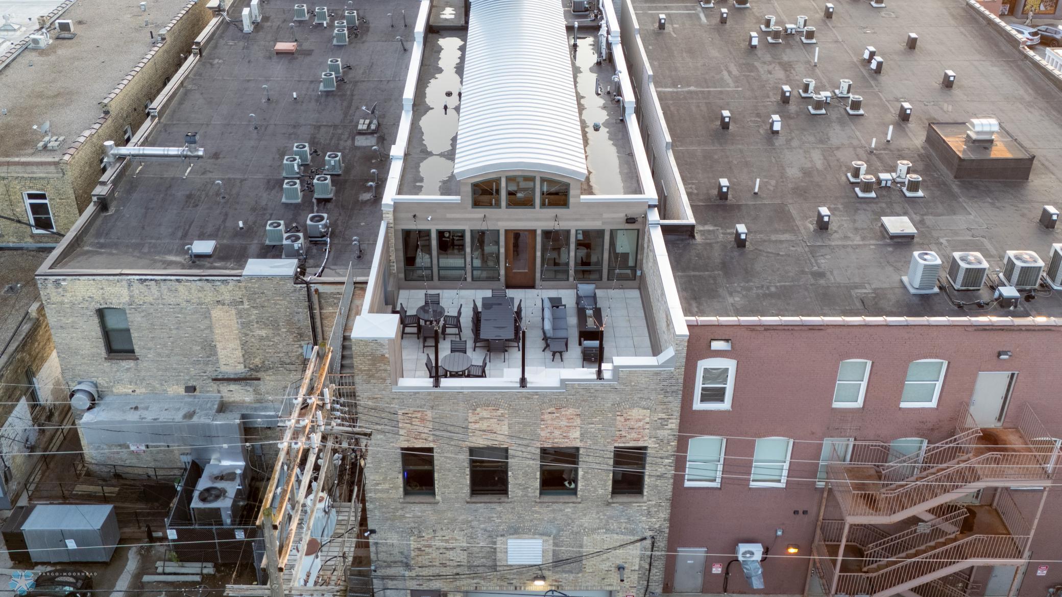 The Moose Dixon Penthouse Perched above Broadway in the heart of downtown Fargo, overlooking the iconic Fargo Theatre, the Moose Dixon Penthouse is a breathtaking blend of historic charm and contemporary sophistication. Encompassing over 3,300 square feet, this one-of-a-kind residence crowns a landmark 1905 building, once home to Dixon Laundry and the Moose Lodge, now transformed into a timeless showcase of elevated urban living. Arrive through heated underground parking and take the elevator up to the penthouse level. Inside, stunning architectural details abound; from the custom barrel ceiling and original exposed brick to the modern suspended fireplace and sleek, in-wall lighting. Every inch is finished with intention, including 8-foot solid wood doors with striking chrome inlays that line the home with understated elegance. At the heart of the residence is a state-of-the-art Italian Valcucine kitchen, fitted with top-of-the-line Miele appliances, a hidden induction cooktop, dual sinks, pot filler, climate-controlled wine fridge, built-in icemaker, espresso machine, and warming drawers. Just beyond, a Butler’s pantry offers extra storage and discreetly houses the hidden in-unit washer and dryer, keeping utility out of sight without sacrificing convenience. The open-concept layout flows effortlessly into the living and dining spaces, featuring automated shades, invisible speakers, and smart lighting all powered by a full smart home system. A dual-zone furnace ensures comfort year-round, and the home is sold fully furnished with luxury designer pieces for a truly turnkey experience. Retreat to the spa-inspired bathrooms, where luxury continues with bidet toilets, heated seats, a deep soaking tub, dual vanities, and a massive steam shower that rivals high-end resorts. Step outside to the first of two private rooftop spaces; a fully finished outdoor oasis with an outdoor kitchen, custom fire feature, and seating for up to 21 guests, creating a true entertainer’s paradise in the heart of downtown. One level above, the second rooftop, on the fifth floor, offers a rare opportunity for future expansion. Already roughed in for a wet bar and hot tub, this unfinished space is ready for your vision to transform it into something extraordinary. Whether you’re searching for an iconic personal residence, a luxury short-term rental, or a one-of-a-kind event venue, the Moose Dixon Penthouse is a rare opportunity to own a piece of Fargo’s past.. refined and redefined for modern living.