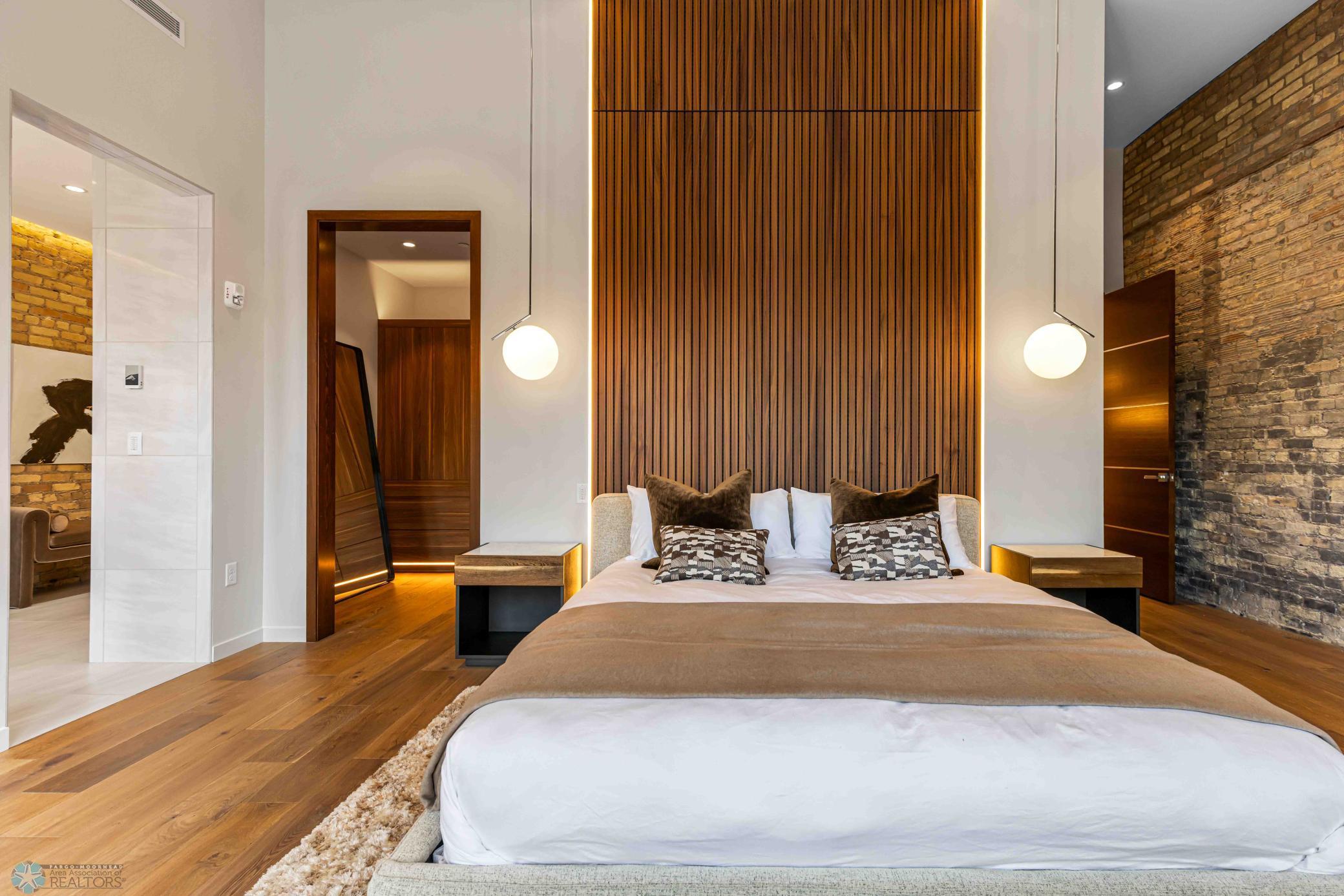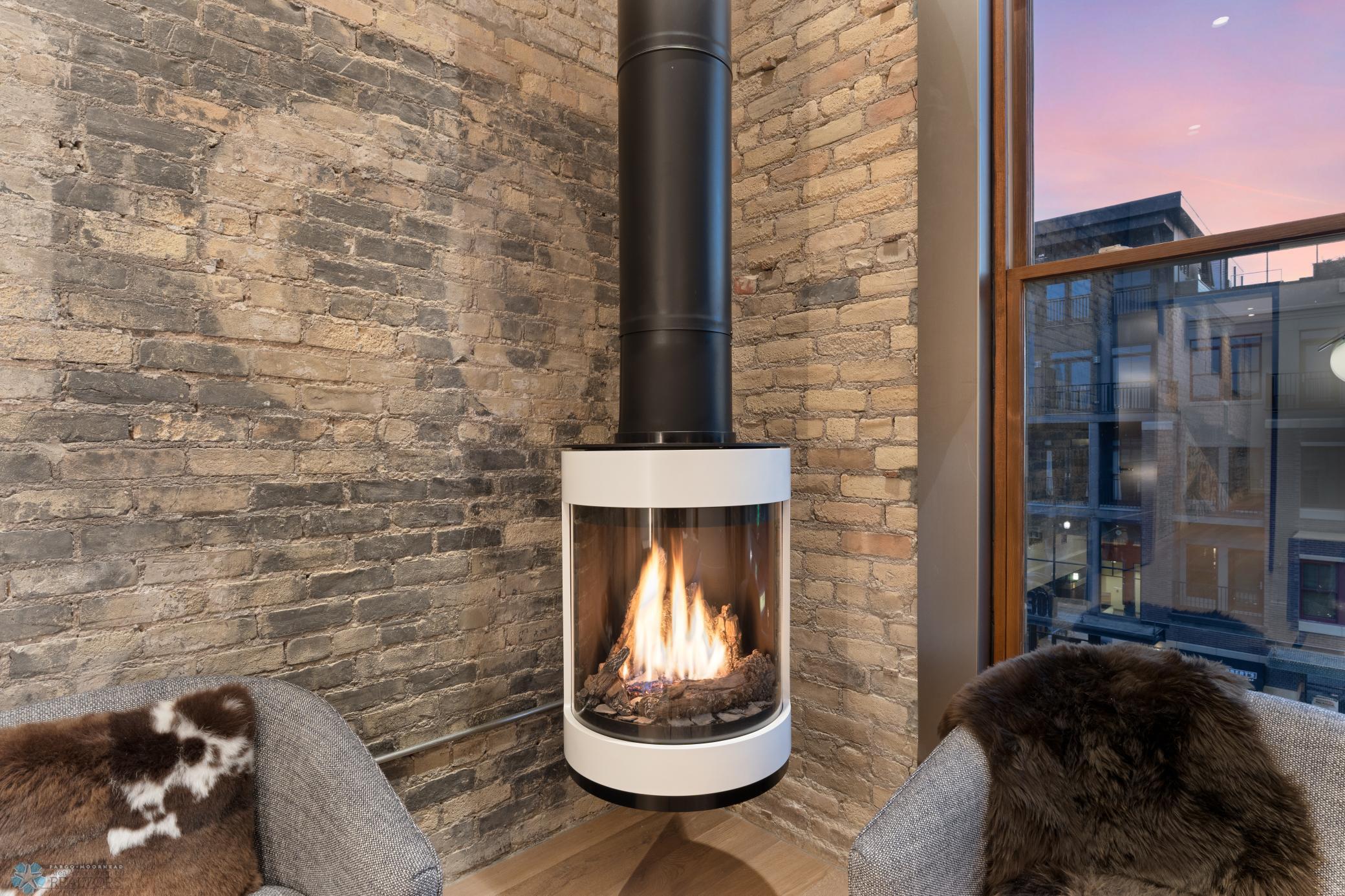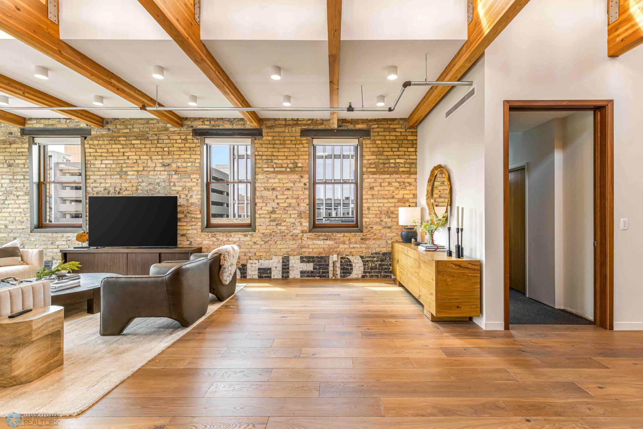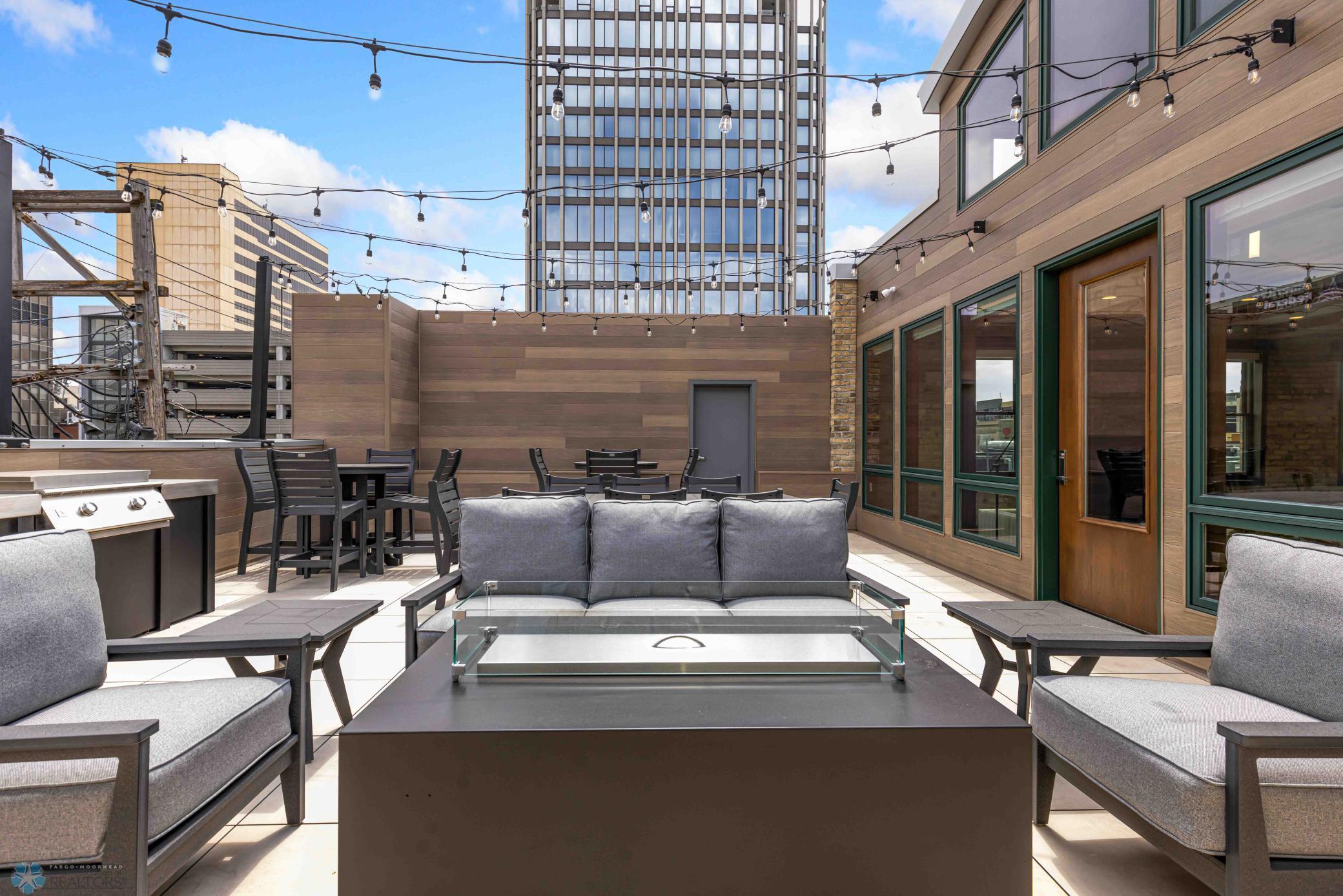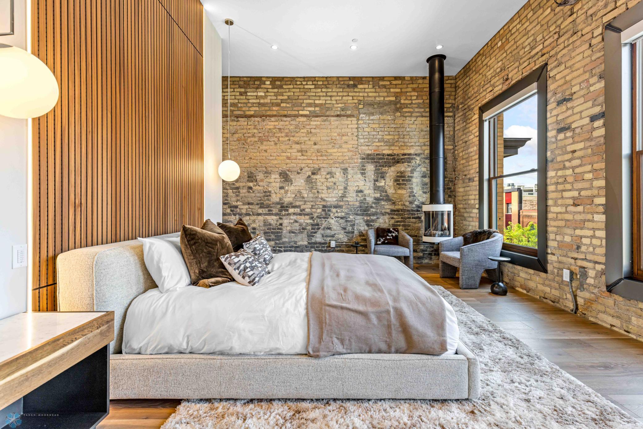 The Moose Dixon Penthouse Perched above Broadway in the heart of downtown Fargo, overlooking the iconic Fargo Theatre, the Moose Dixon Penthouse is a breathtaking blend of historic charm and contemporary sophistication. Encompassing over 3,300 square feet, this one-of-a-kind residence crowns a landmark 1905 building, once home to Dixon Laundry and the Moose Lodge, now transformed into a timeless showcase of elevated urban living. Arrive through heated underground parking and take the elevator up to the penthouse level. Inside, stunning architectural details abound; from the custom barrel ceiling and original exposed brick to the modern suspended fireplace and sleek, in-wall lighting. Every inch is finished with intention, including 8-foot solid wood doors with striking chrome inlays that line the home with understated elegance. At the heart of the residence is a state-of-the-art Italian Valcucine kitchen, fitted with top-of-the-line Miele appliances, a hidden induction cooktop, dual sinks, pot filler, climate-controlled wine fridge, built-in icemaker, espresso machine, and warming drawers. Just beyond, a Butler’s pantry offers extra storage and discreetly houses the hidden in-unit washer and dryer, keeping utility out of sight without sacrificing convenience. The open-concept layout flows effortlessly into the living and dining spaces, featuring automated shades, invisible speakers, and smart lighting all powered by a full smart home system. A dual-zone furnace ensures comfort year-round, and the home is sold fully furnished with luxury designer pieces for a truly turnkey experience. Retreat to the spa-inspired bathrooms, where luxury continues with bidet toilets, heated seats, a deep soaking tub, dual vanities, and a massive steam shower that rivals high-end resorts. Step outside to the first of two private rooftop spaces; a fully finished outdoor oasis with an outdoor kitchen, custom fire feature, and seating for up to 21 guests, creating a true entertainer’s paradise in the heart of downtown. One level above, the second rooftop, on the fifth floor, offers a rare opportunity for future expansion. Already roughed in for a wet bar and hot tub, this unfinished space is ready for your vision to transform it into something extraordinary. Whether you’re searching for an iconic personal residence, a luxury short-term rental, or a one-of-a-kind event venue, the Moose Dixon Penthouse is a rare opportunity to own a piece of Fargo’s past.. refined and redefined for modern living.